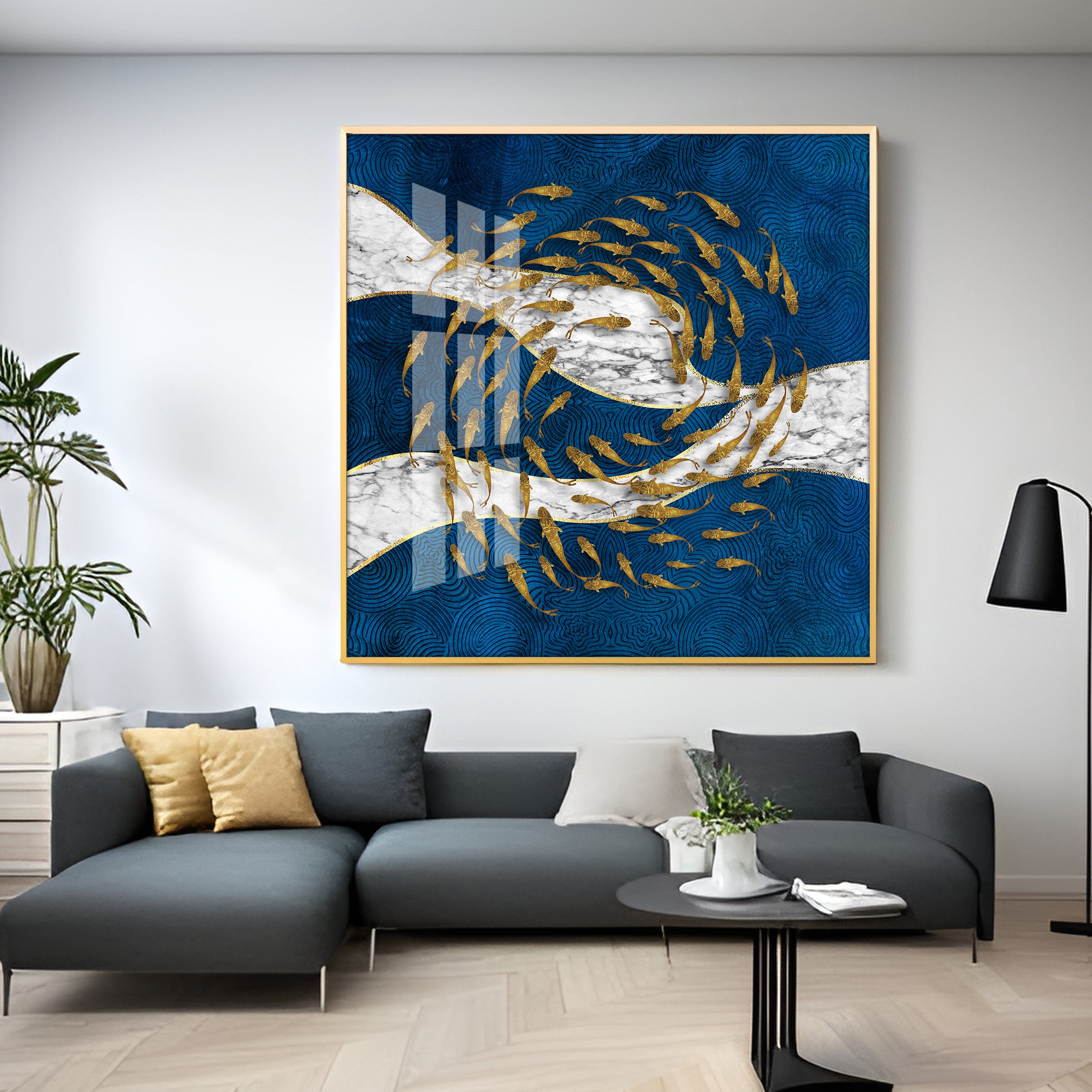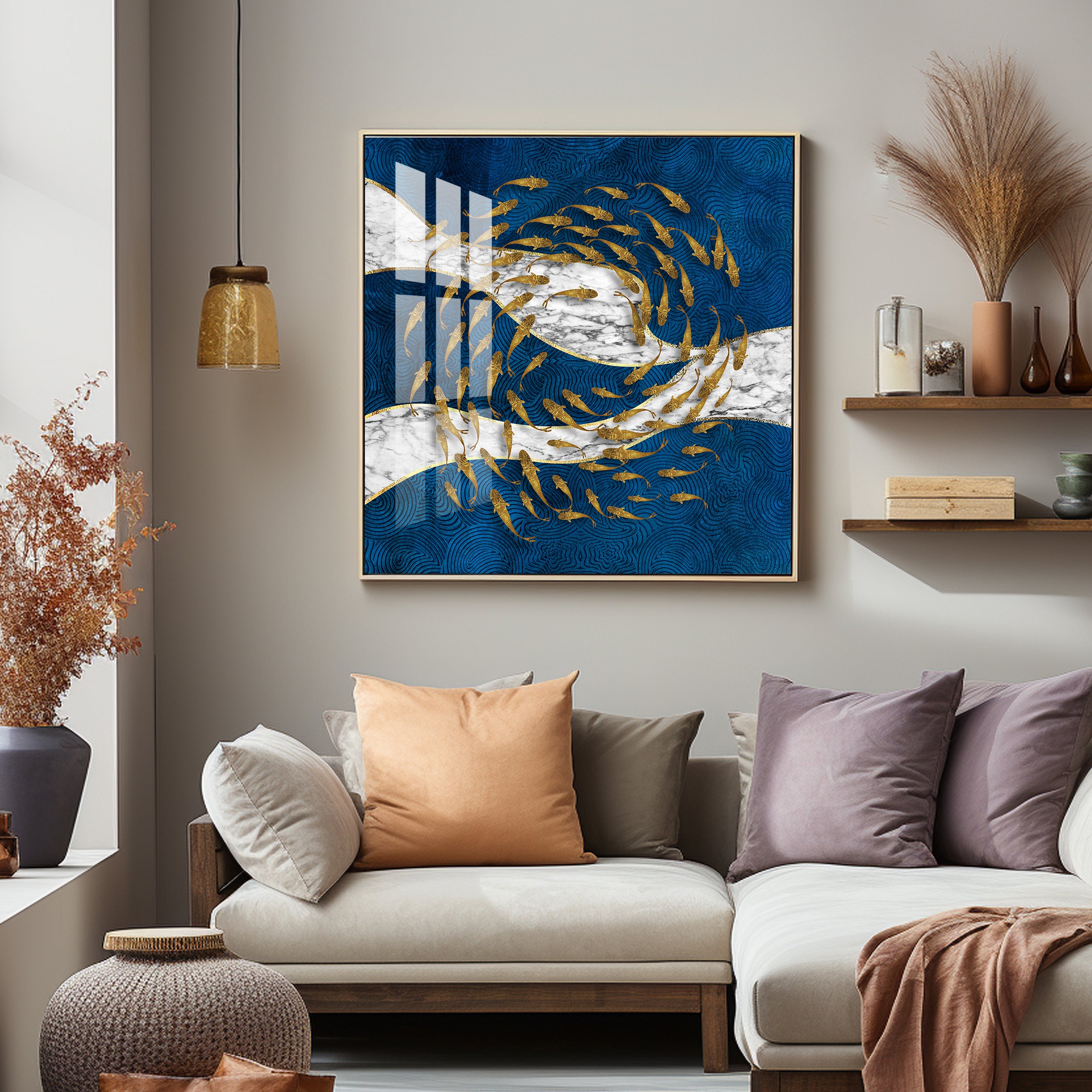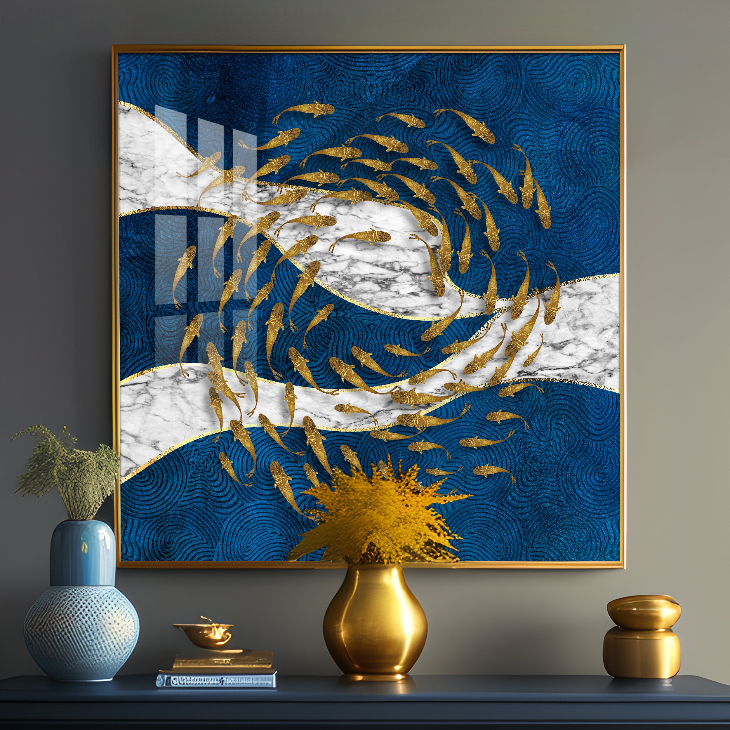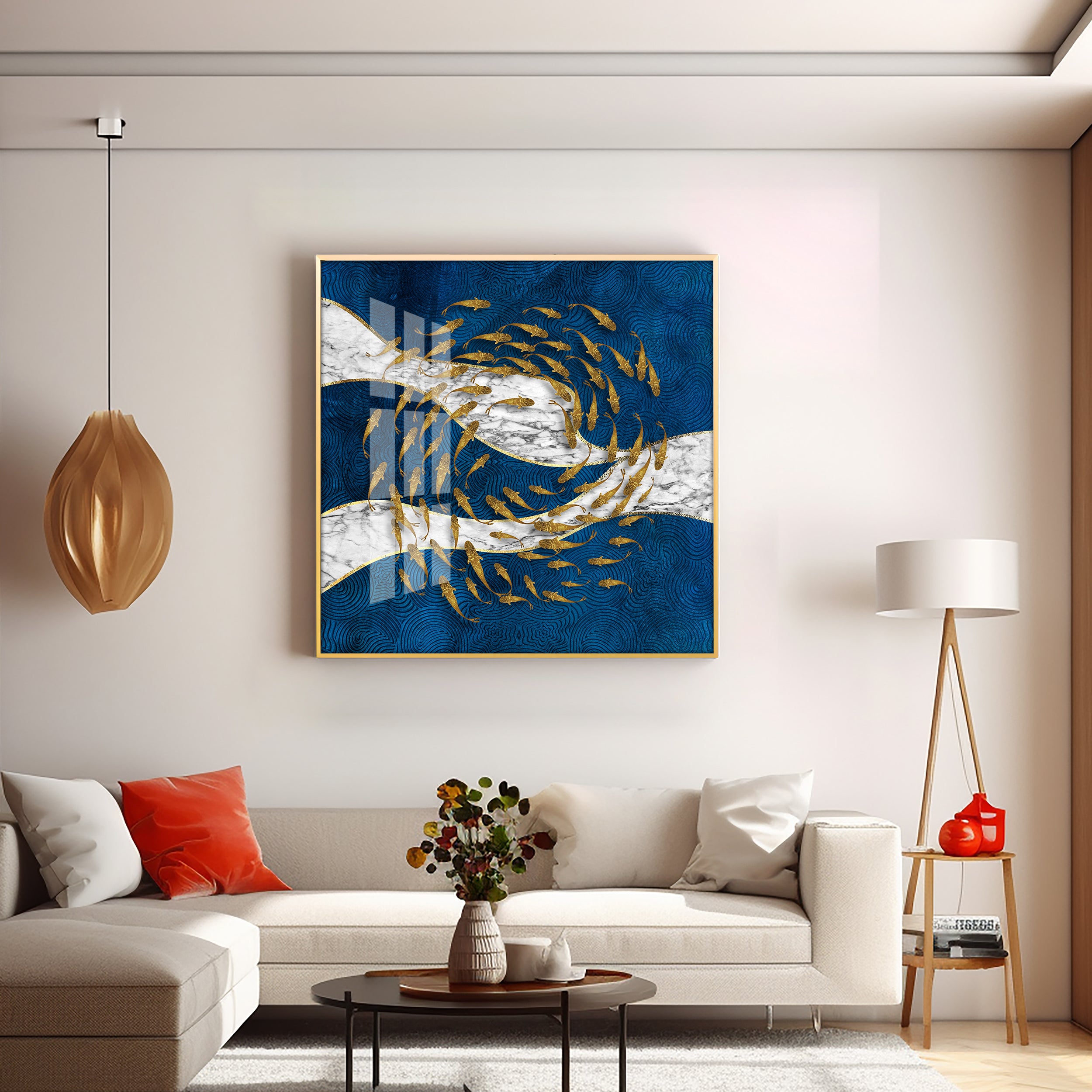 Koi Fish In Circular Motion Premium Acrylic Square Wall Art