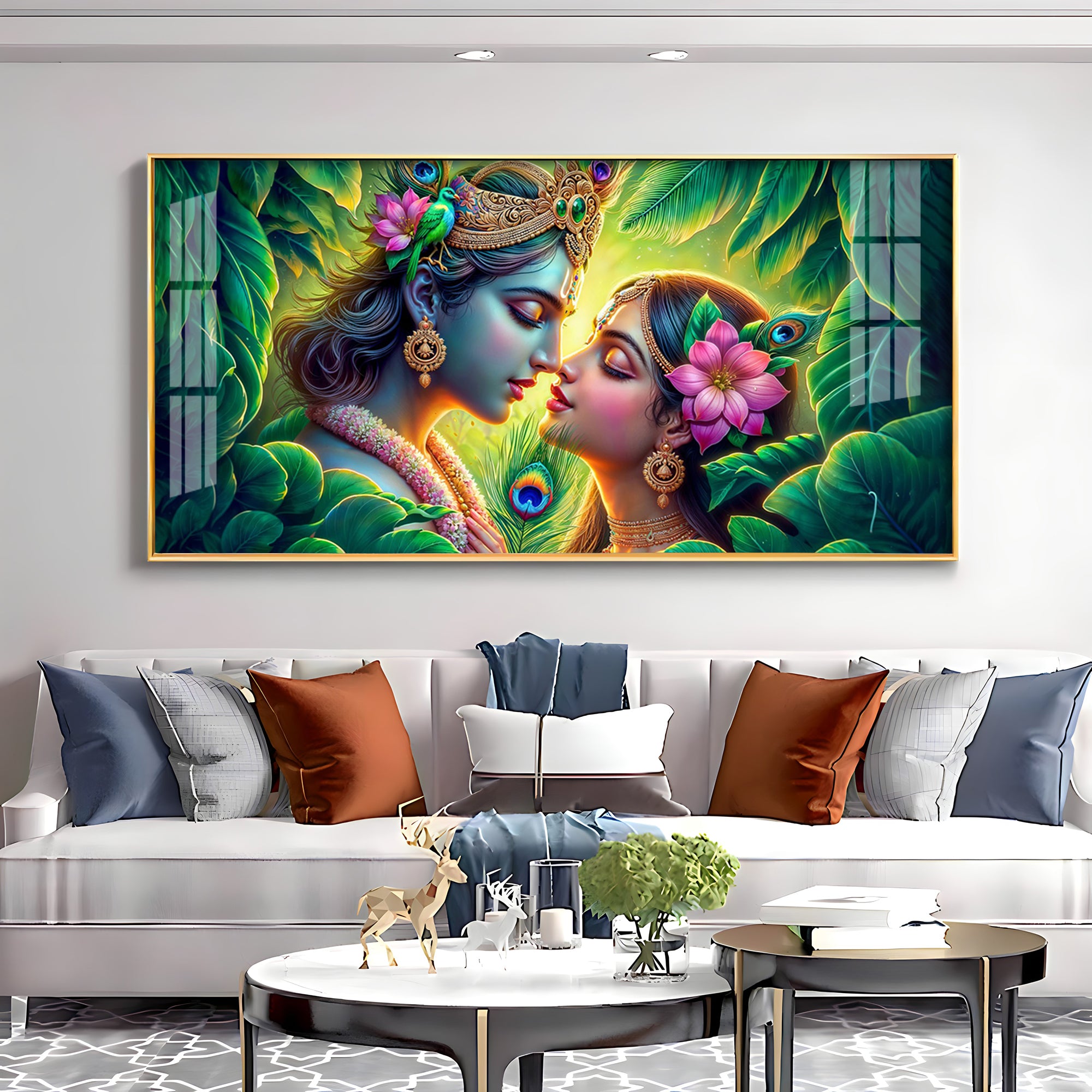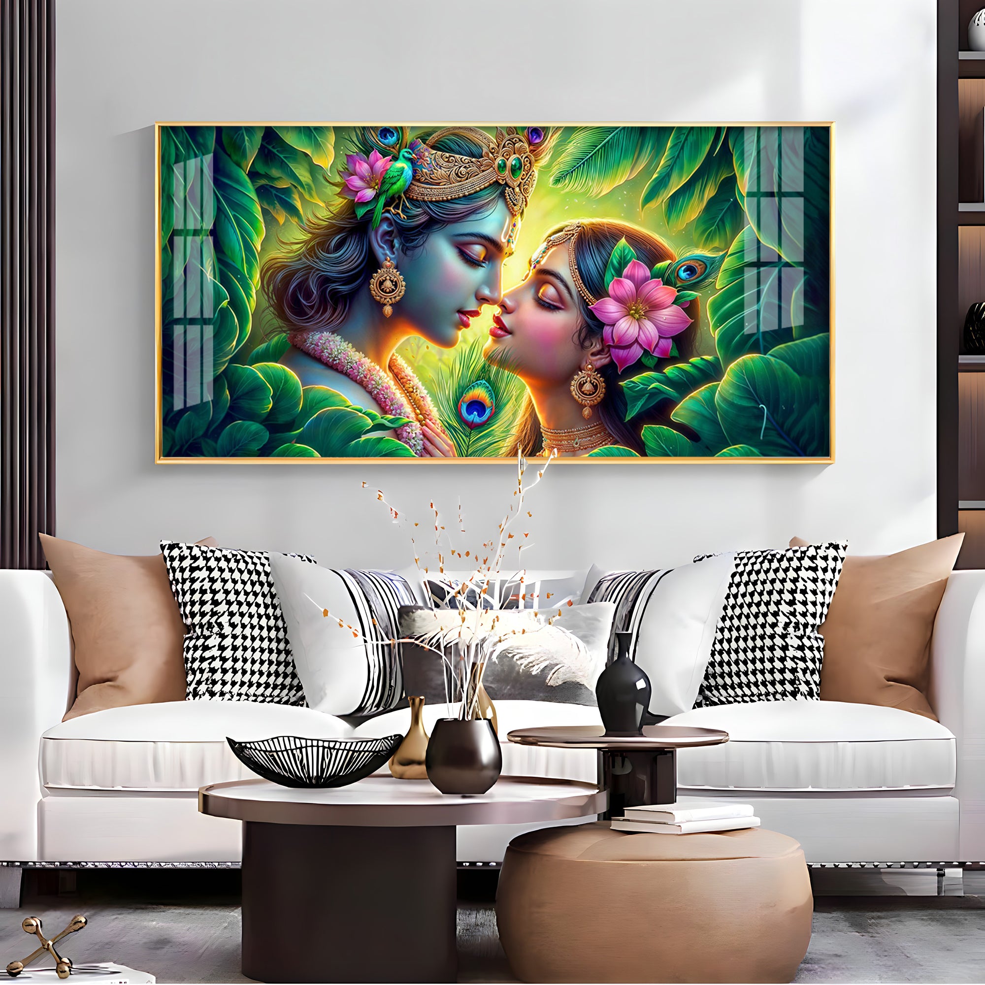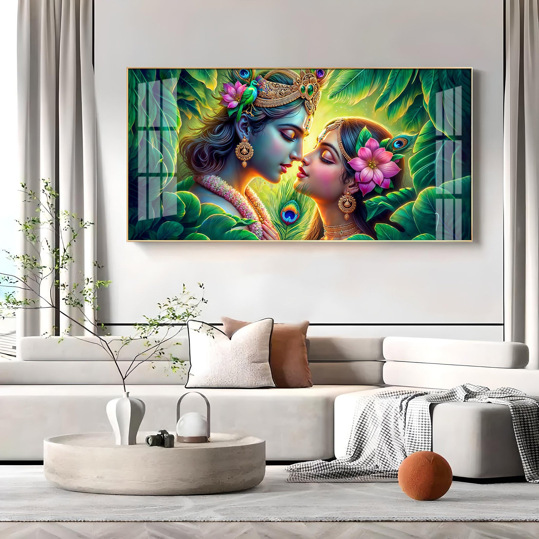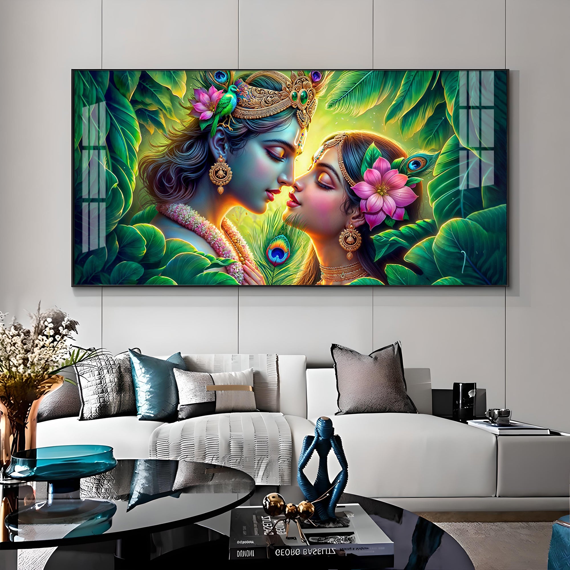 Krishna and Radha Radiant Devotion Premium Acrylic Horizontal Wall Art