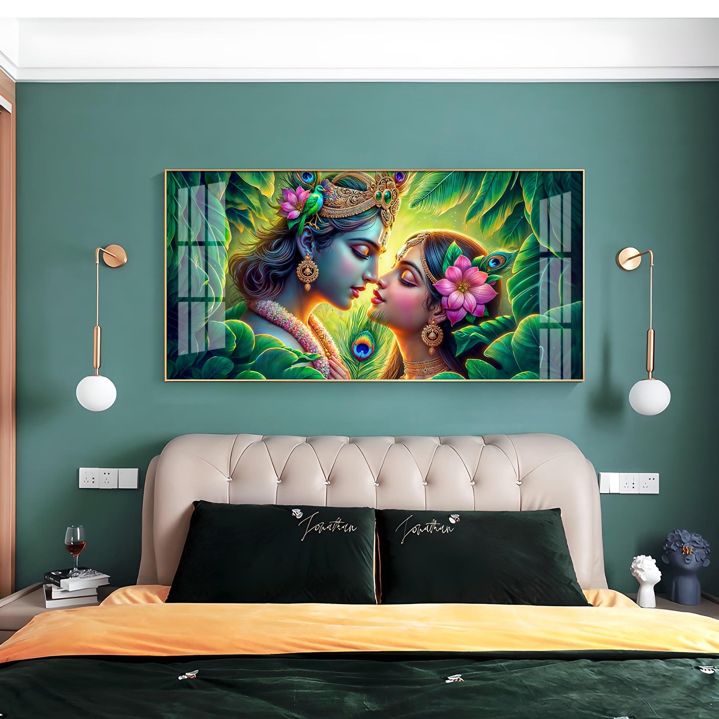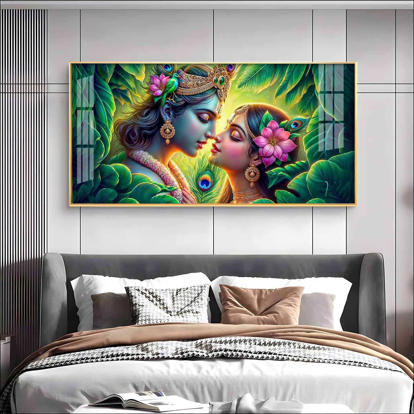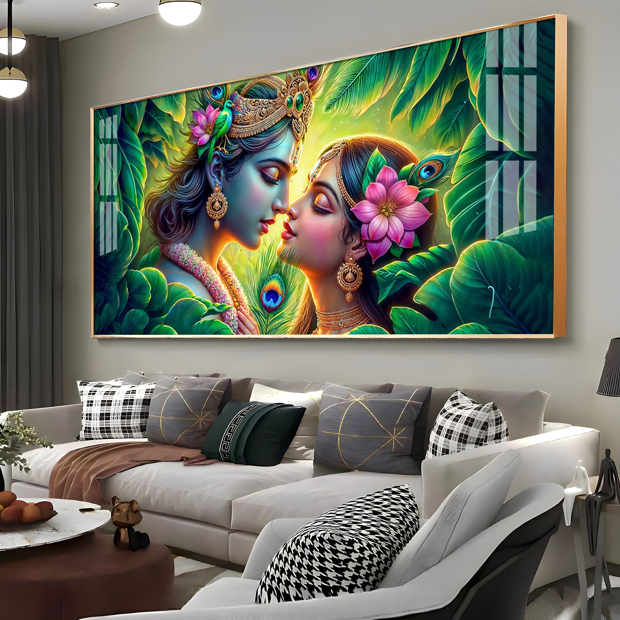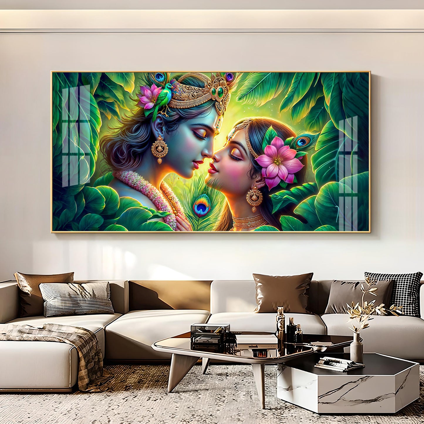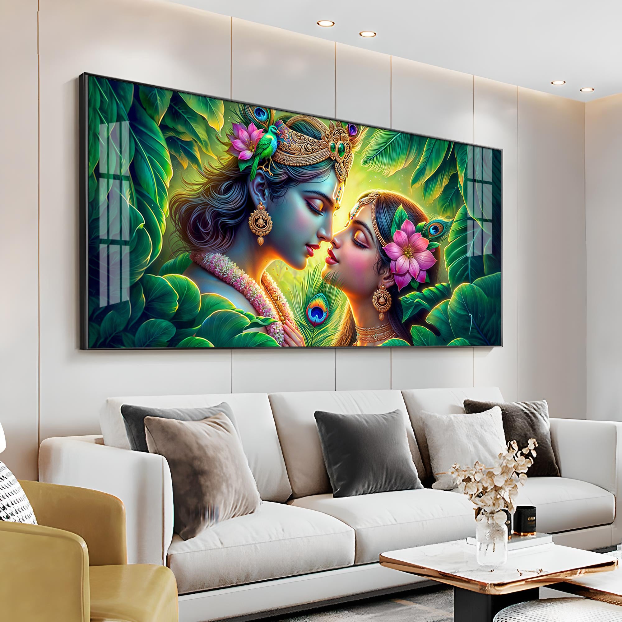 Krishna and Radha Radiant Devotion Premium Acrylic Horizontal Wall Art
