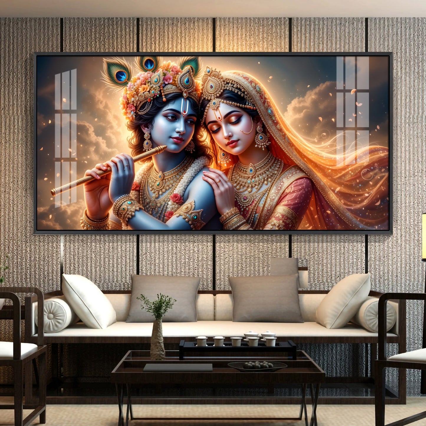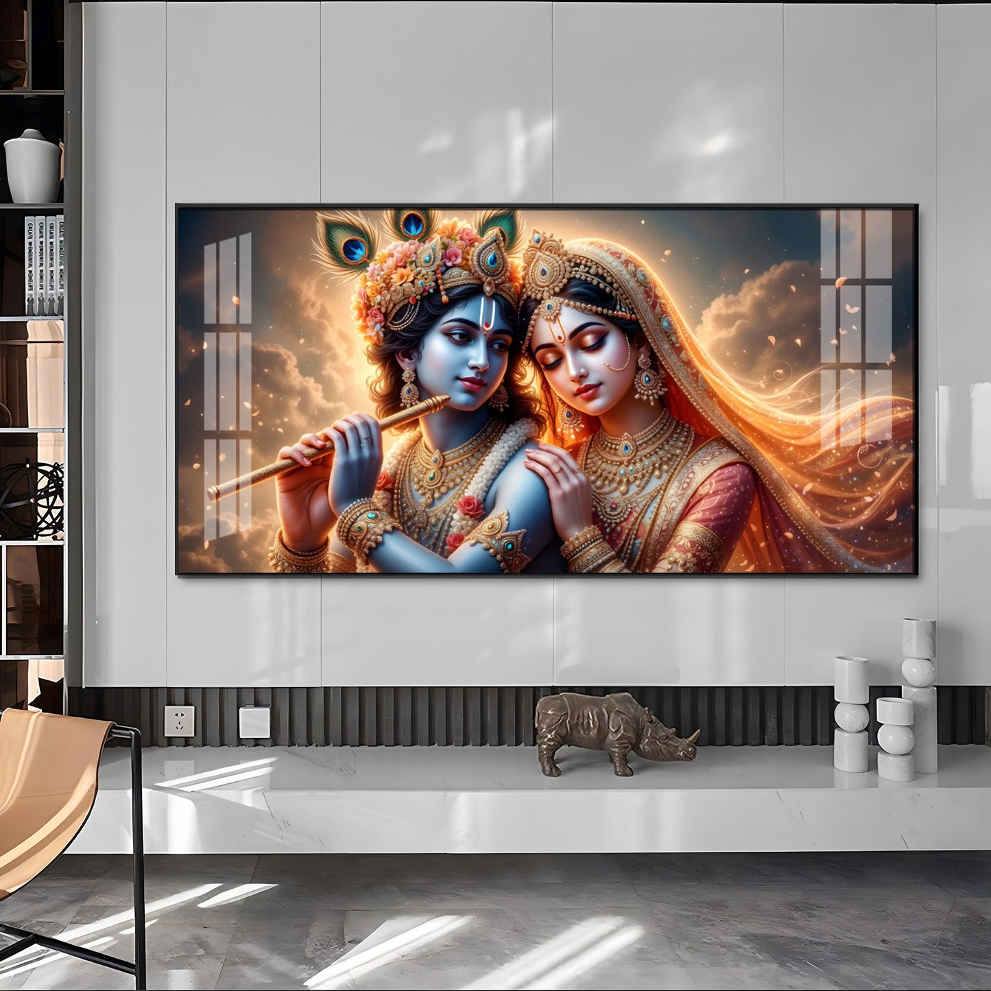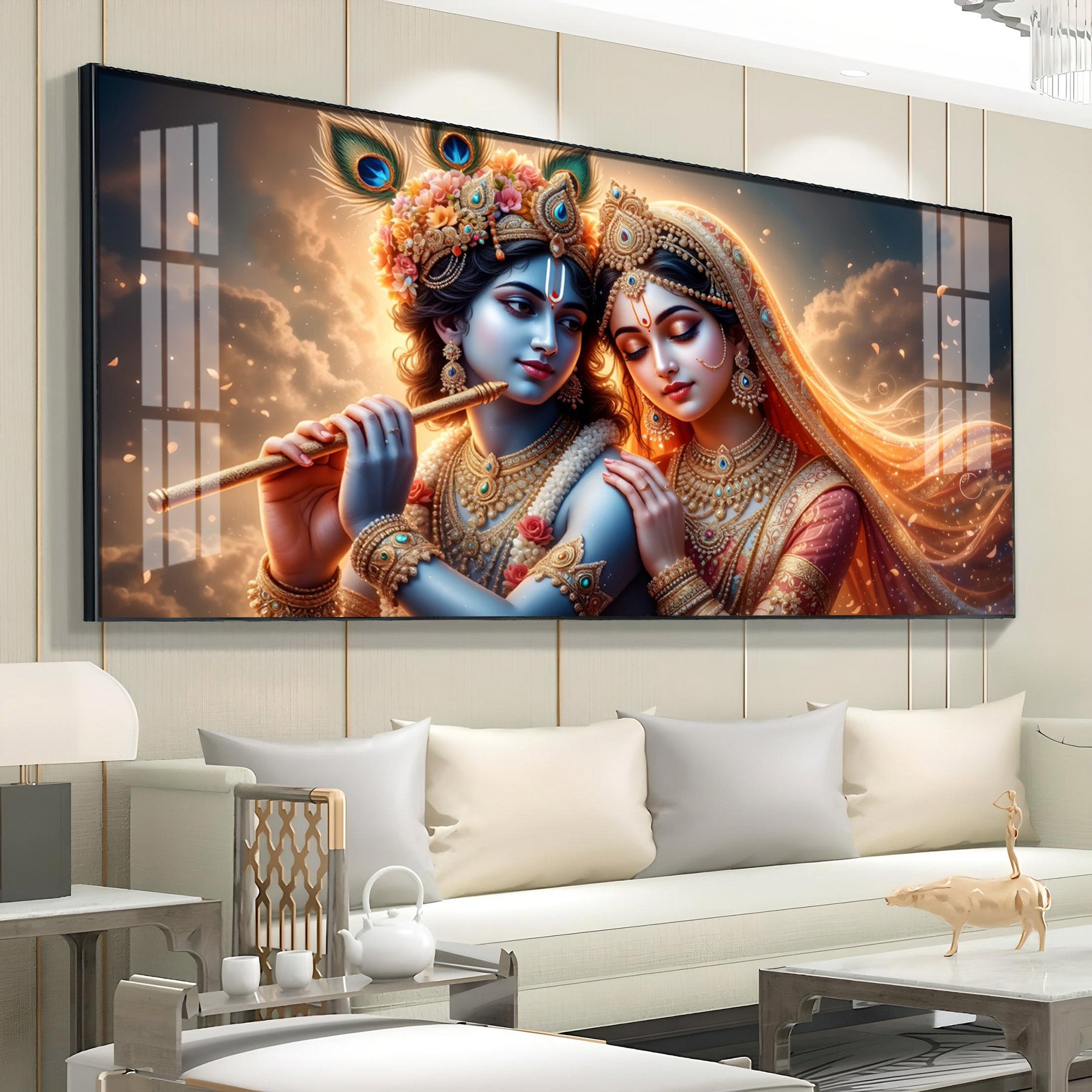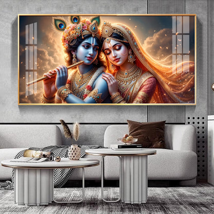 Krishna And Radha Together Premium Acrylic Horizontal Wall Art