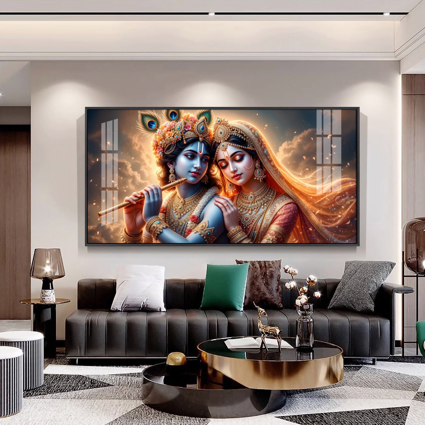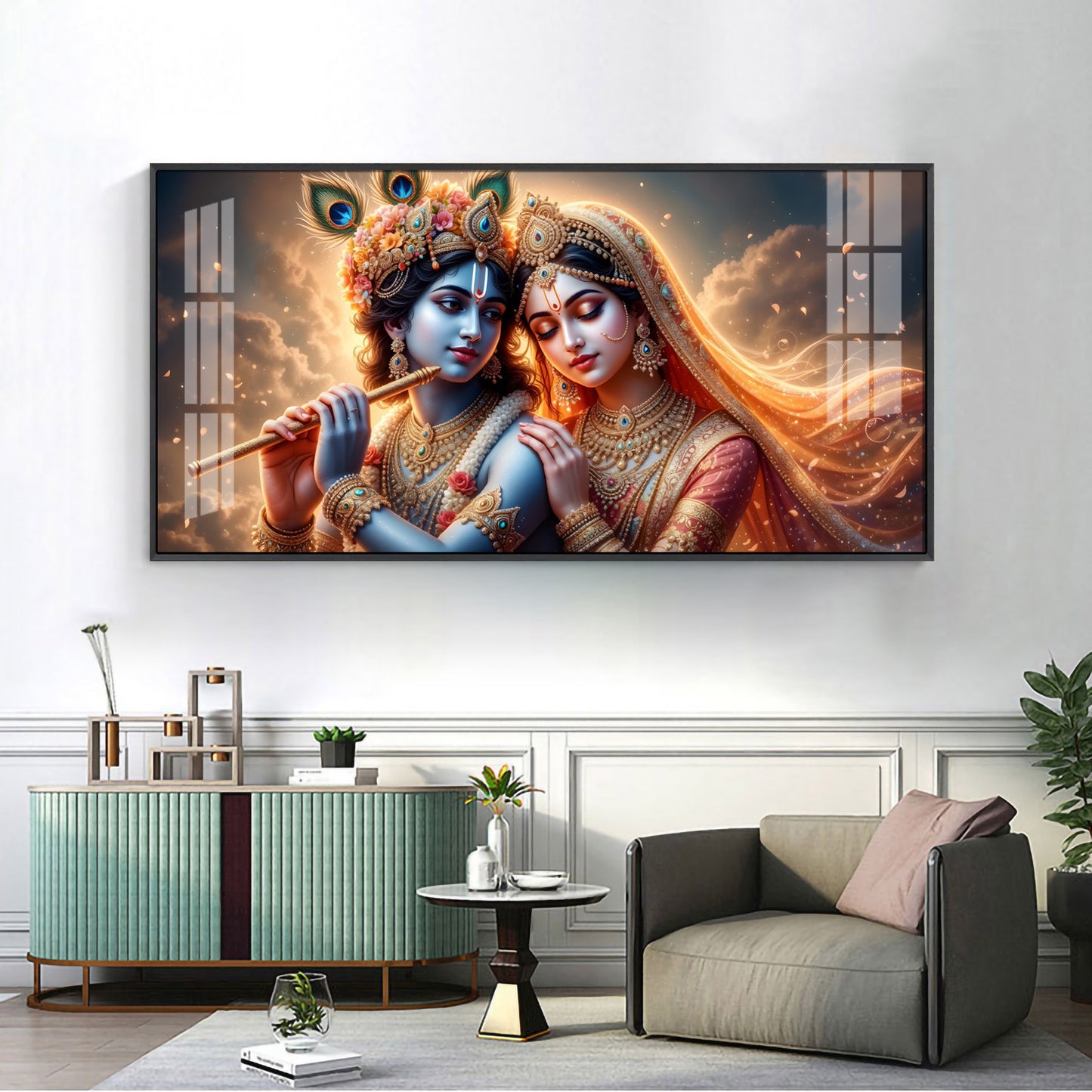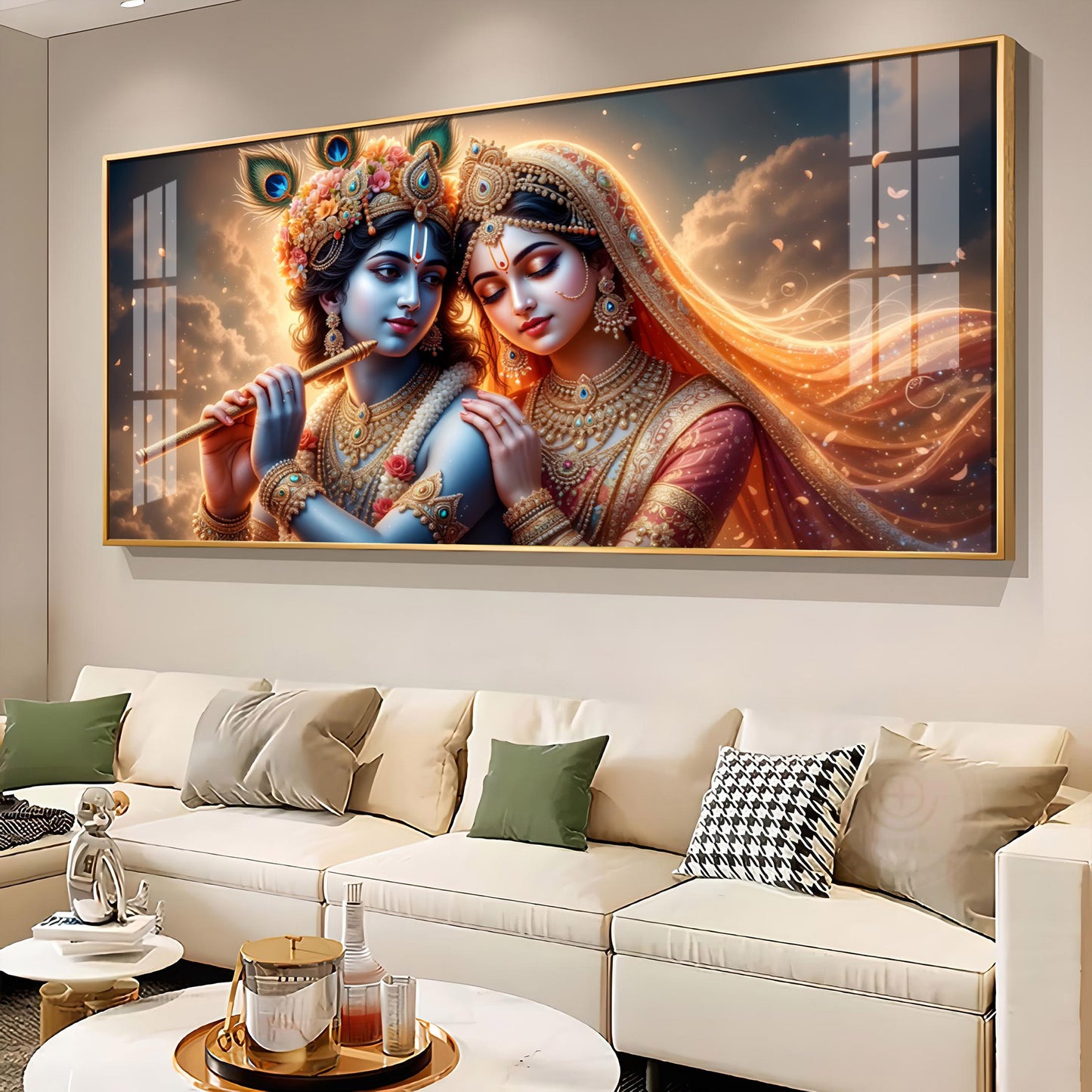 Krishna And Radha Together Premium Acrylic Horizontal Wall Art
