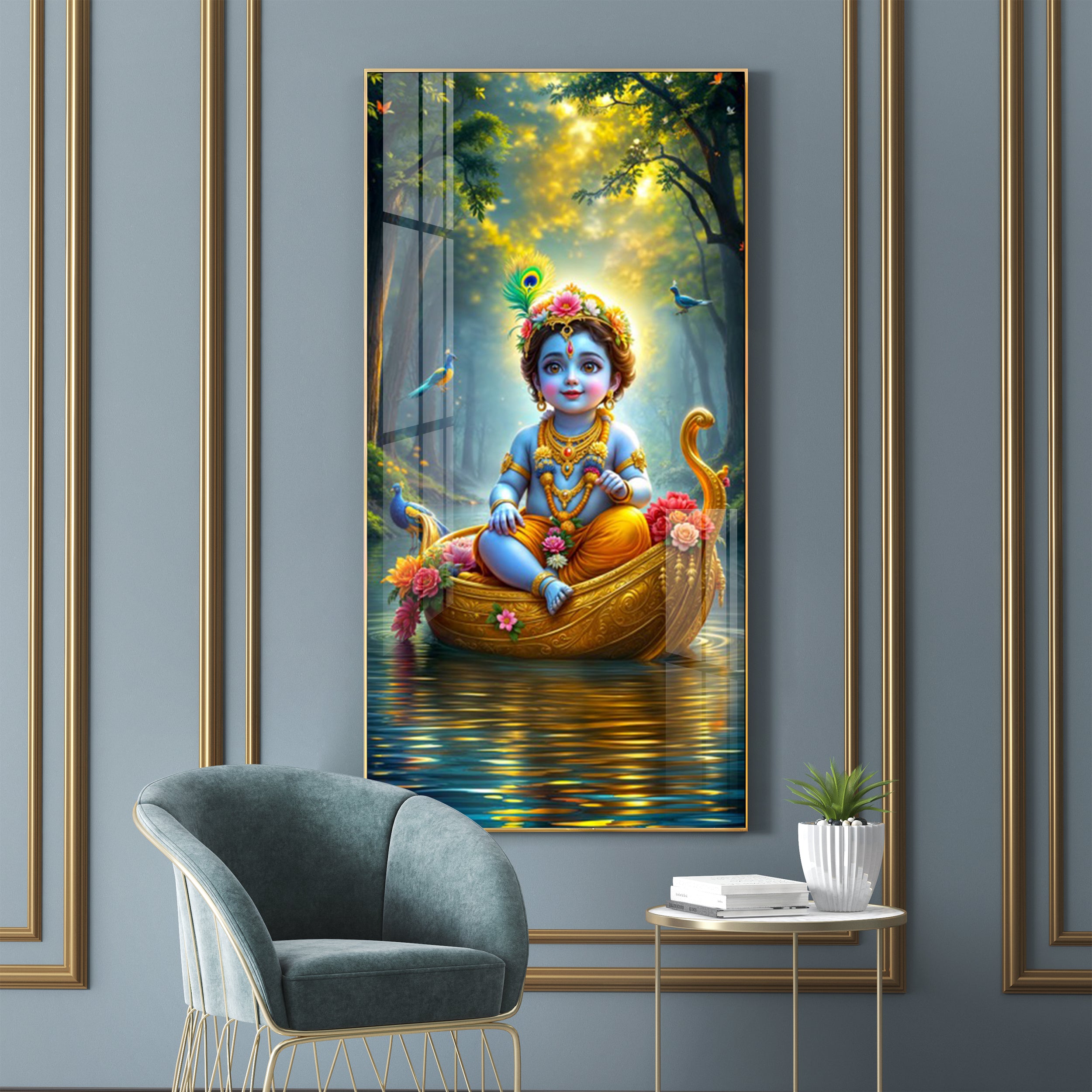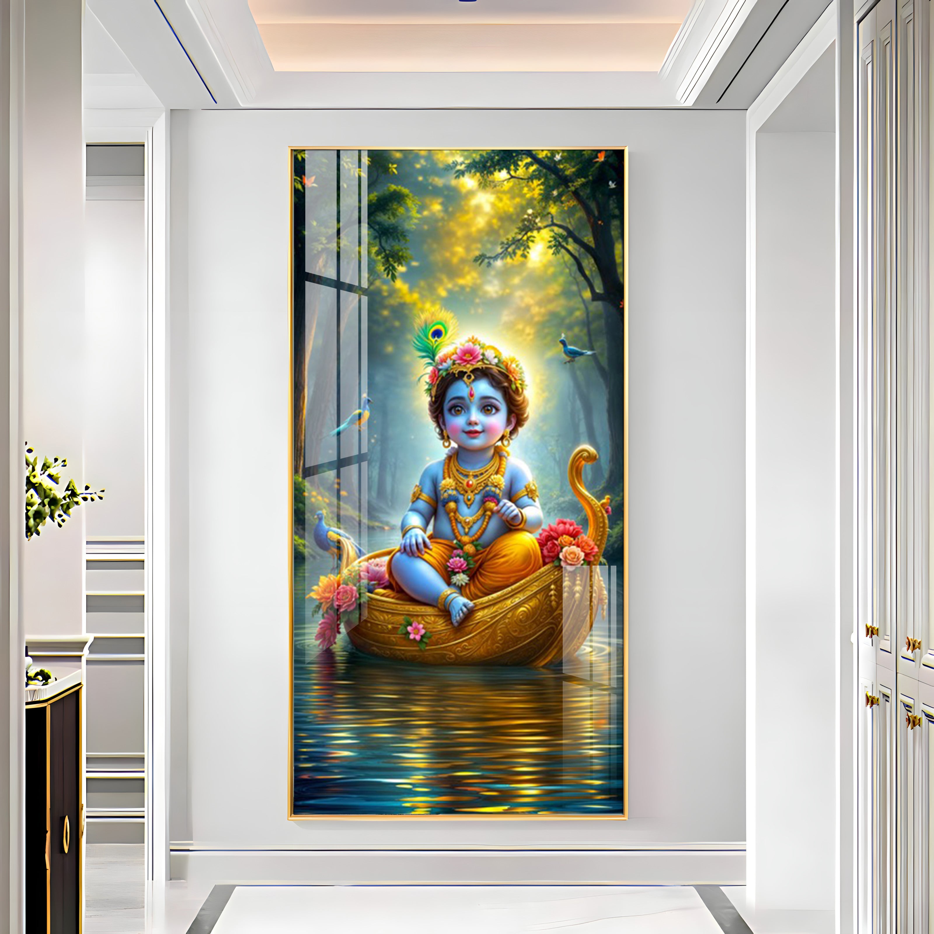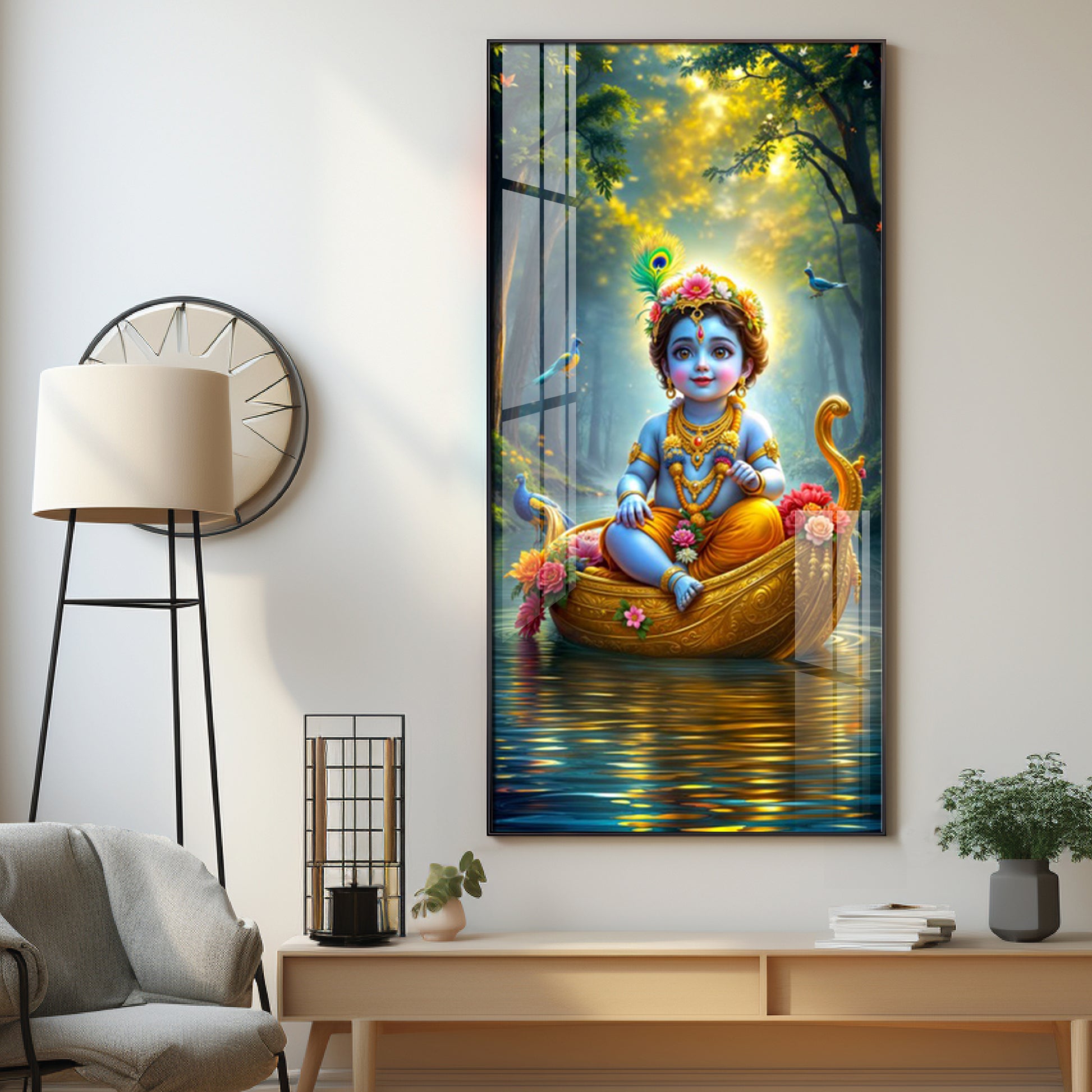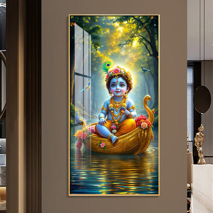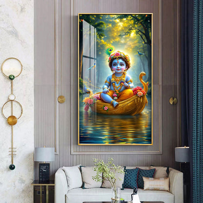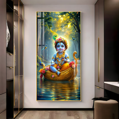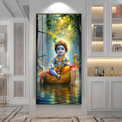 Krishna in the Boat Premium Acrylic Vertical Wall Art