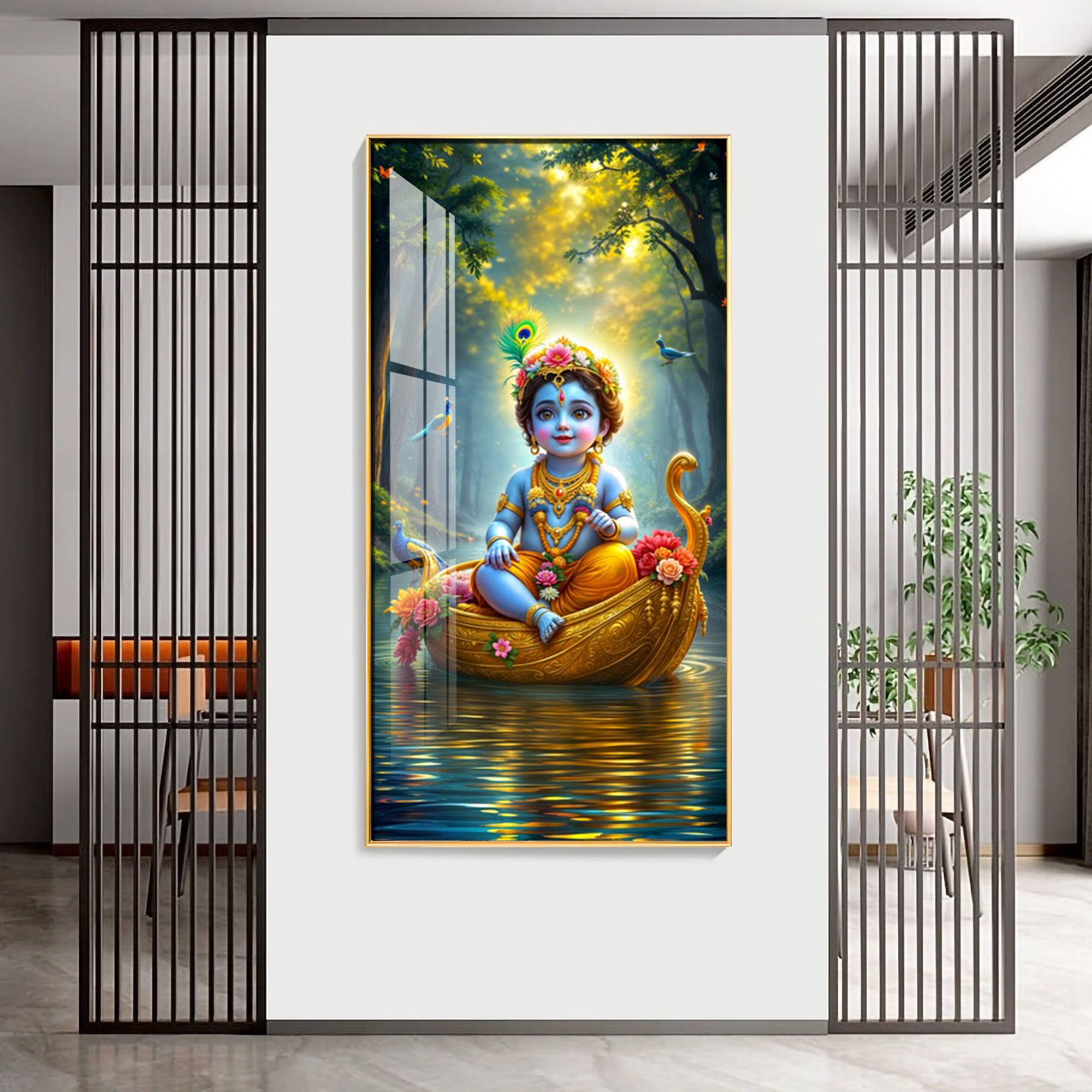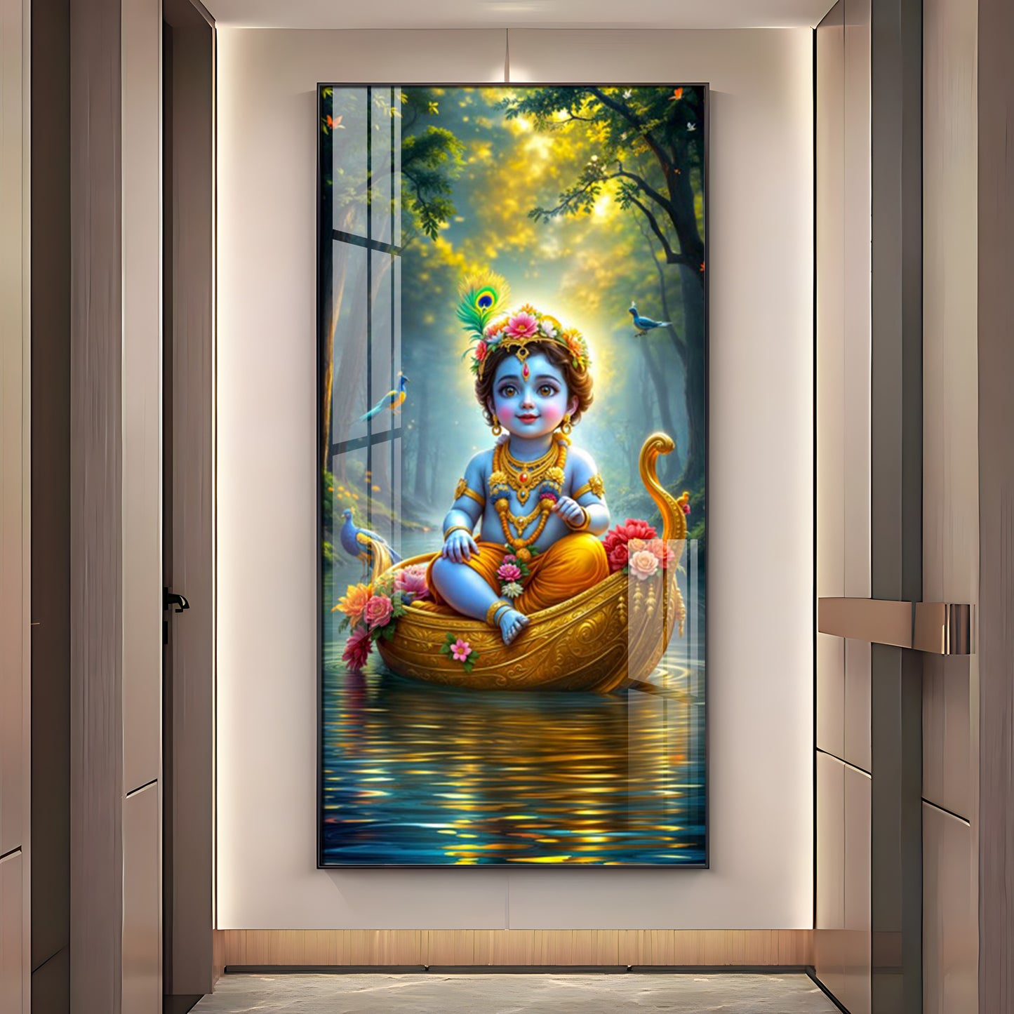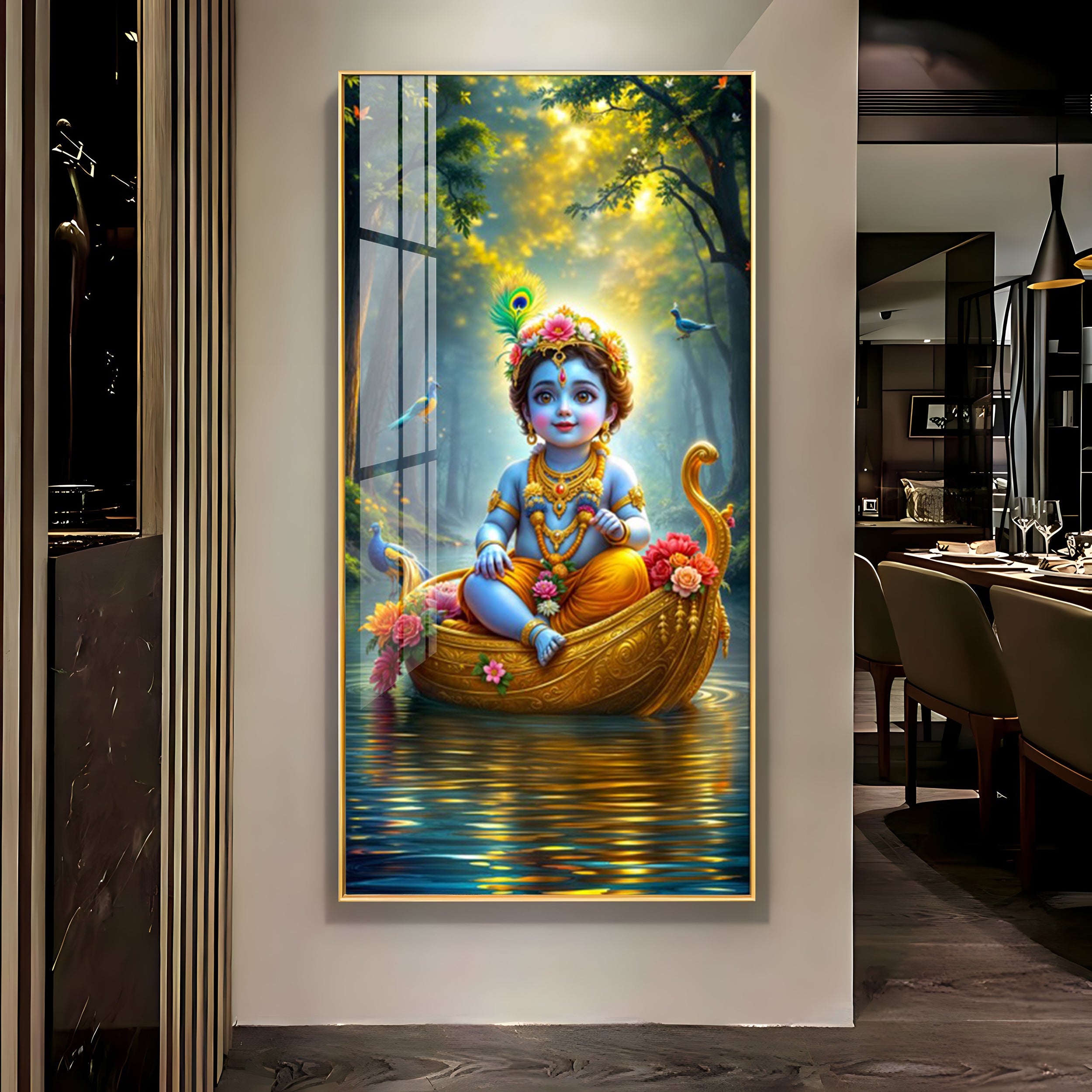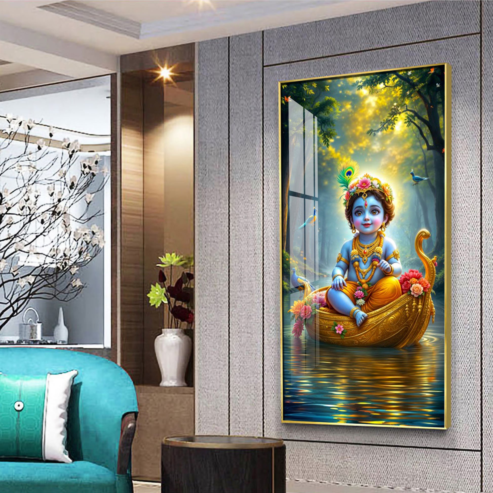 Krishna in the Boat Premium Acrylic Vertical Wall Art