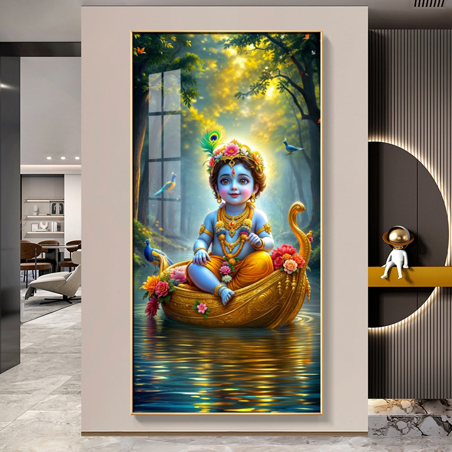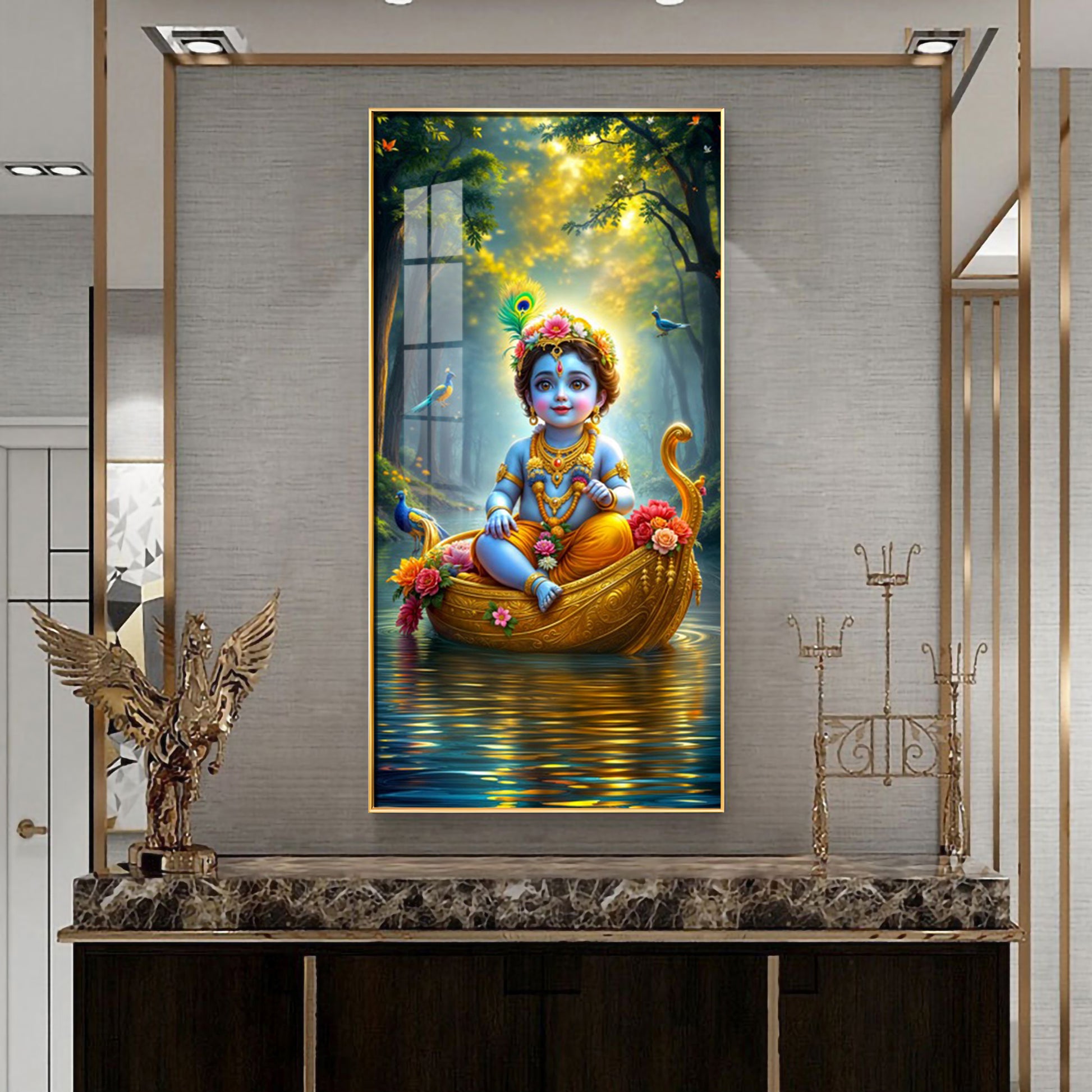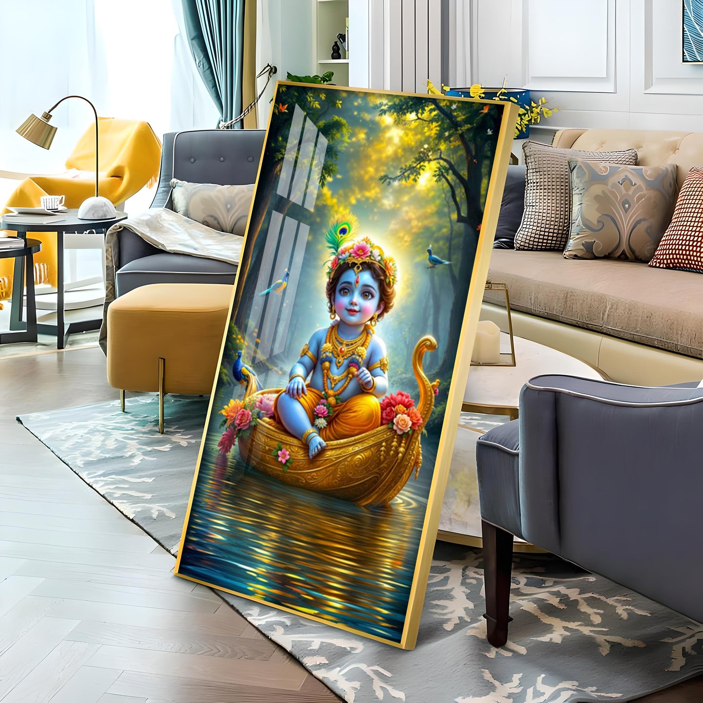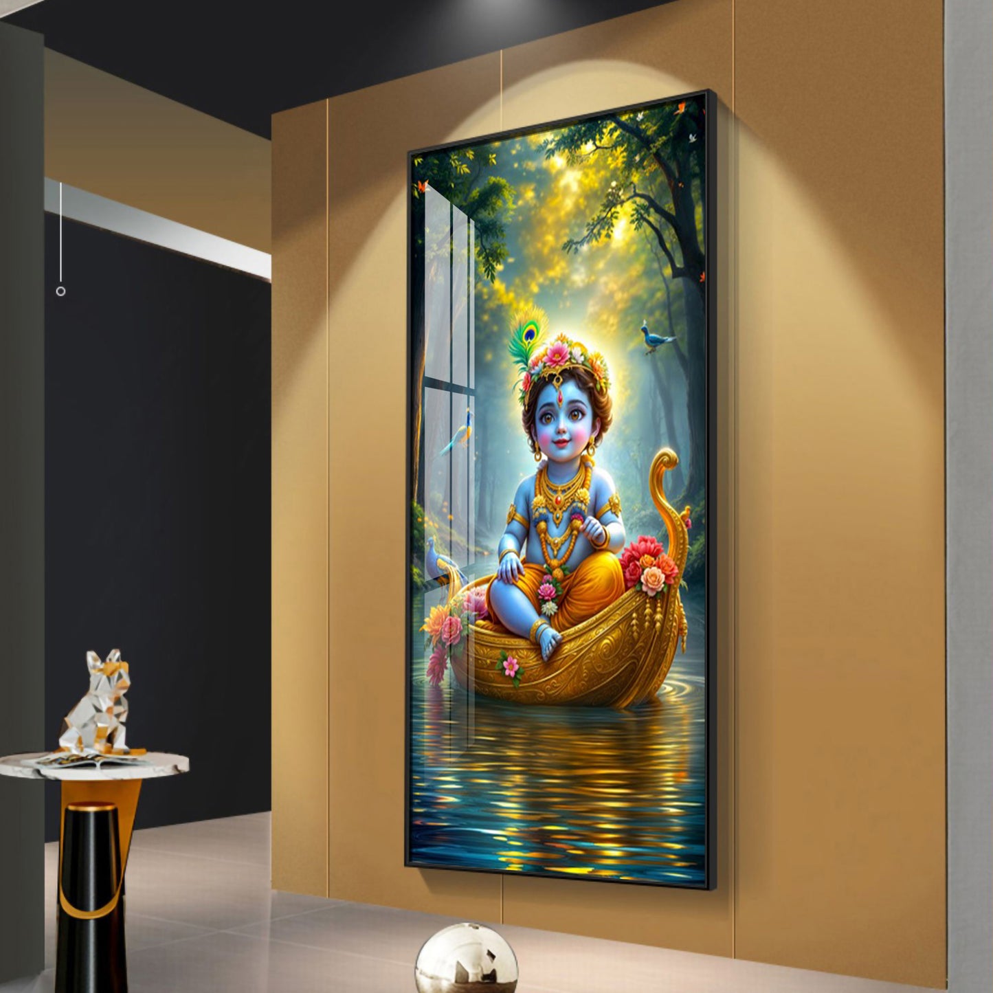 Krishna in the Boat Premium Acrylic Vertical Wall Art