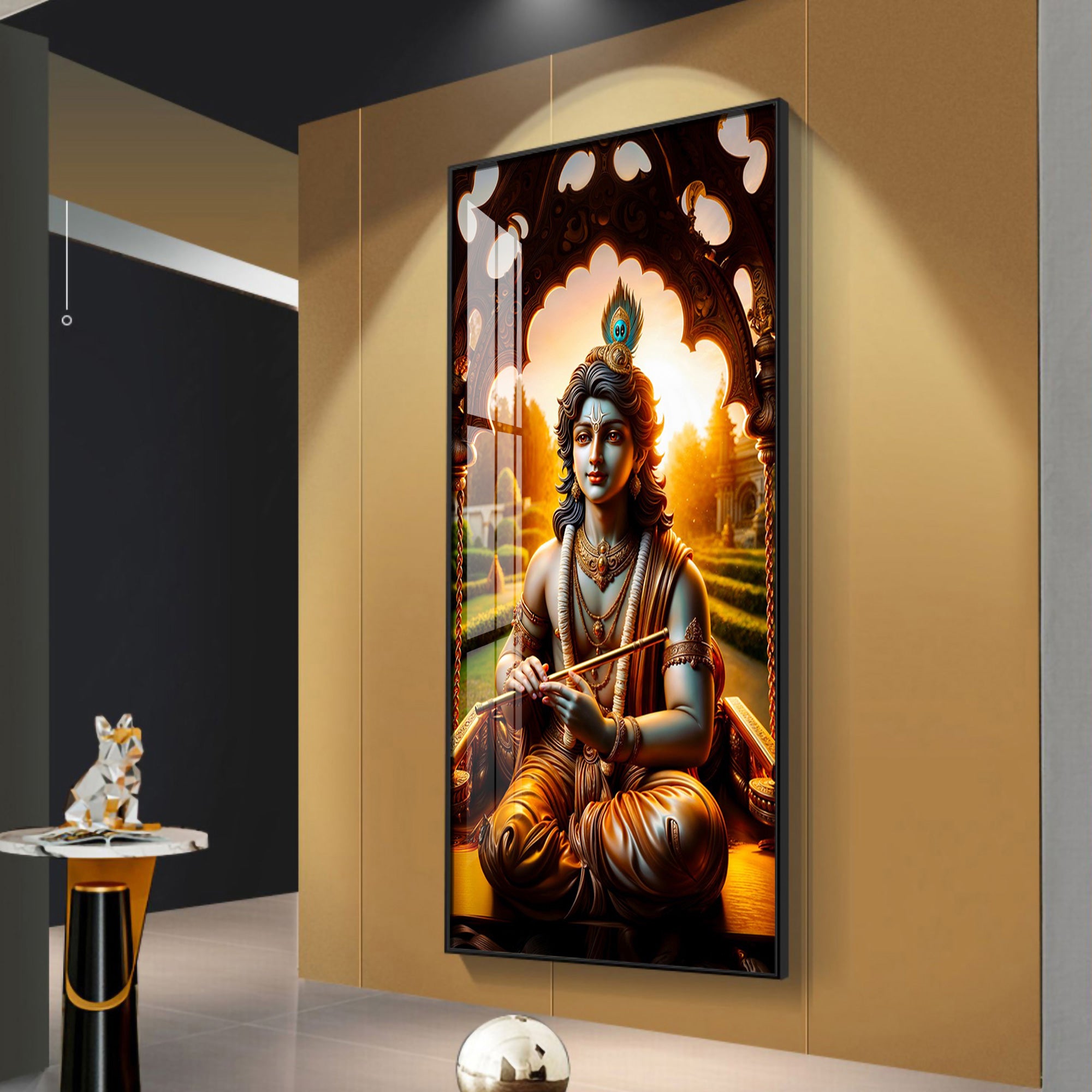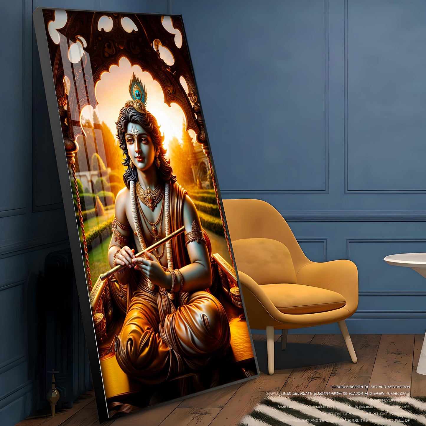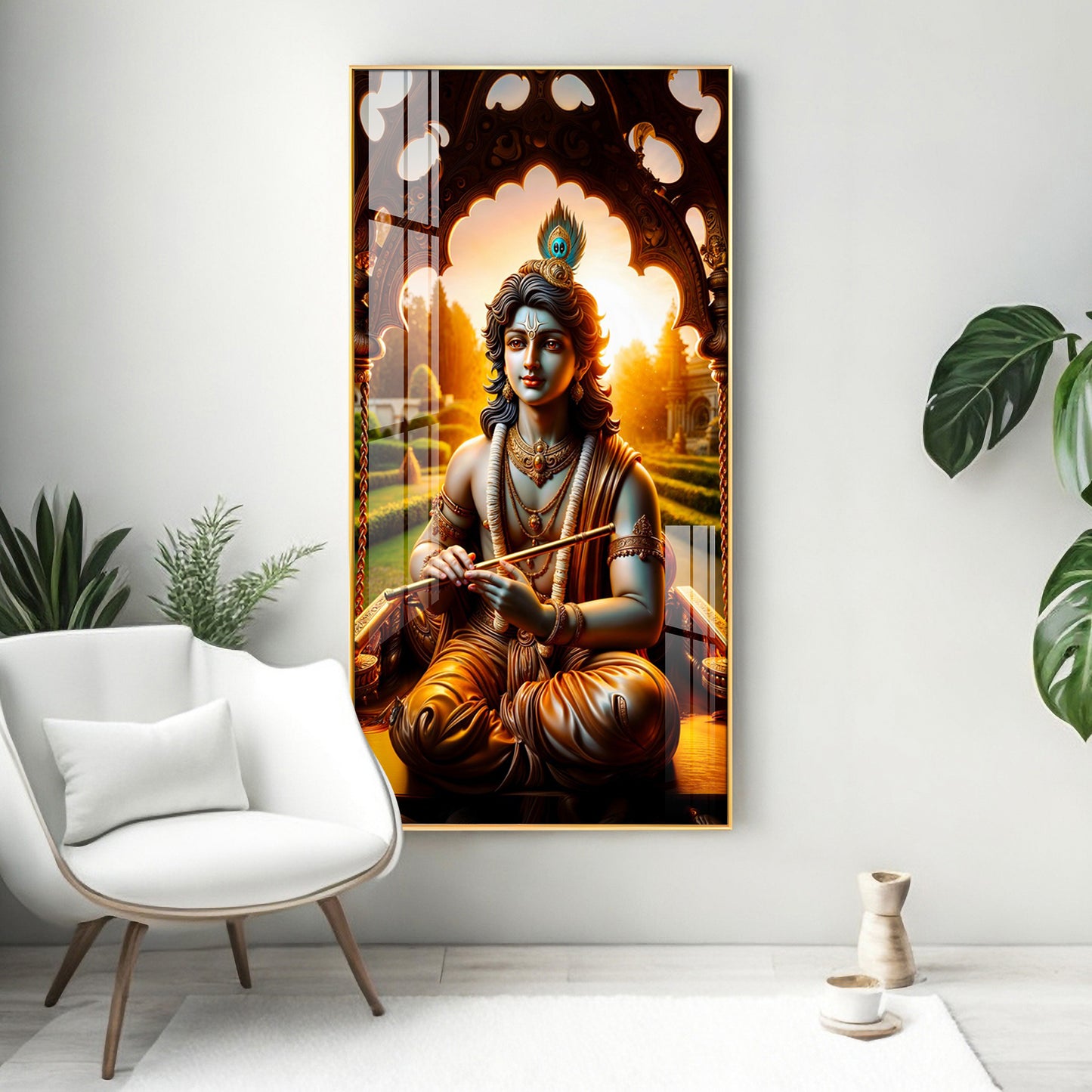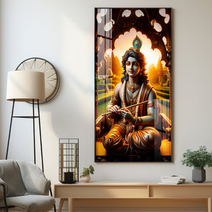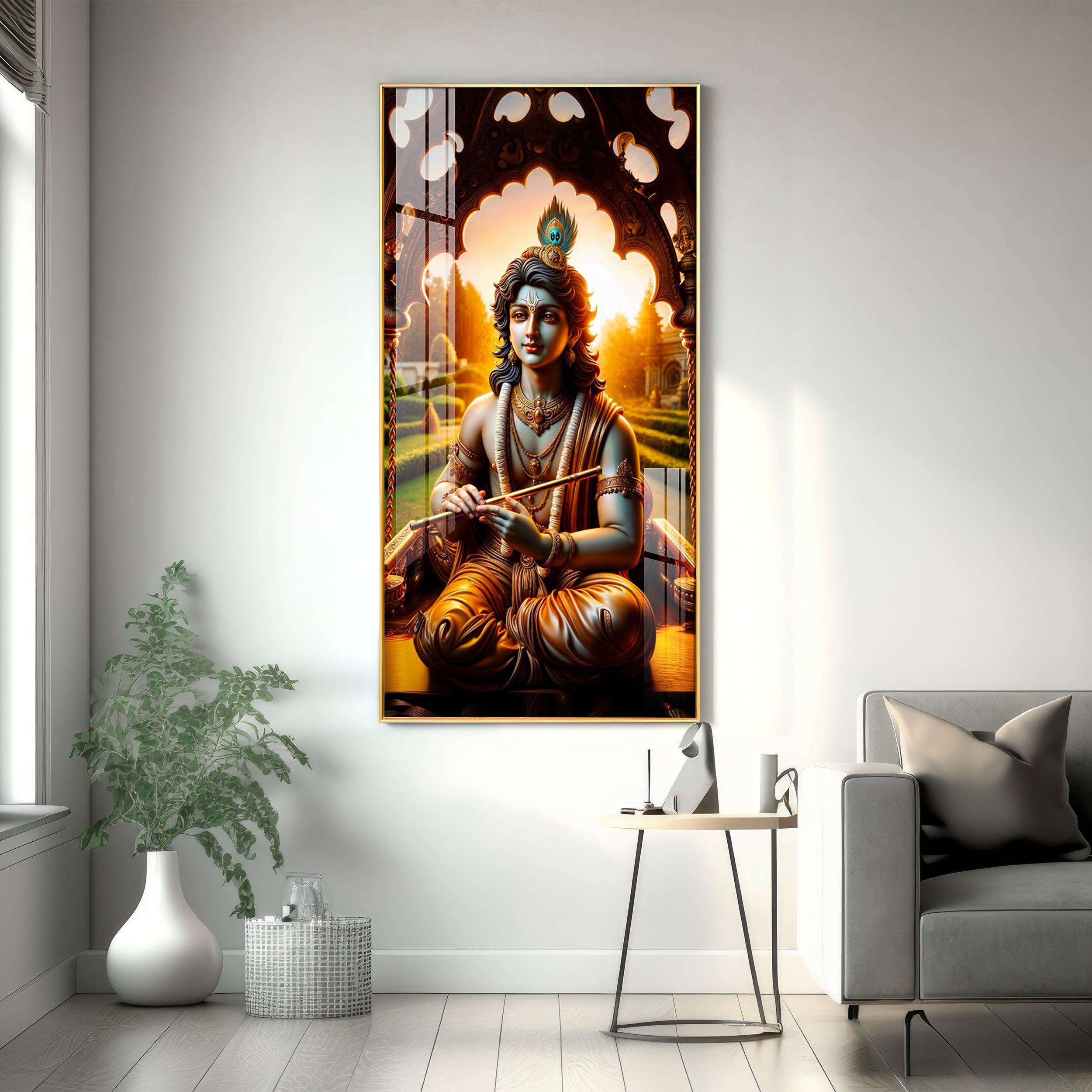 Krishna On His Throne Premium Acrylic Vertical Wall Art