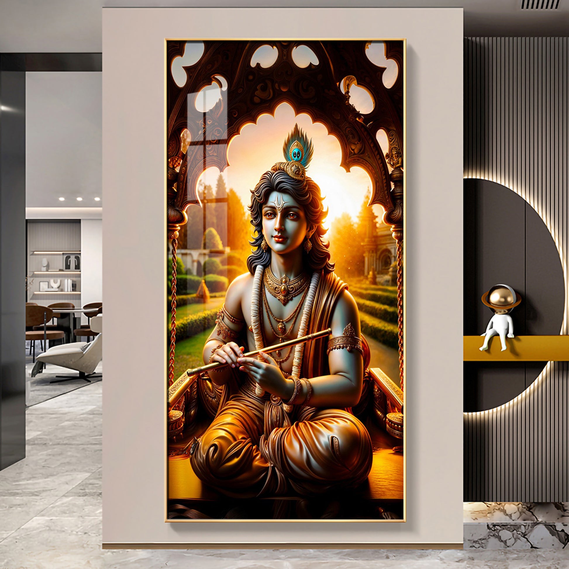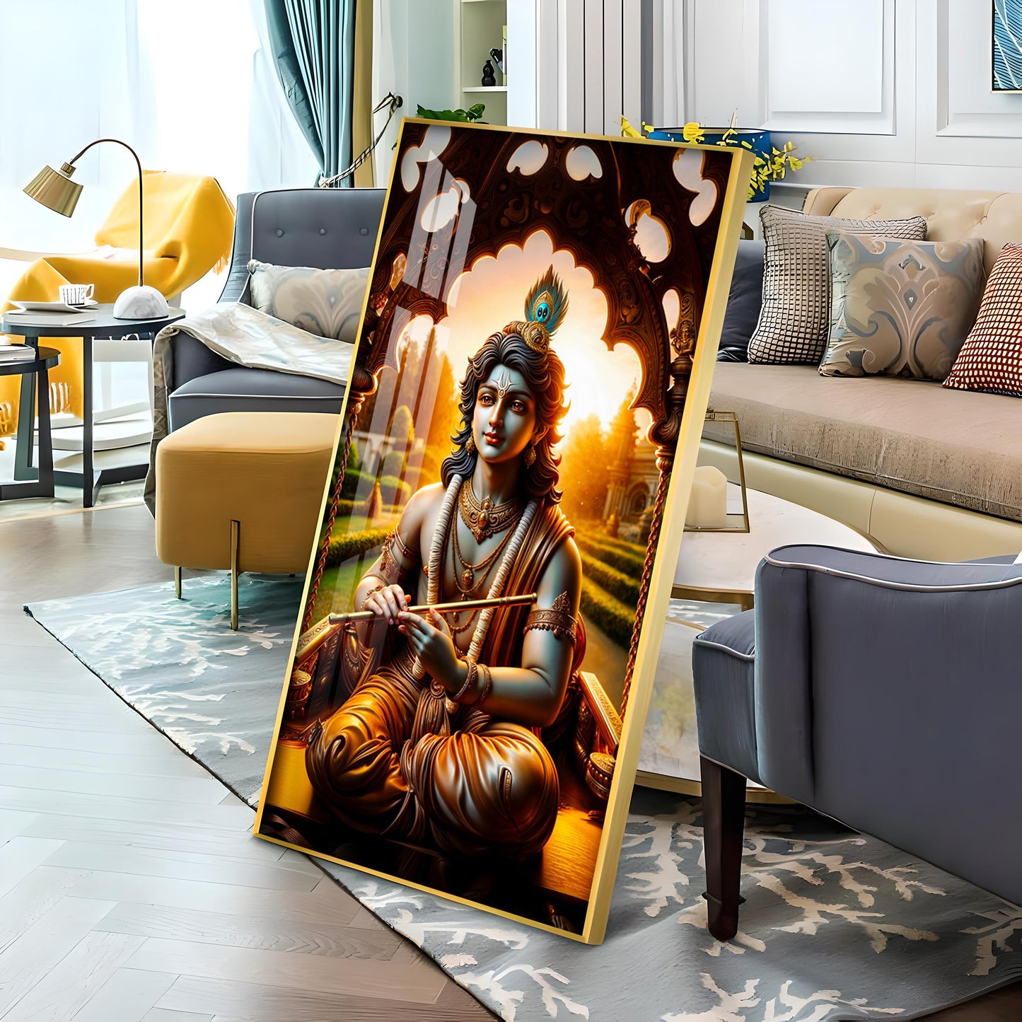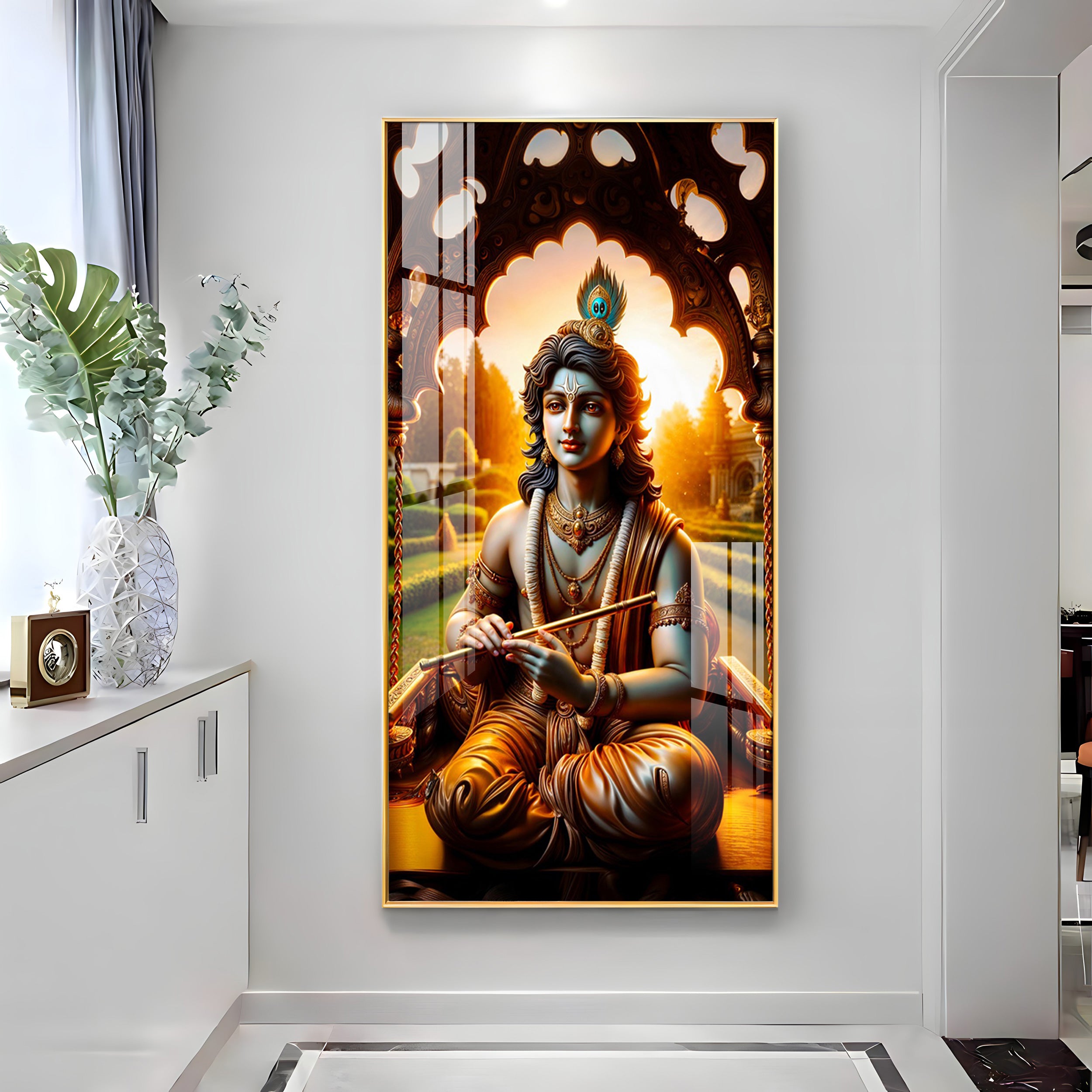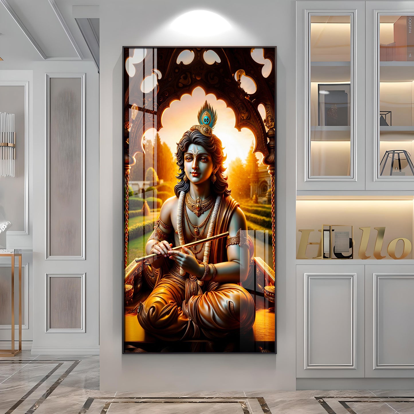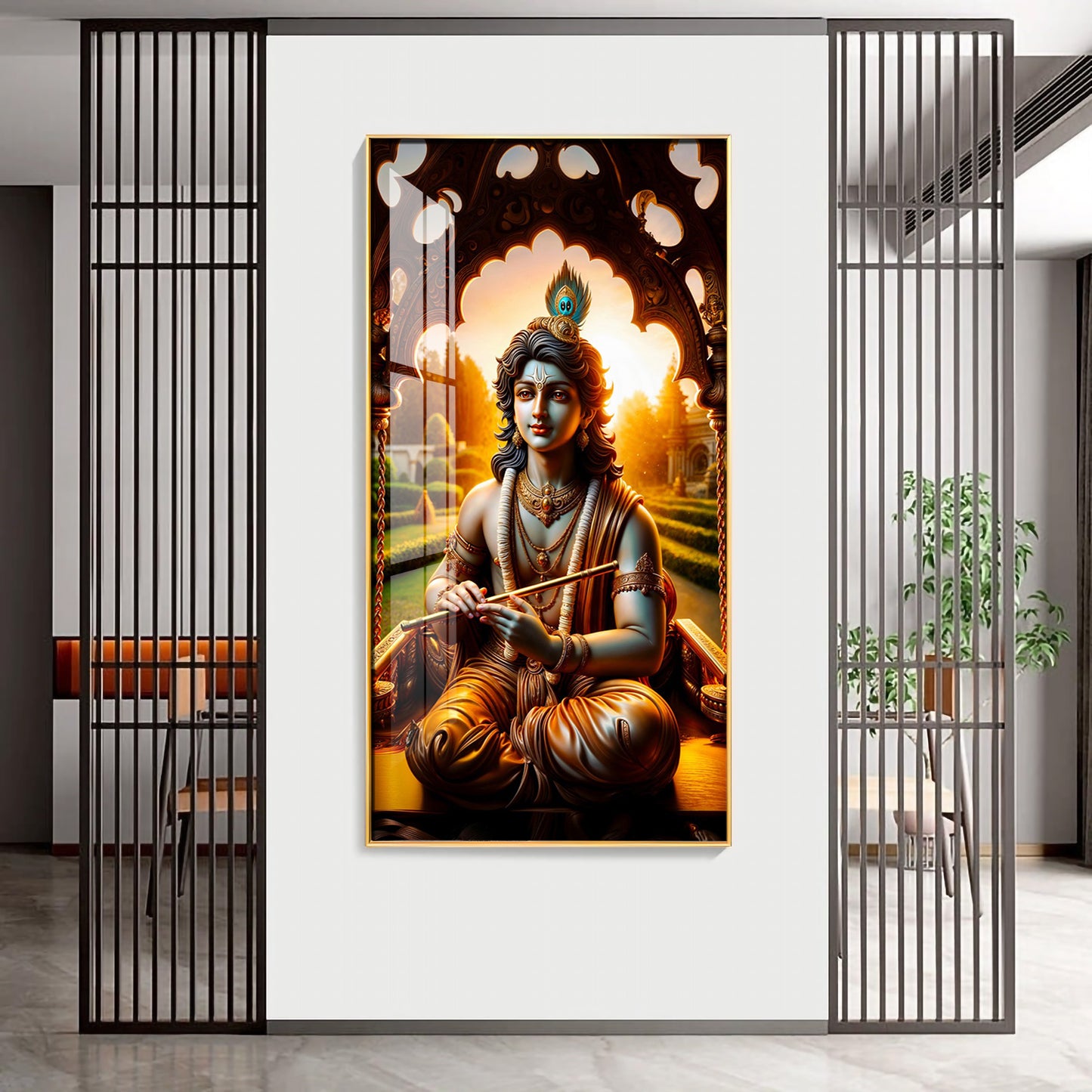 Krishna On His Throne Premium Acrylic Vertical Wall Art