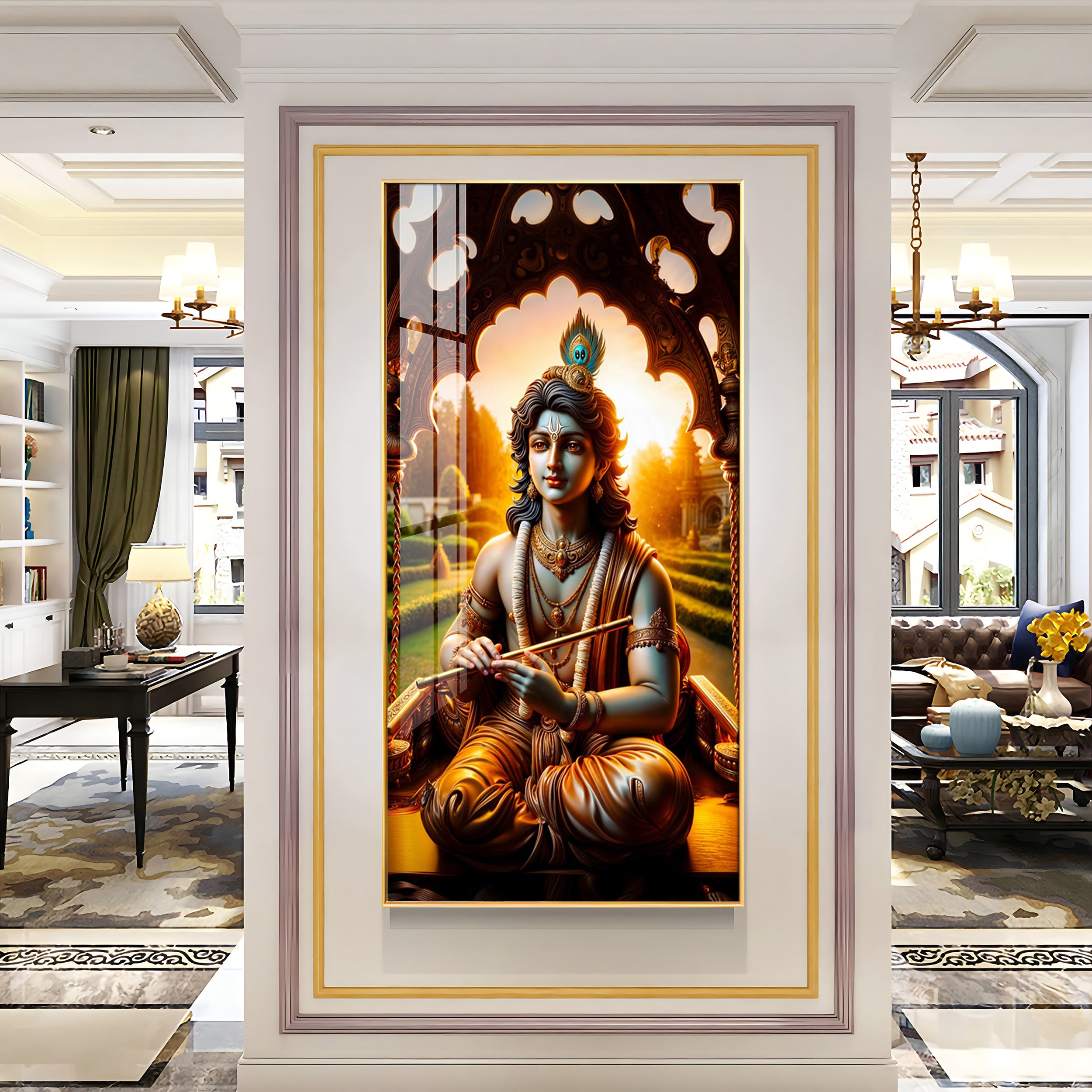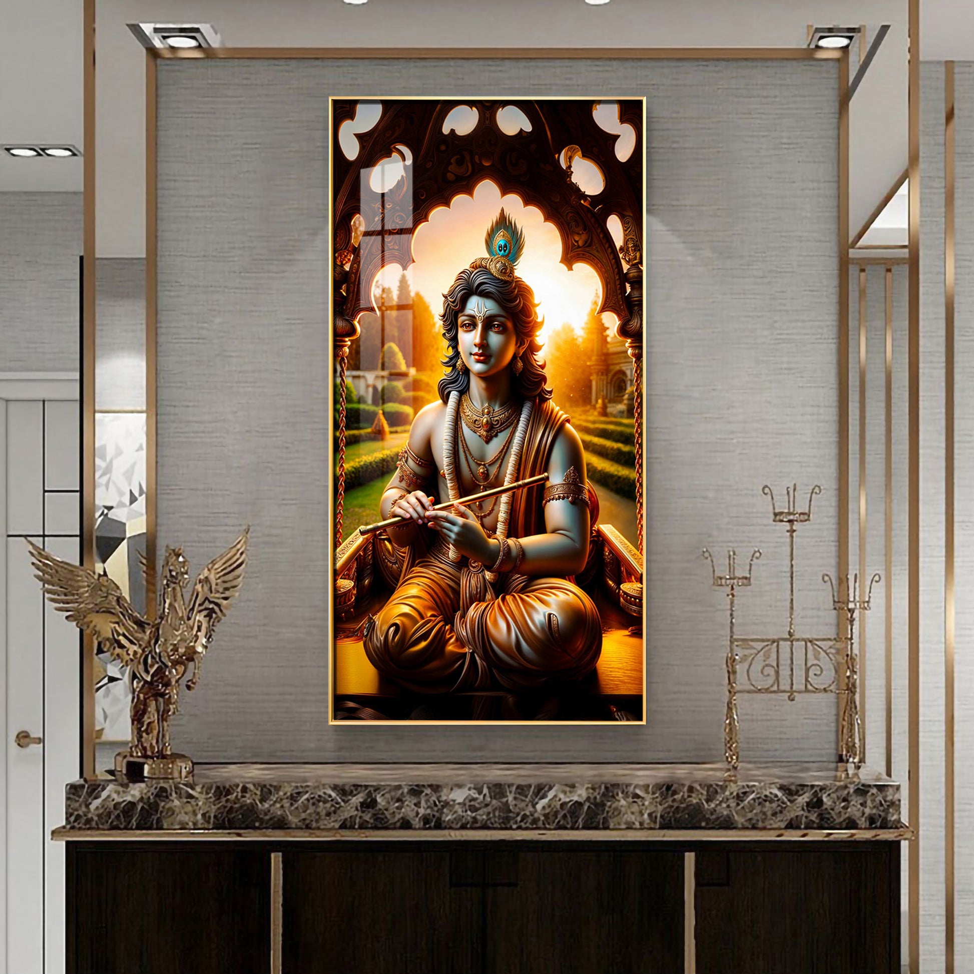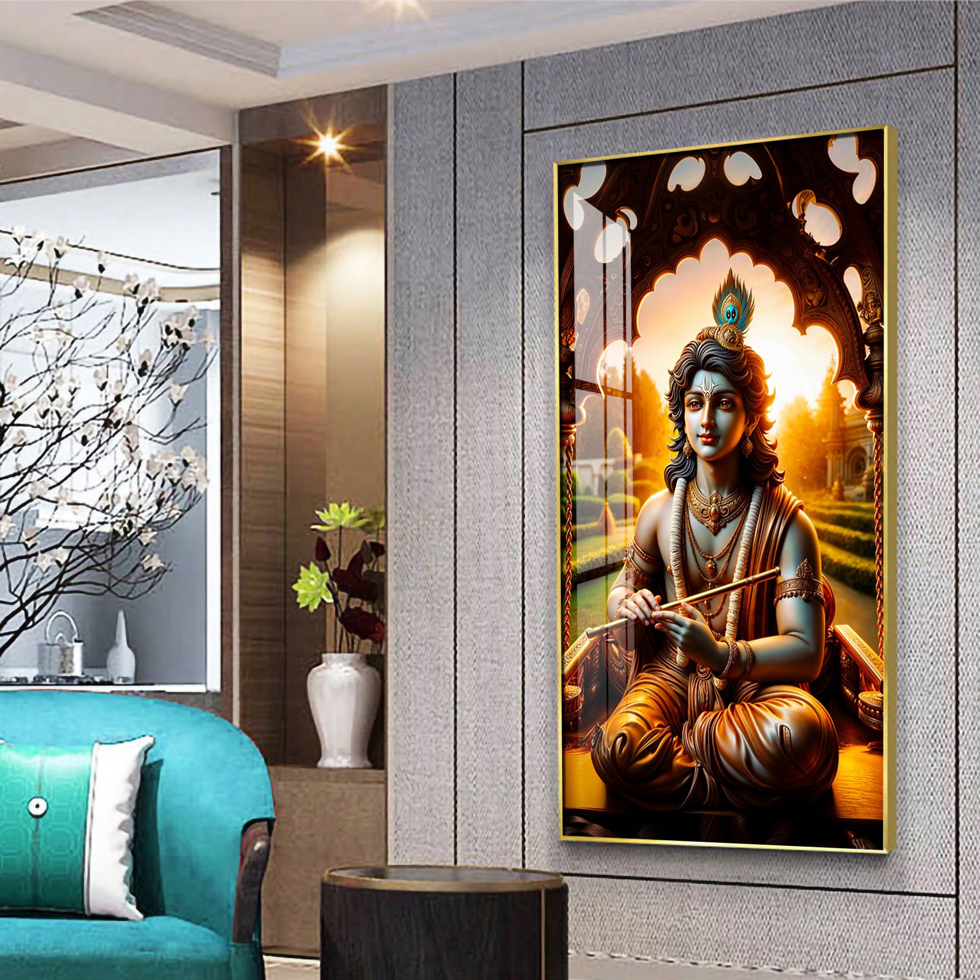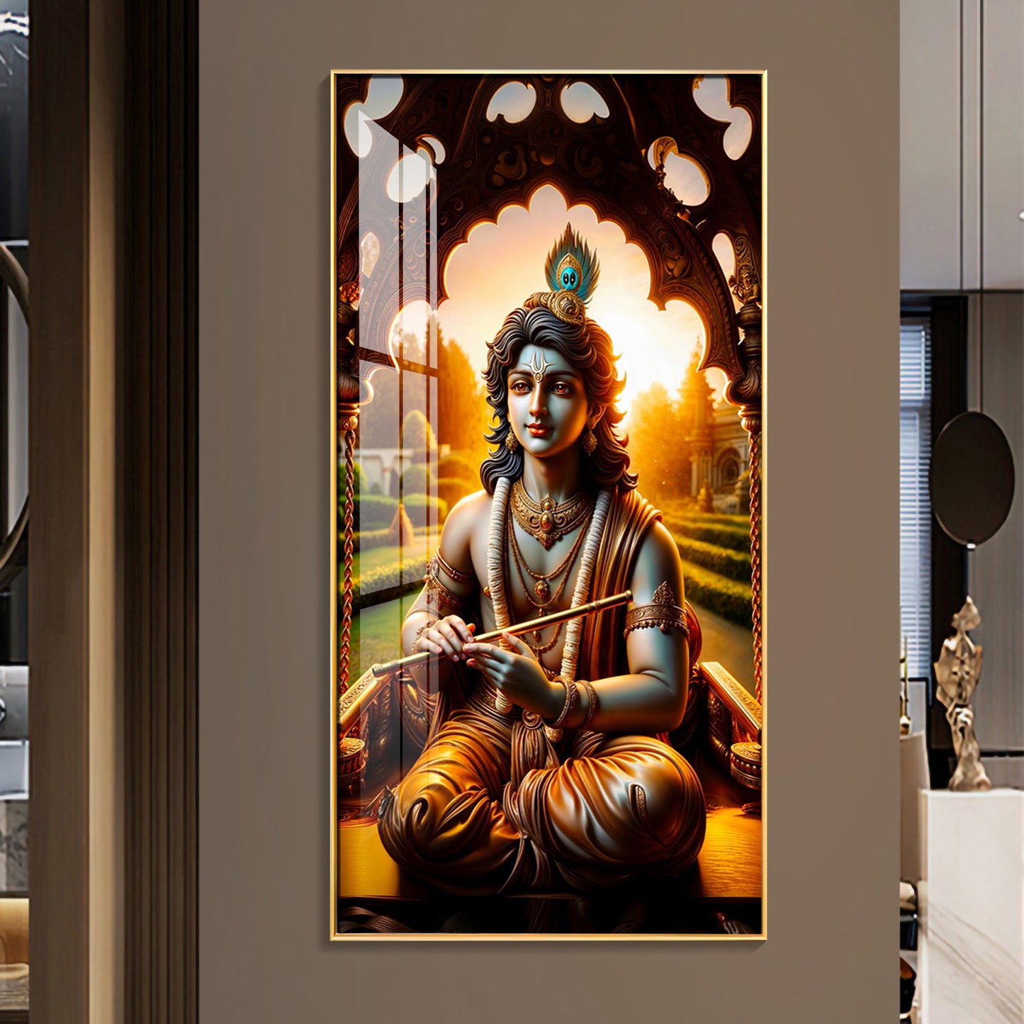 Krishna On His Throne Premium Acrylic Vertical Wall Art