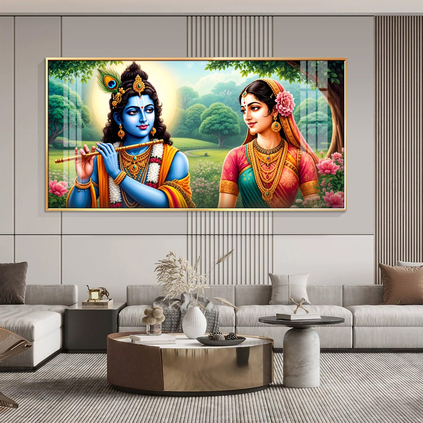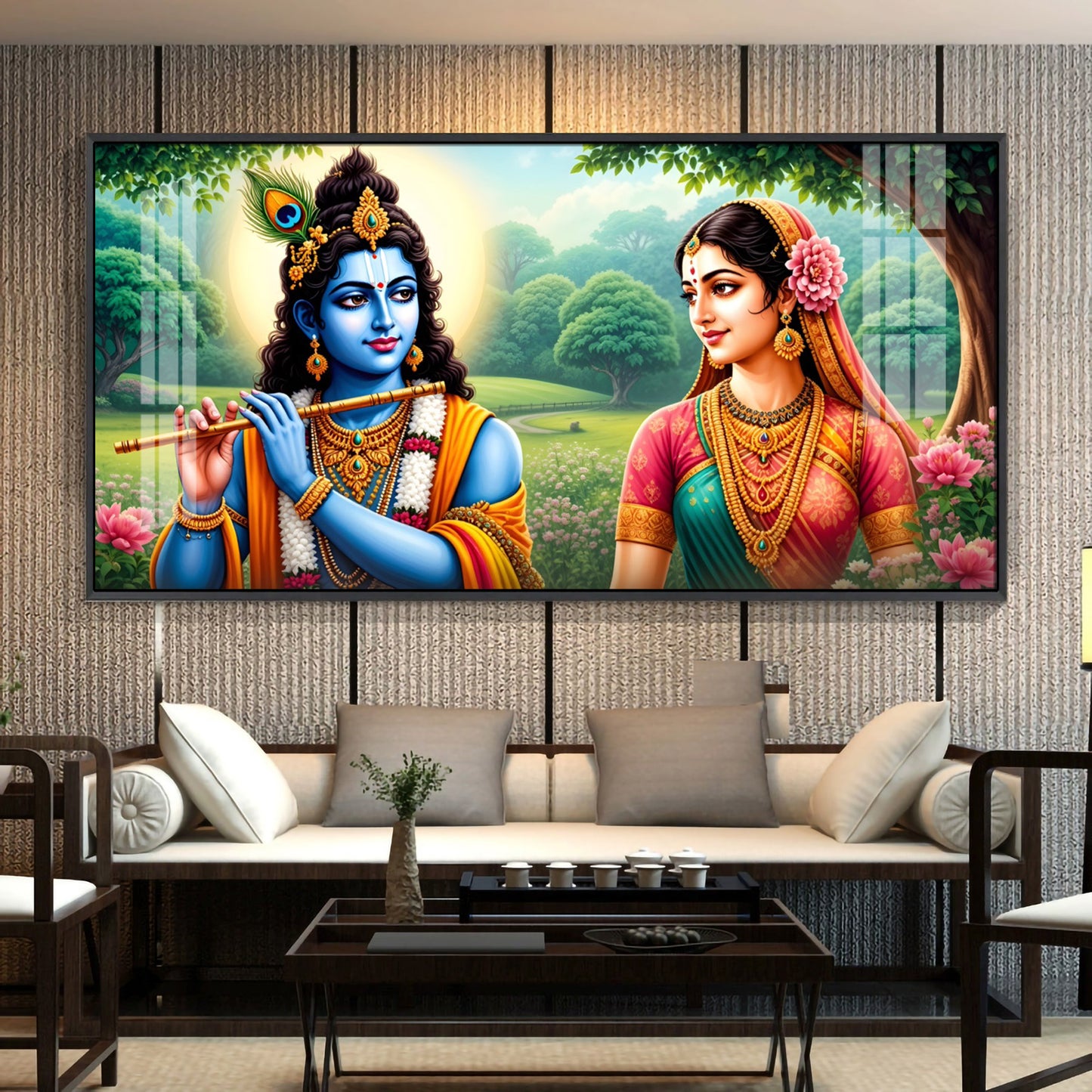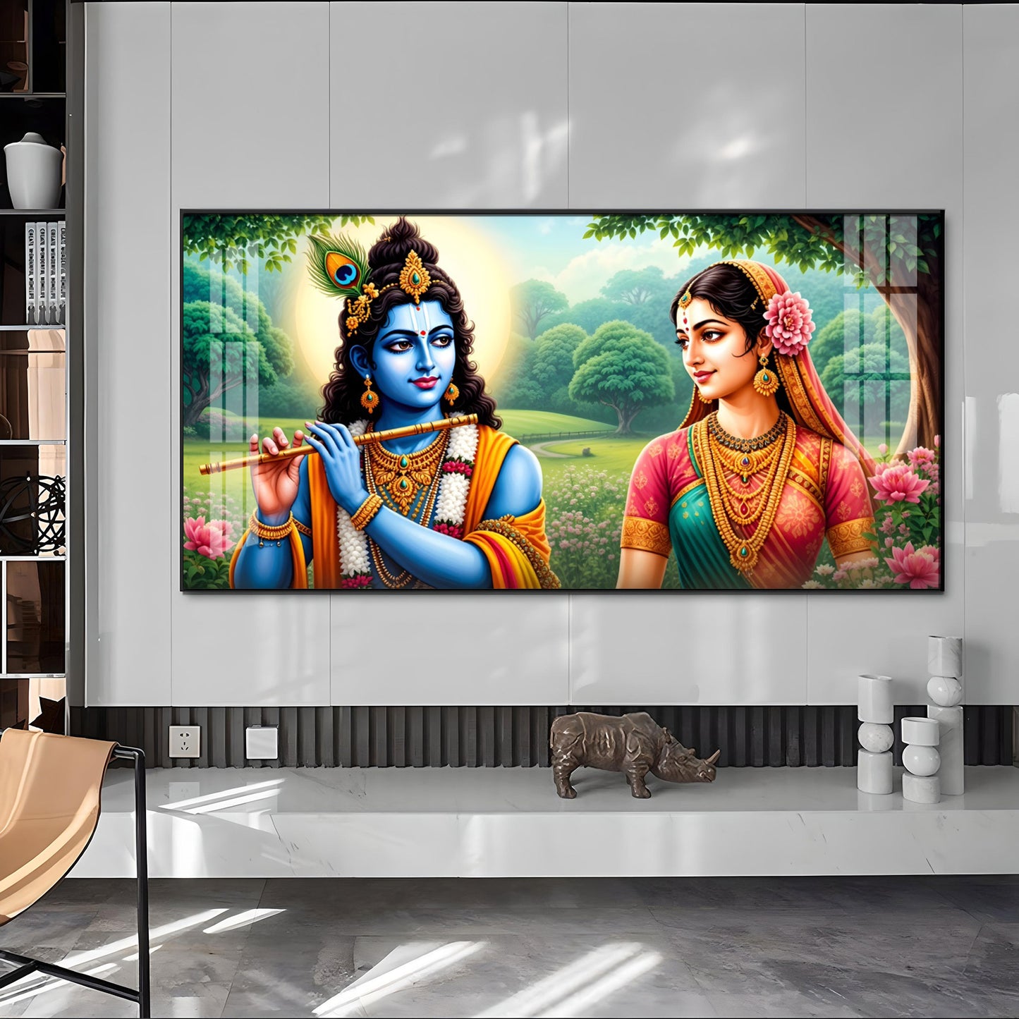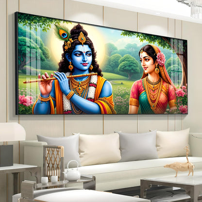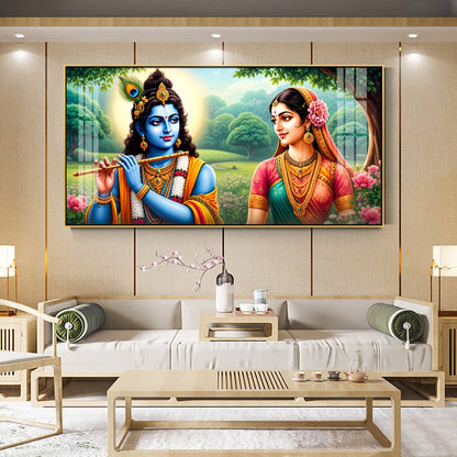 Krishna Playing Flute Premium Acrylic Horizontal Wall Art