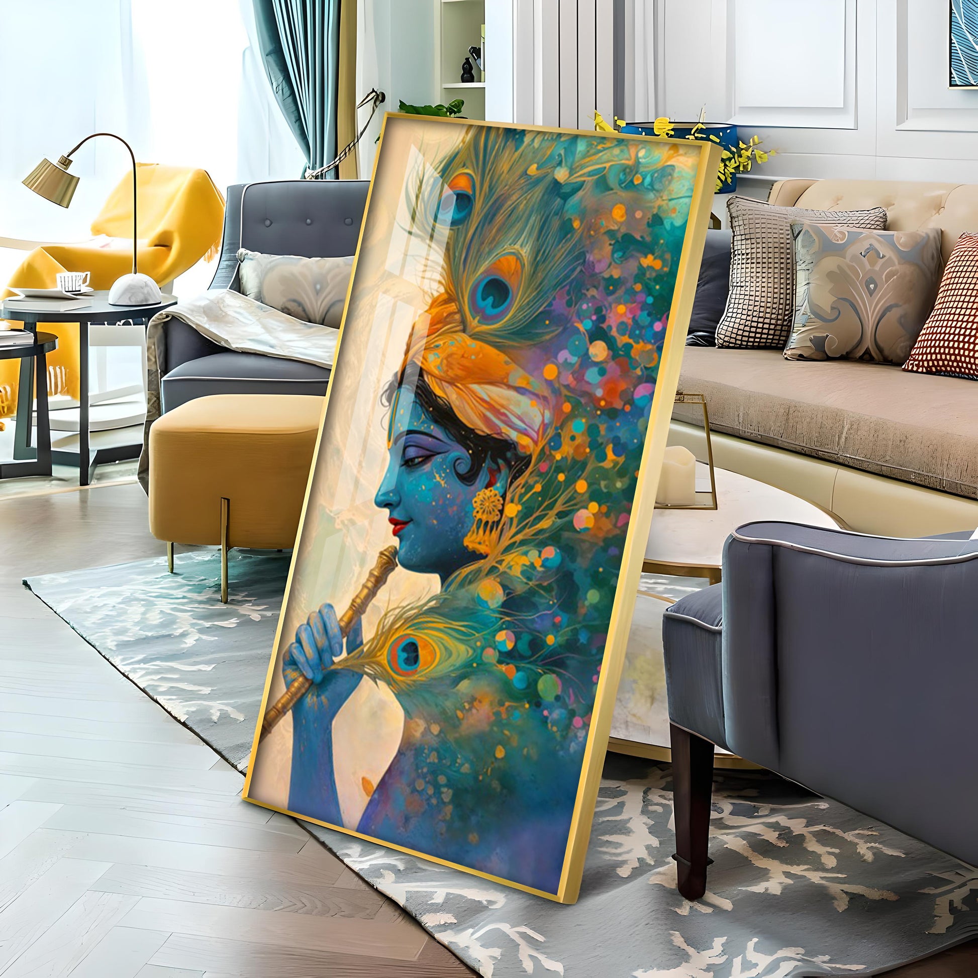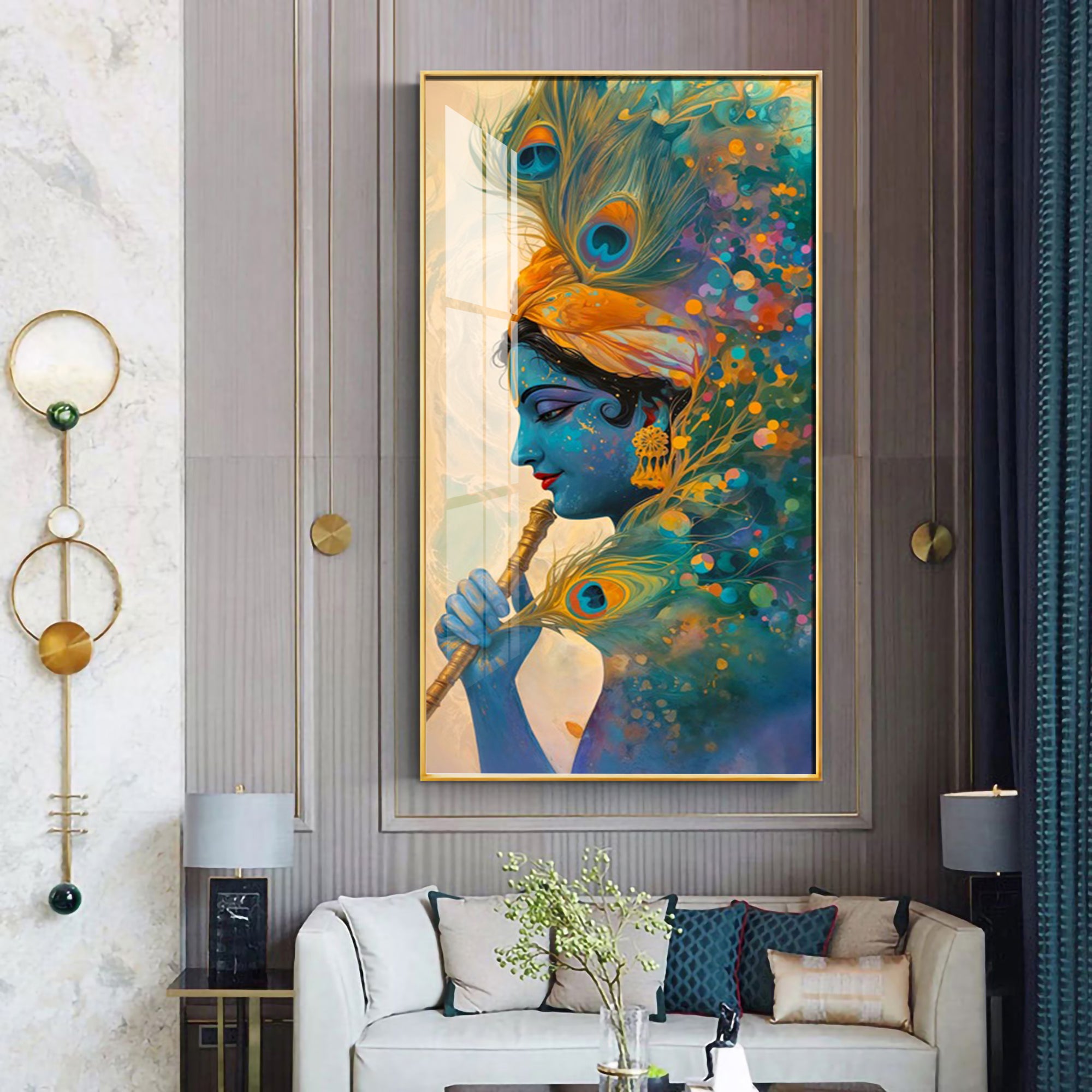Krishna Portrait of Grace Premium Acrylic Vertical Wall Art