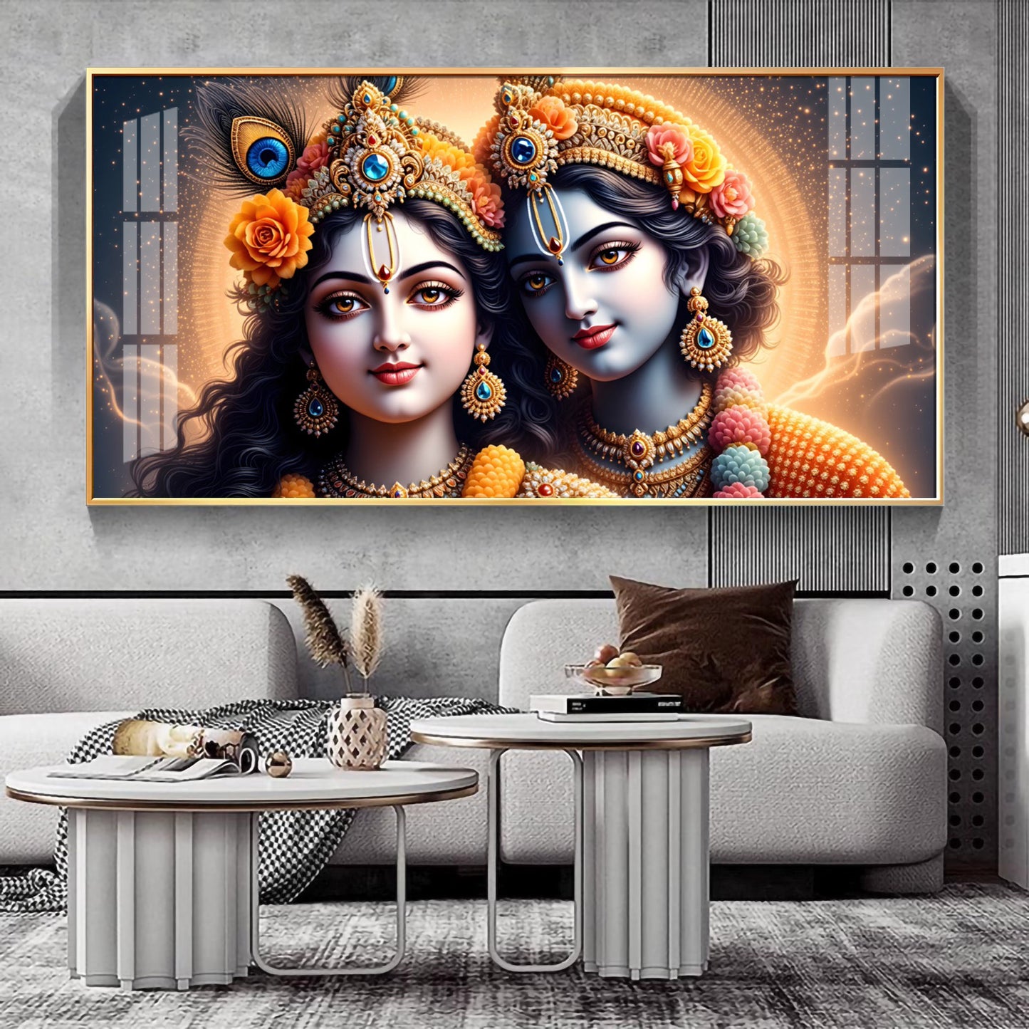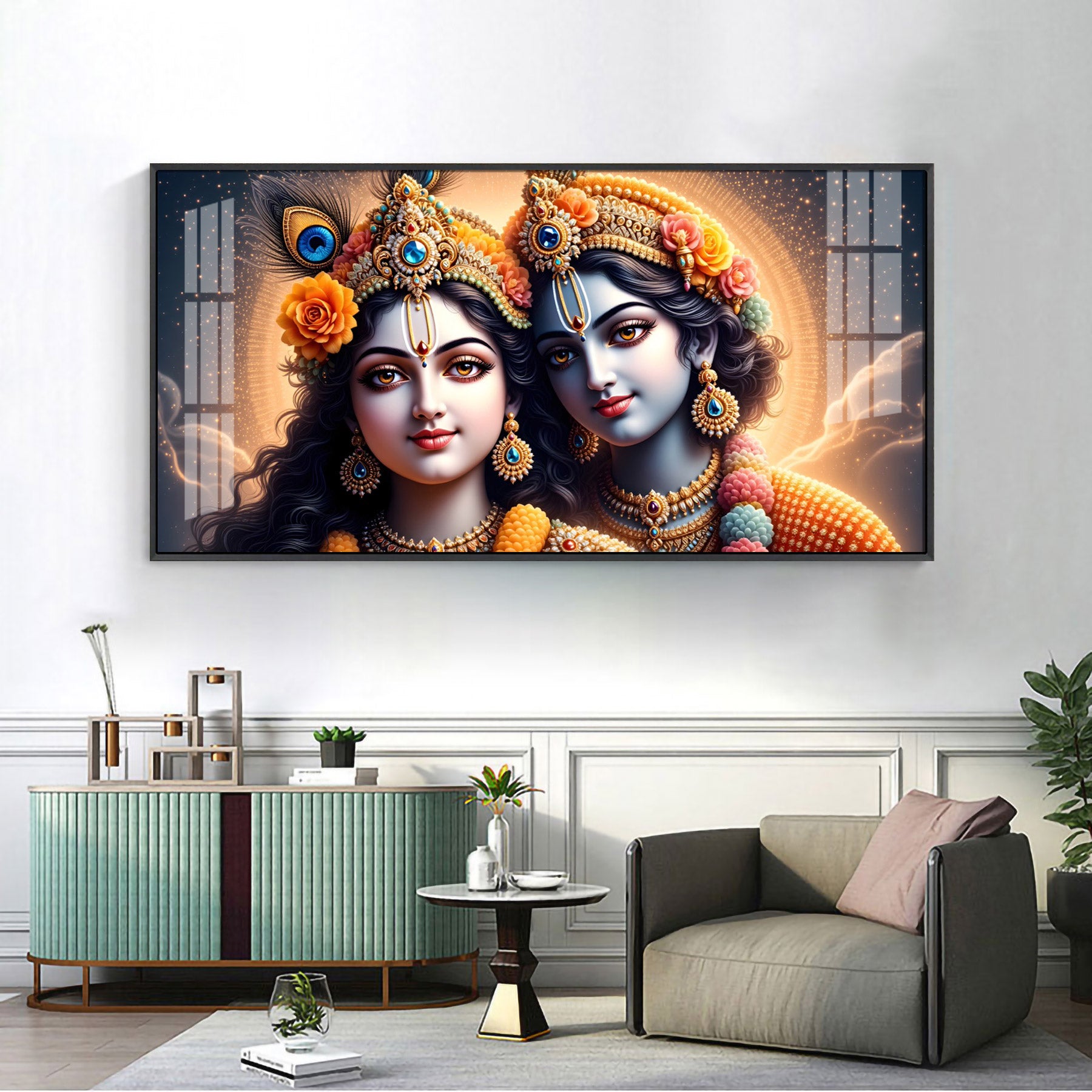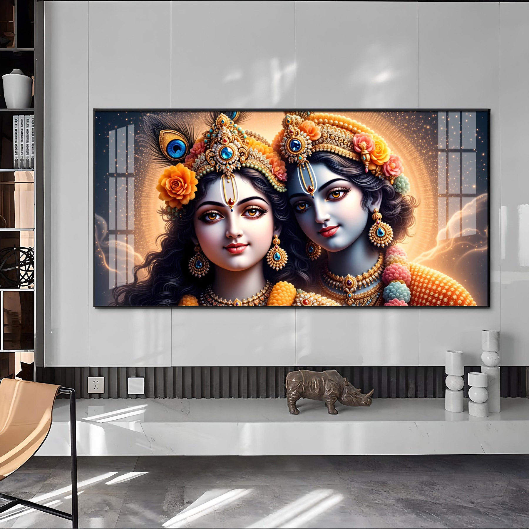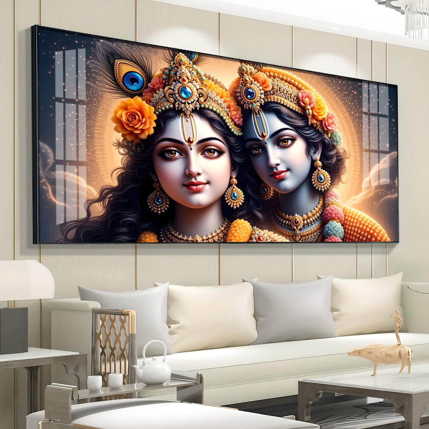 Krishna Radha Colorful Diadem Premium Acrylic Horizontal Wall Art
