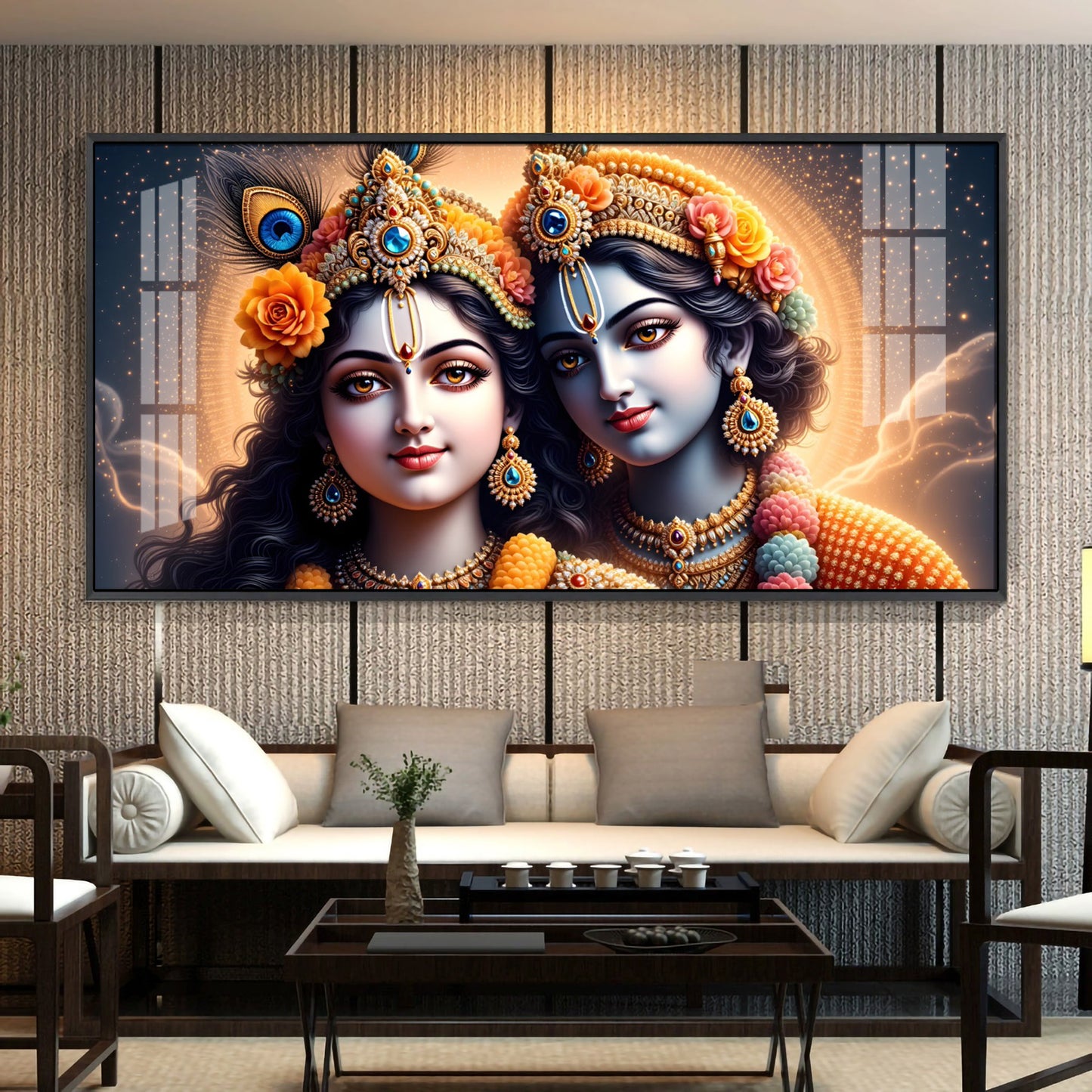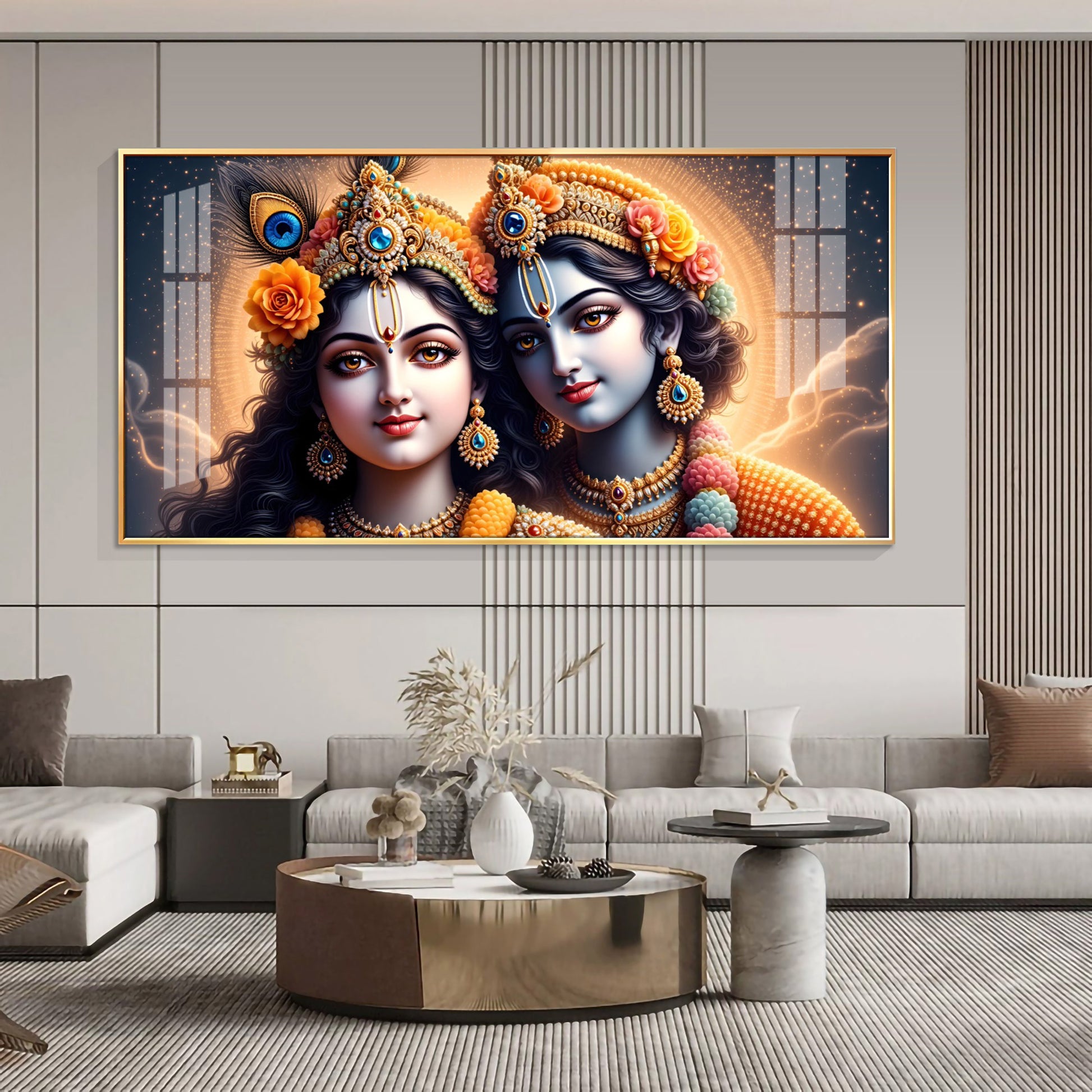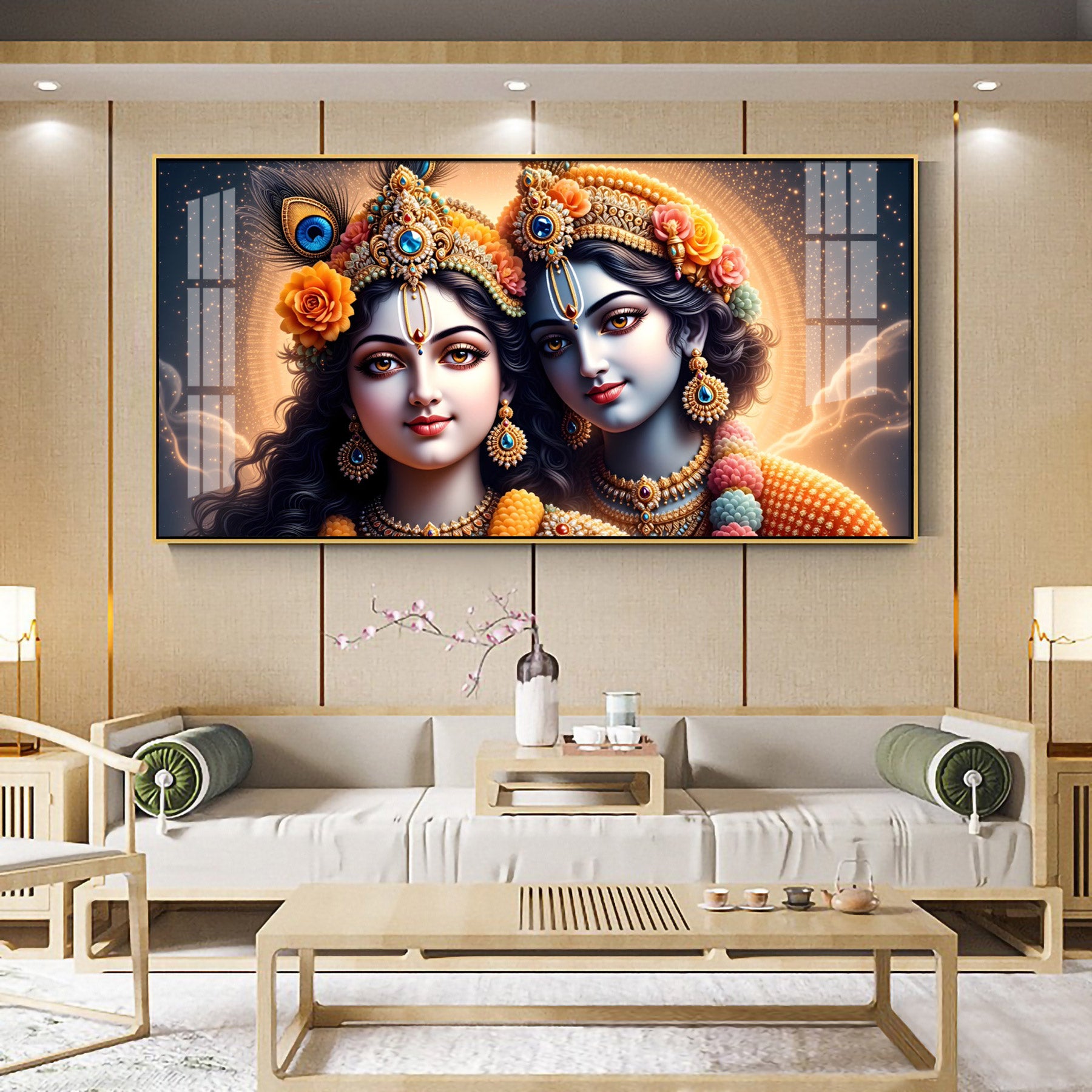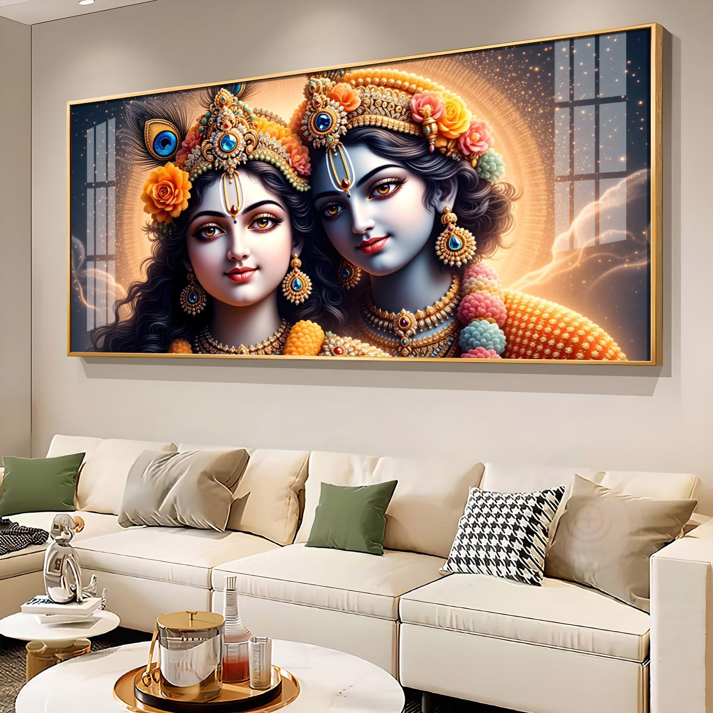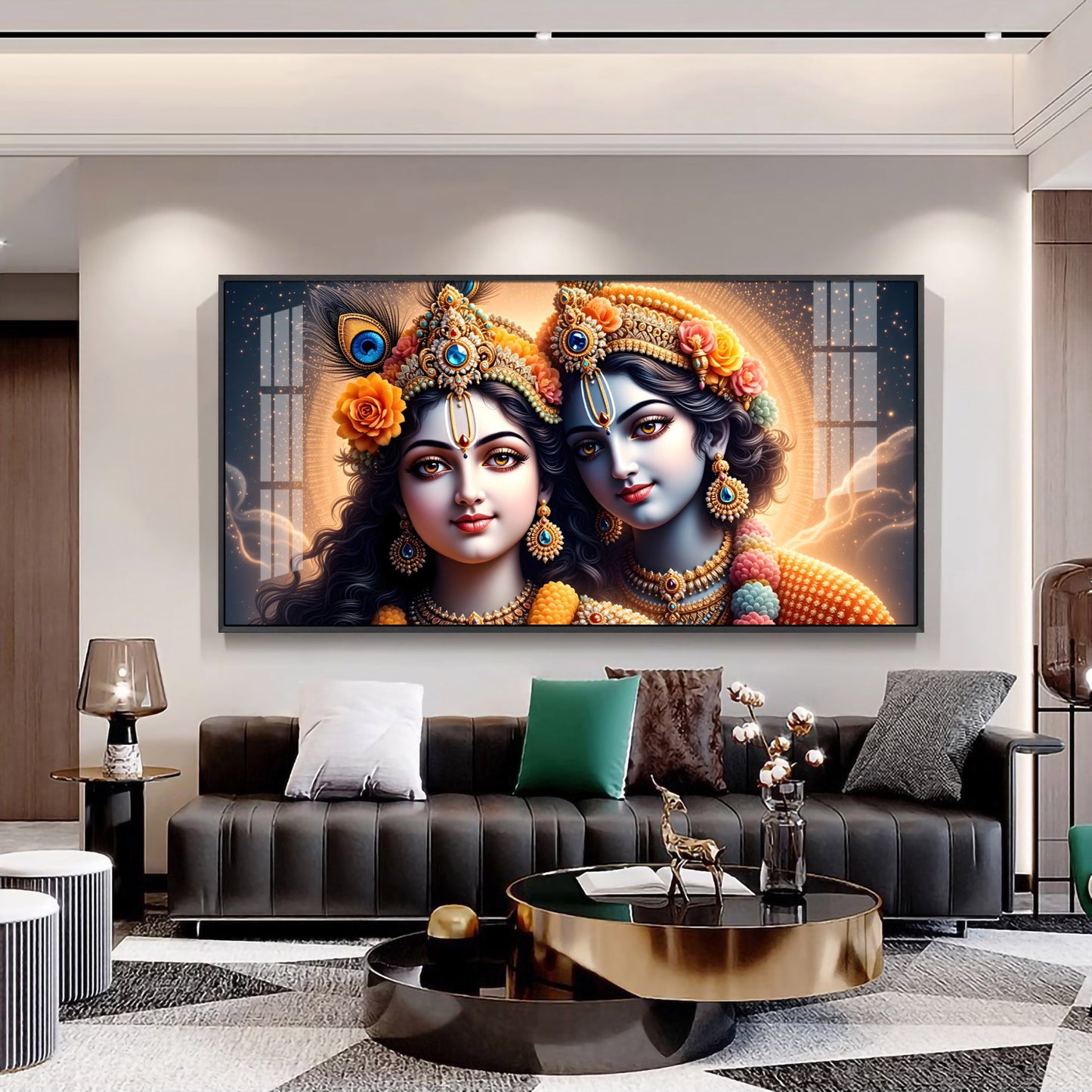 Krishna Radha Colorful Diadem Premium Acrylic Horizontal Wall Art