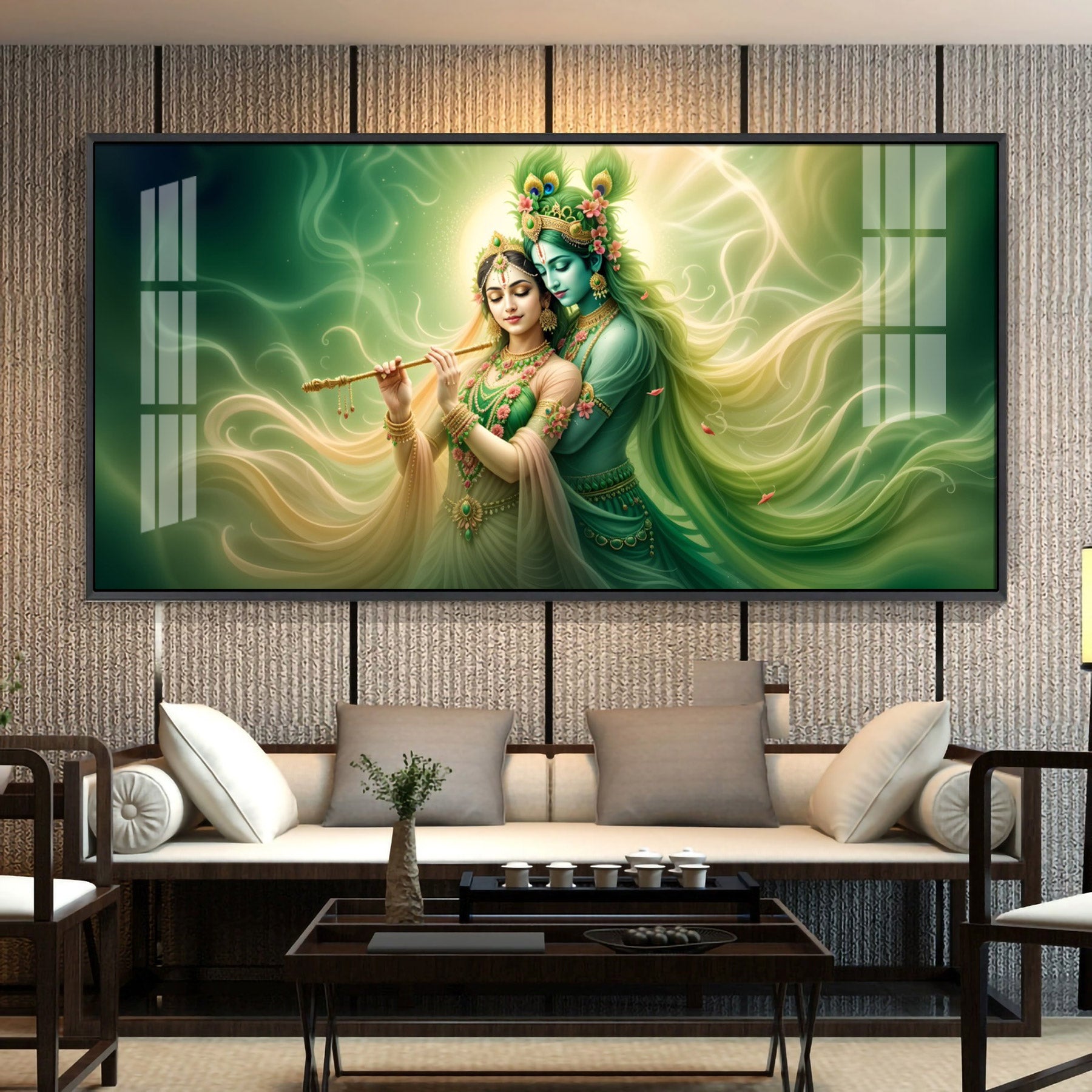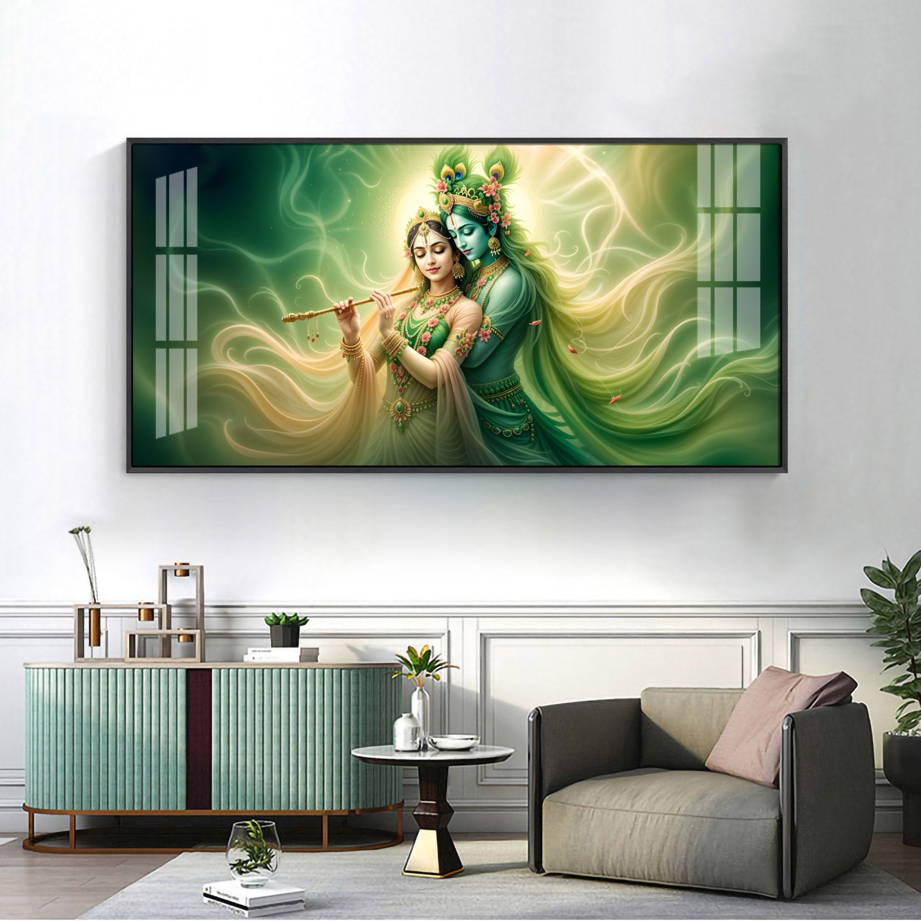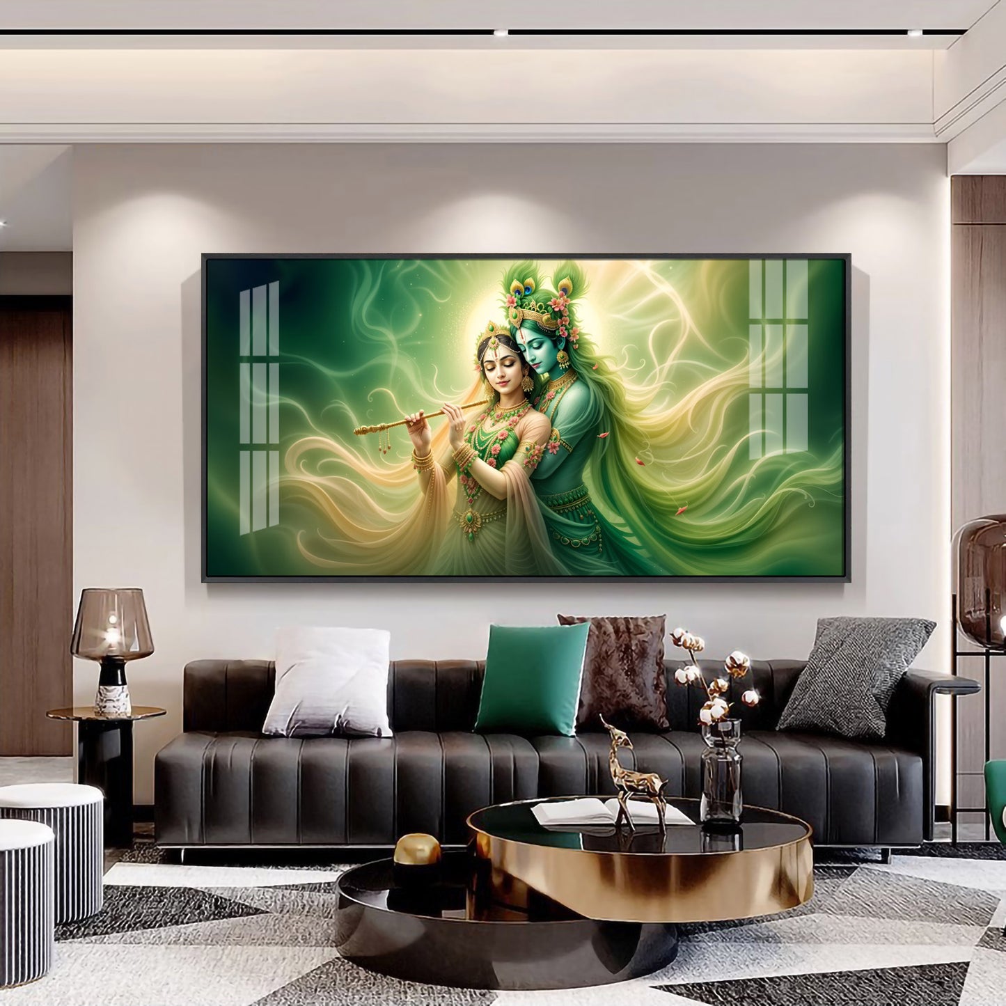 Krishna Radha Divine Connection Premium Acrylic Horizontal Wall Art