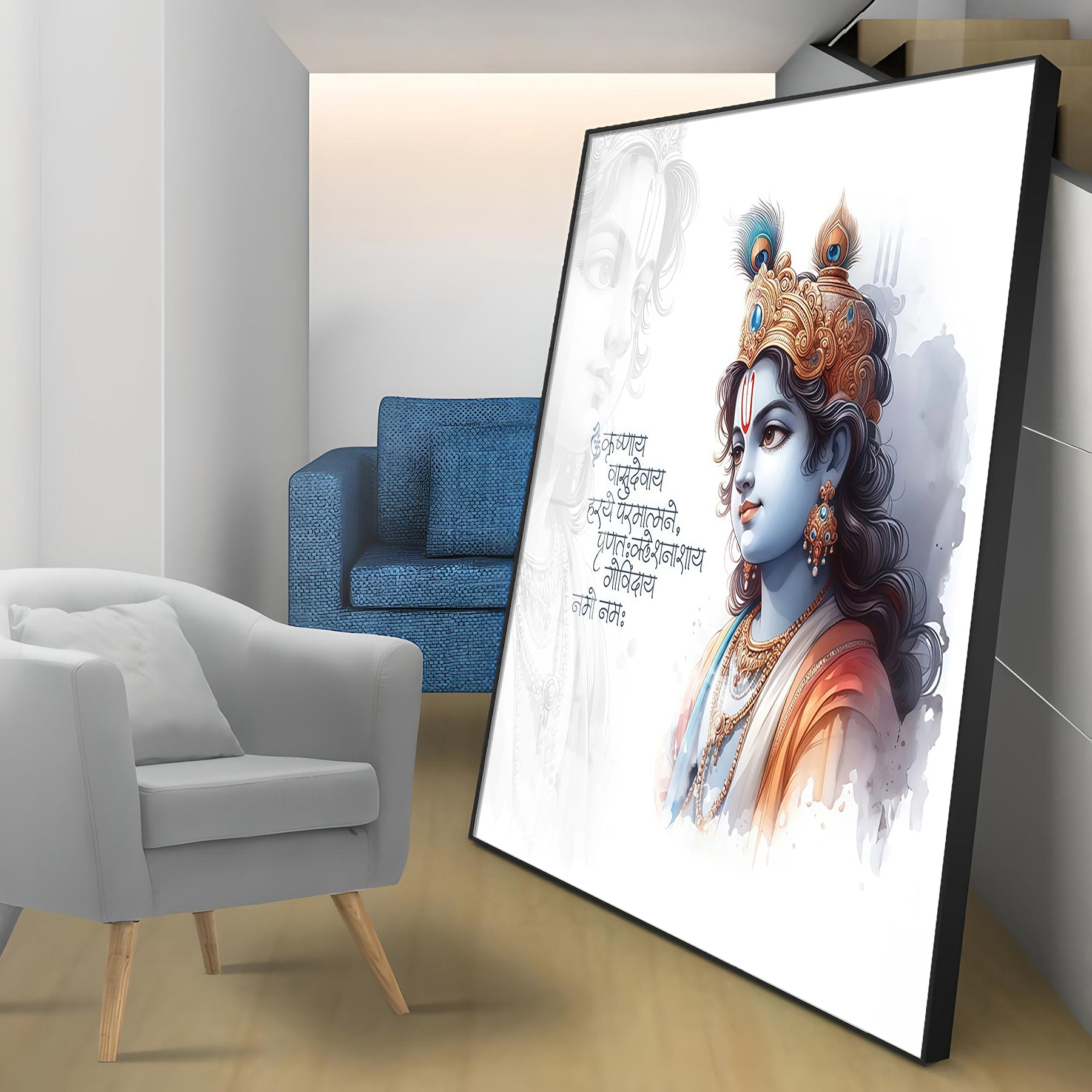 Krishna With Powerful Mantra Premium Acrylic Square Wall Art