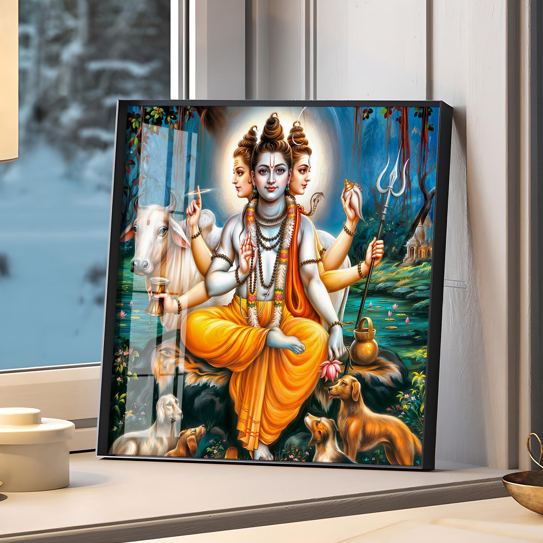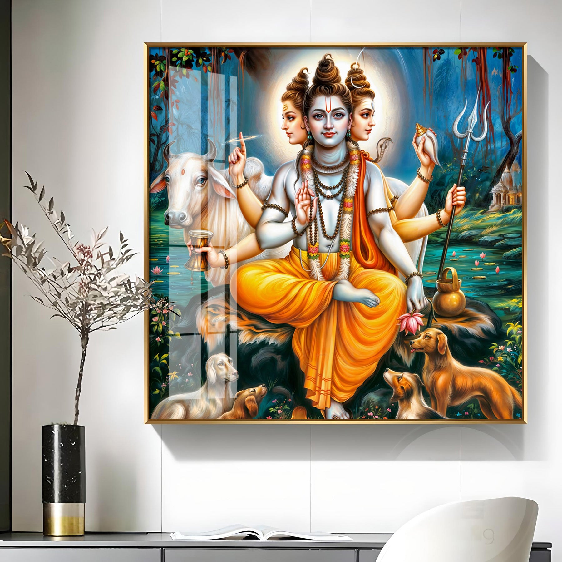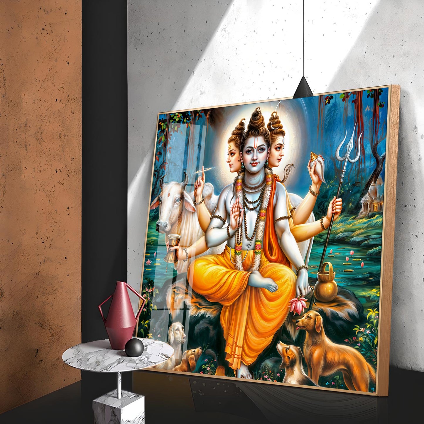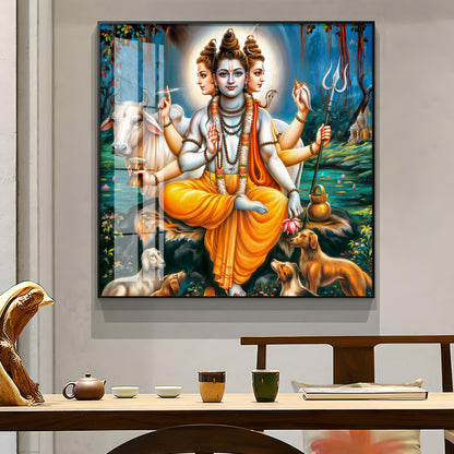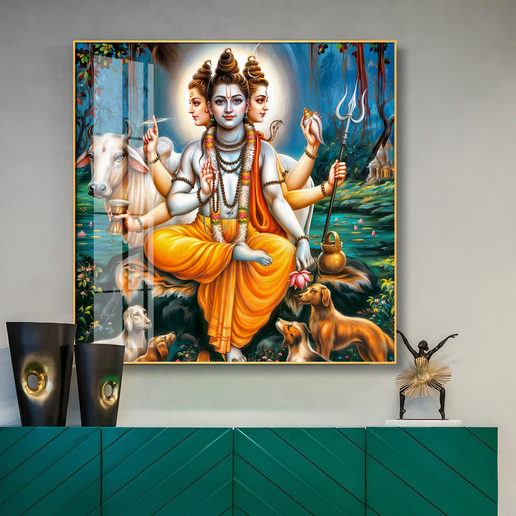 Lord Dattatreya Premium Acrylic Square Wall Art