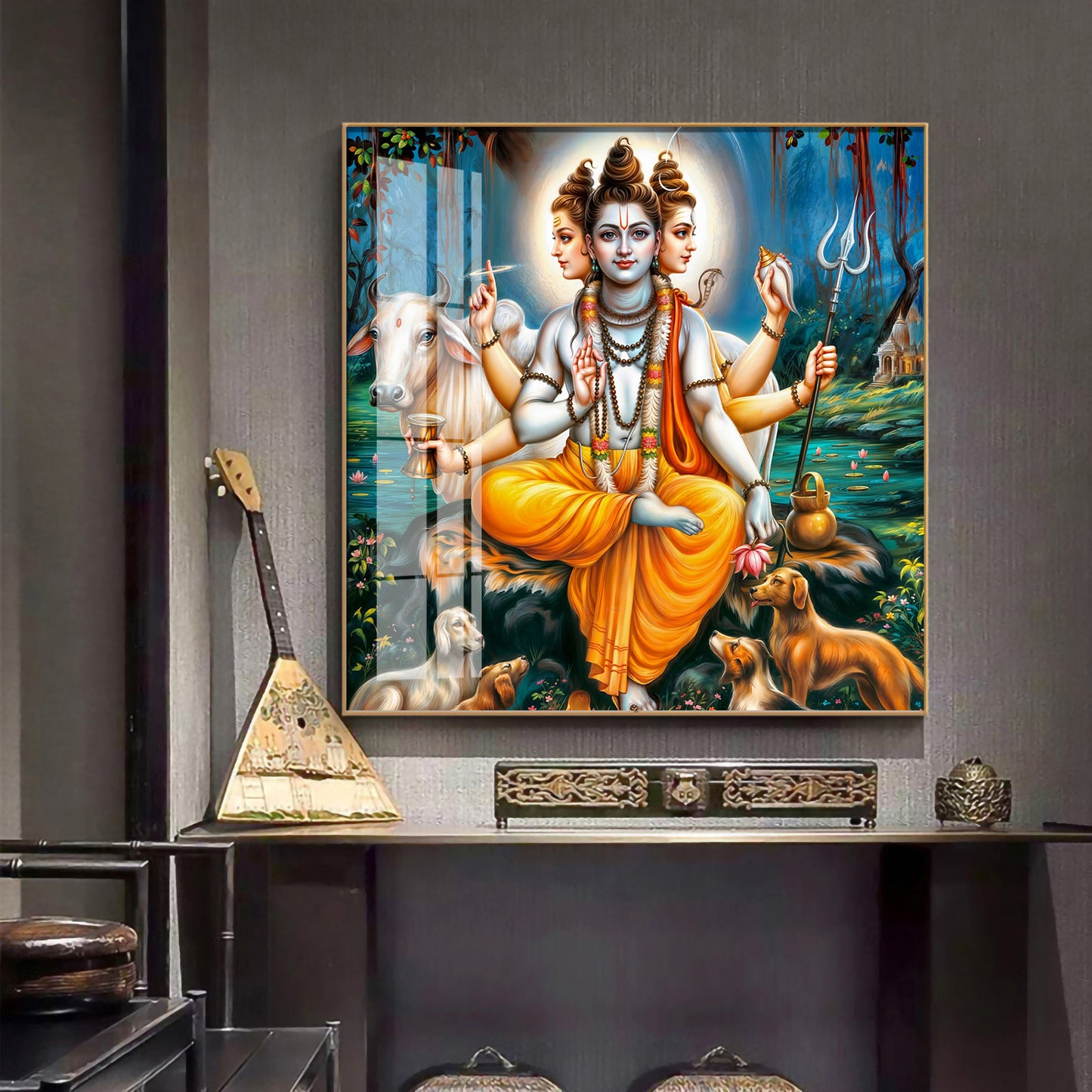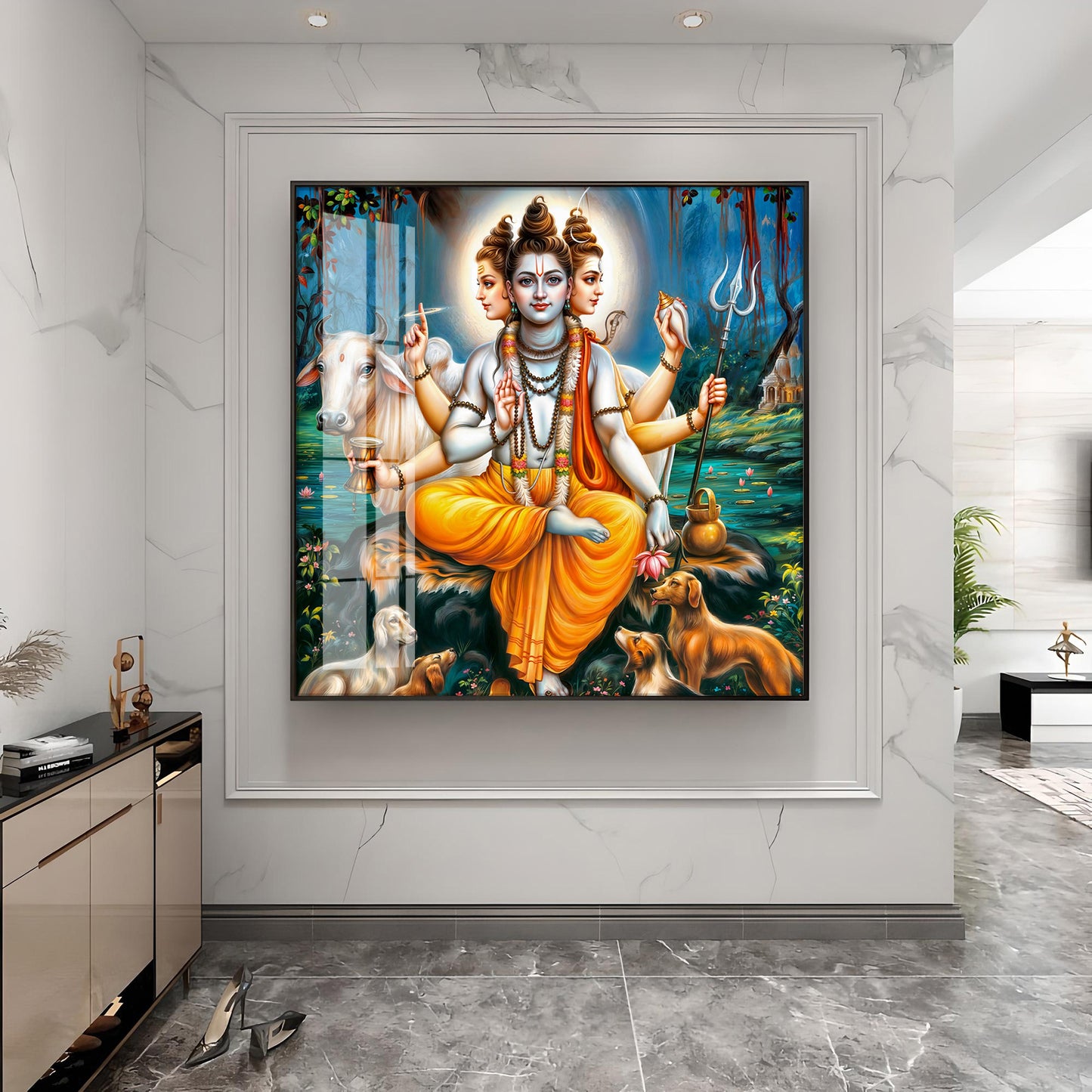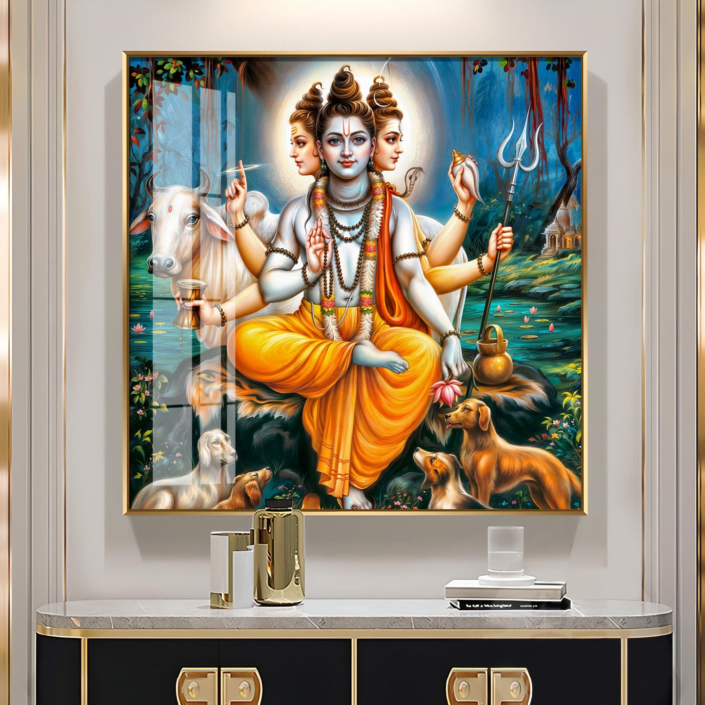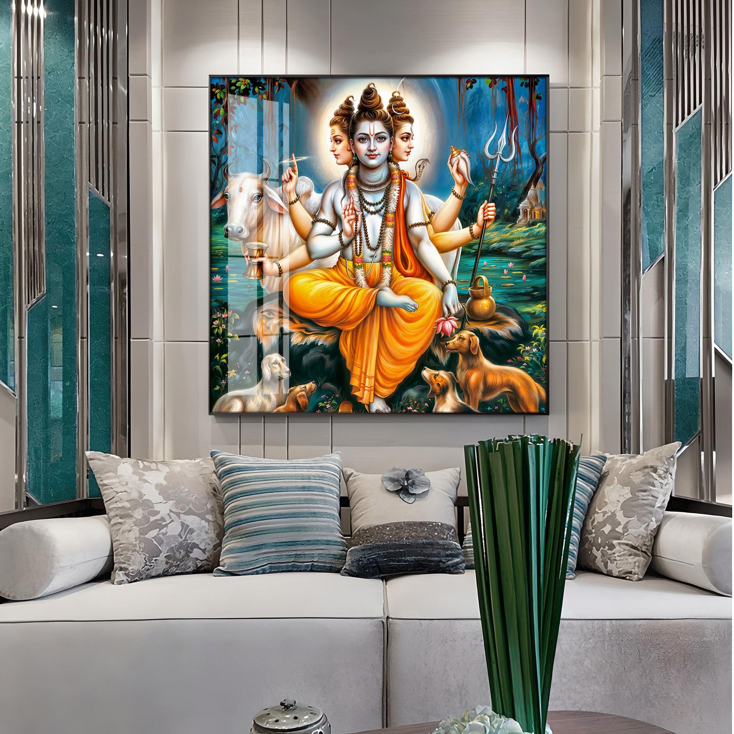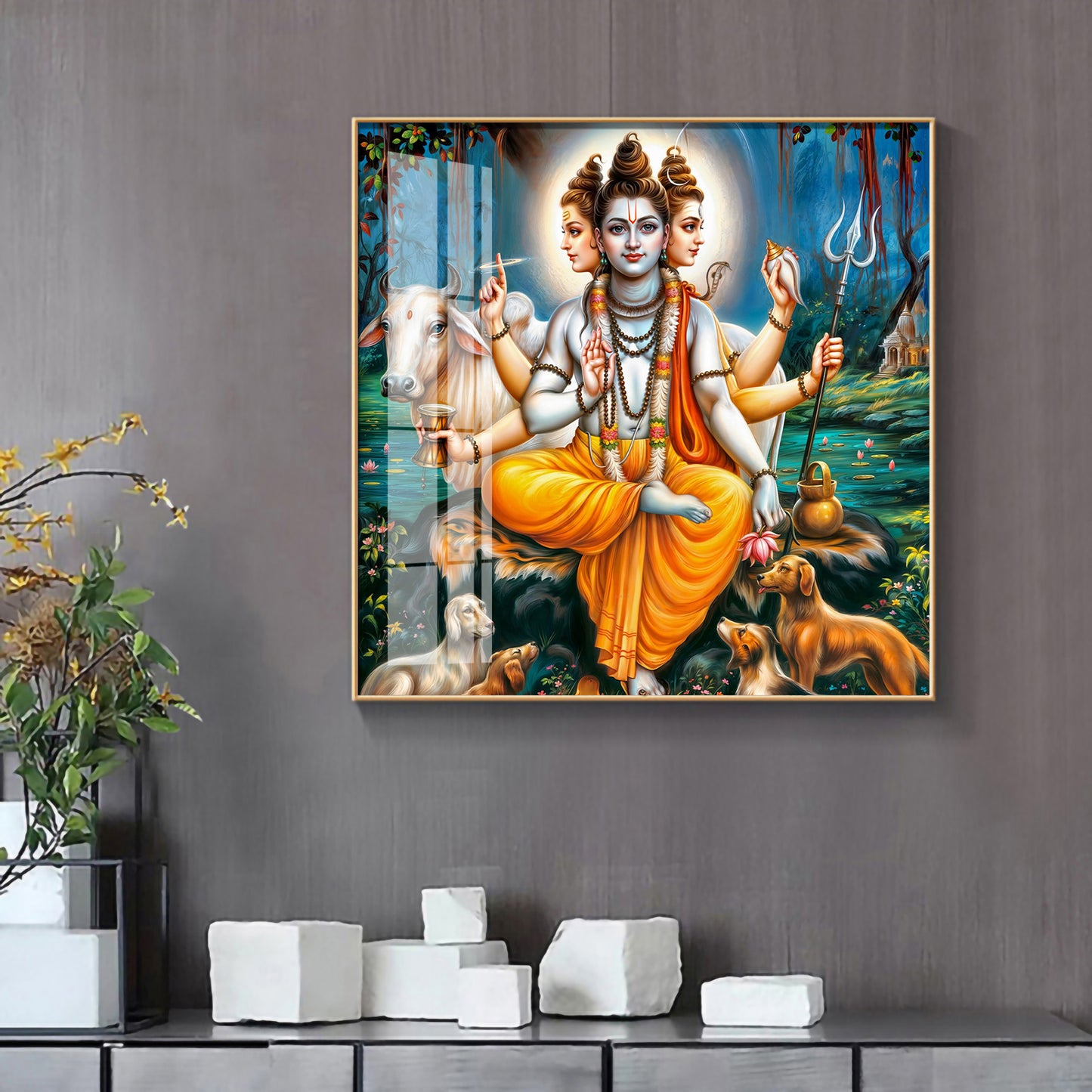 Lord Dattatreya Premium Acrylic Square Wall Art
