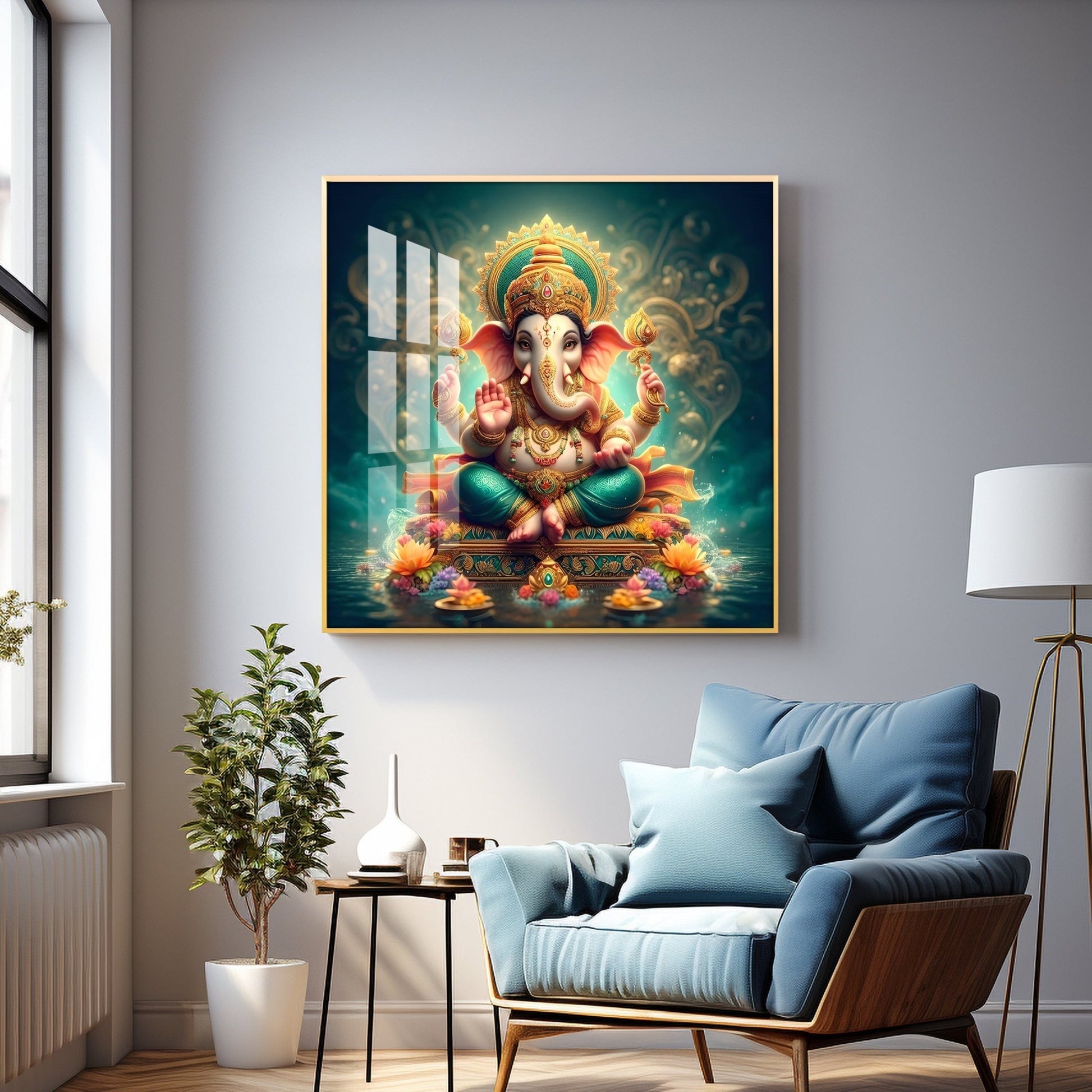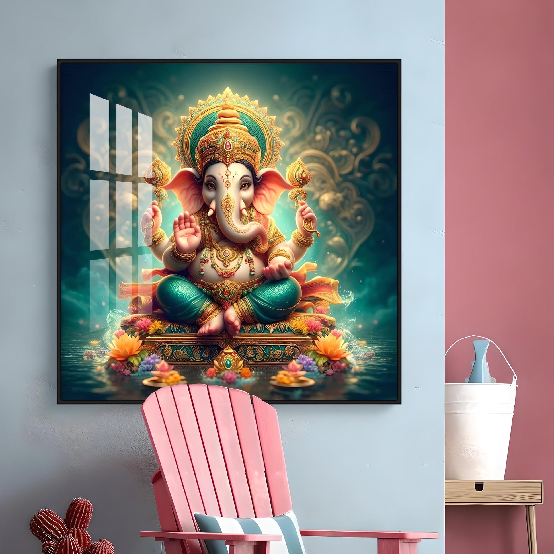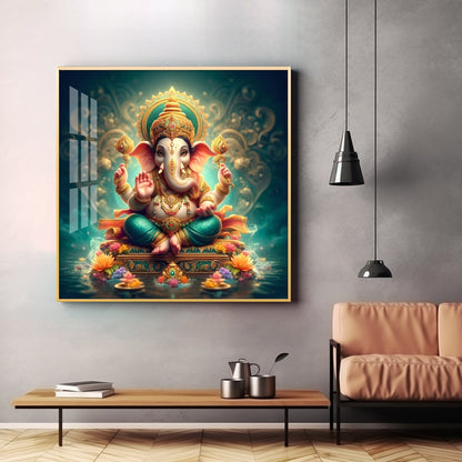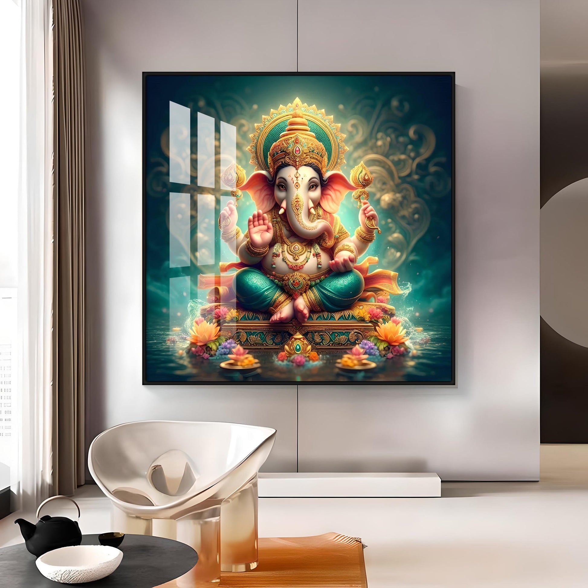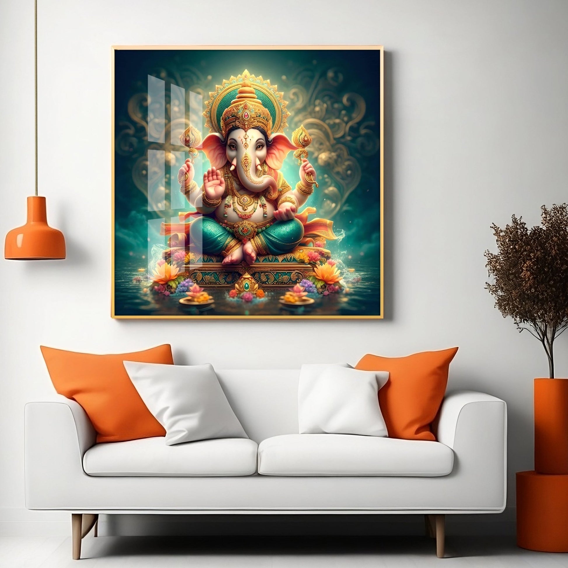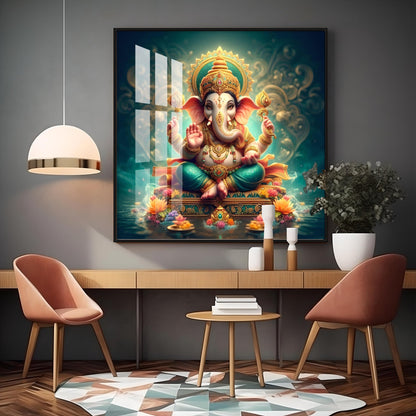 Lord Ganesh Blessings Premium Acrylic Square Wall Art
