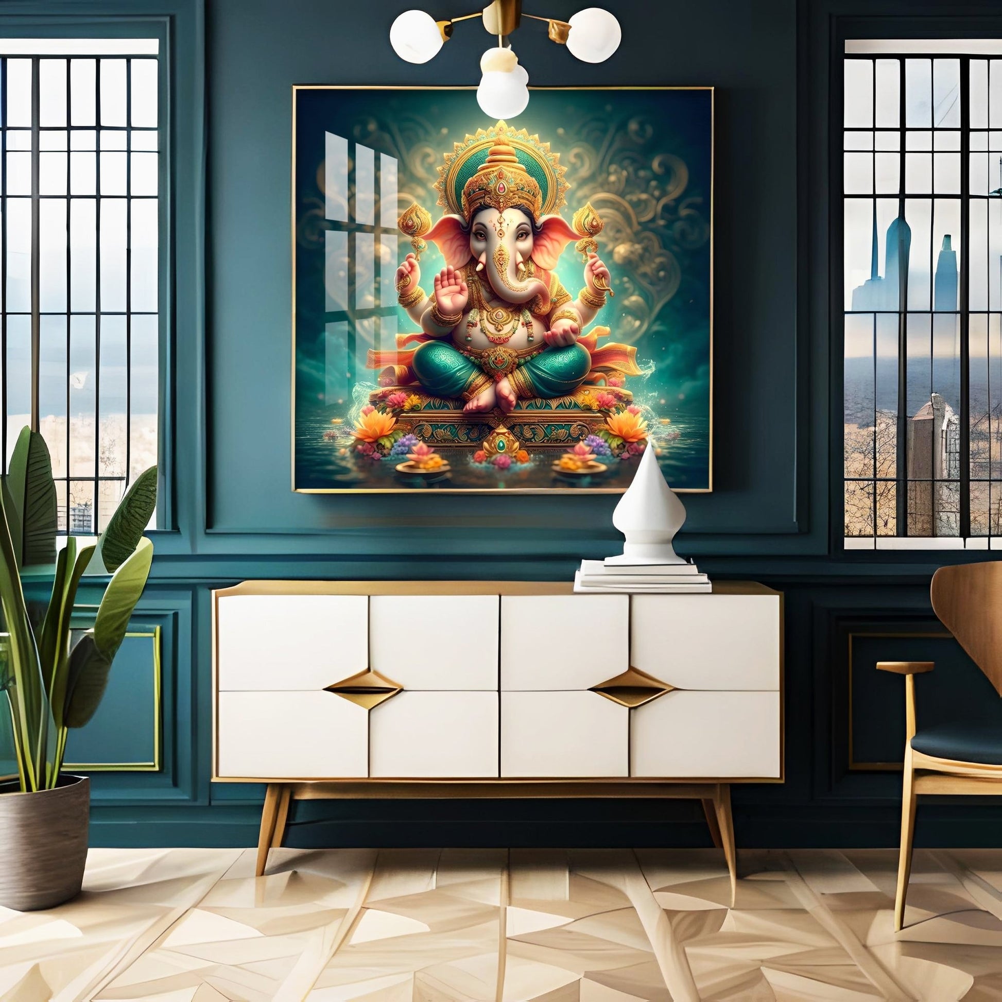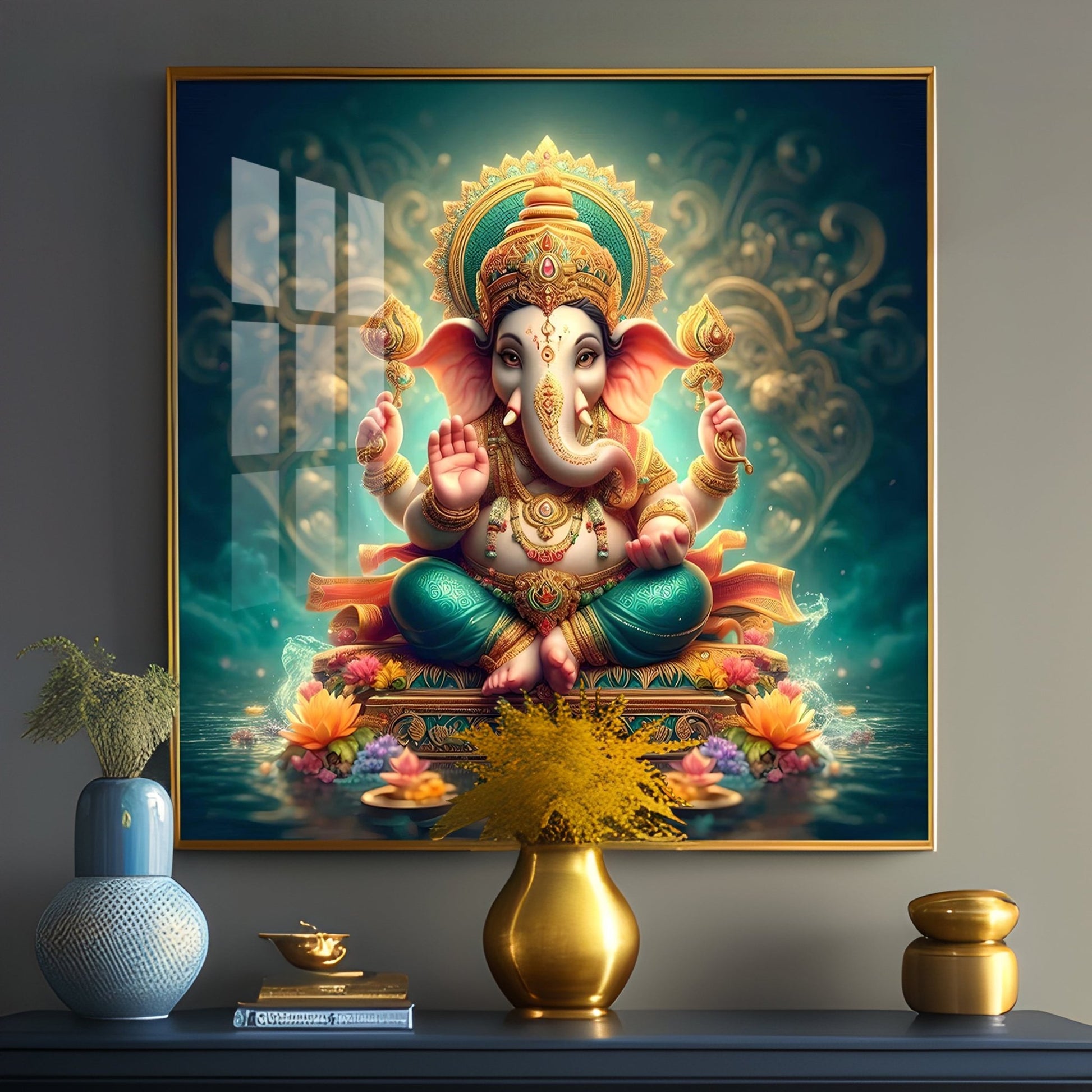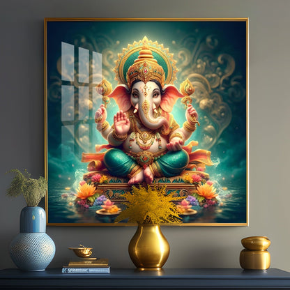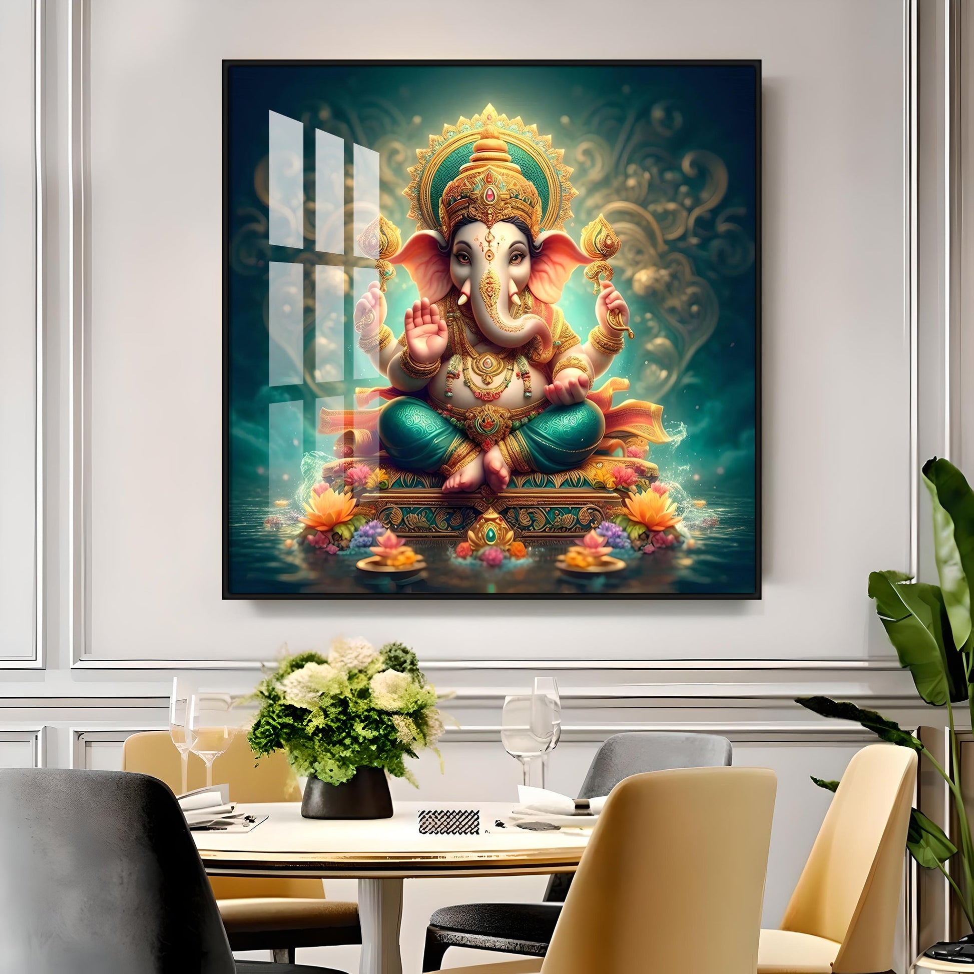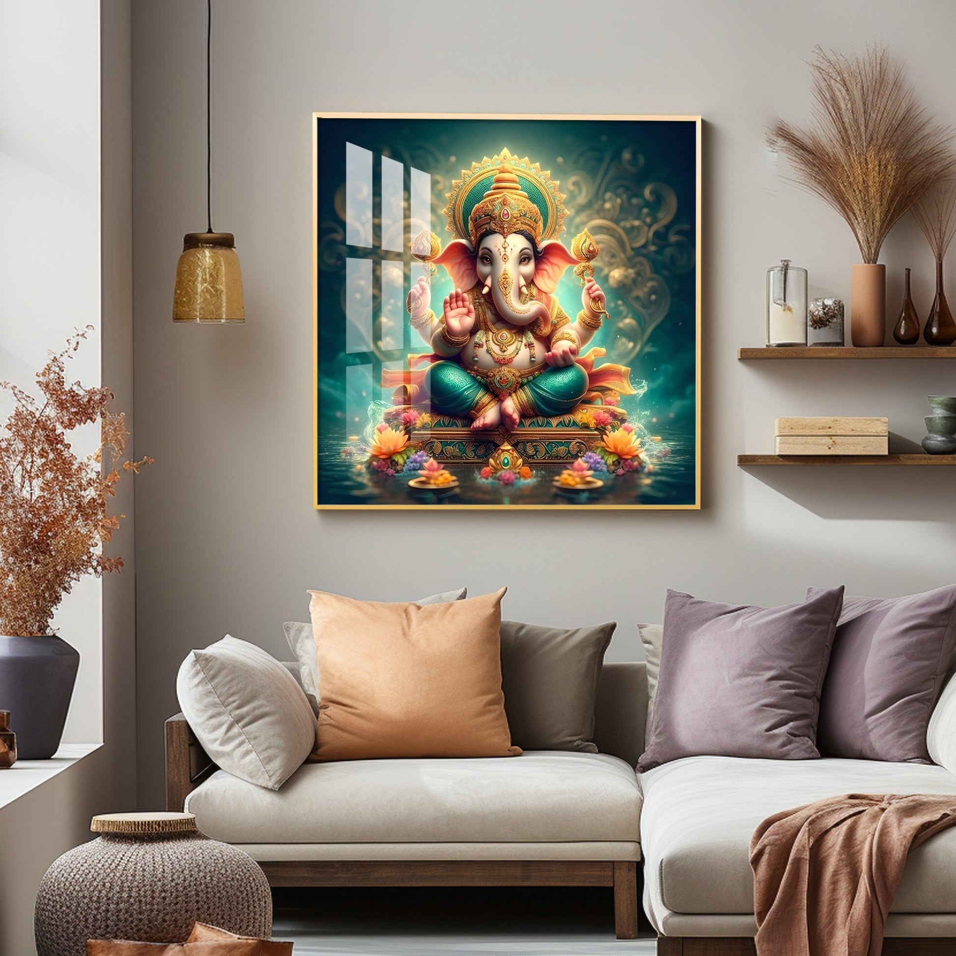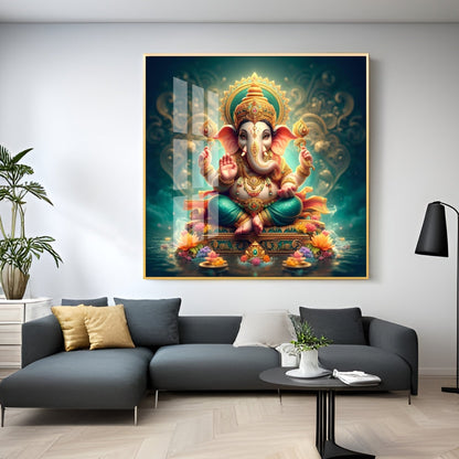 Lord Ganesh Blessings Premium Acrylic Square Wall Art