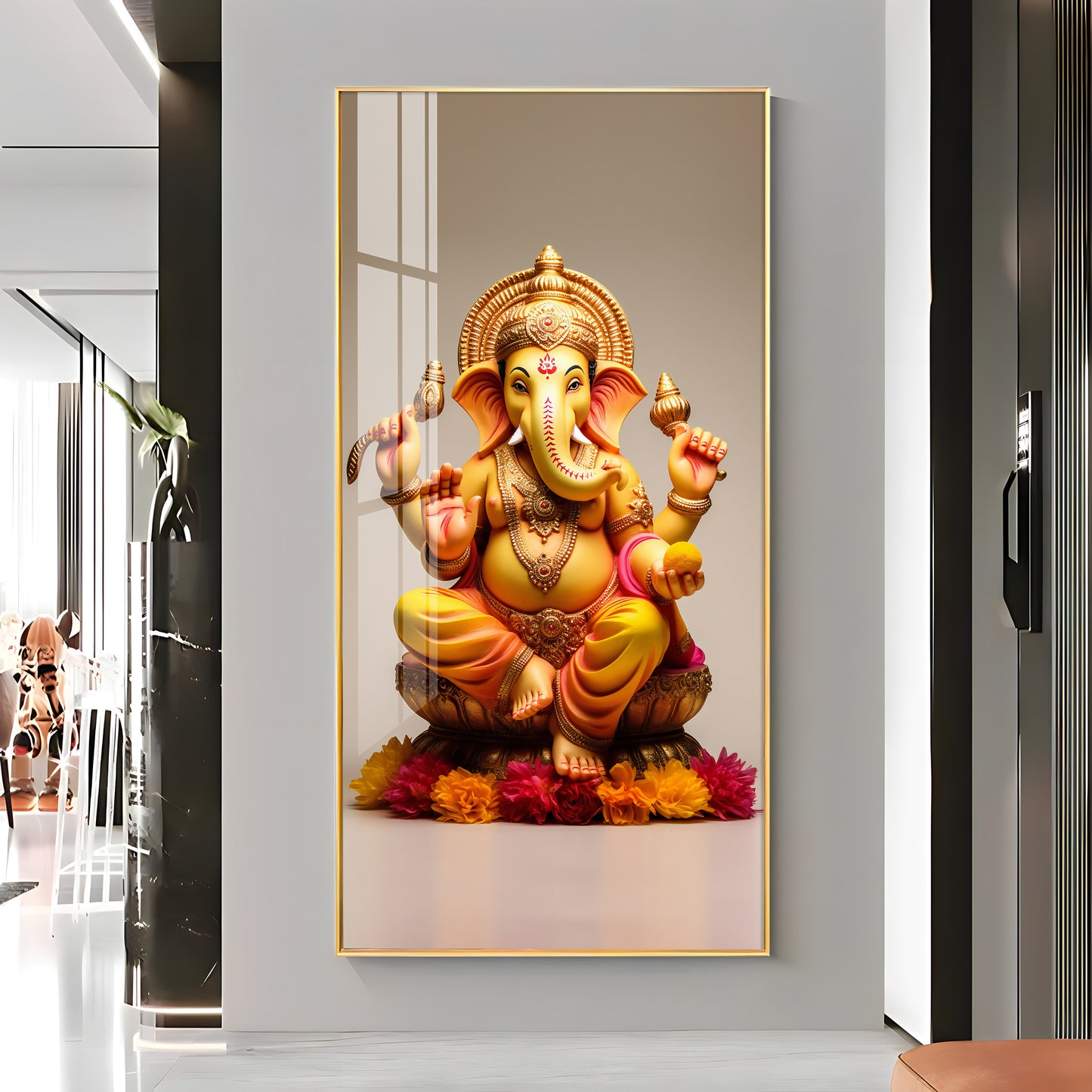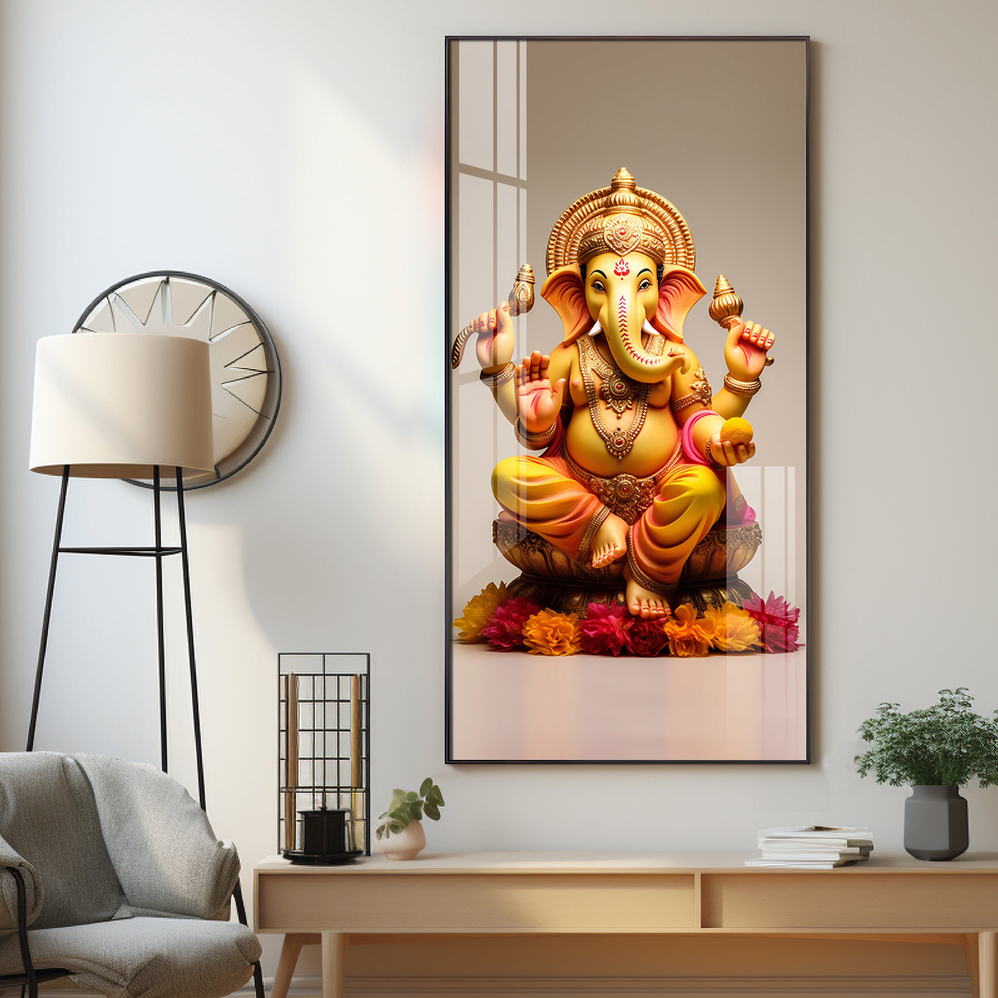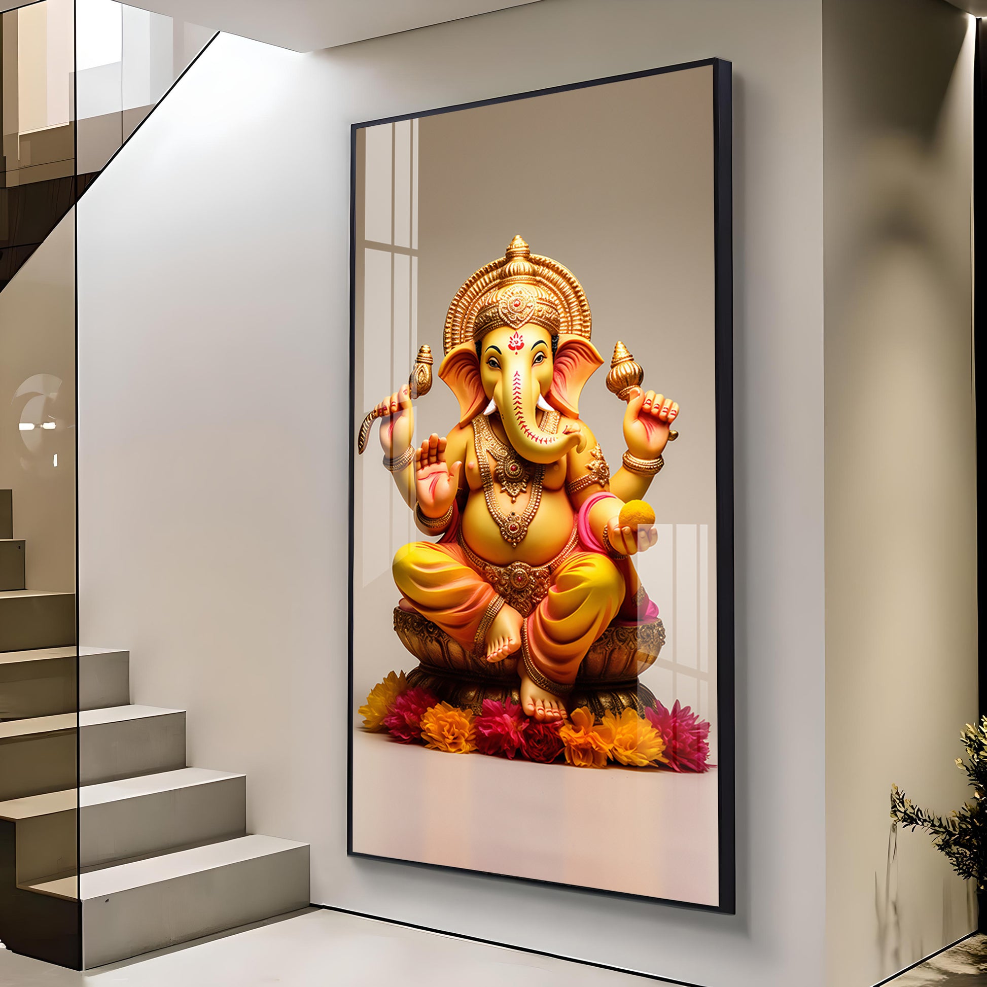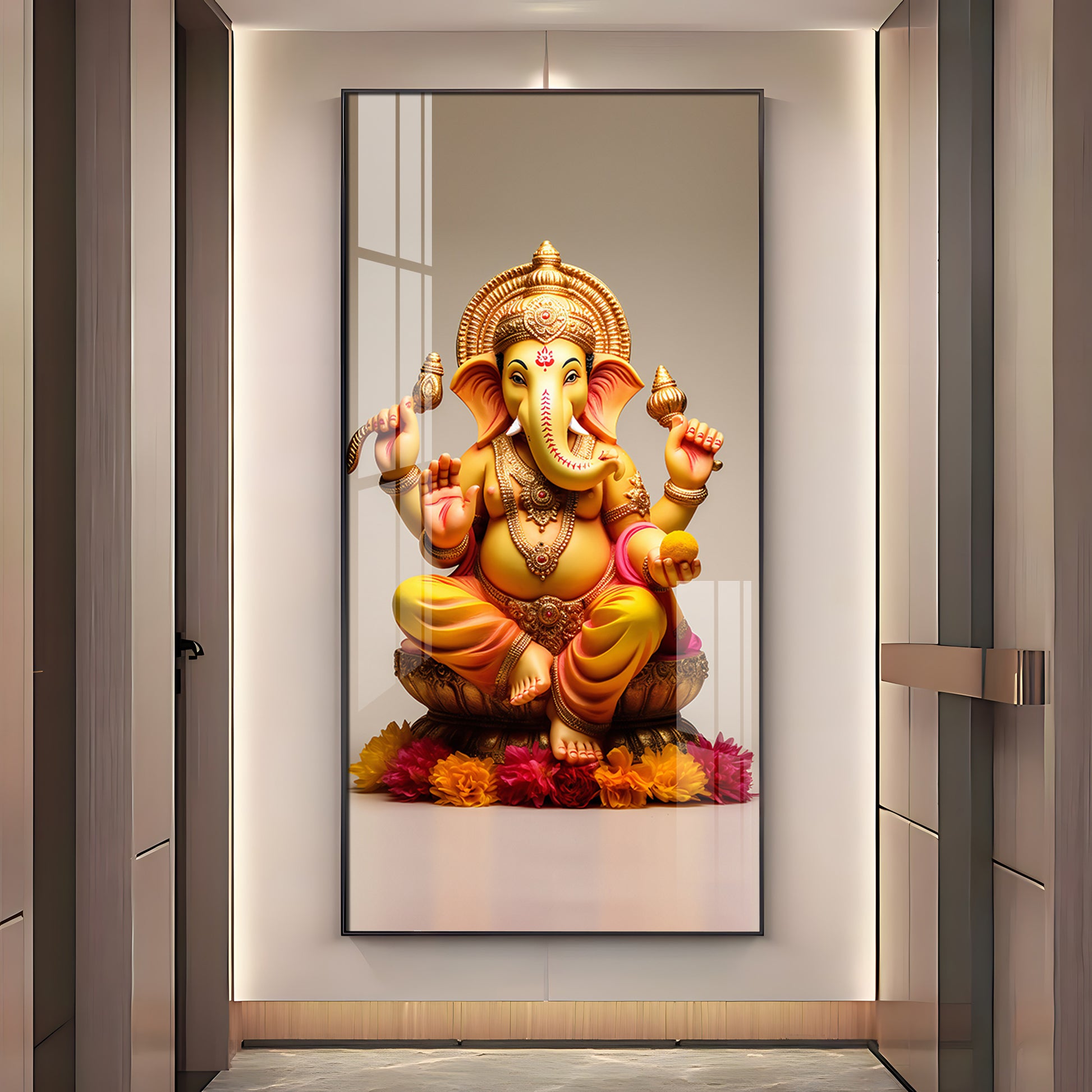 Lord Ganpati Premium Acrylic Vertical Wall Art