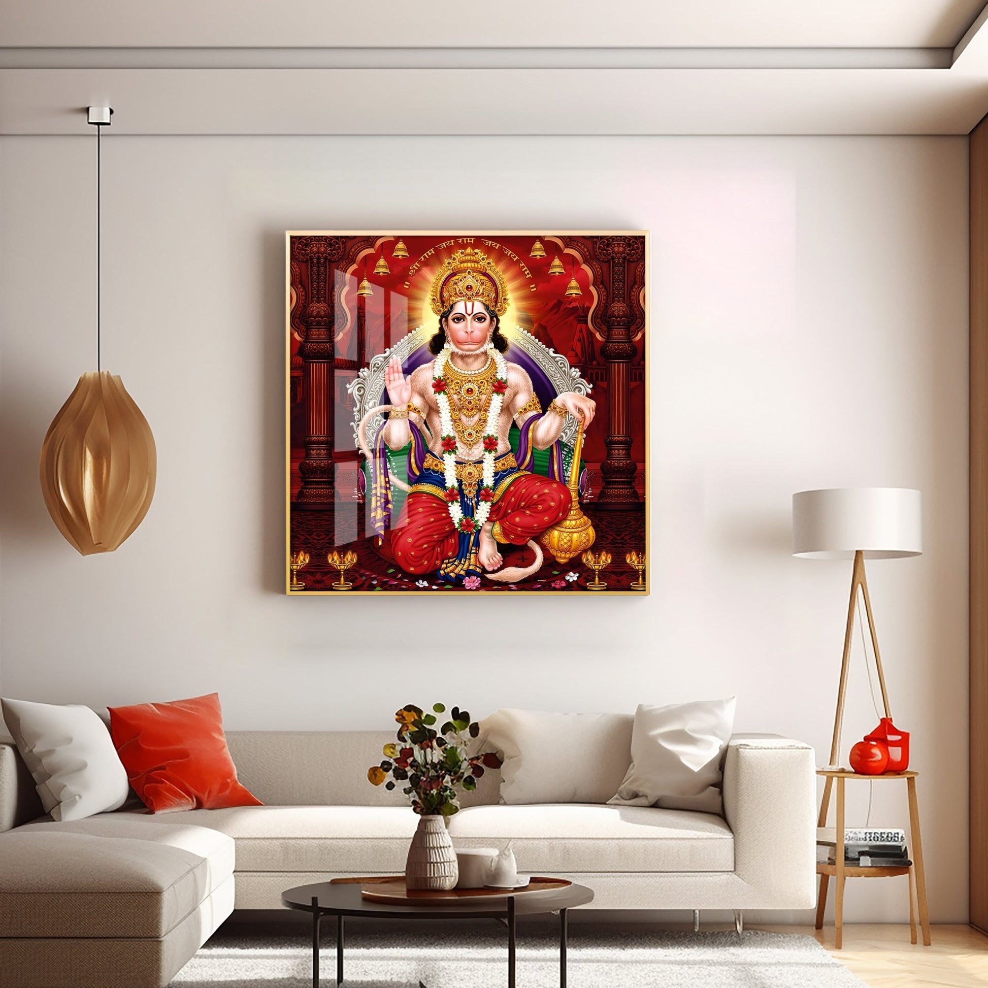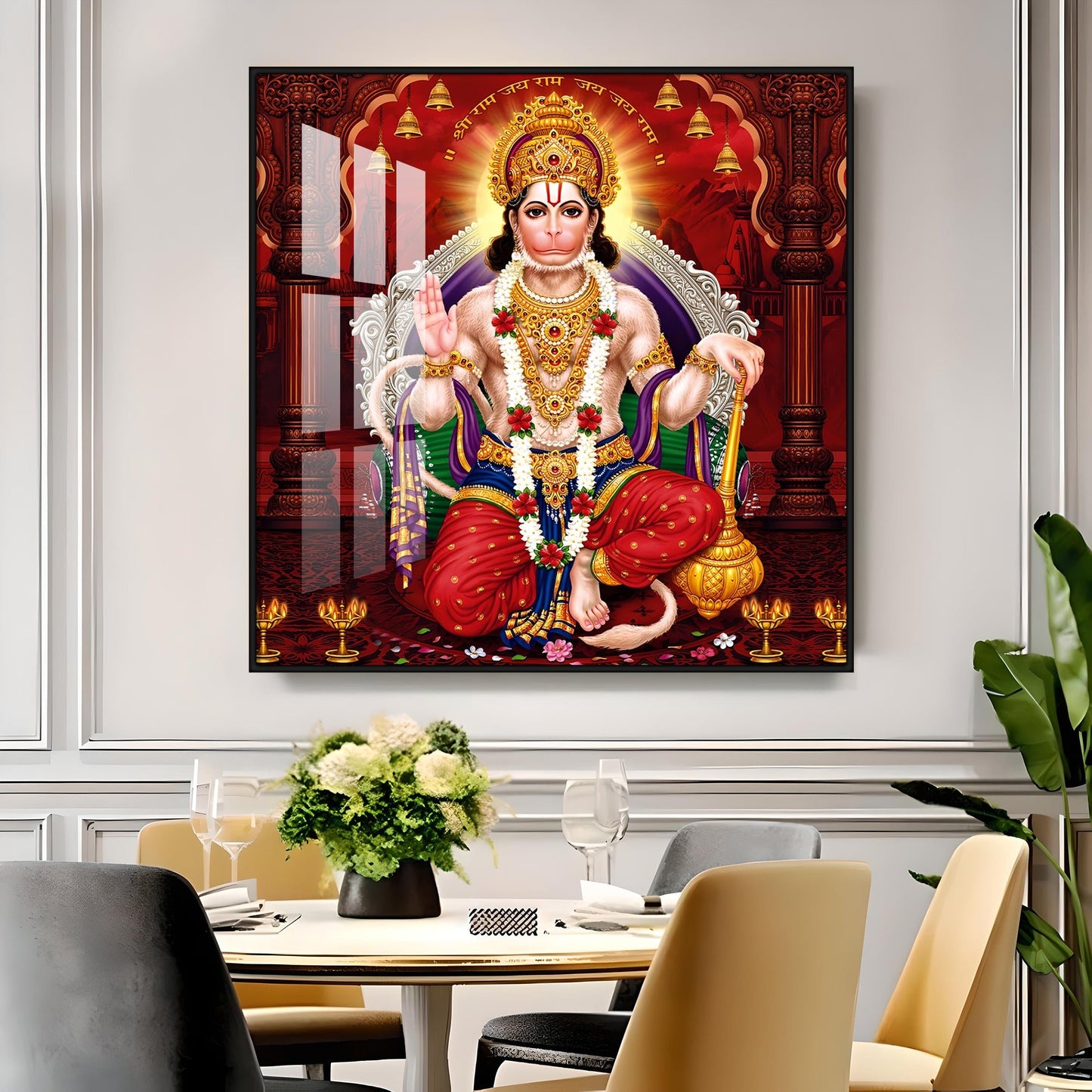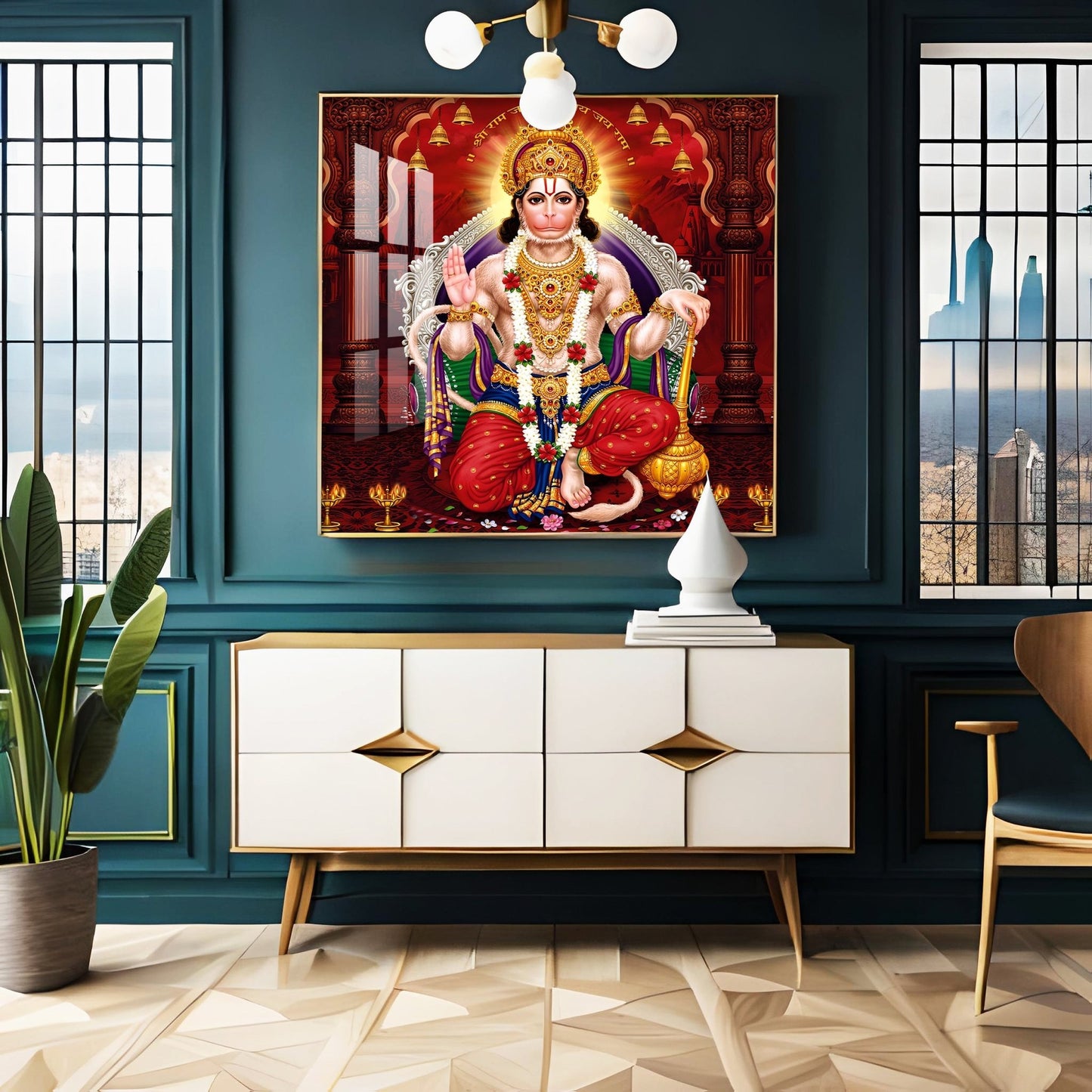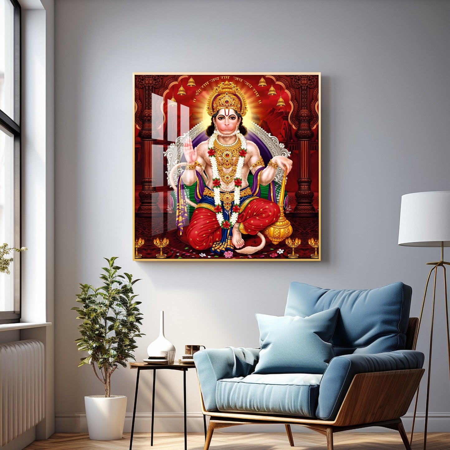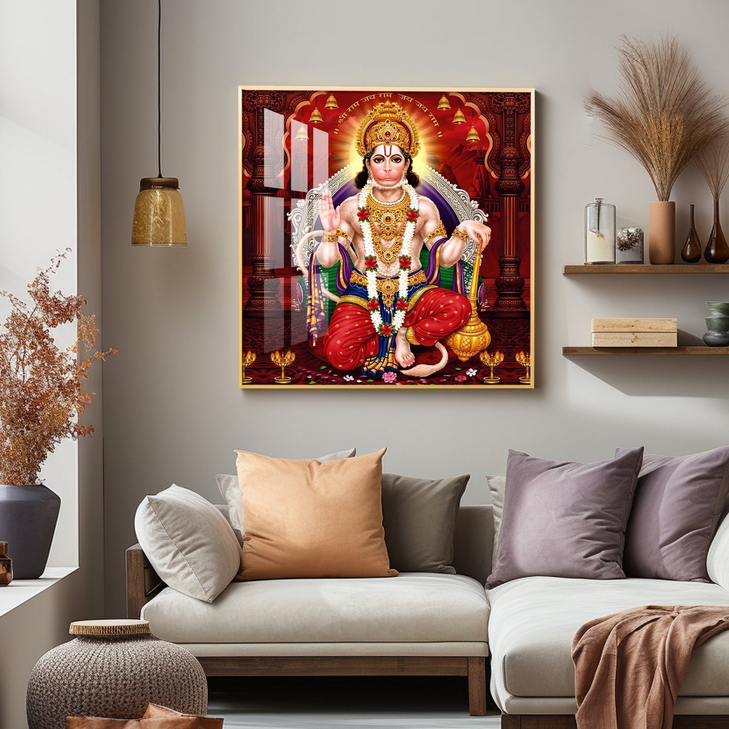 Lord Hanuman Ethereal Blessings Premium Acrylic Square Wall Art