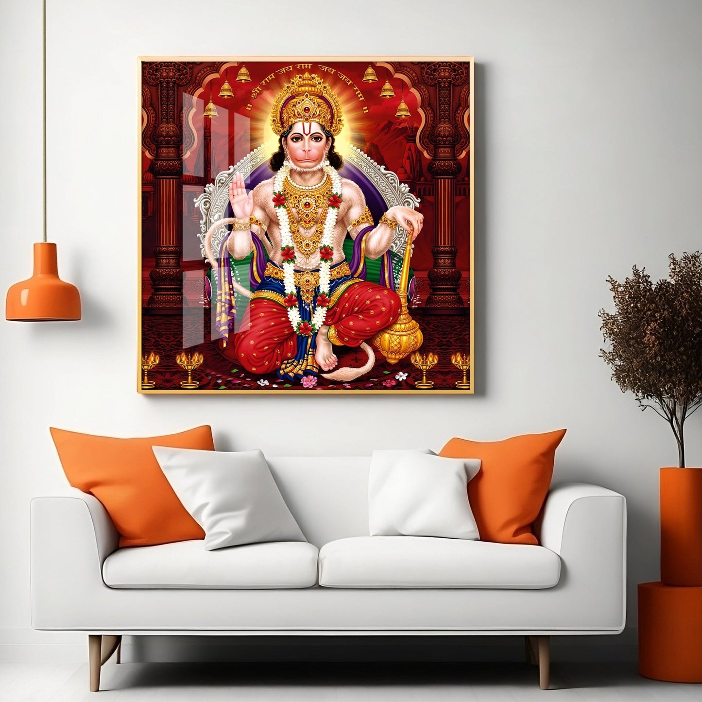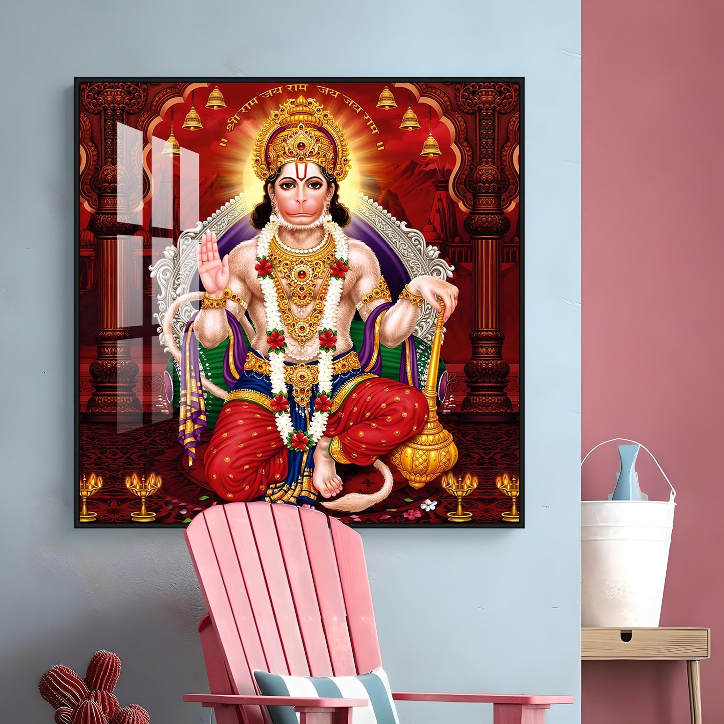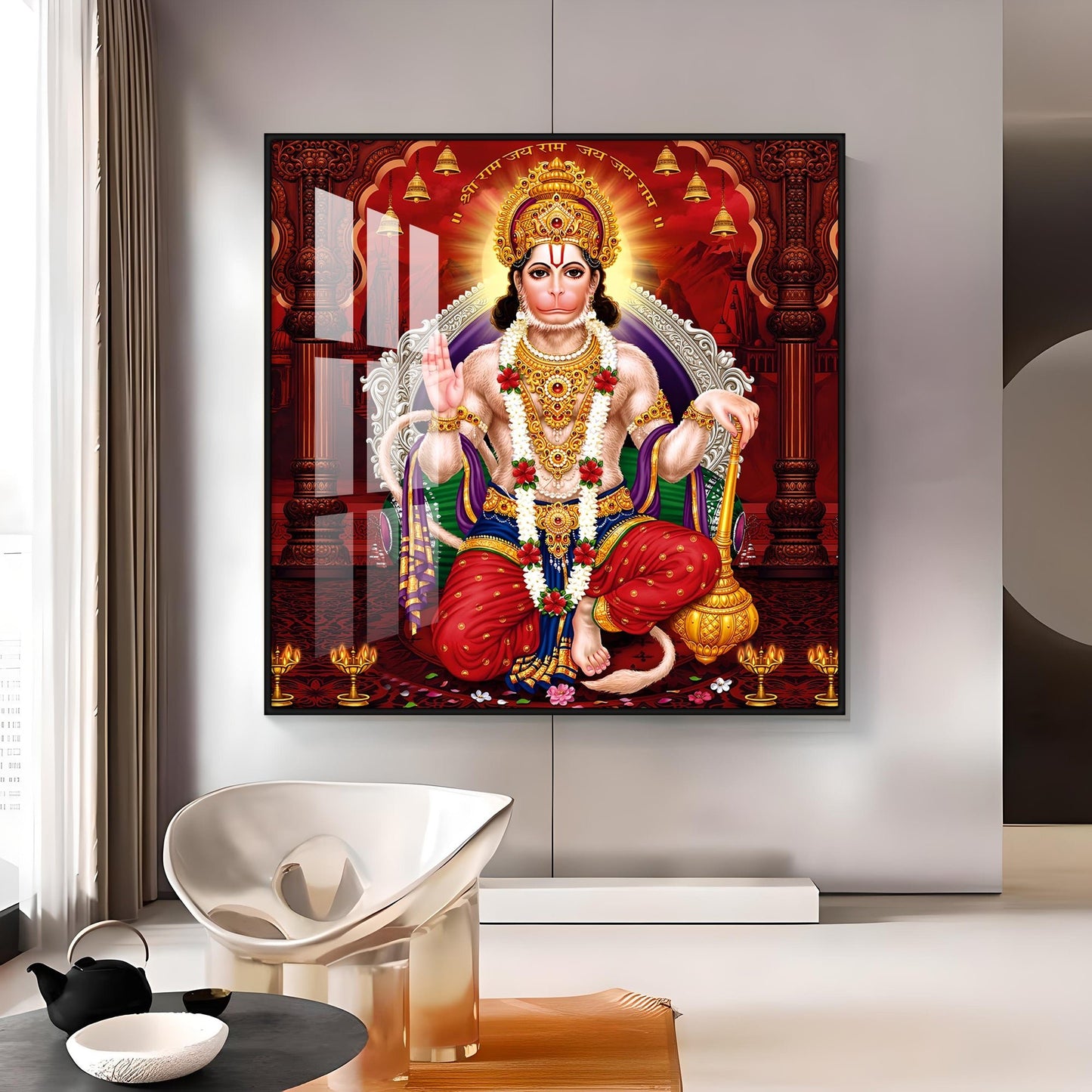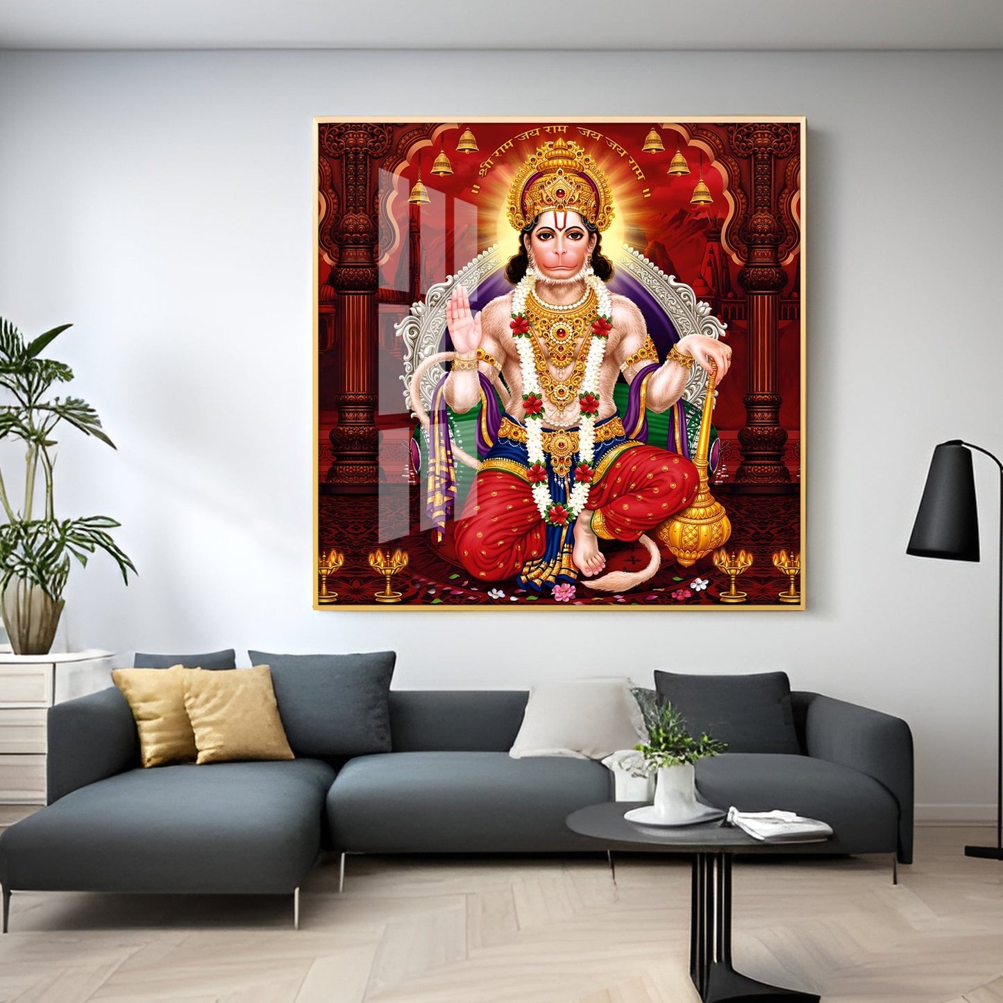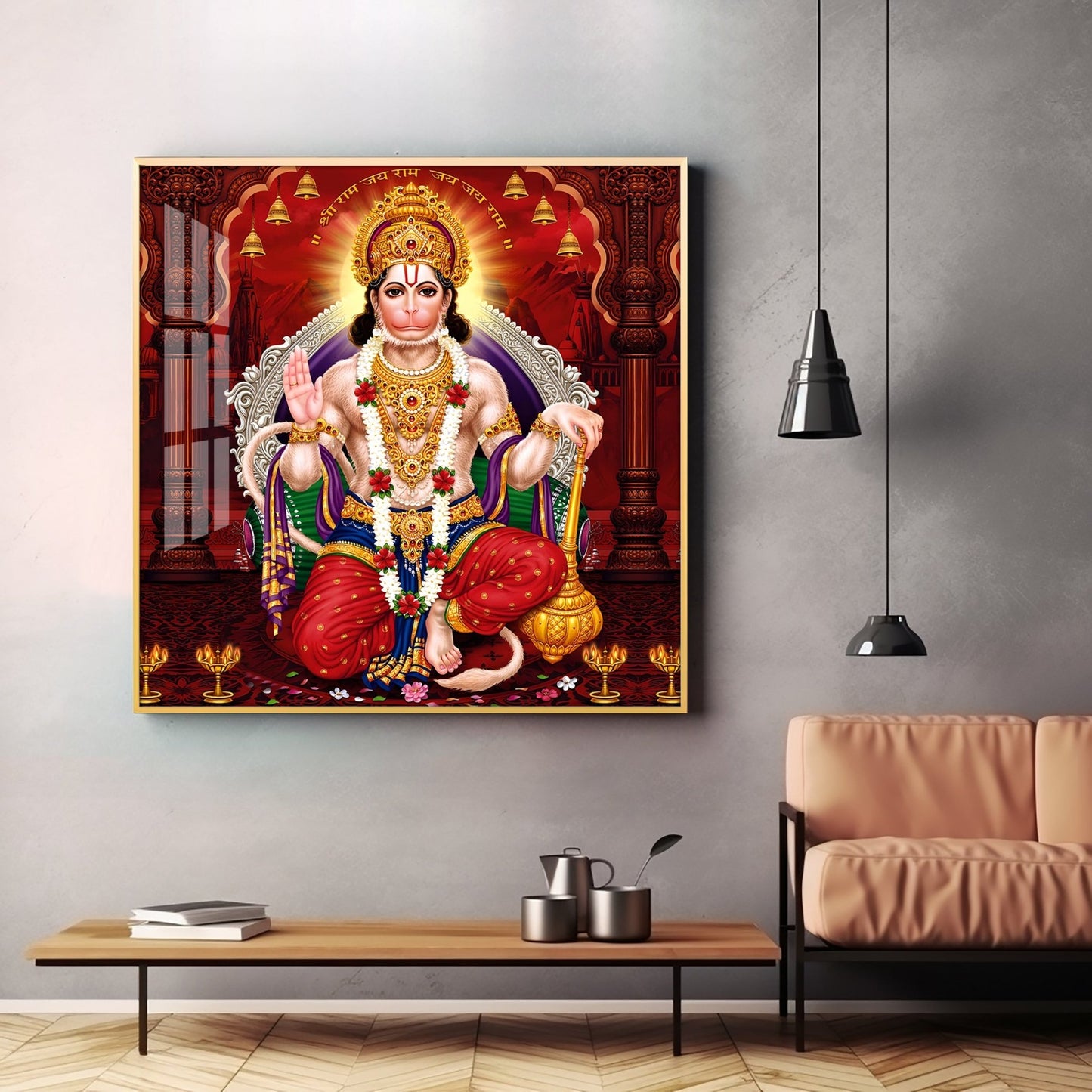 Lord Hanuman Ethereal Blessings Premium Acrylic Square Wall Art