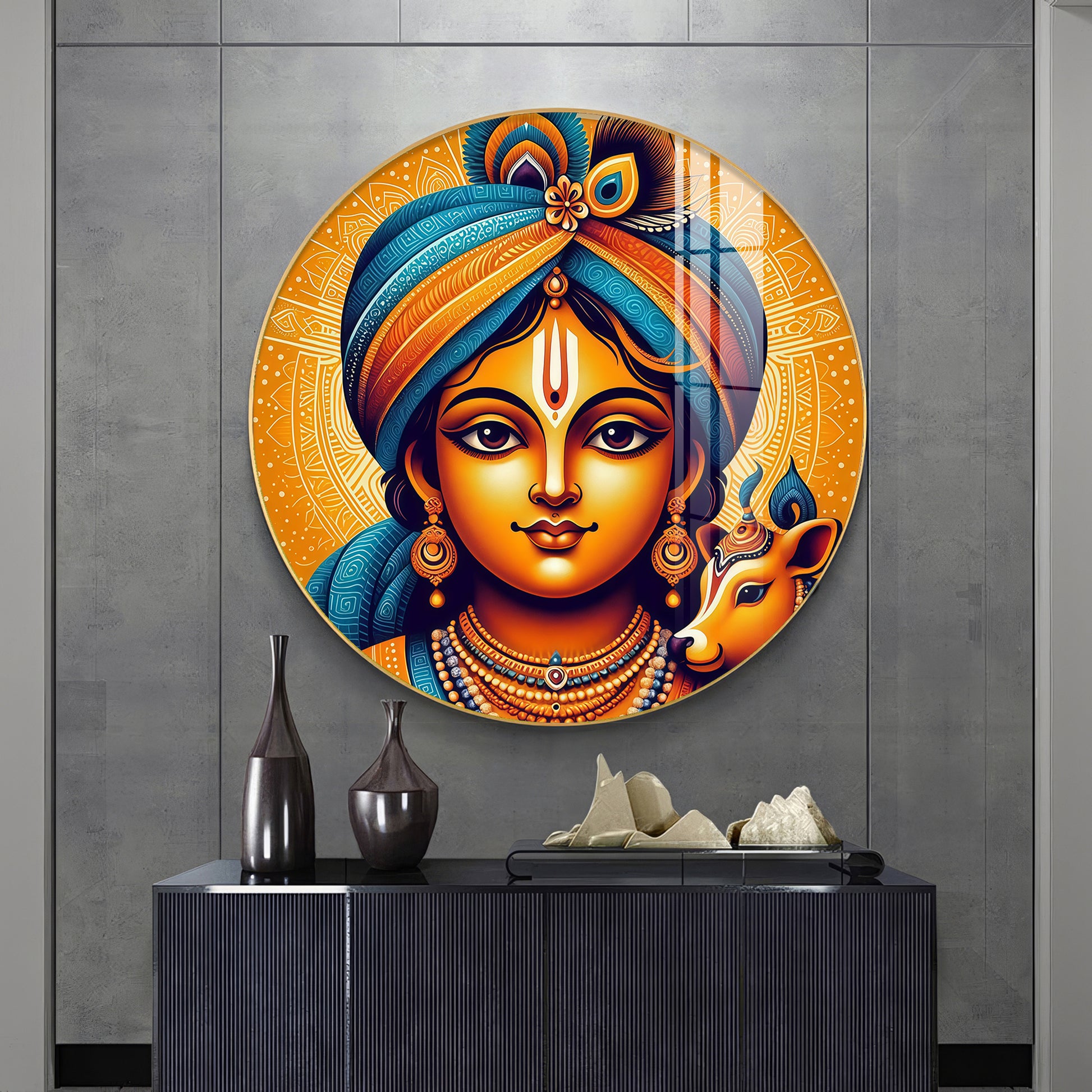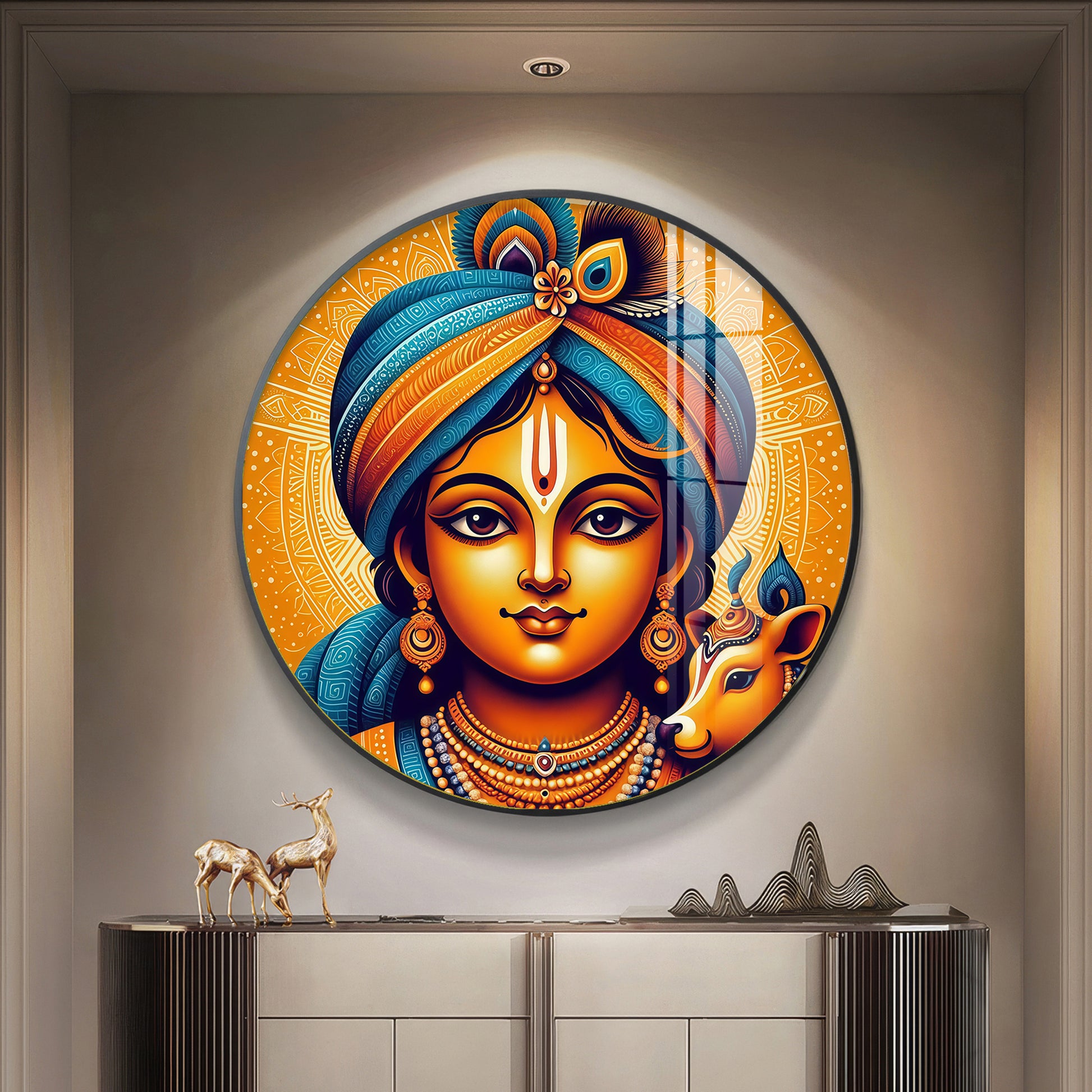 Lord Krishna Abstract Premium Acrylic Round Wall Art