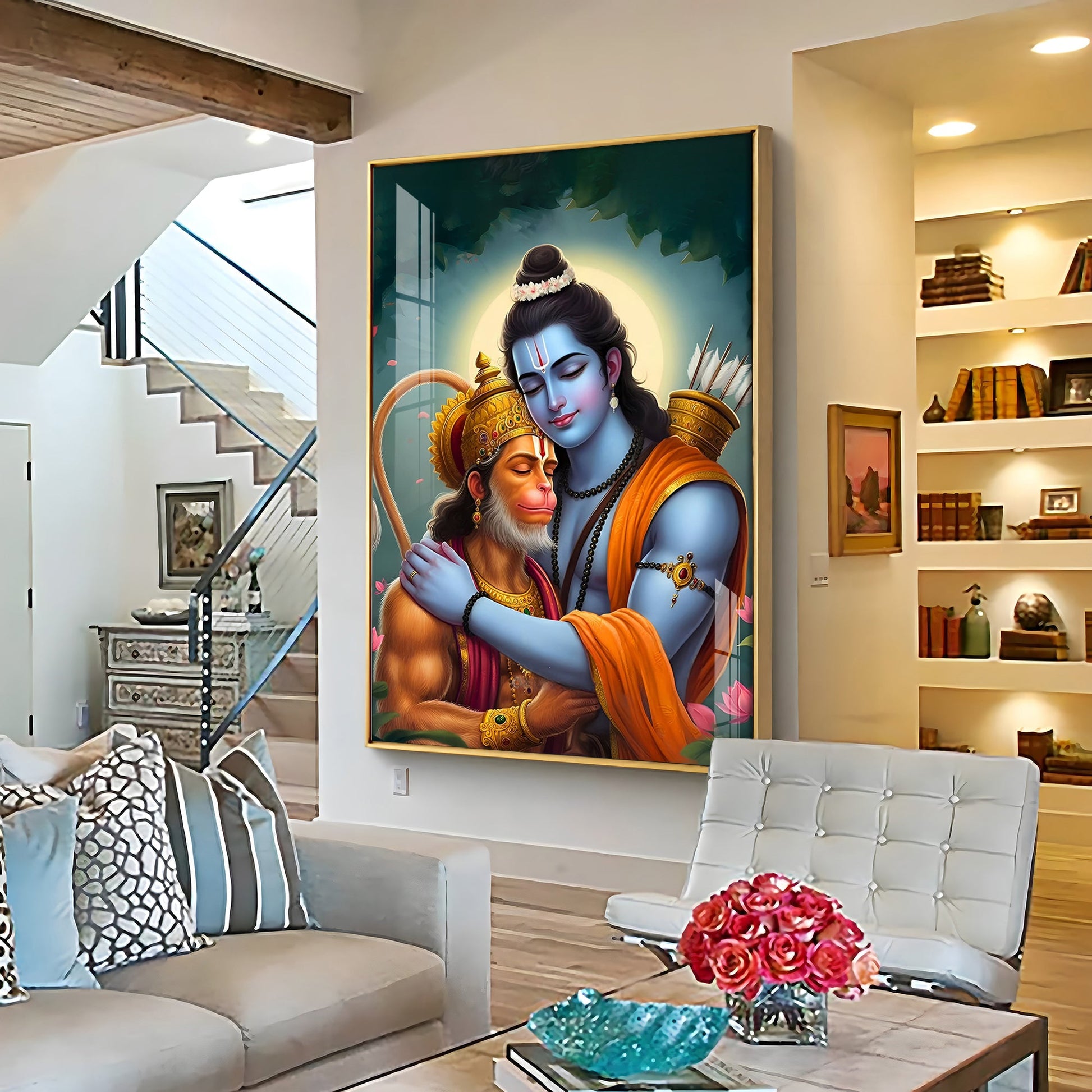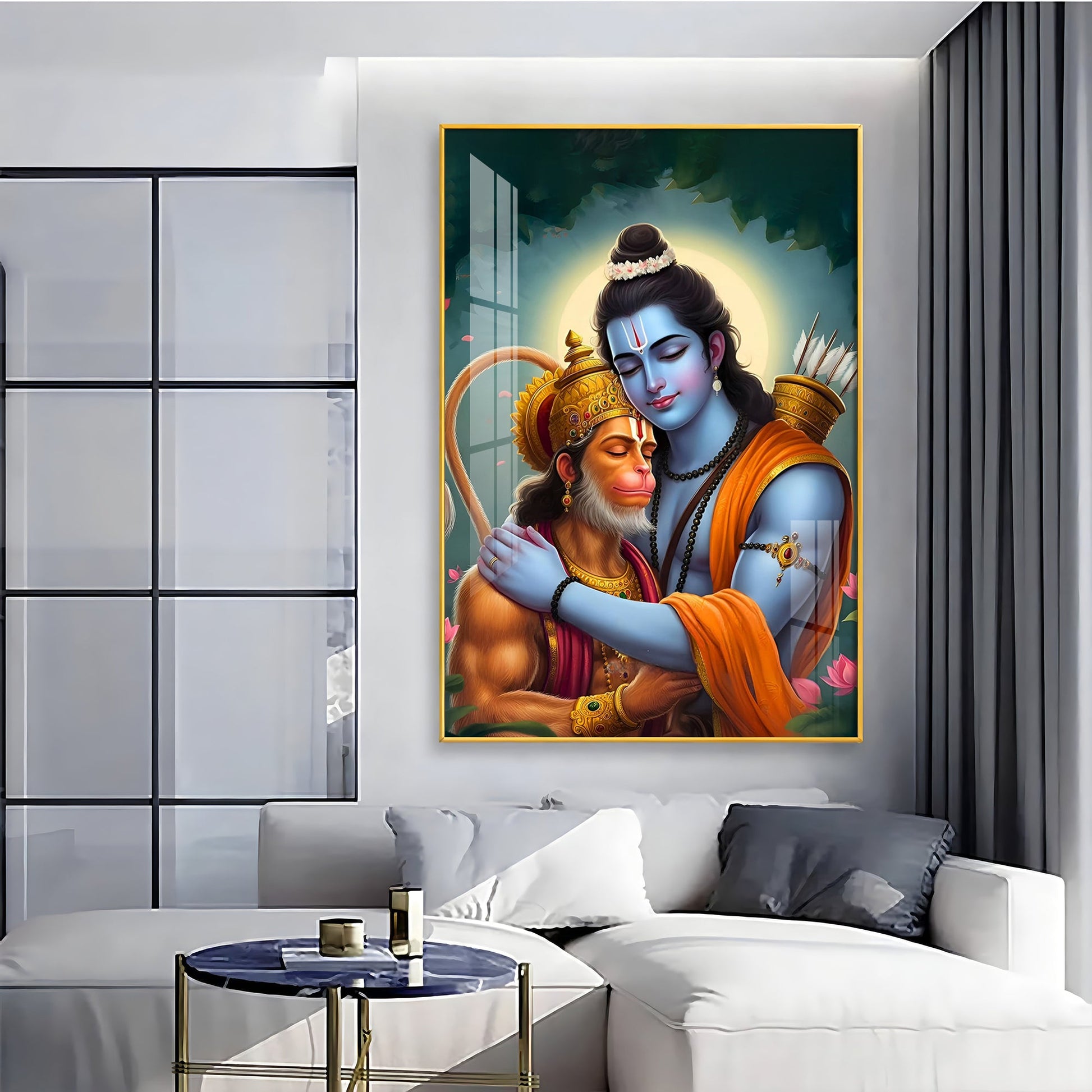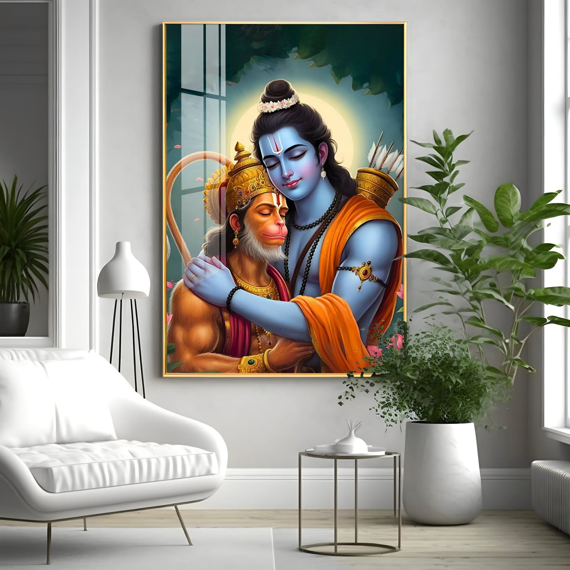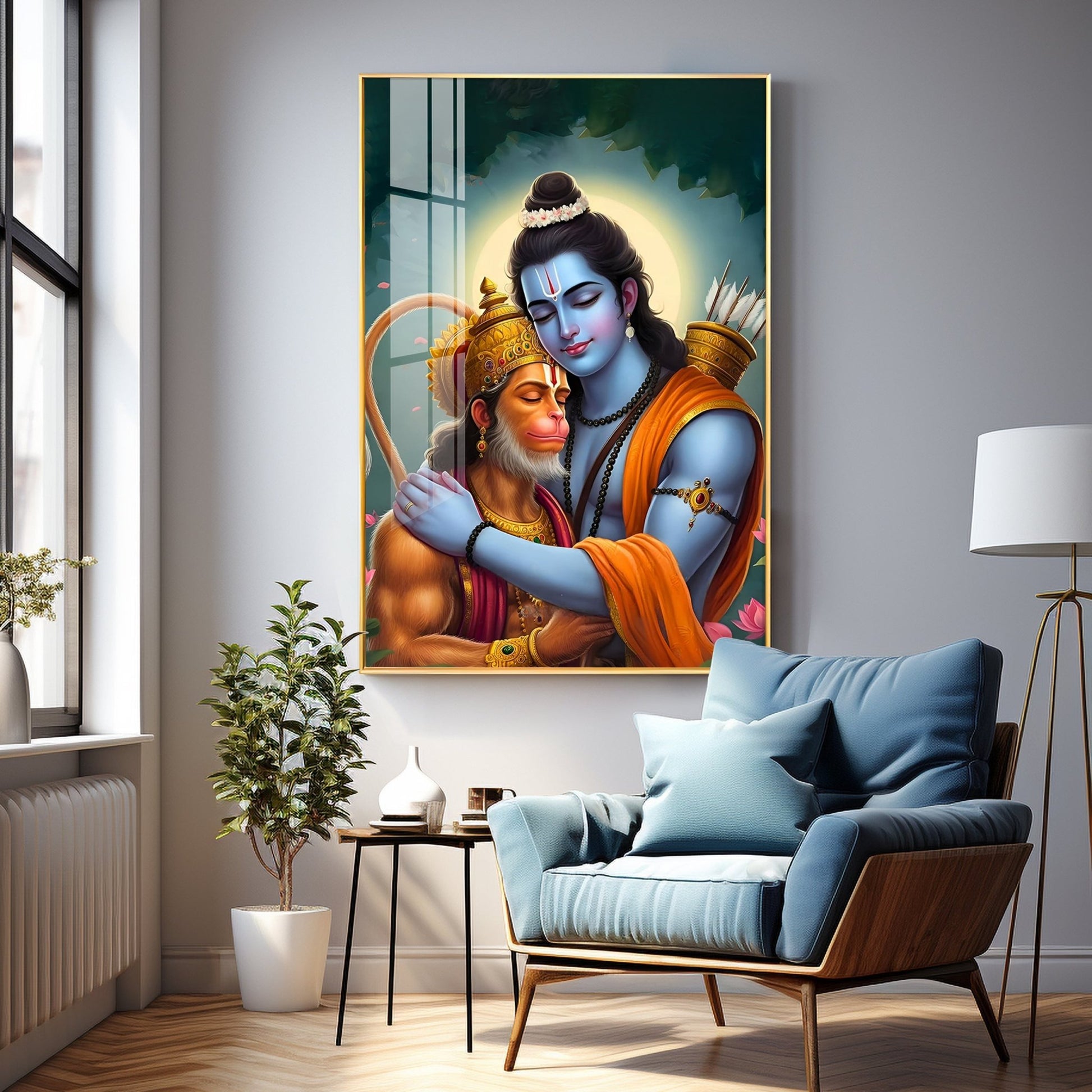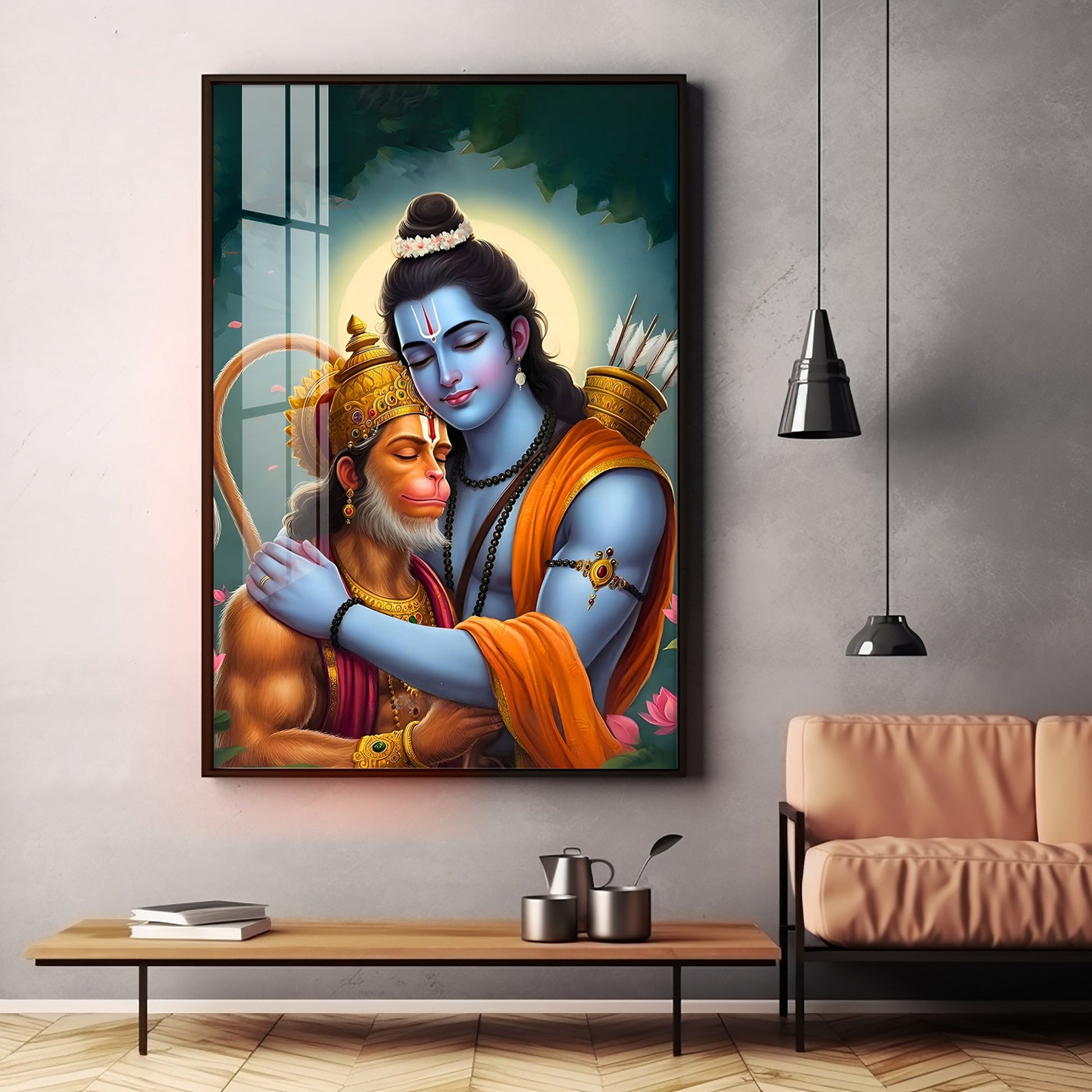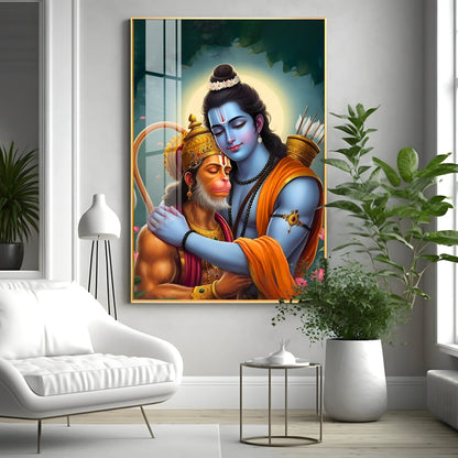 Lord Rama And Hanuman Brotherhood Premium Acrylic Wall Art