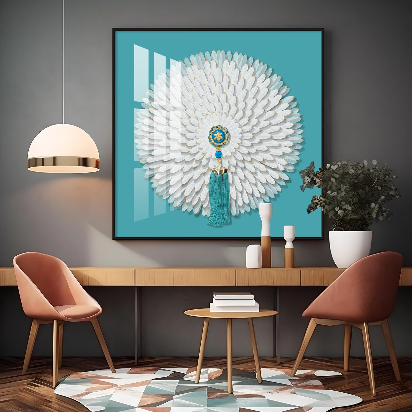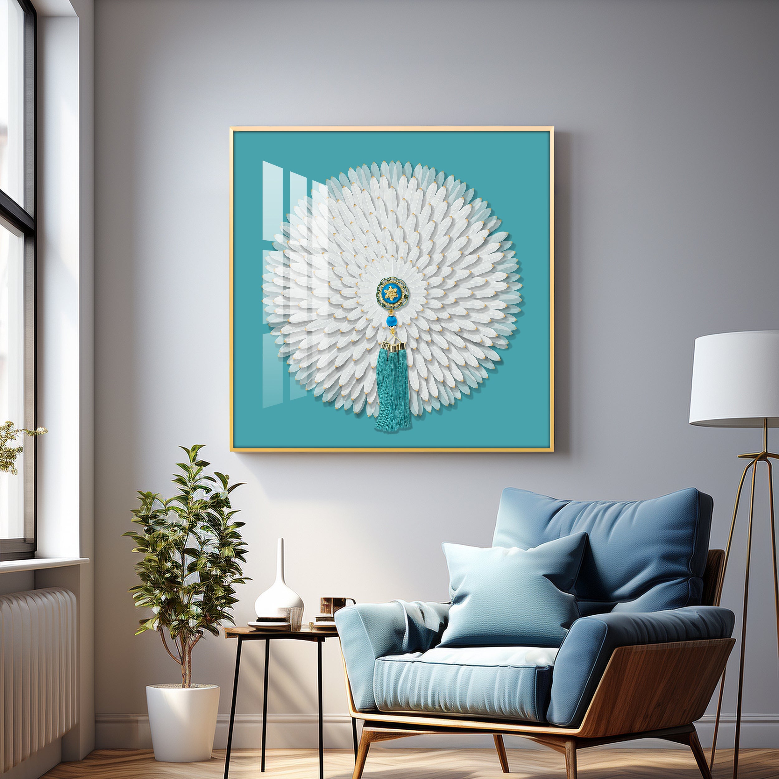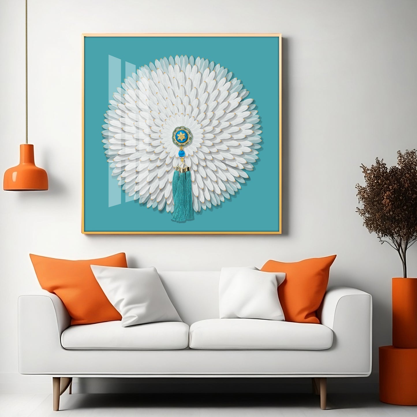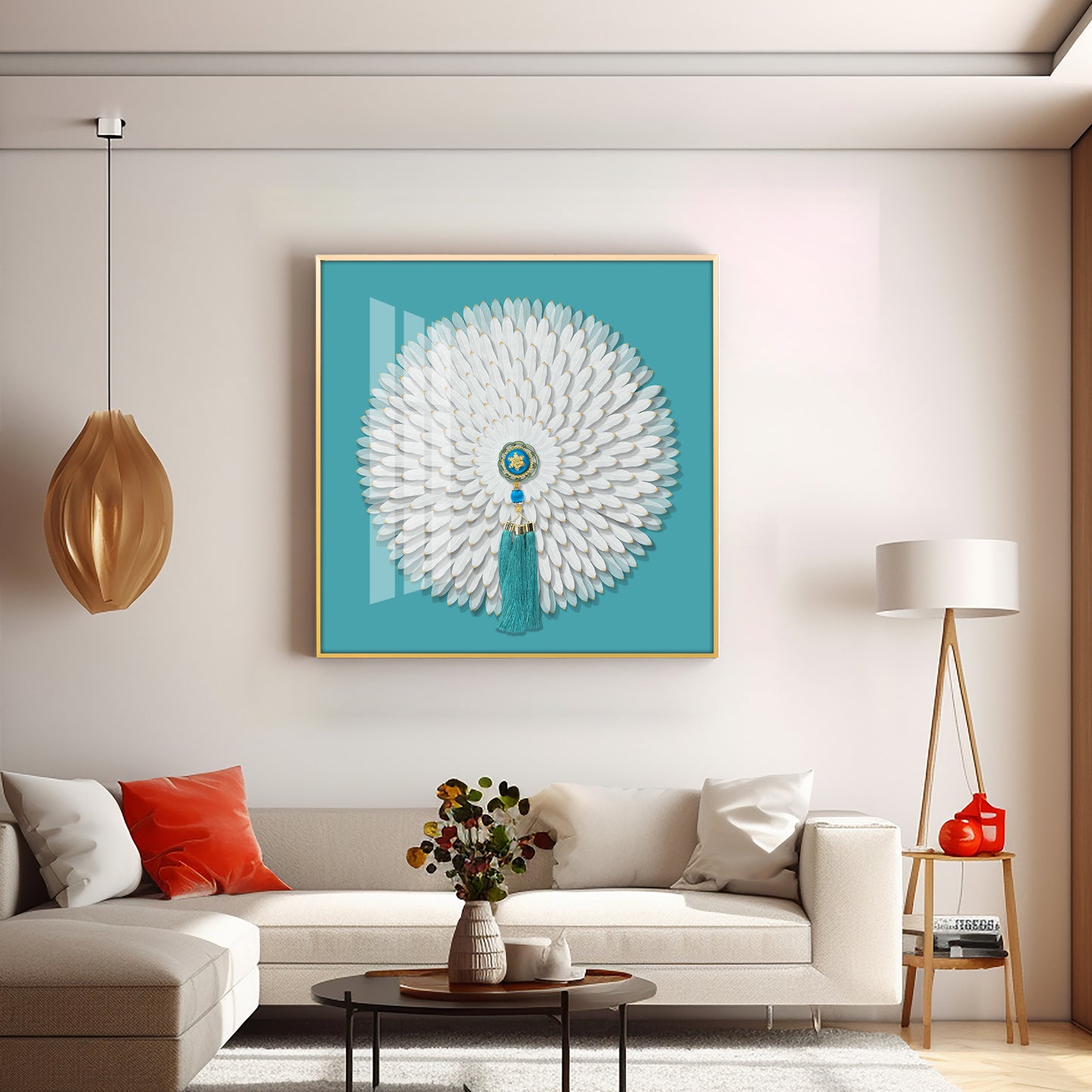 Lucky White Feathers Premium Acrylic Square Wall Art