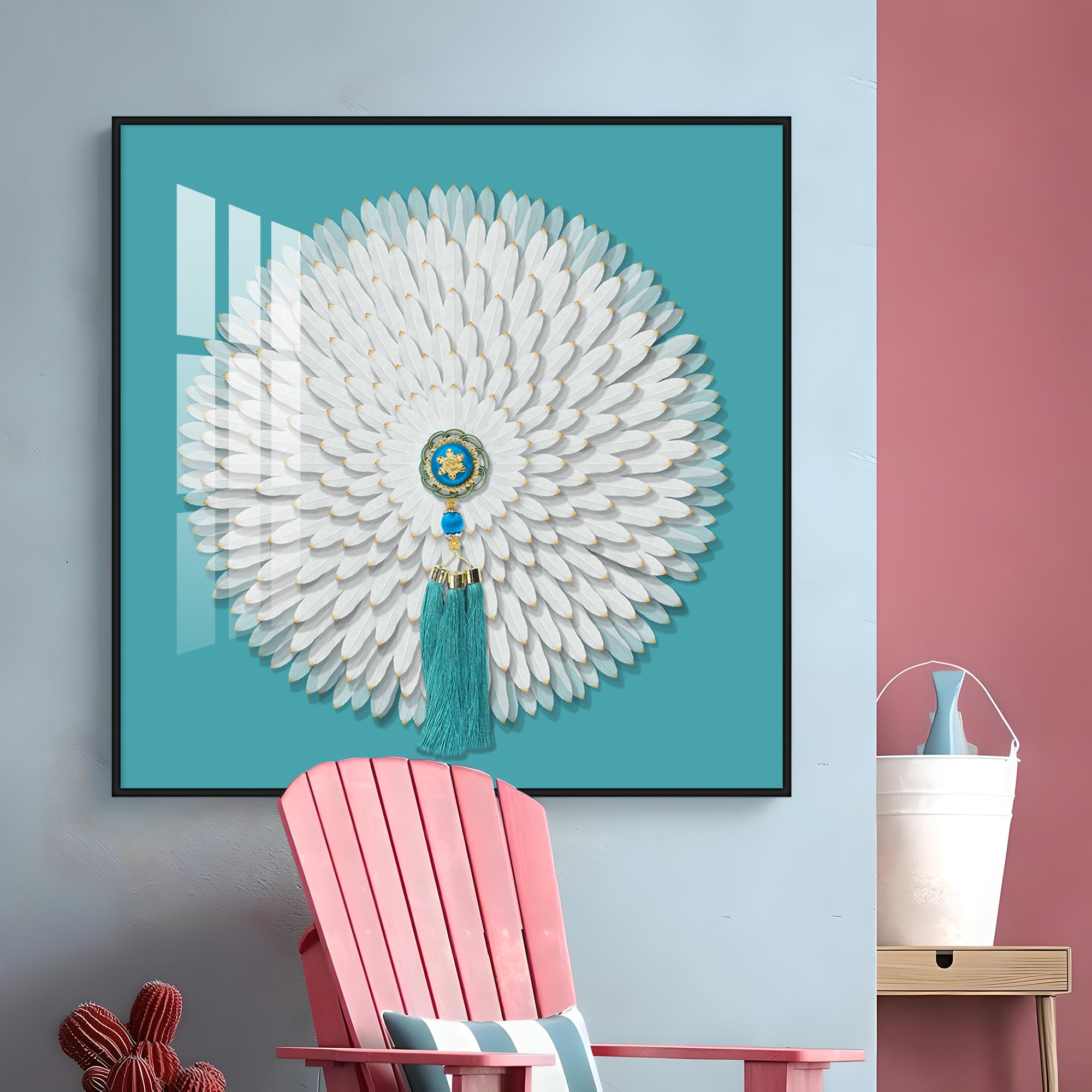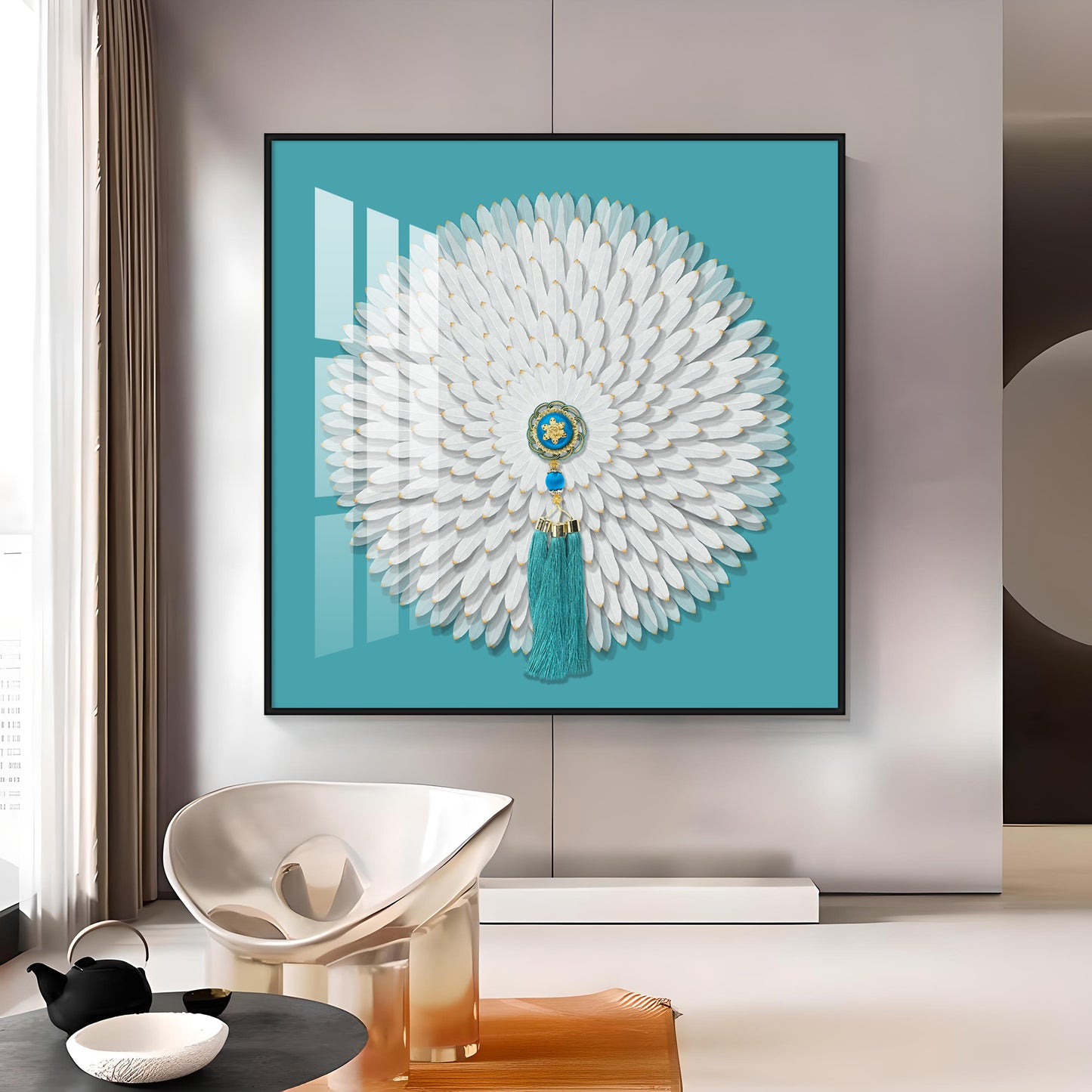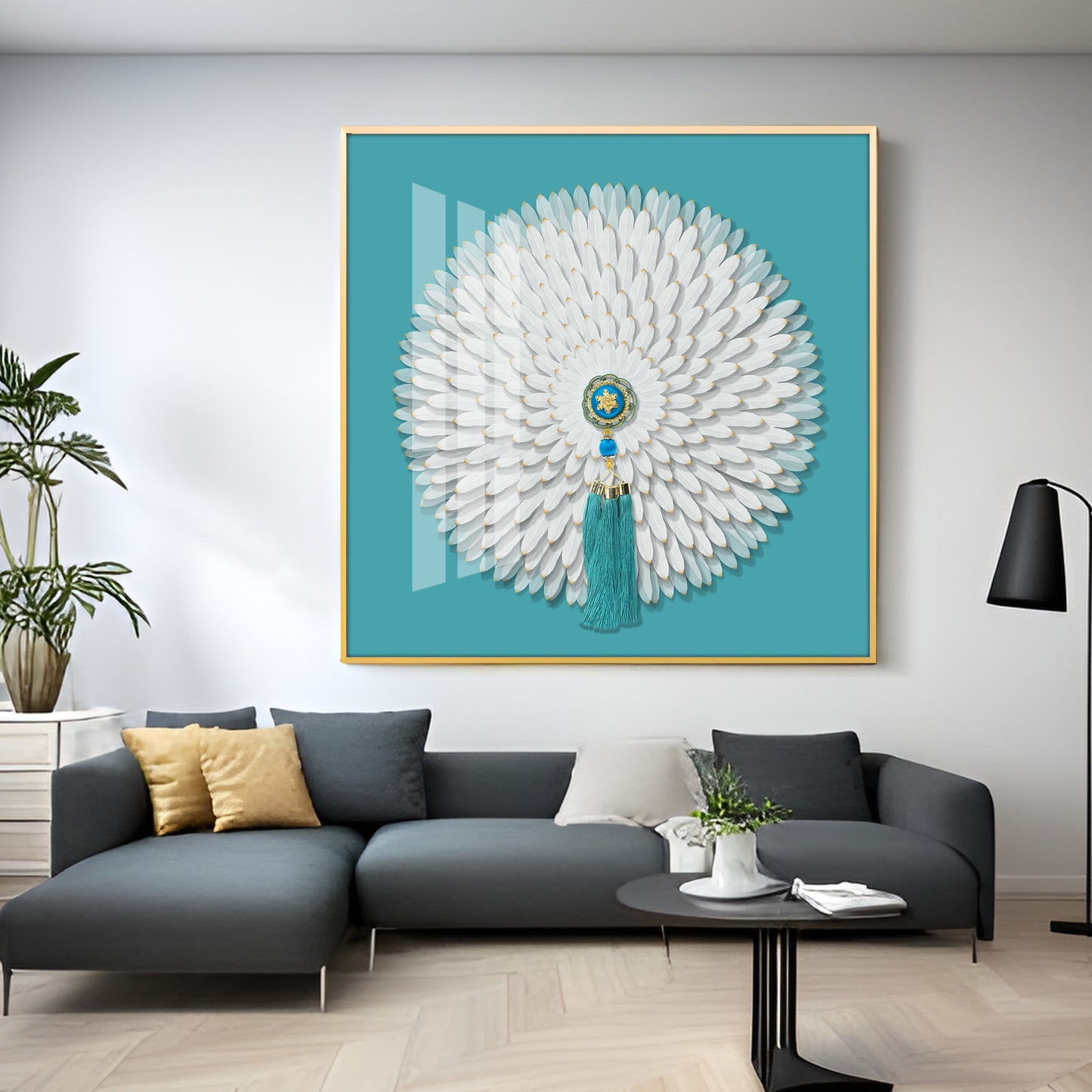 Lucky White Feathers Premium Acrylic Square Wall Art