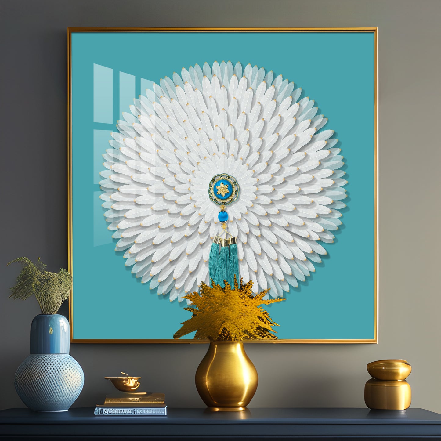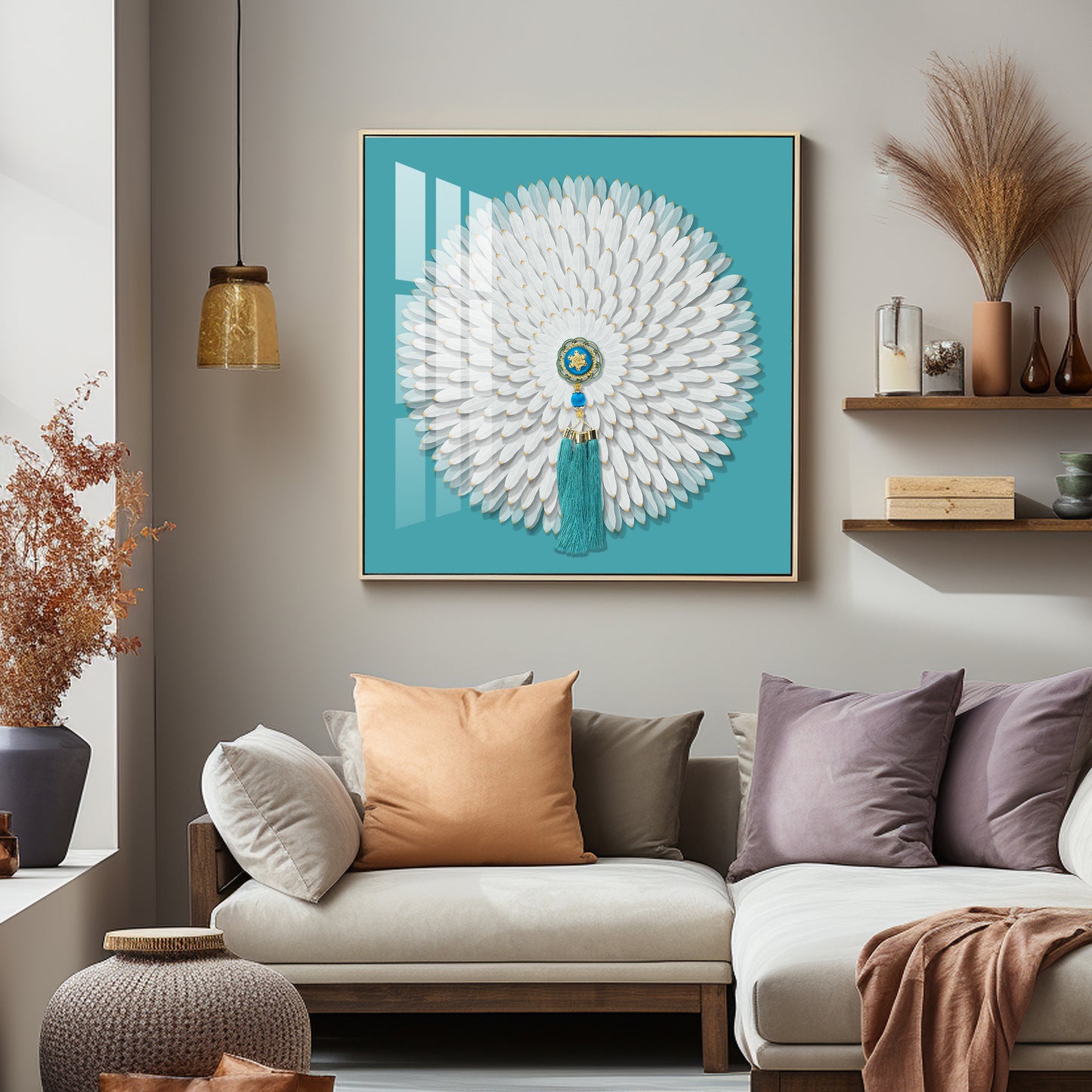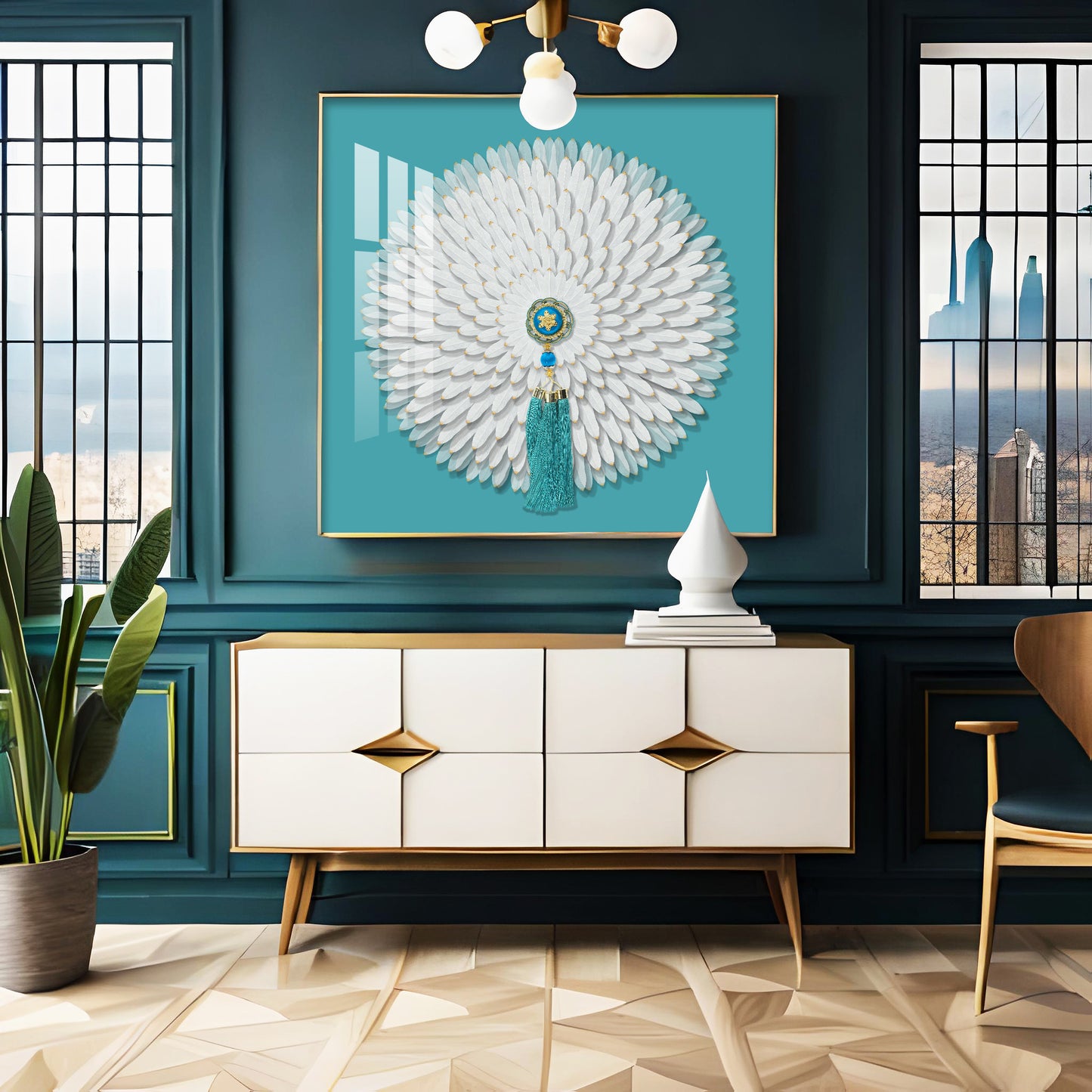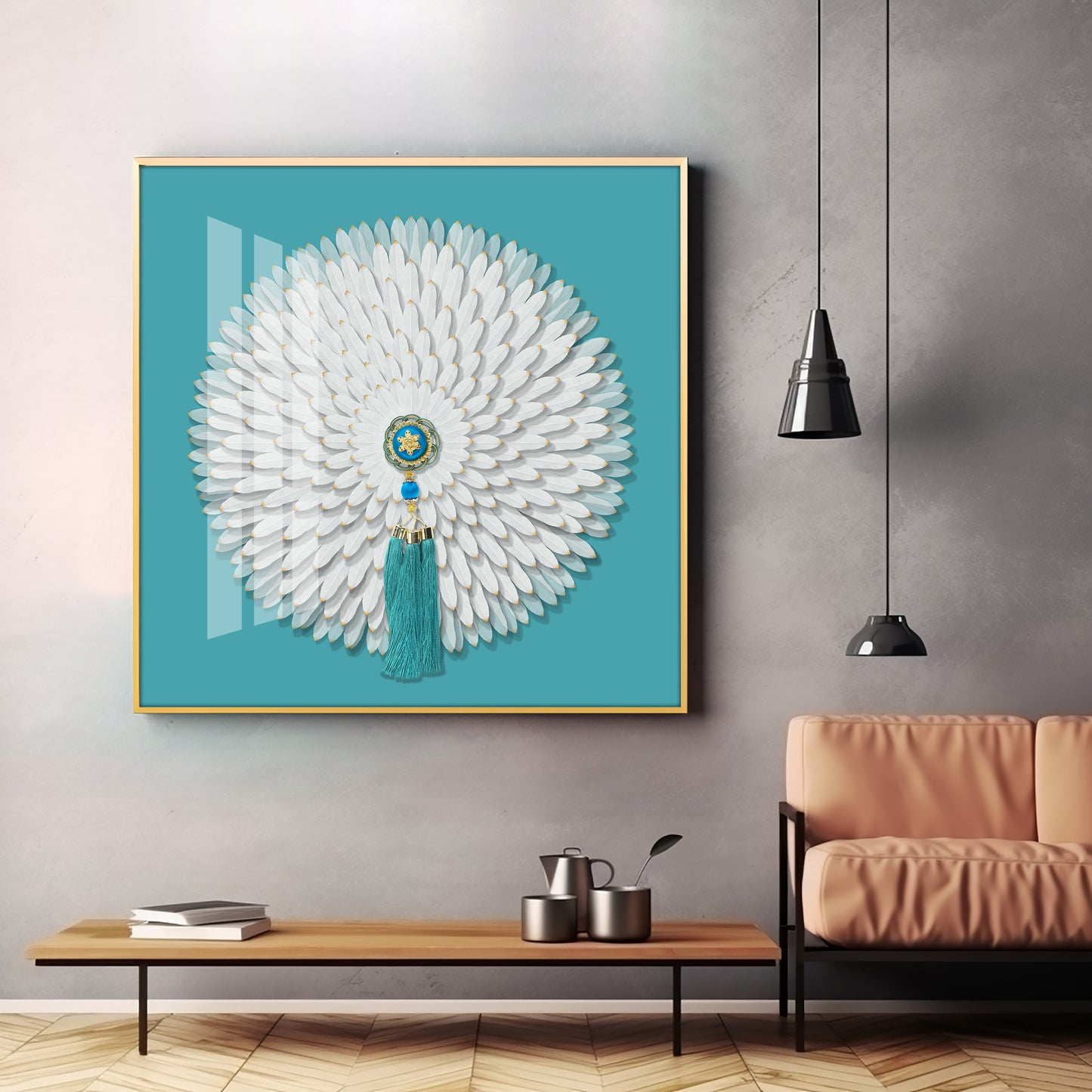 Lucky White Feathers Premium Acrylic Square Wall Art