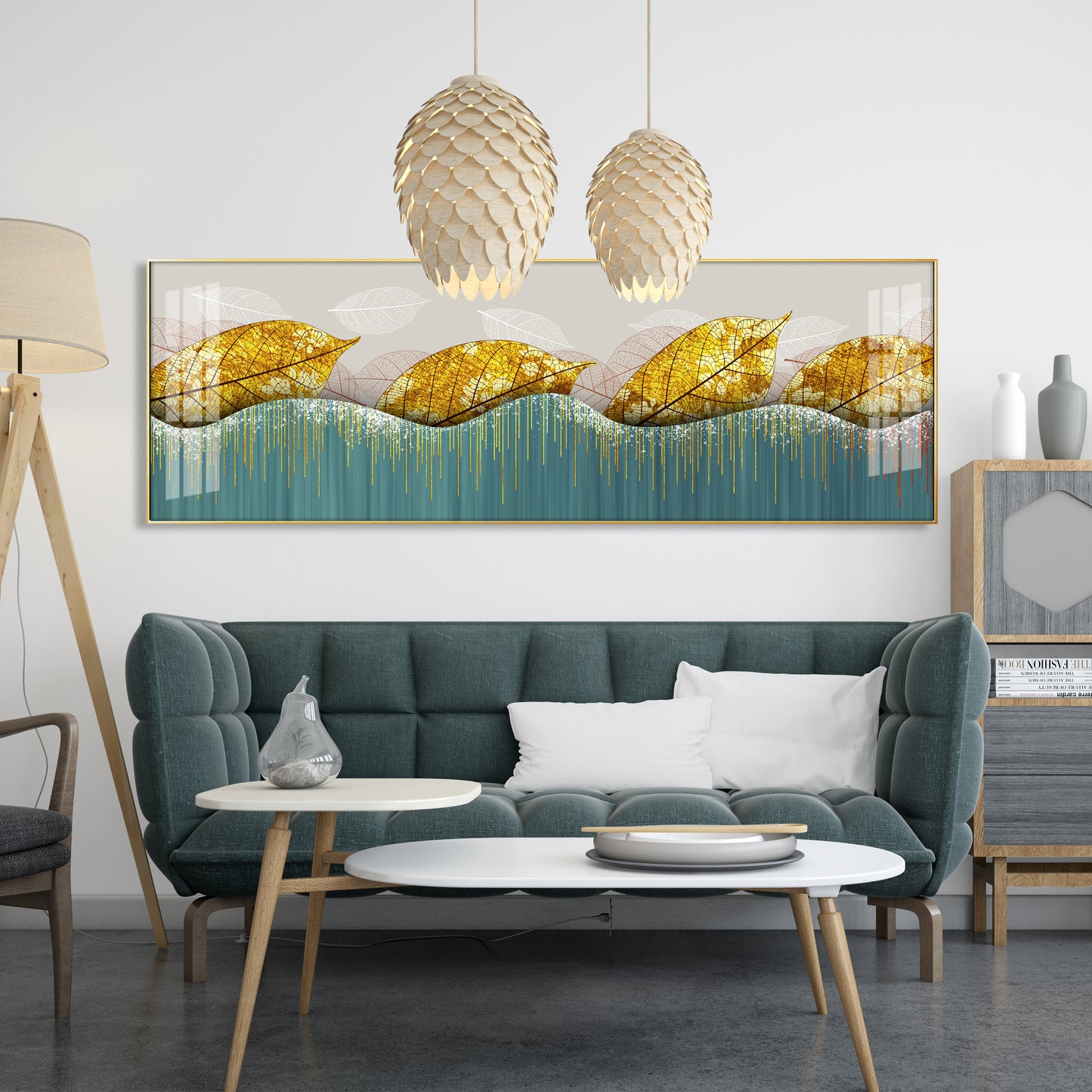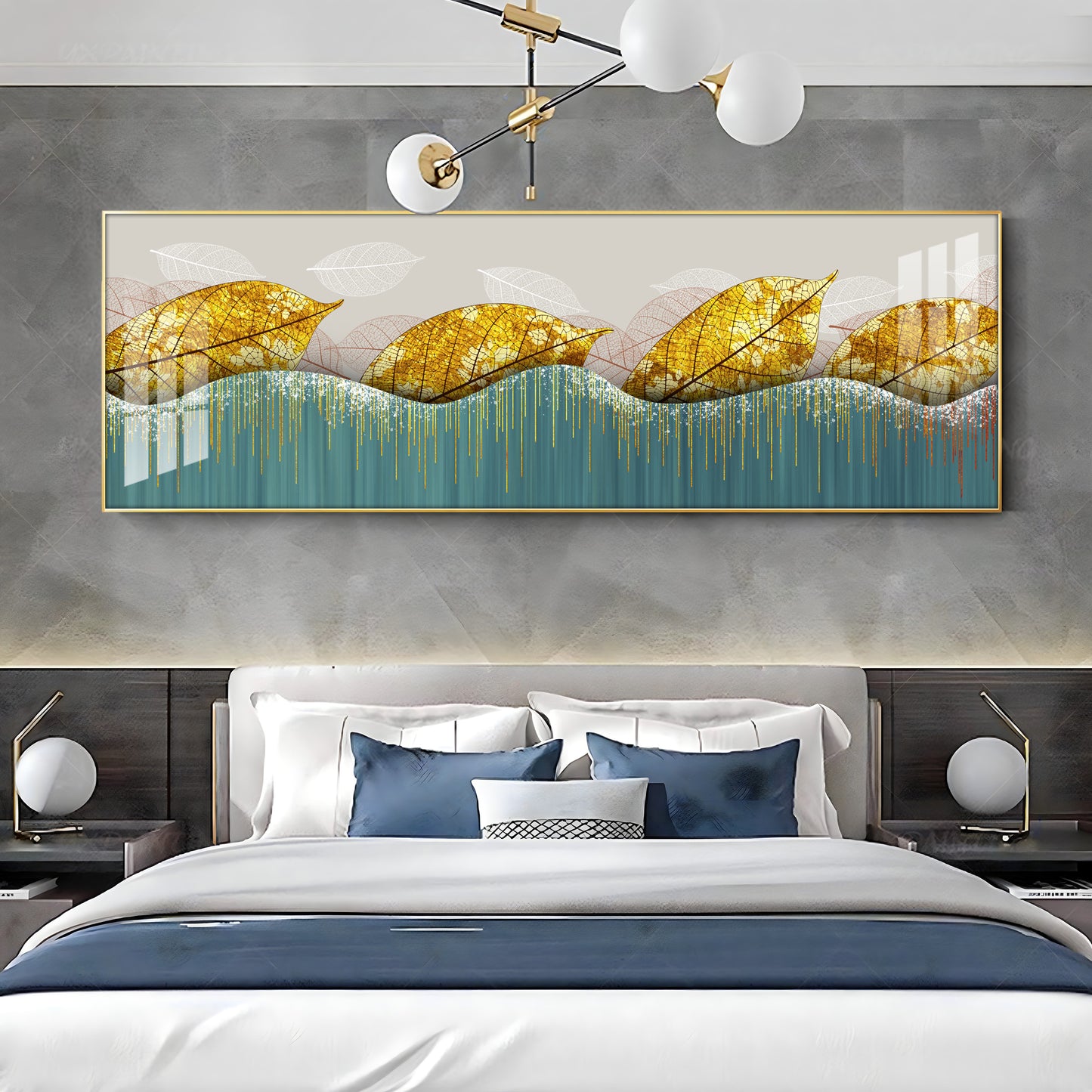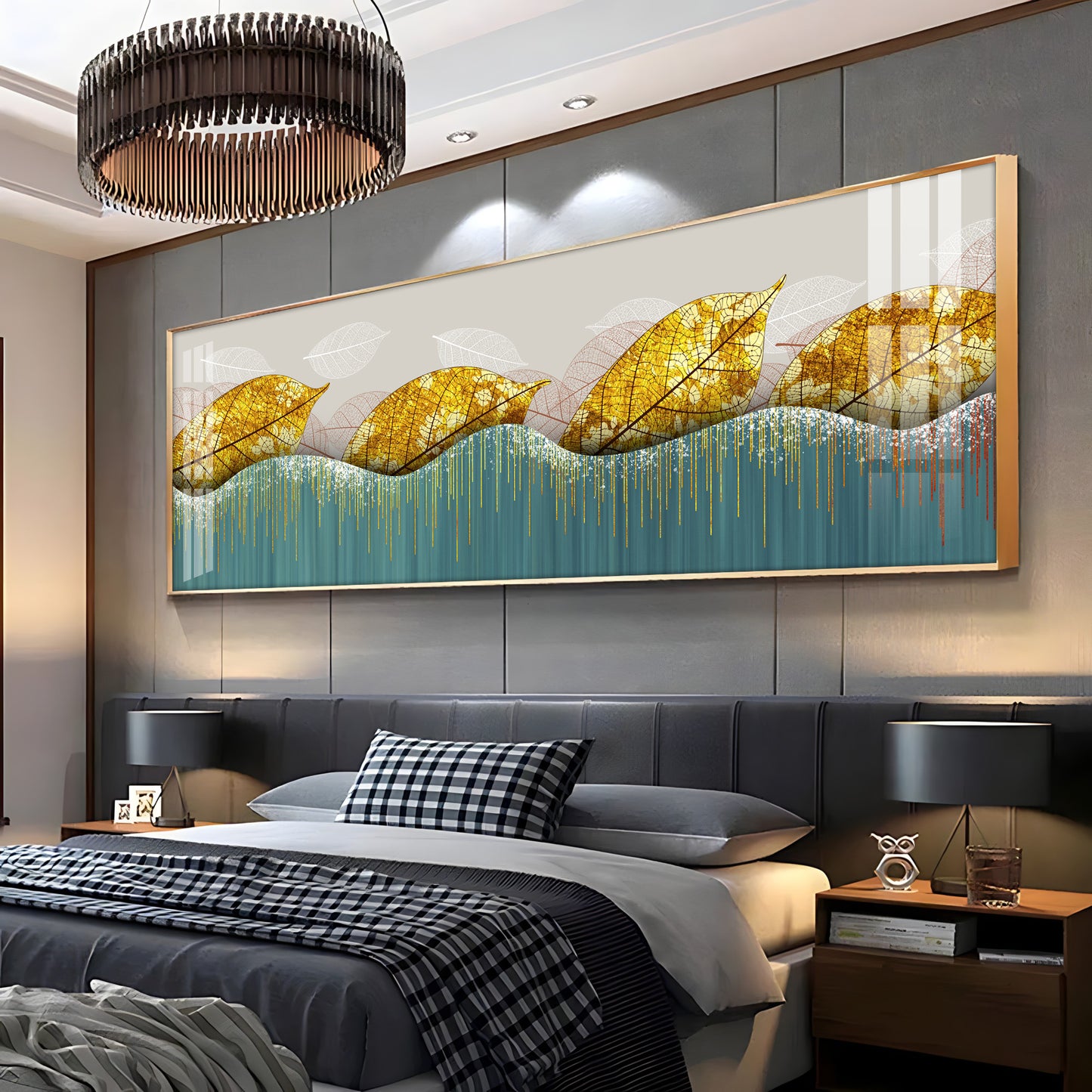 Lush Golden Leaves Luxury Crystal Horizontal Wall Art