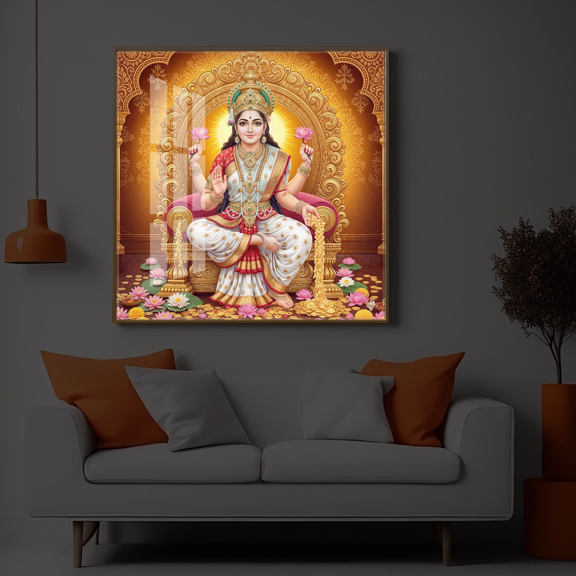 Maa Laxmi Modern Luxury Backlight Square Wall Art