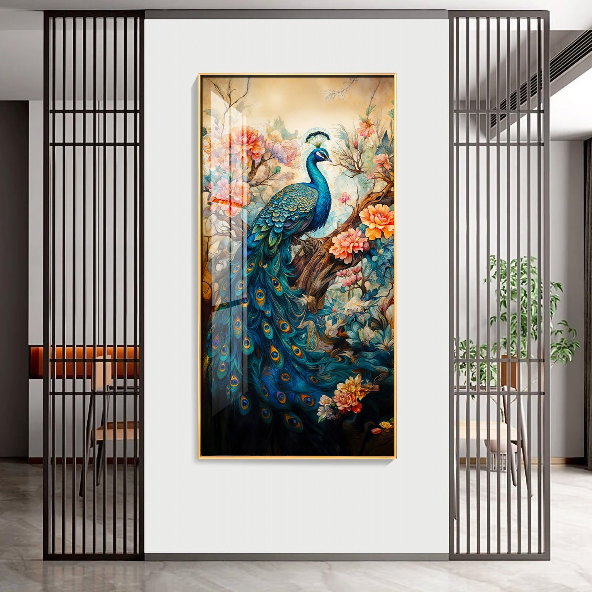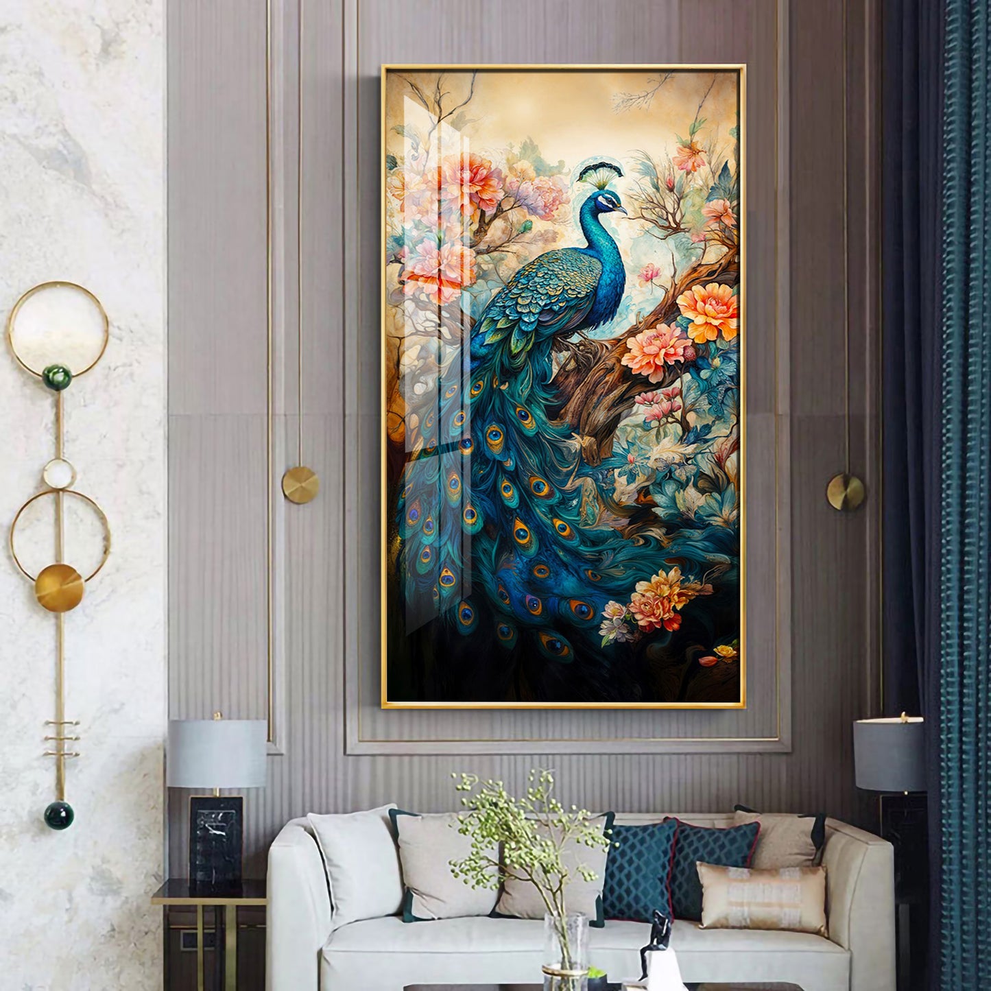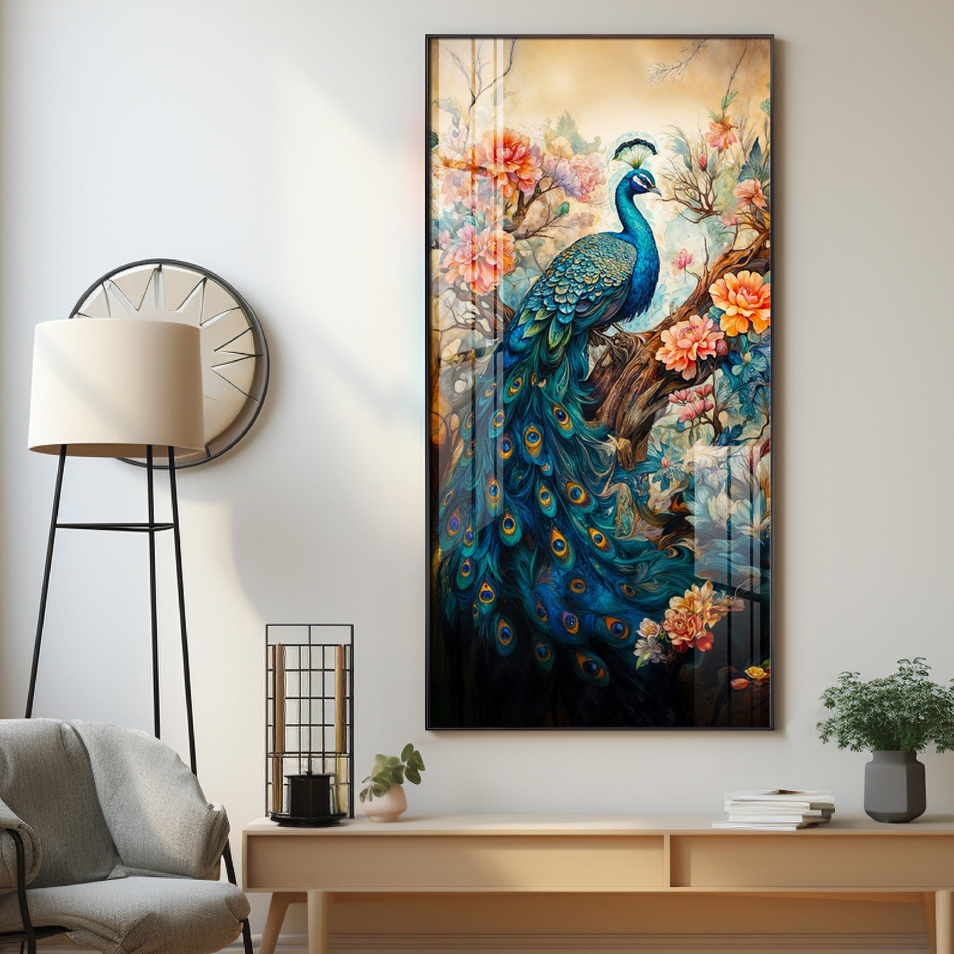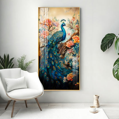 Majestic Peacock Art Premium Acrylic Vertical Wall Art