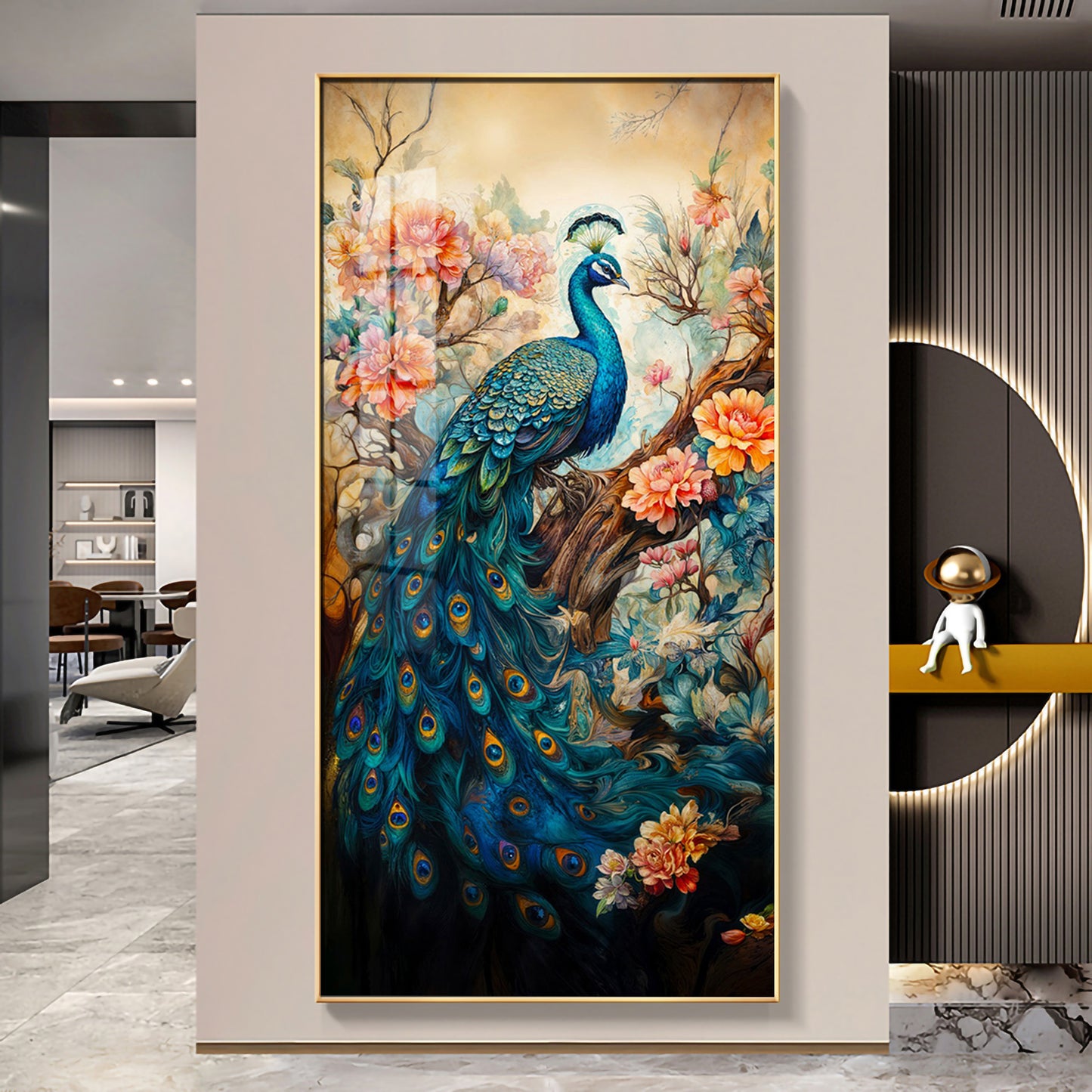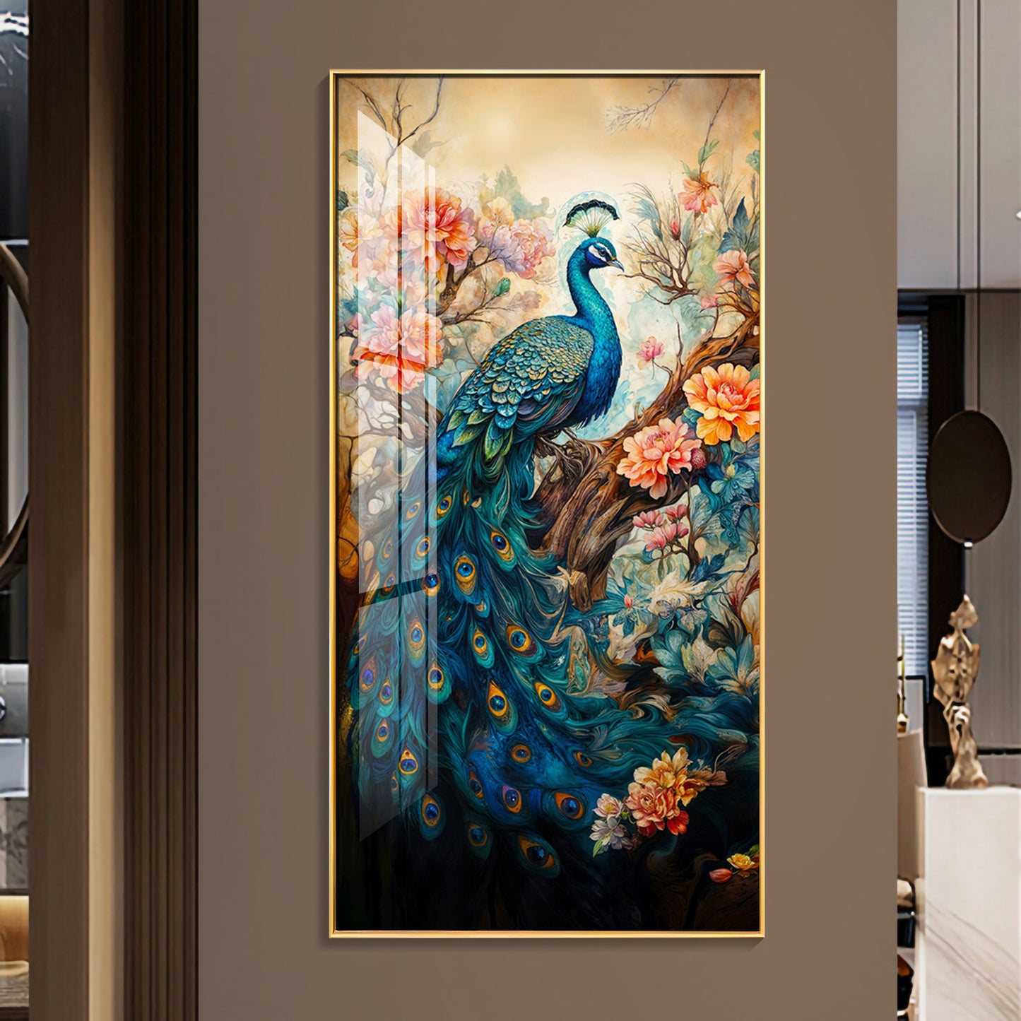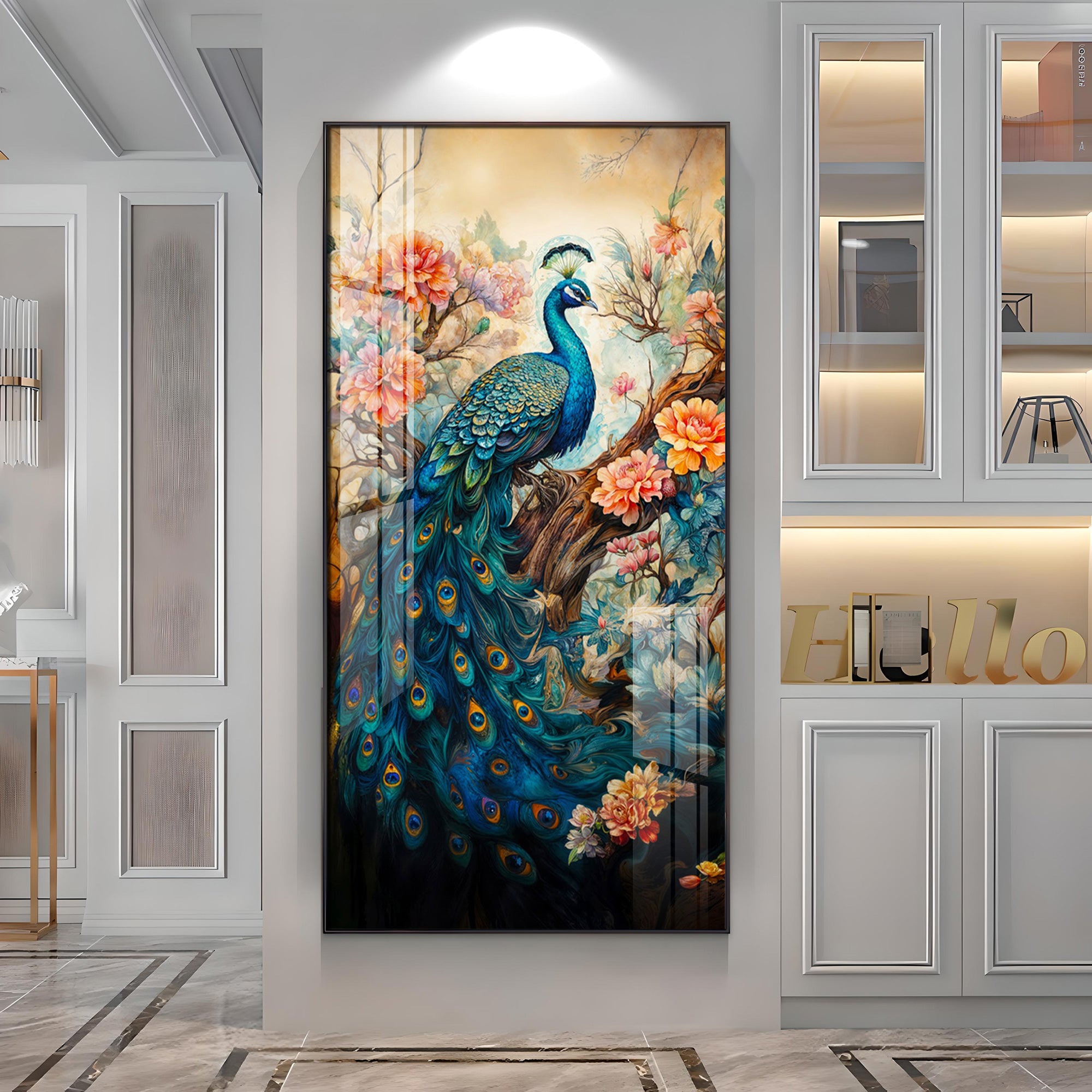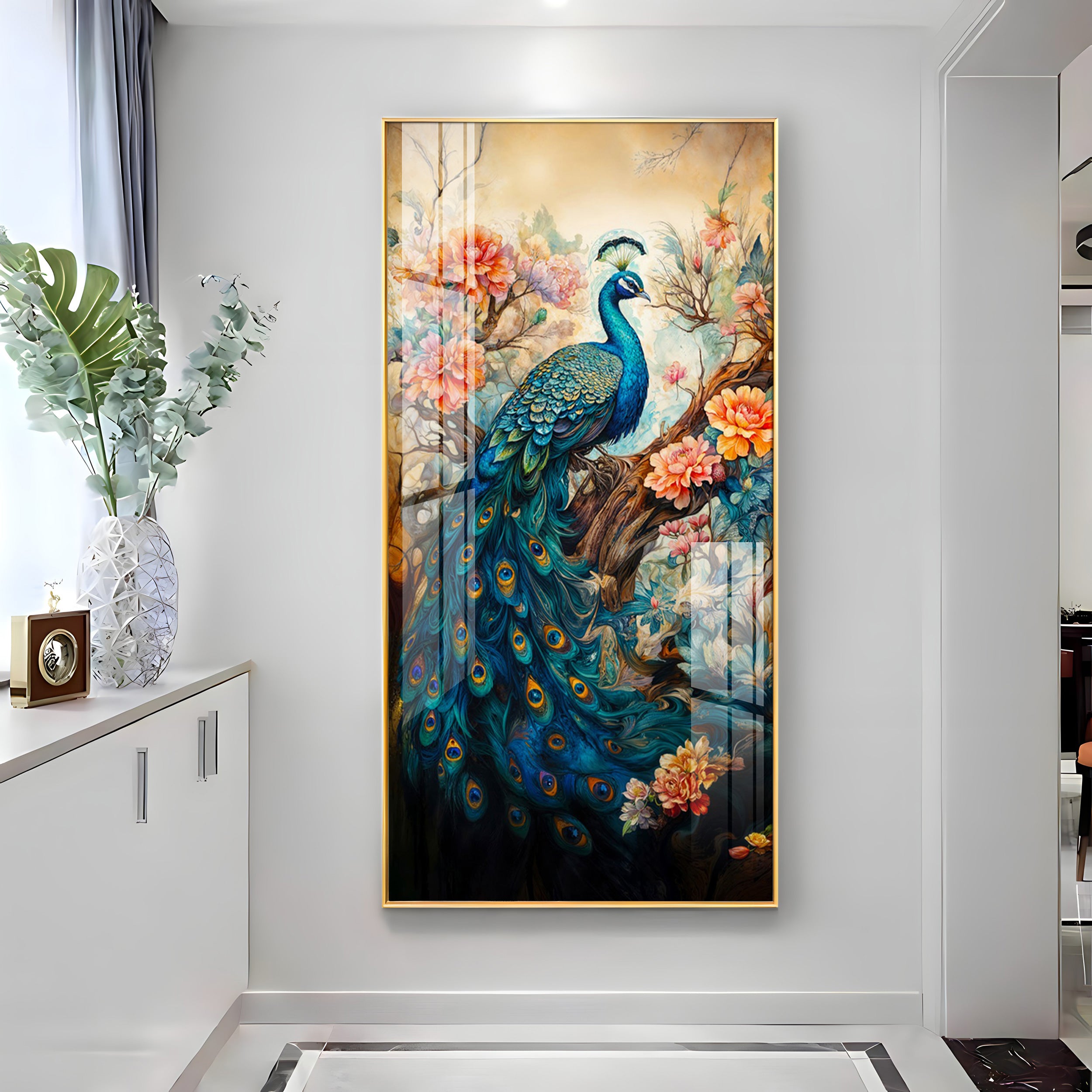 Majestic Peacock Art Premium Acrylic Vertical Wall Art