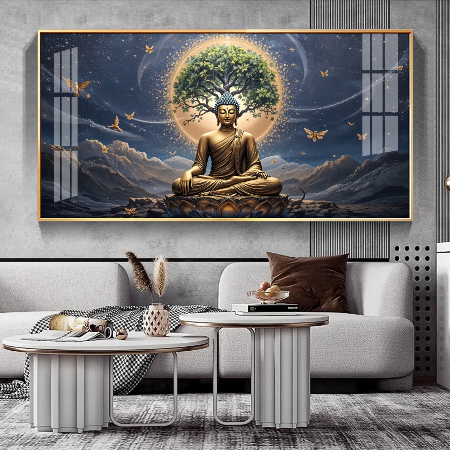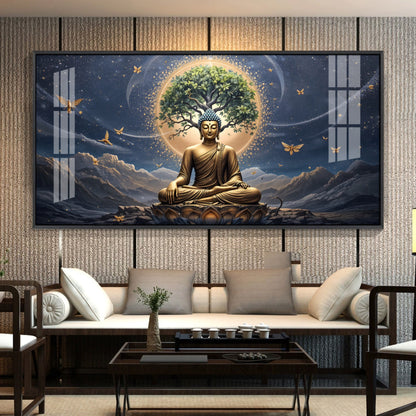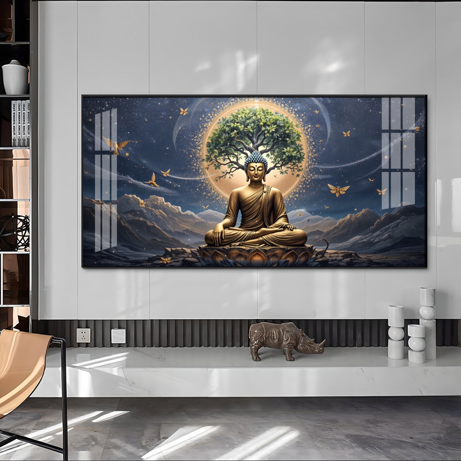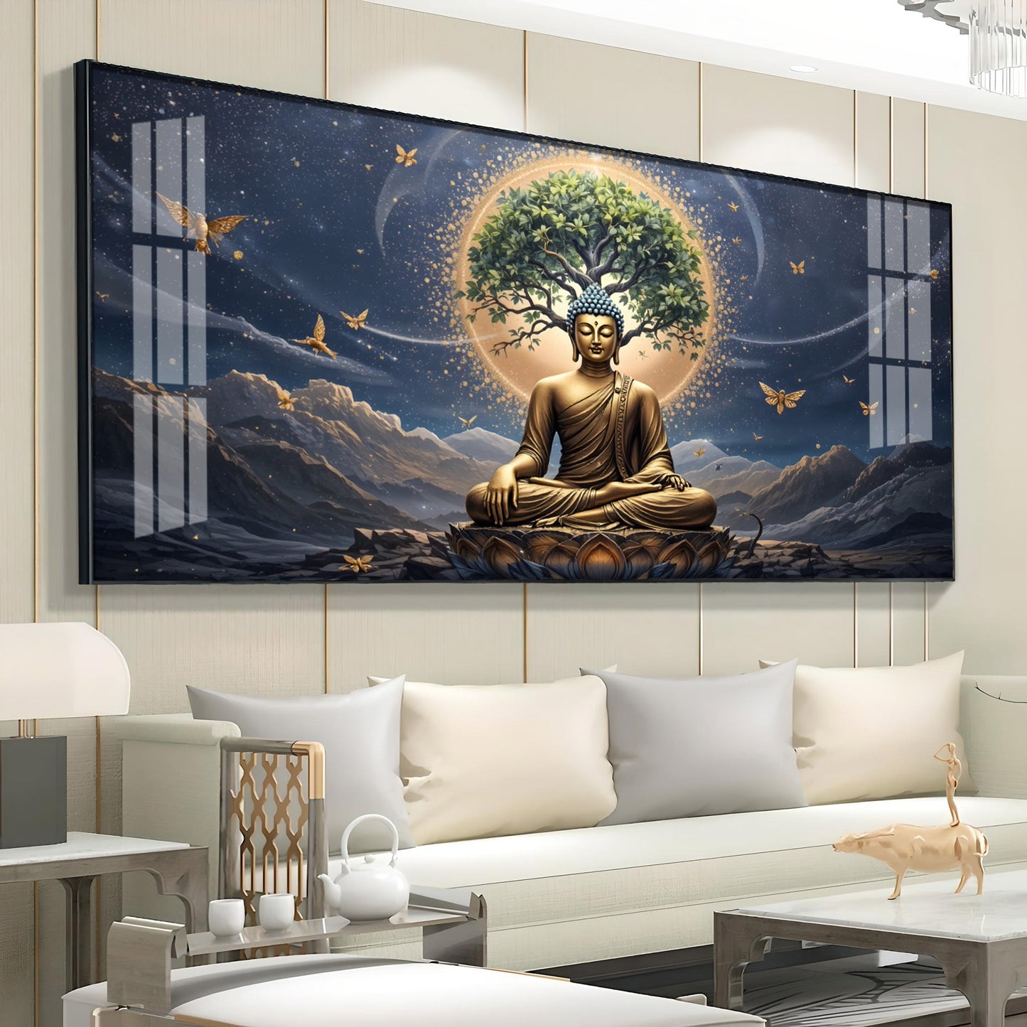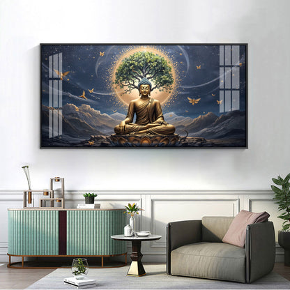 Meditating Buddha In Night Premium Acrylic Horizontal Wall Art