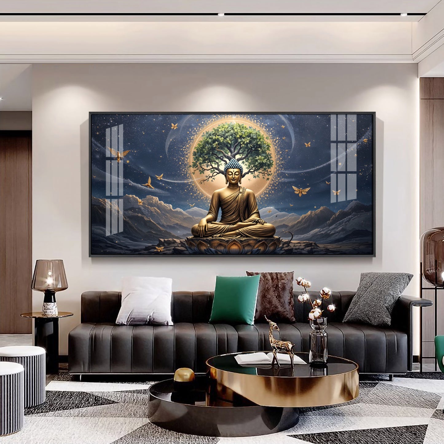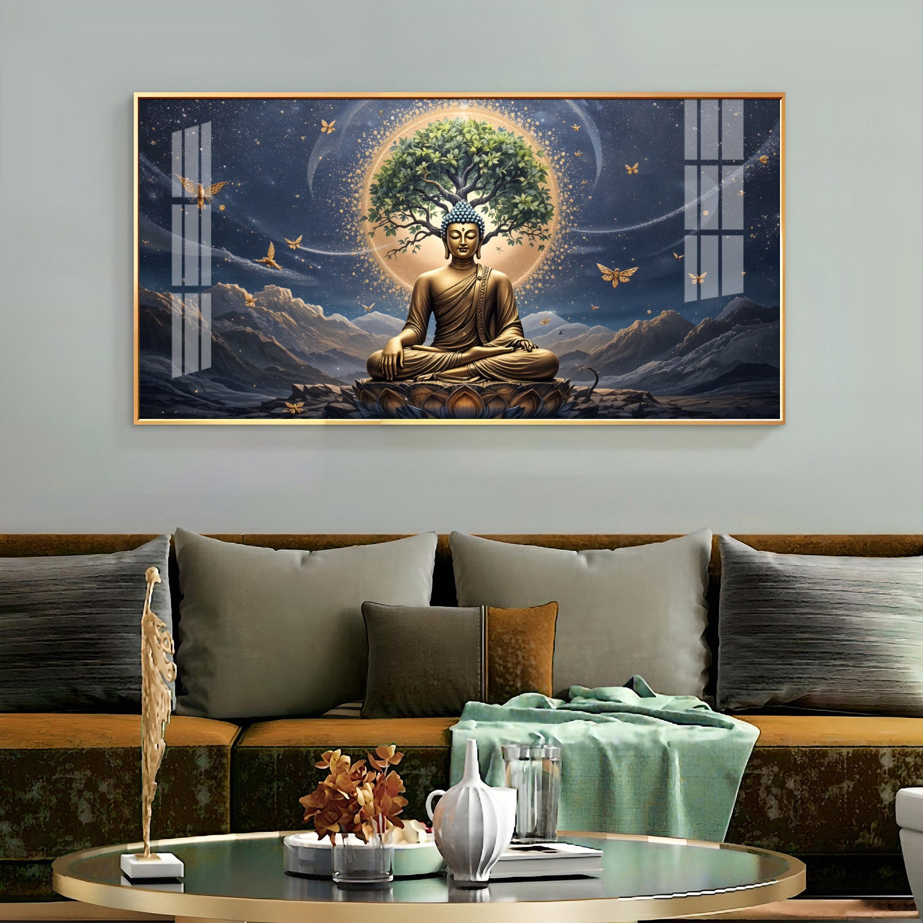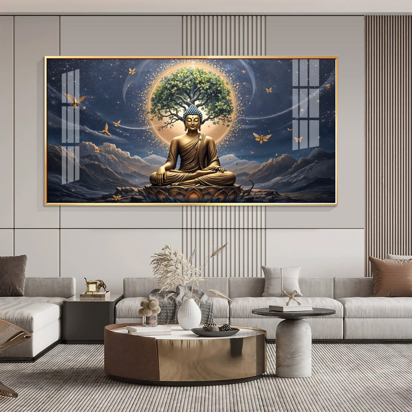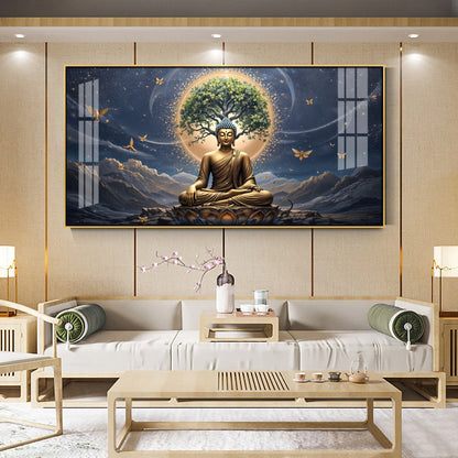 Meditating Buddha In Night Premium Acrylic Horizontal Wall Art