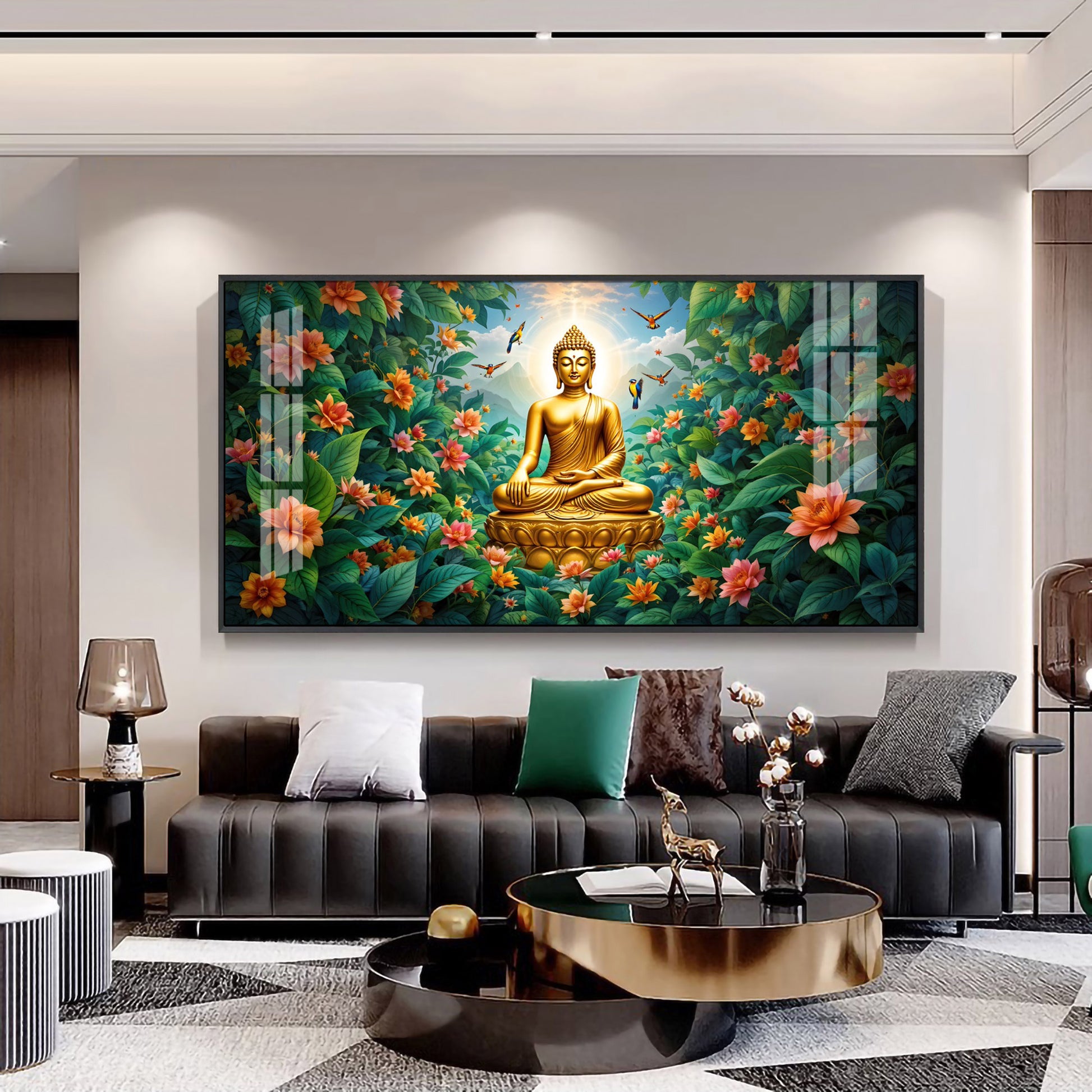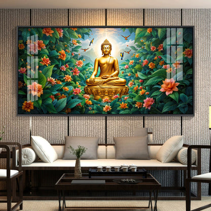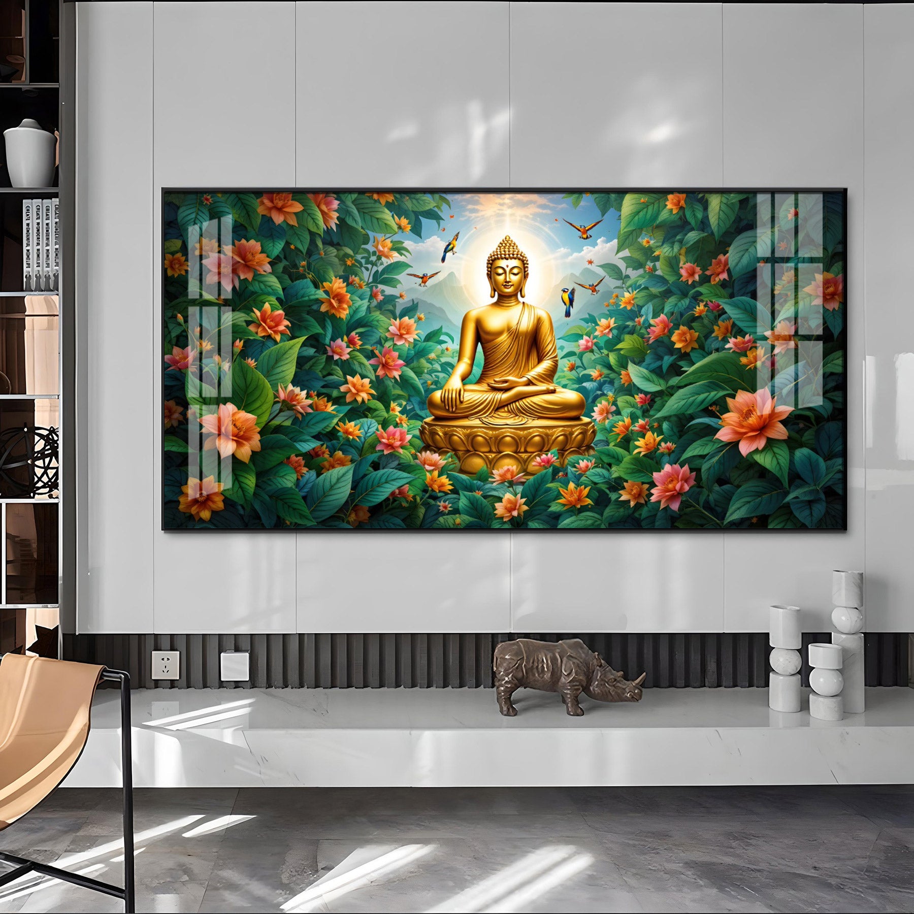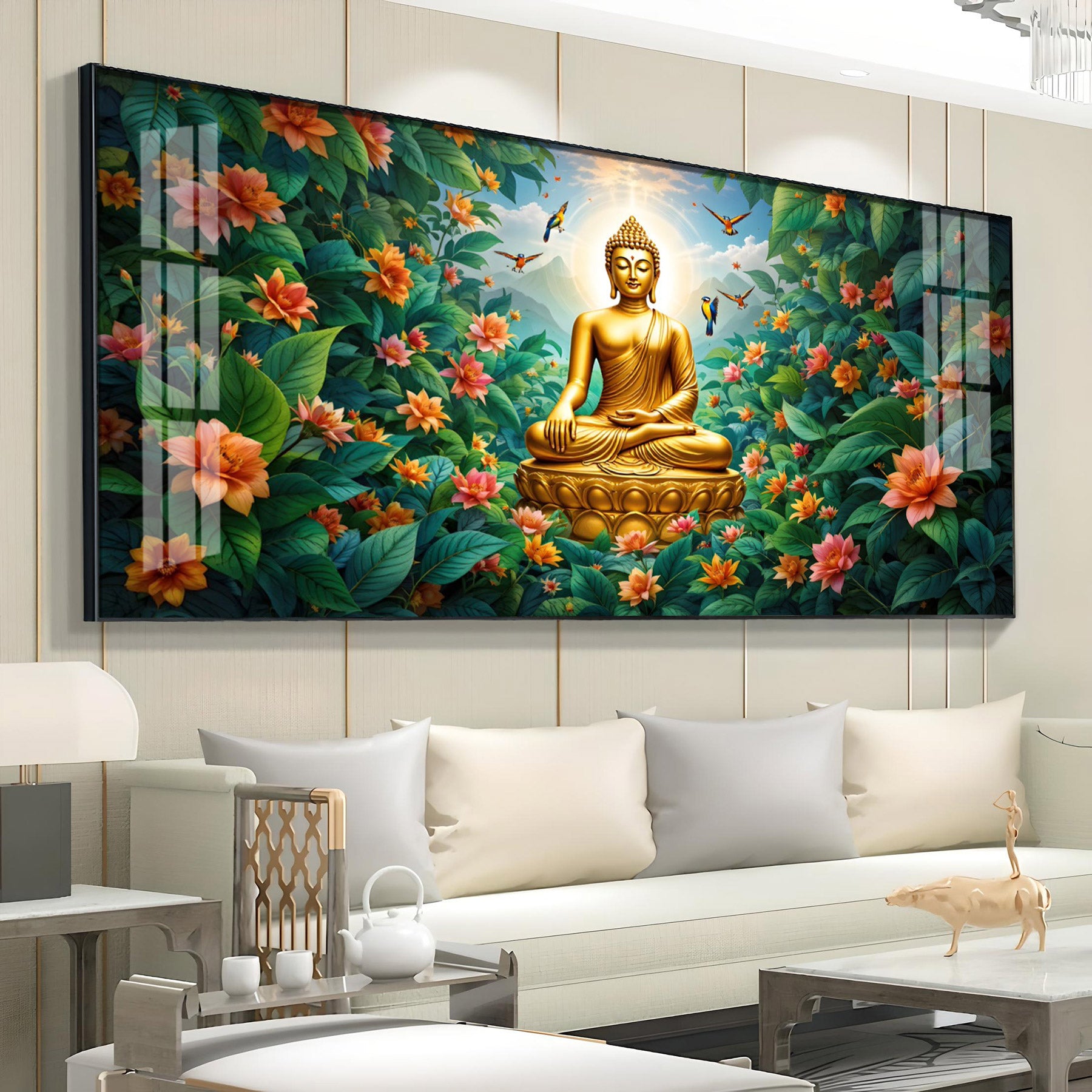 Mindful Living Buddha With Flower Premium Acrylic Horizontal Wall Art