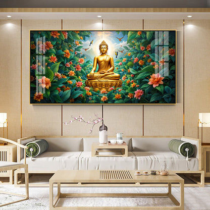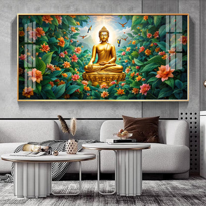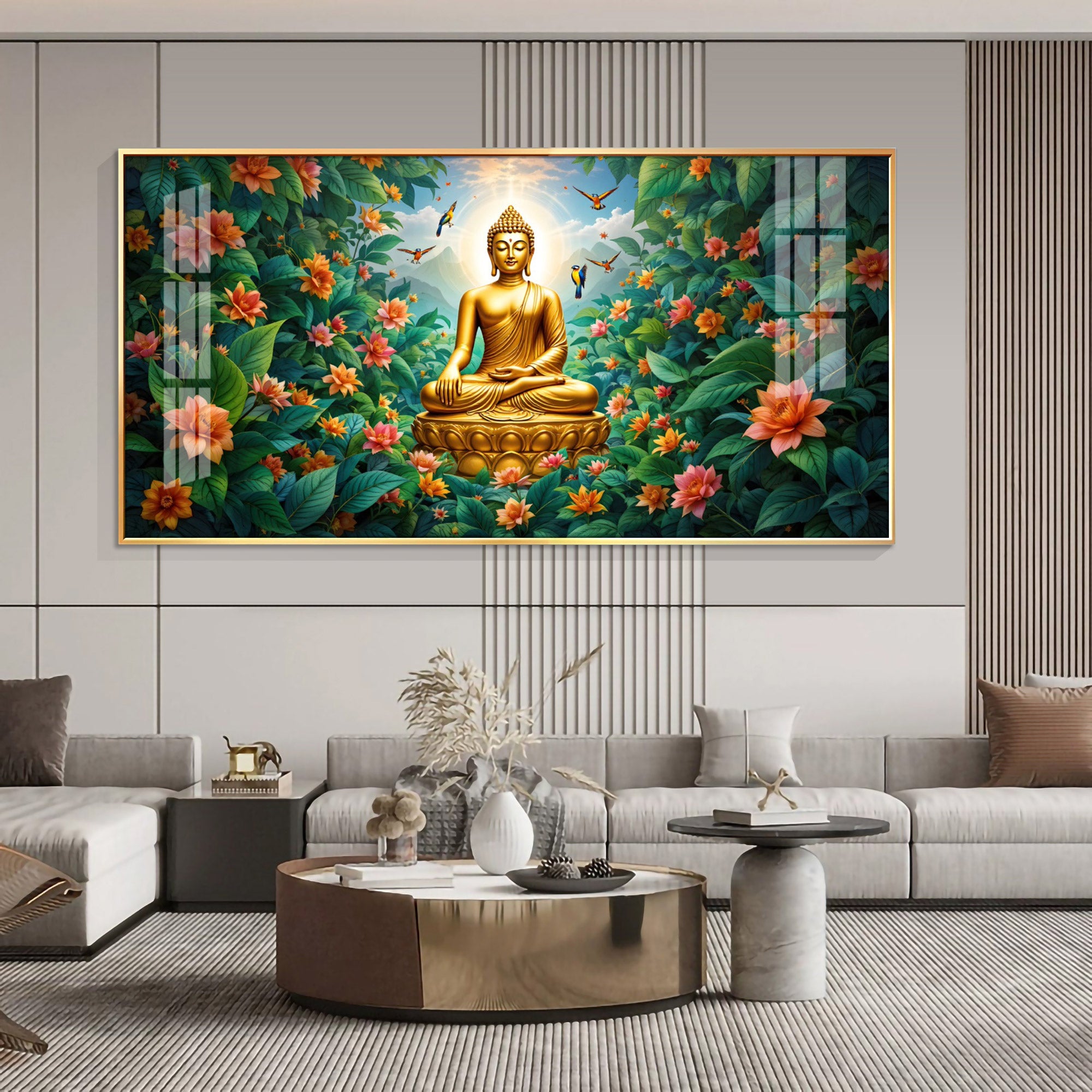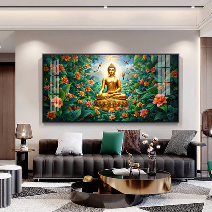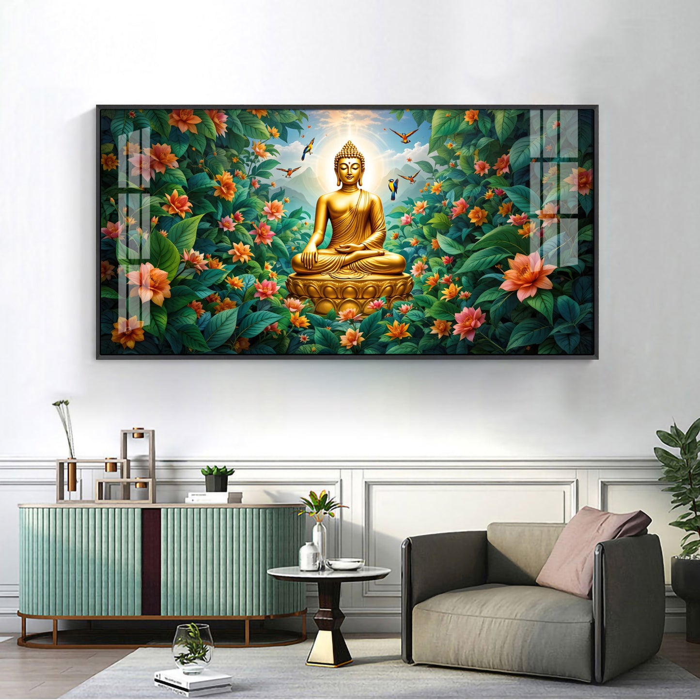 Mindful Living Buddha With Flower Premium Acrylic Horizontal Wall Art
