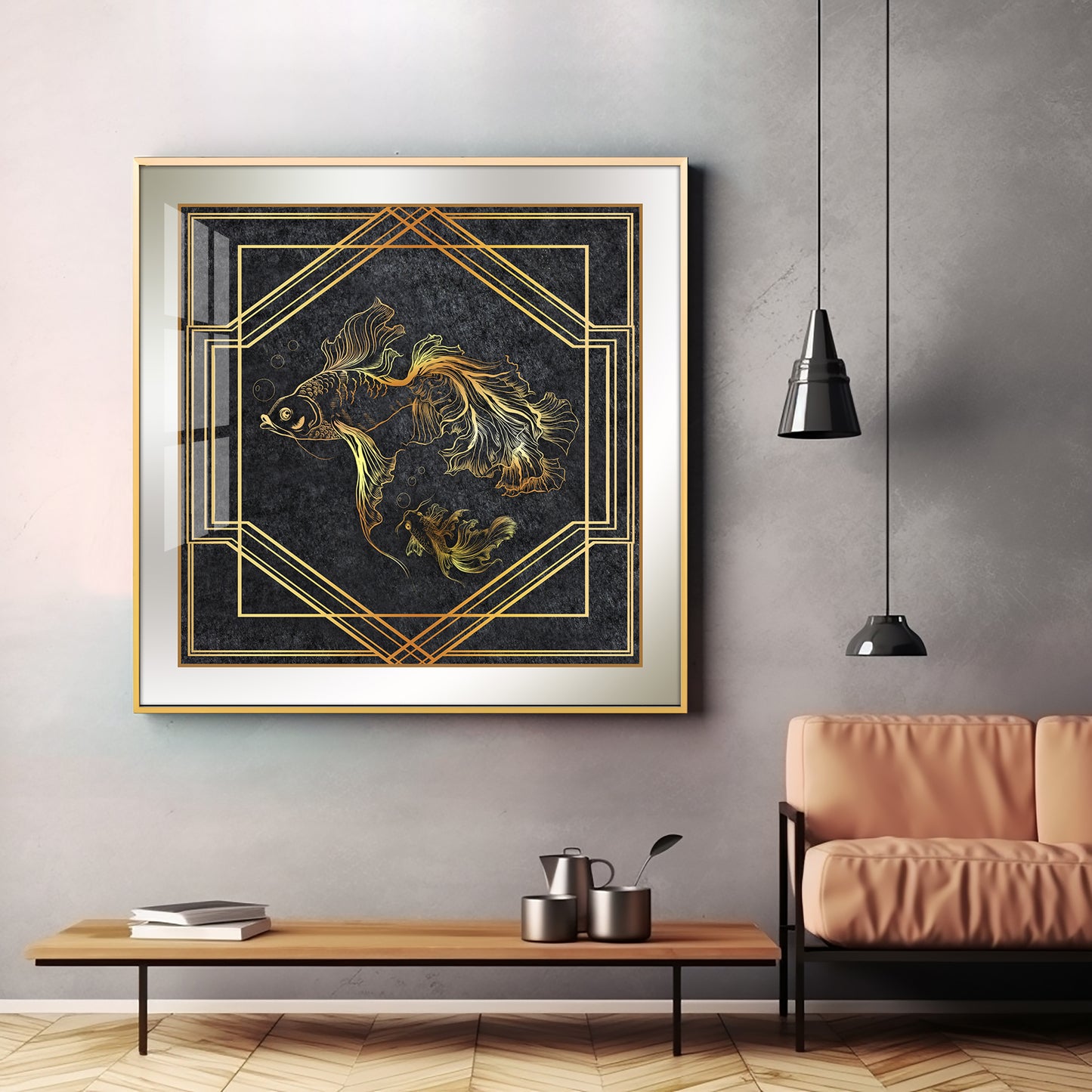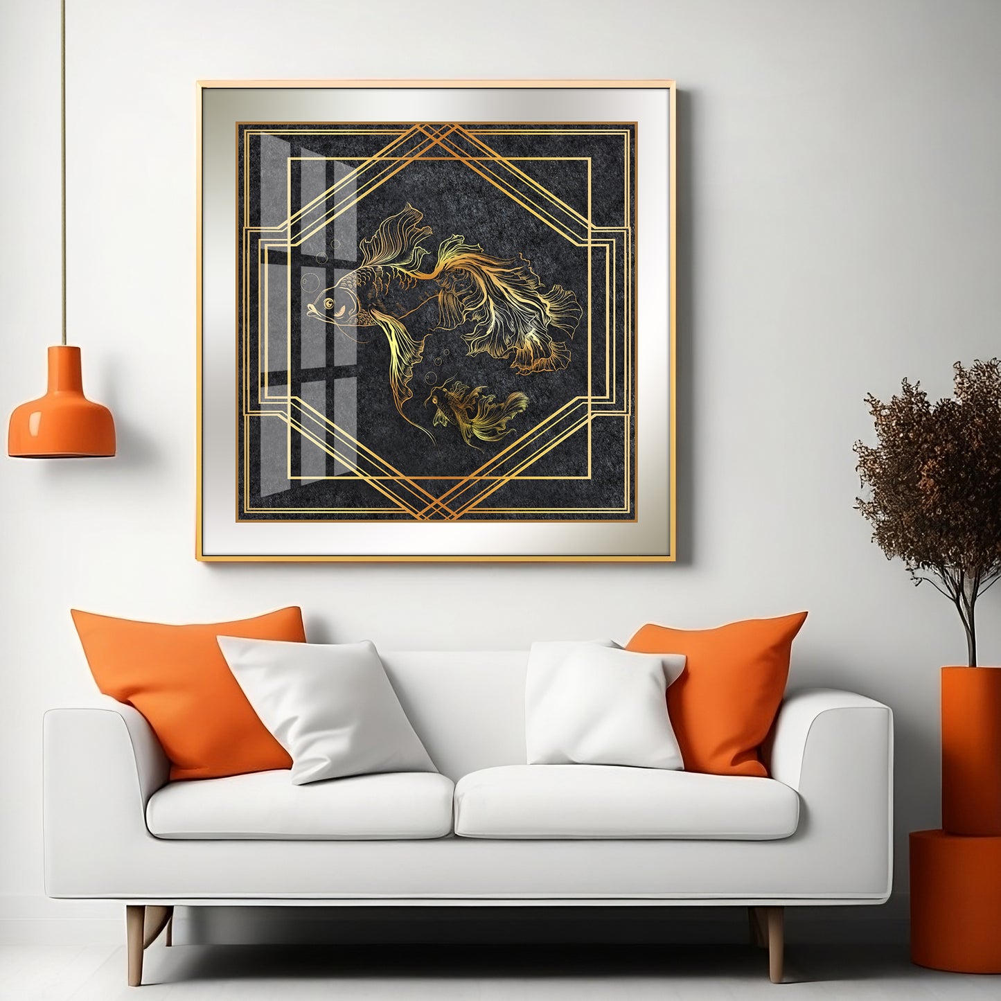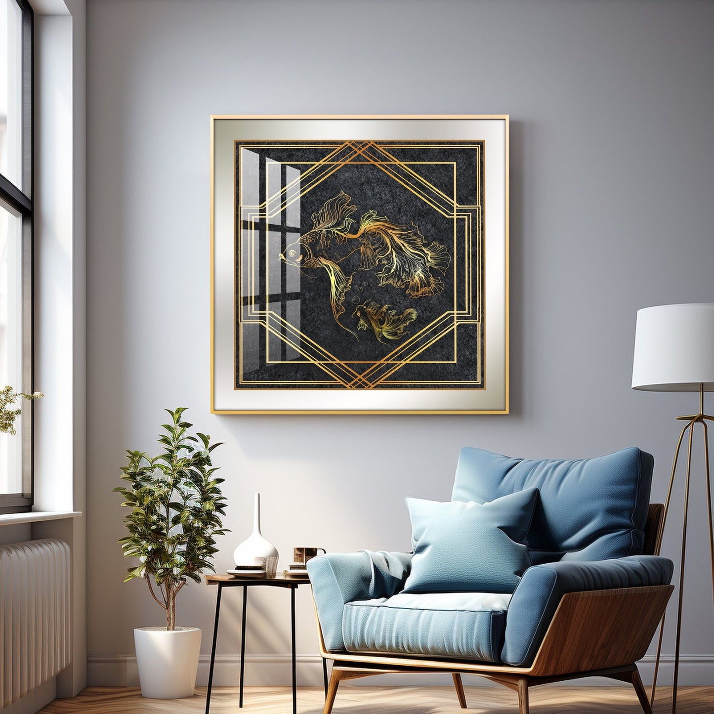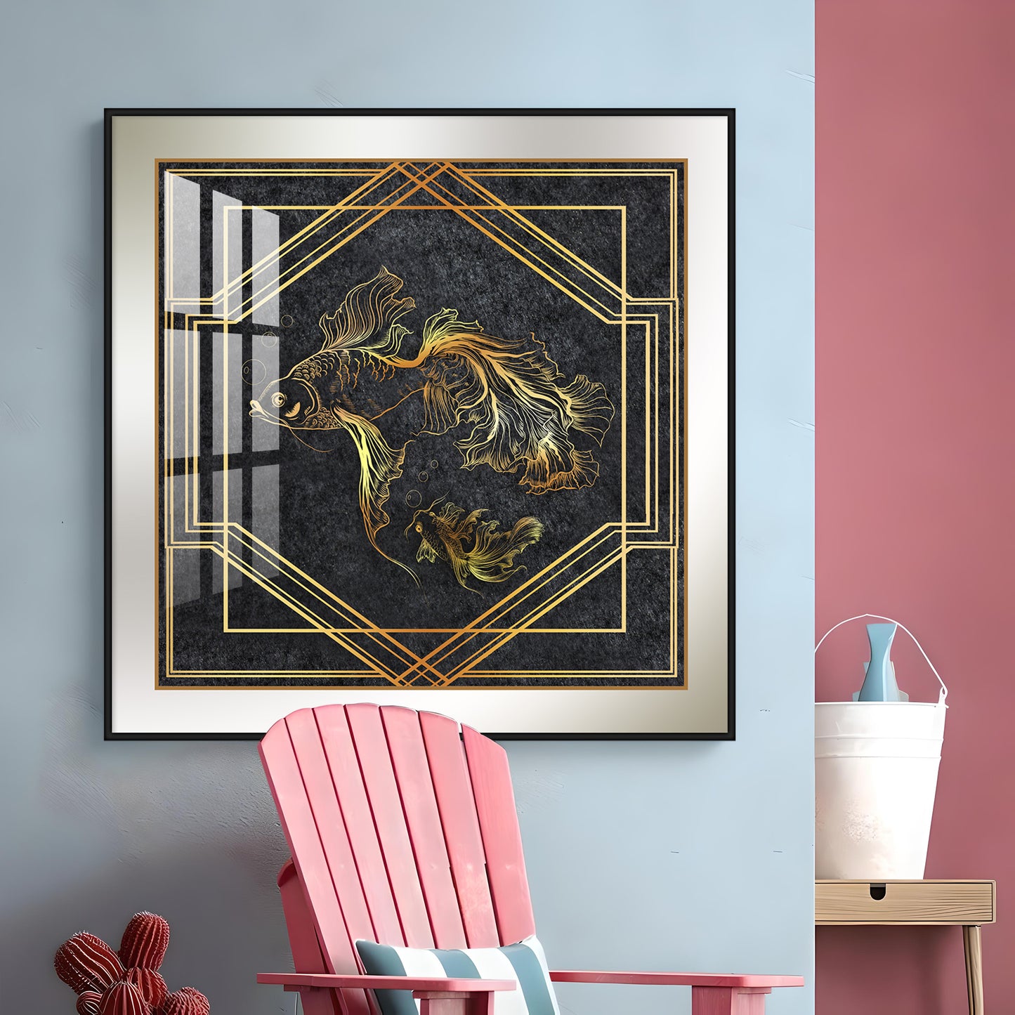 Modern Fashionable Gold Foil Goldfish Premium Acrylic Square Wall Art