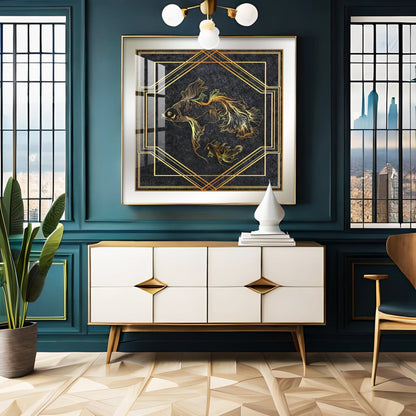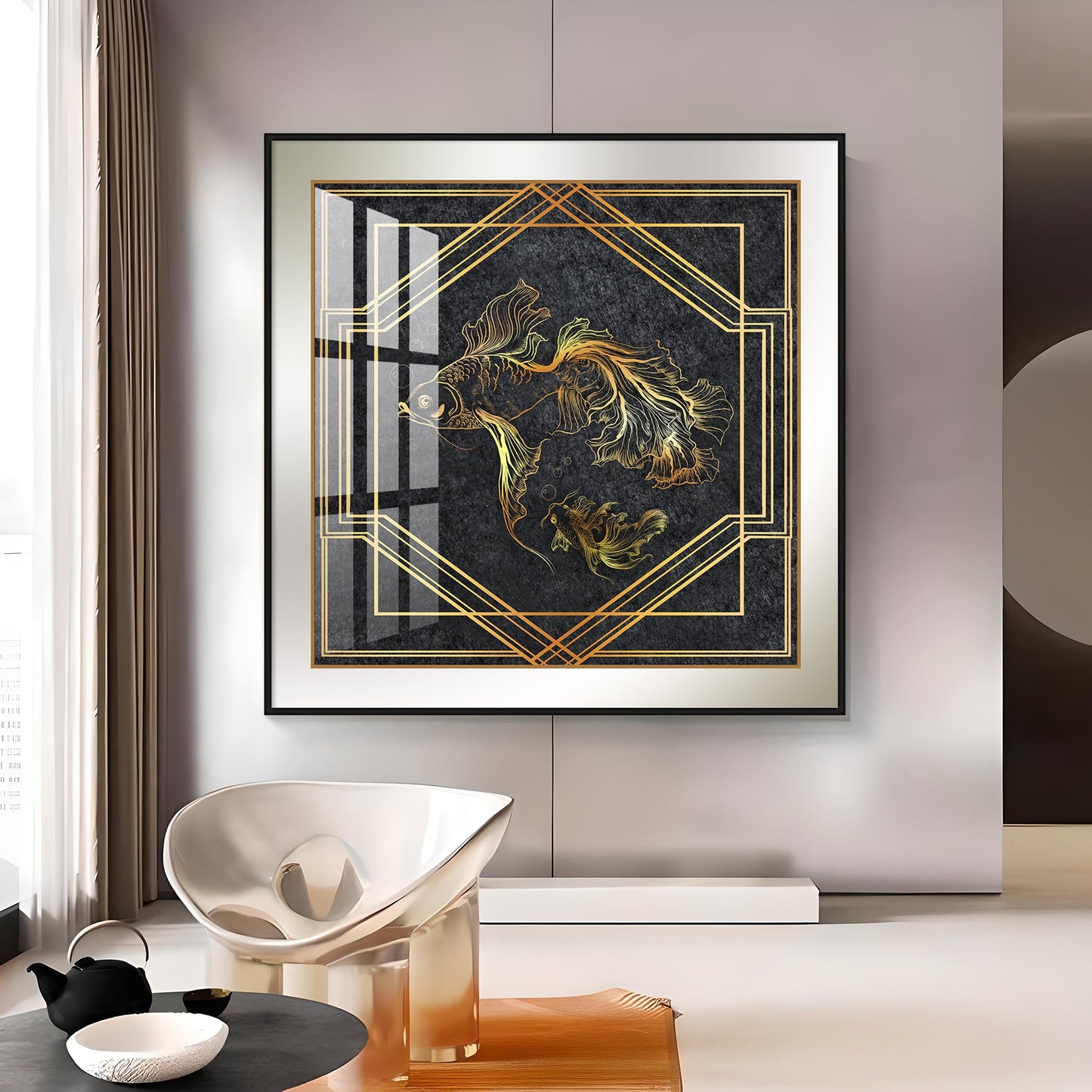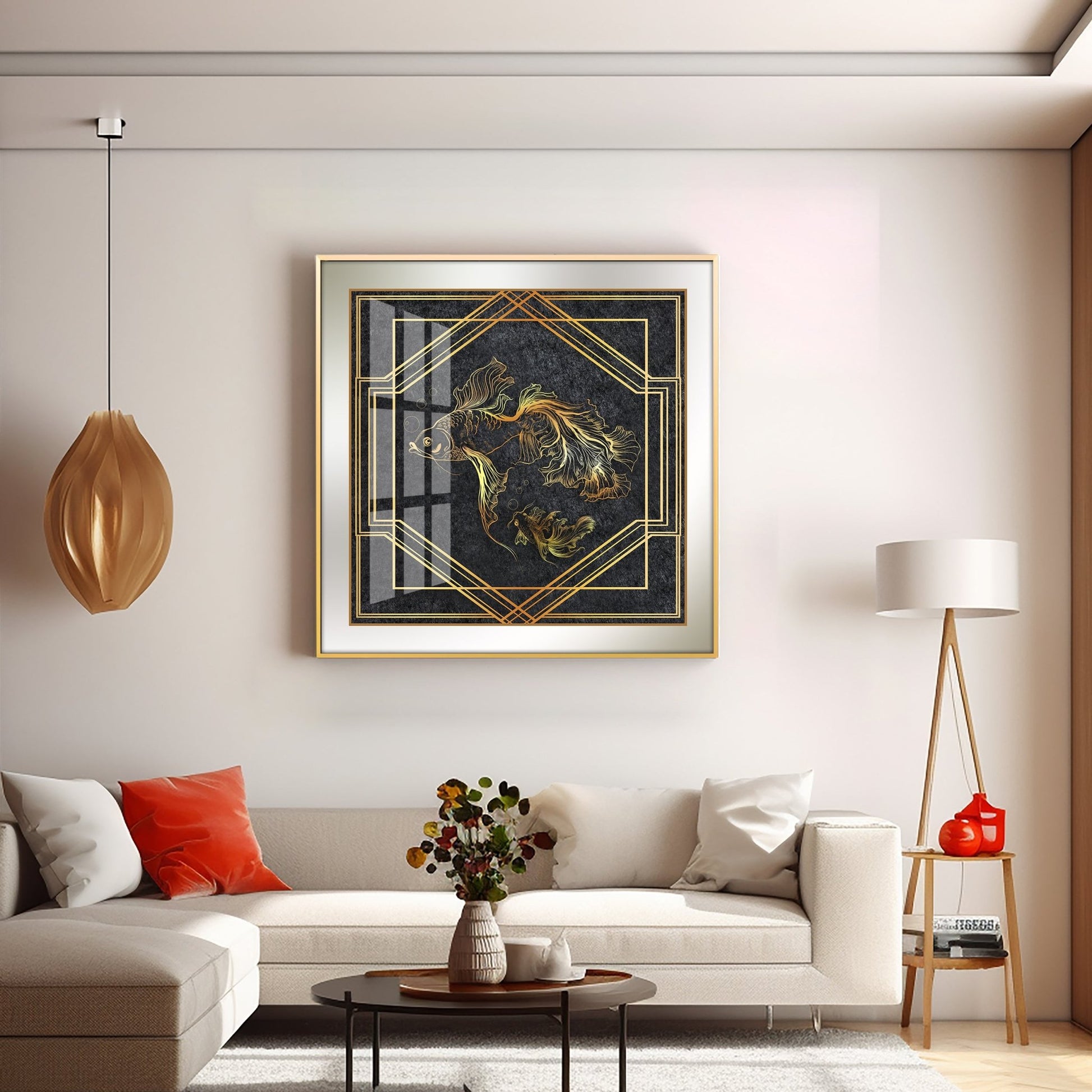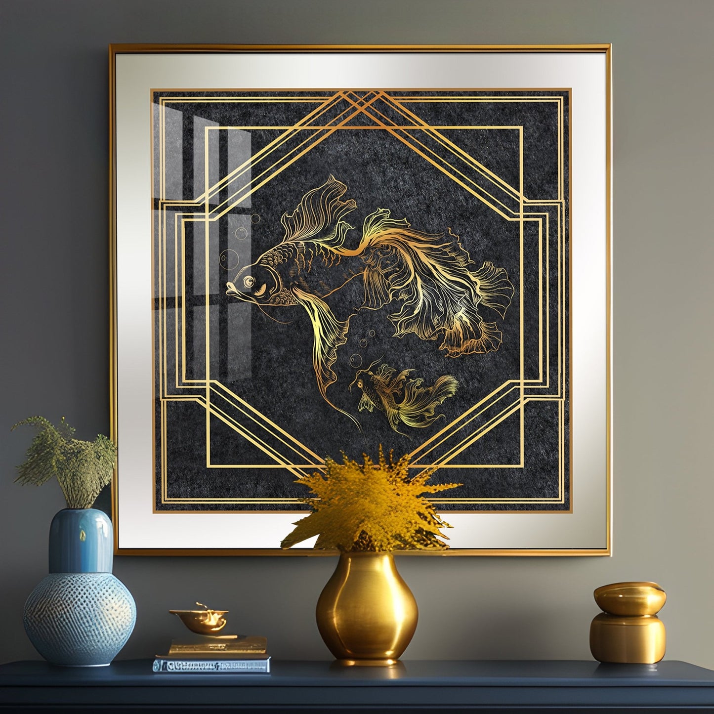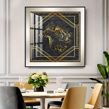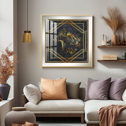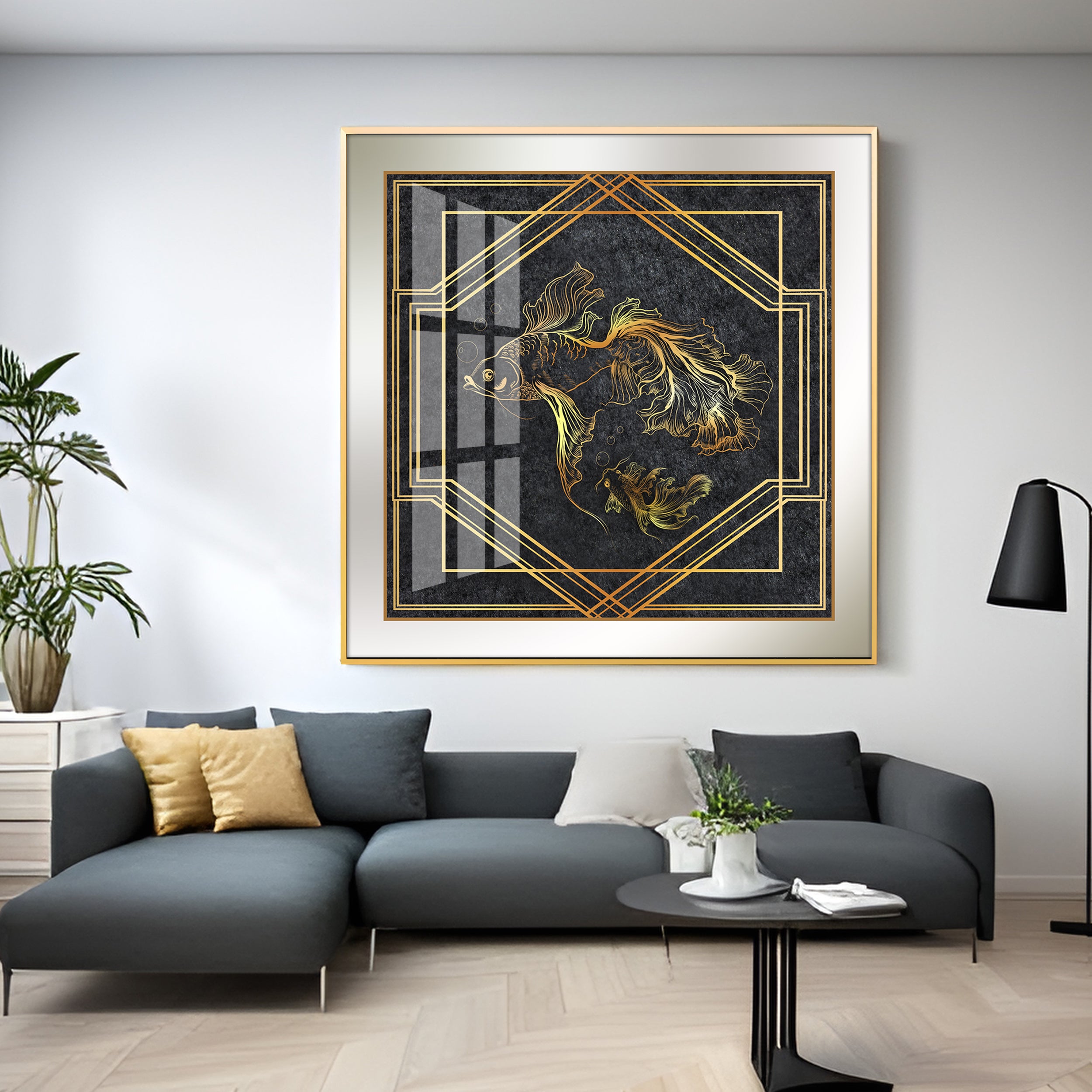 Modern Fashionable Gold Foil Goldfish Premium Acrylic Square Wall Art