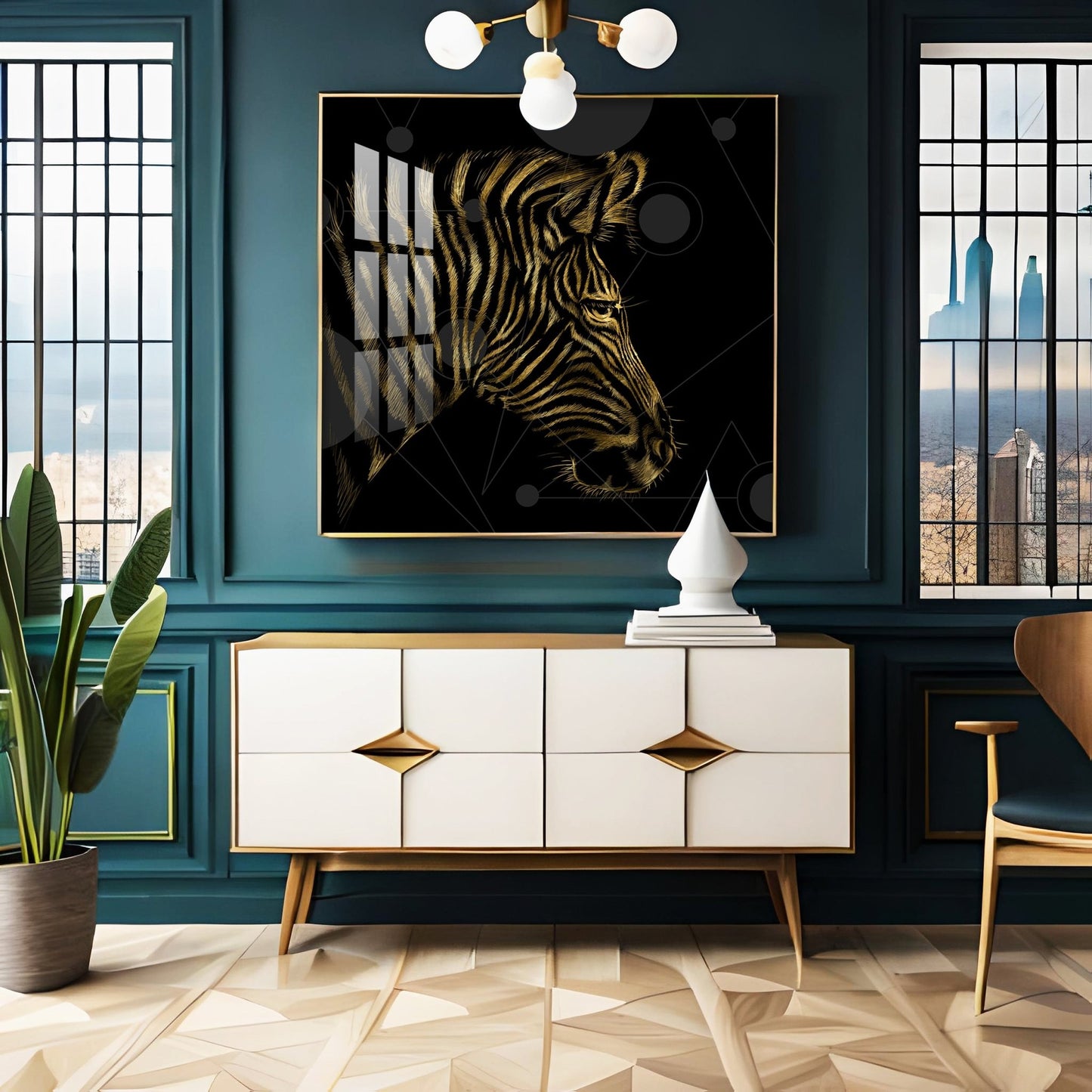 Modern Zebra Abstract Art Living Room Premium Acrylic Square Wall Art