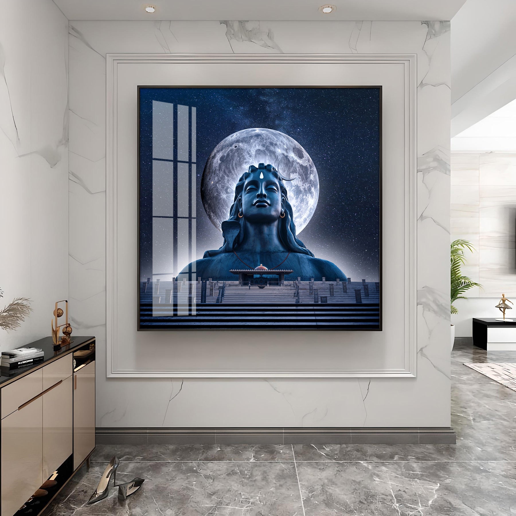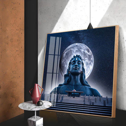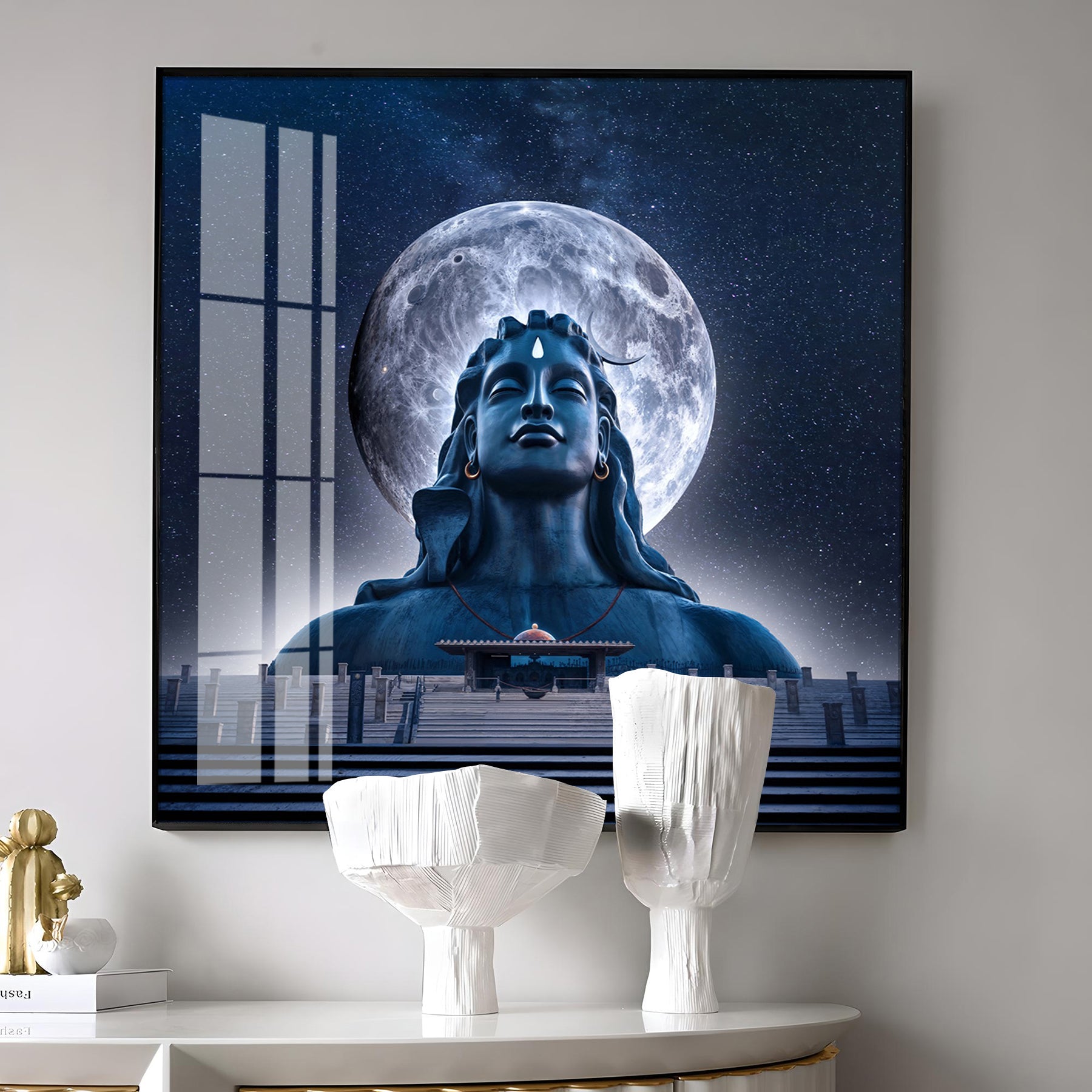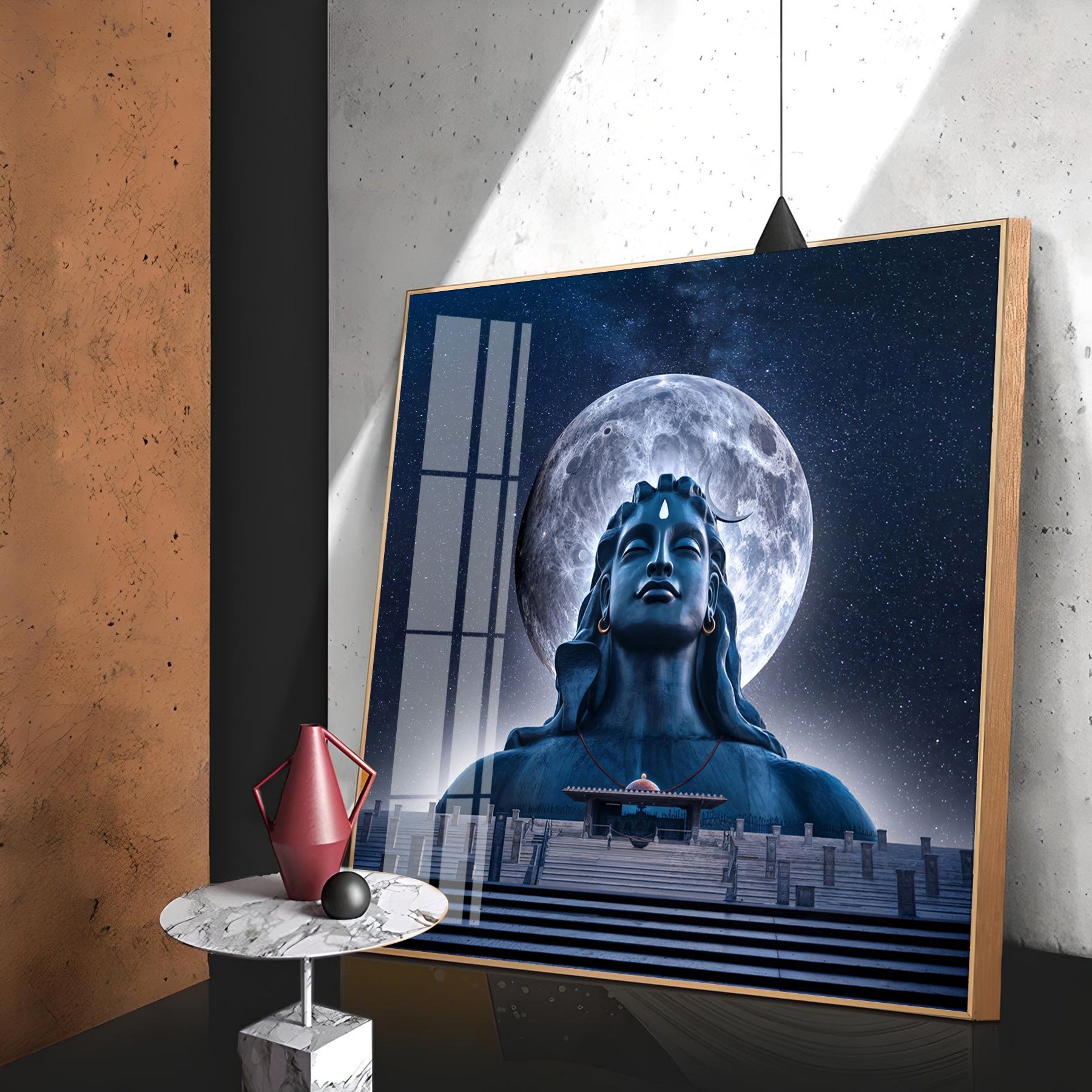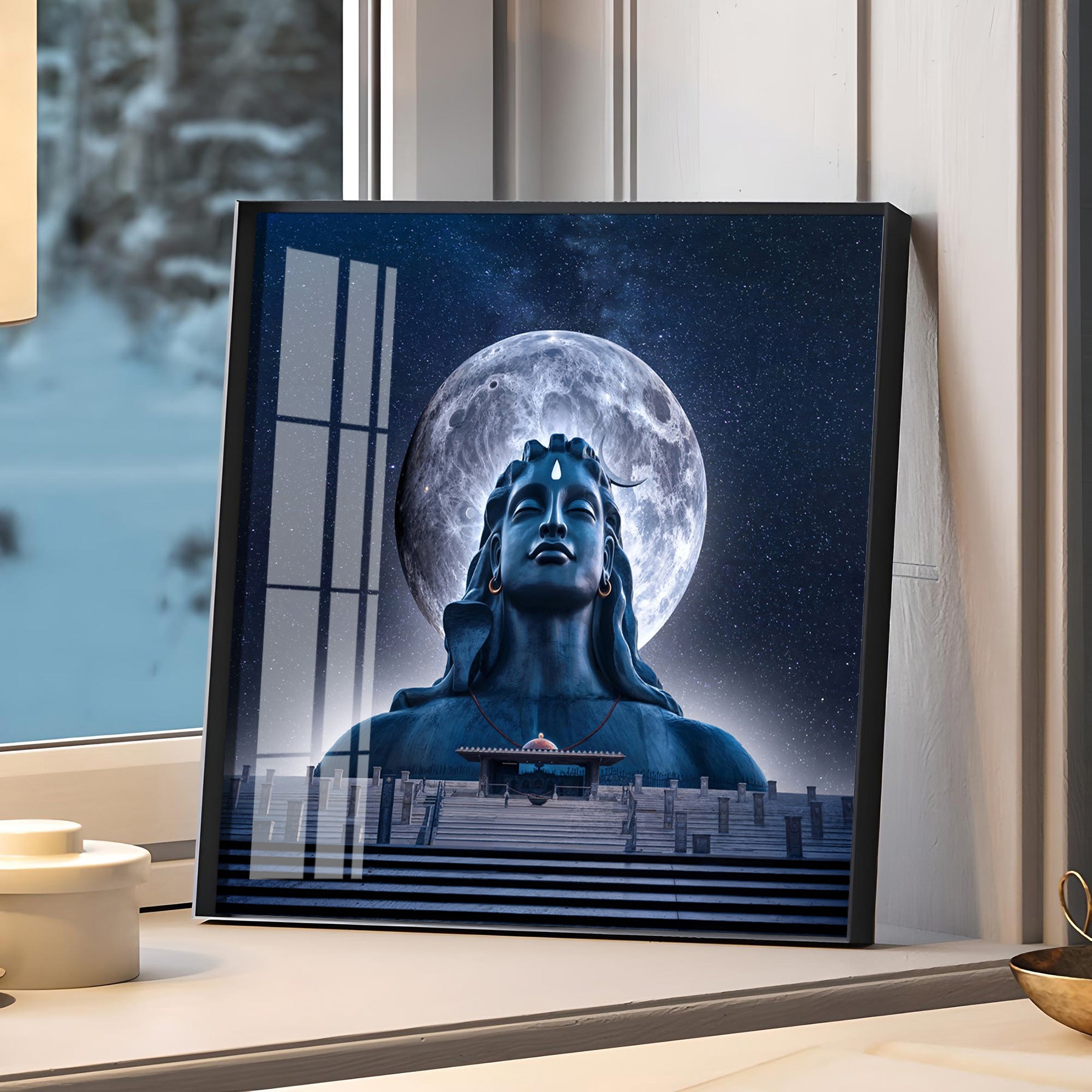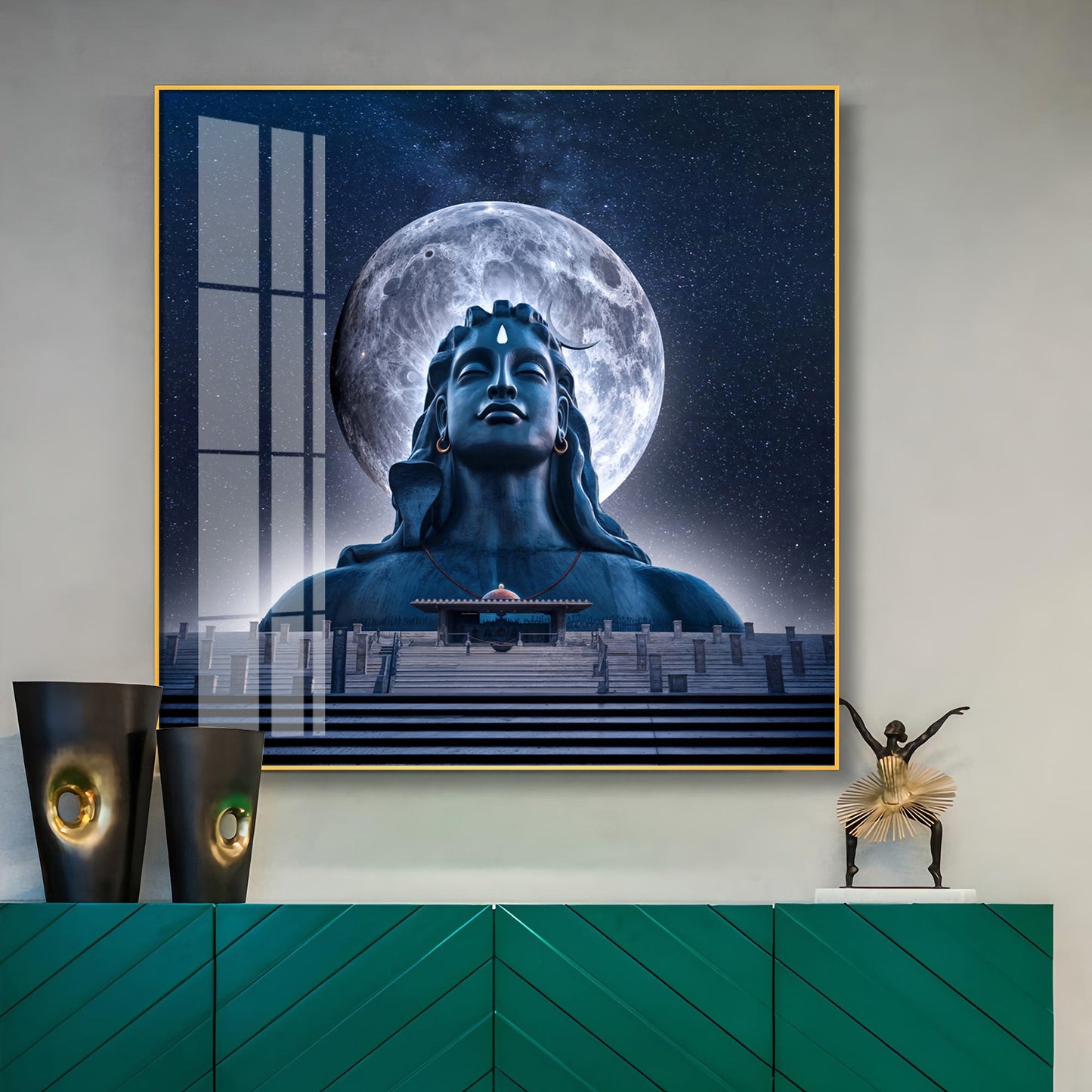 Moon Behind Mahadev Premium Acrylic Square Wall Art