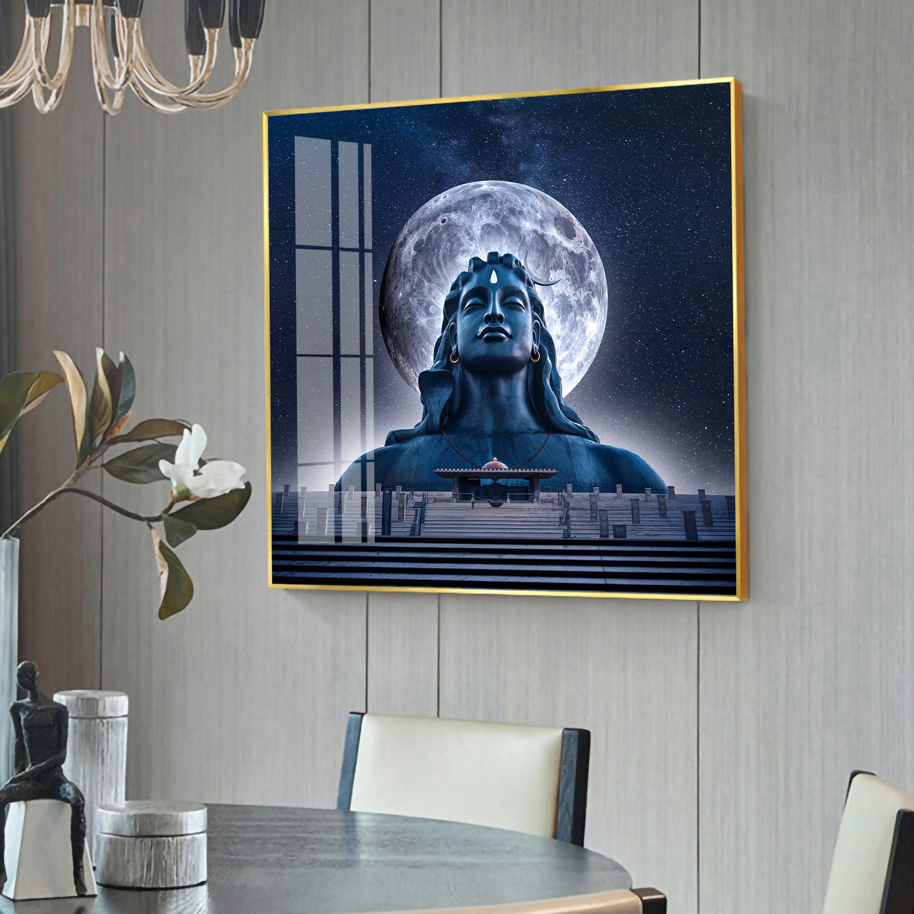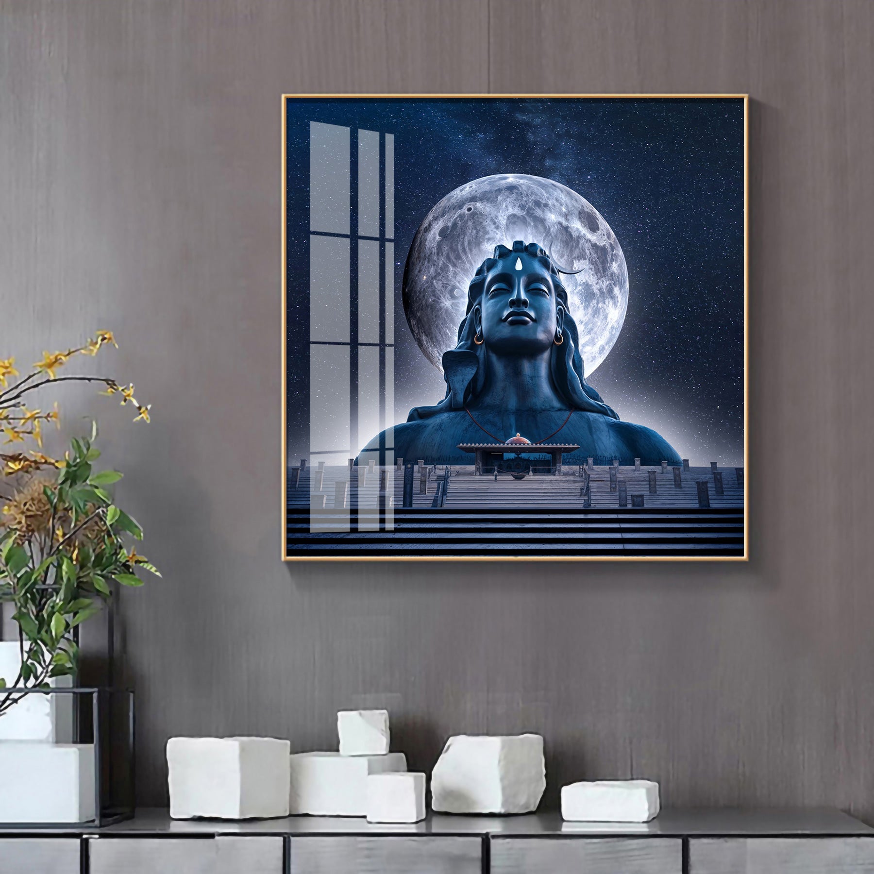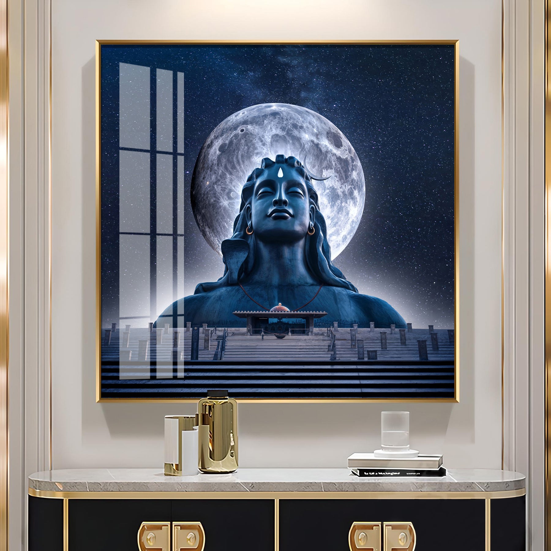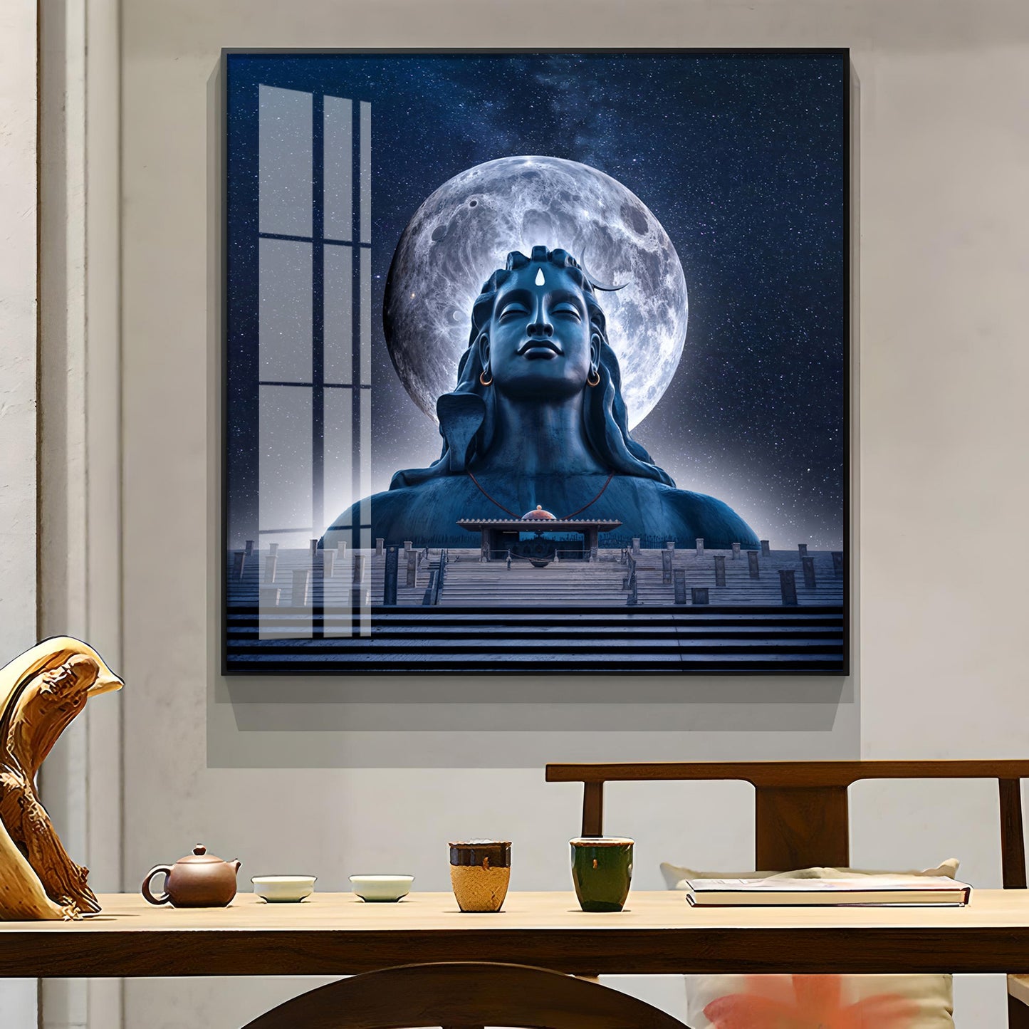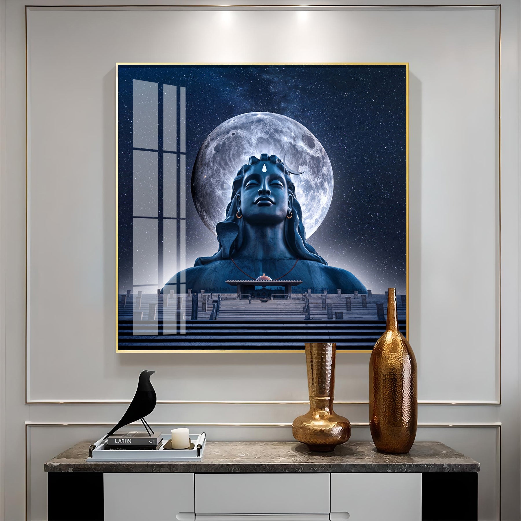 Moon Behind Mahadev Premium Acrylic Square Wall Art