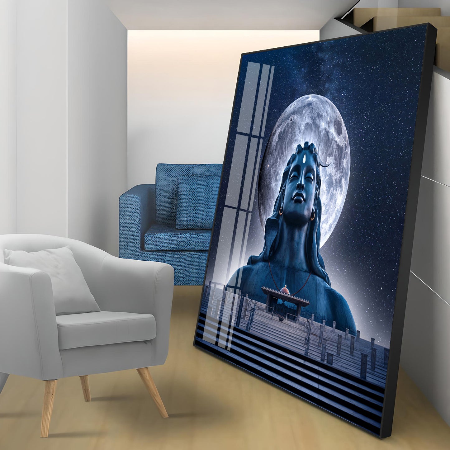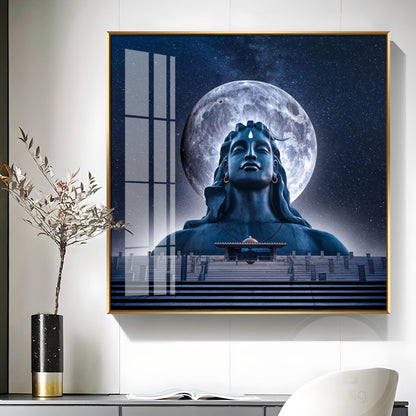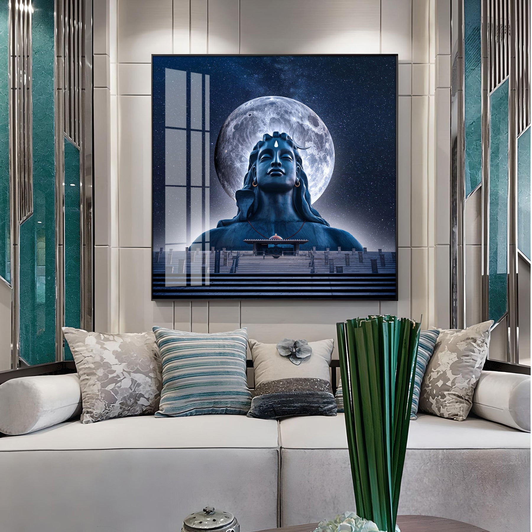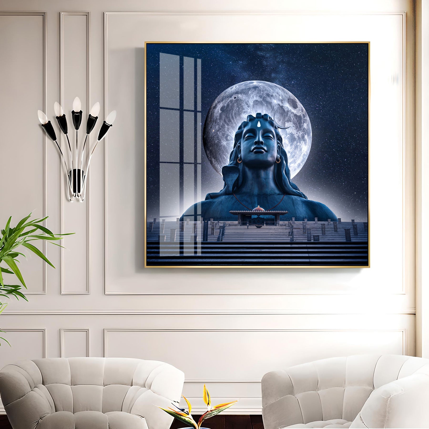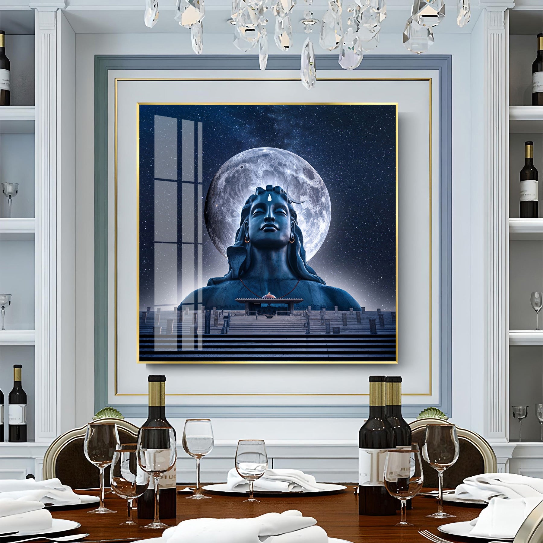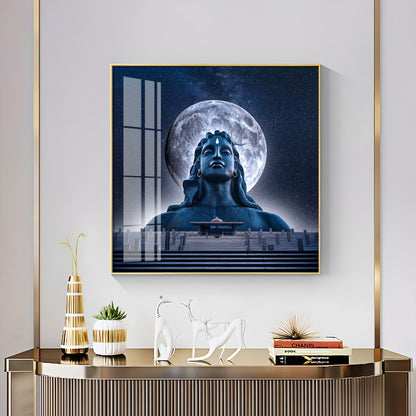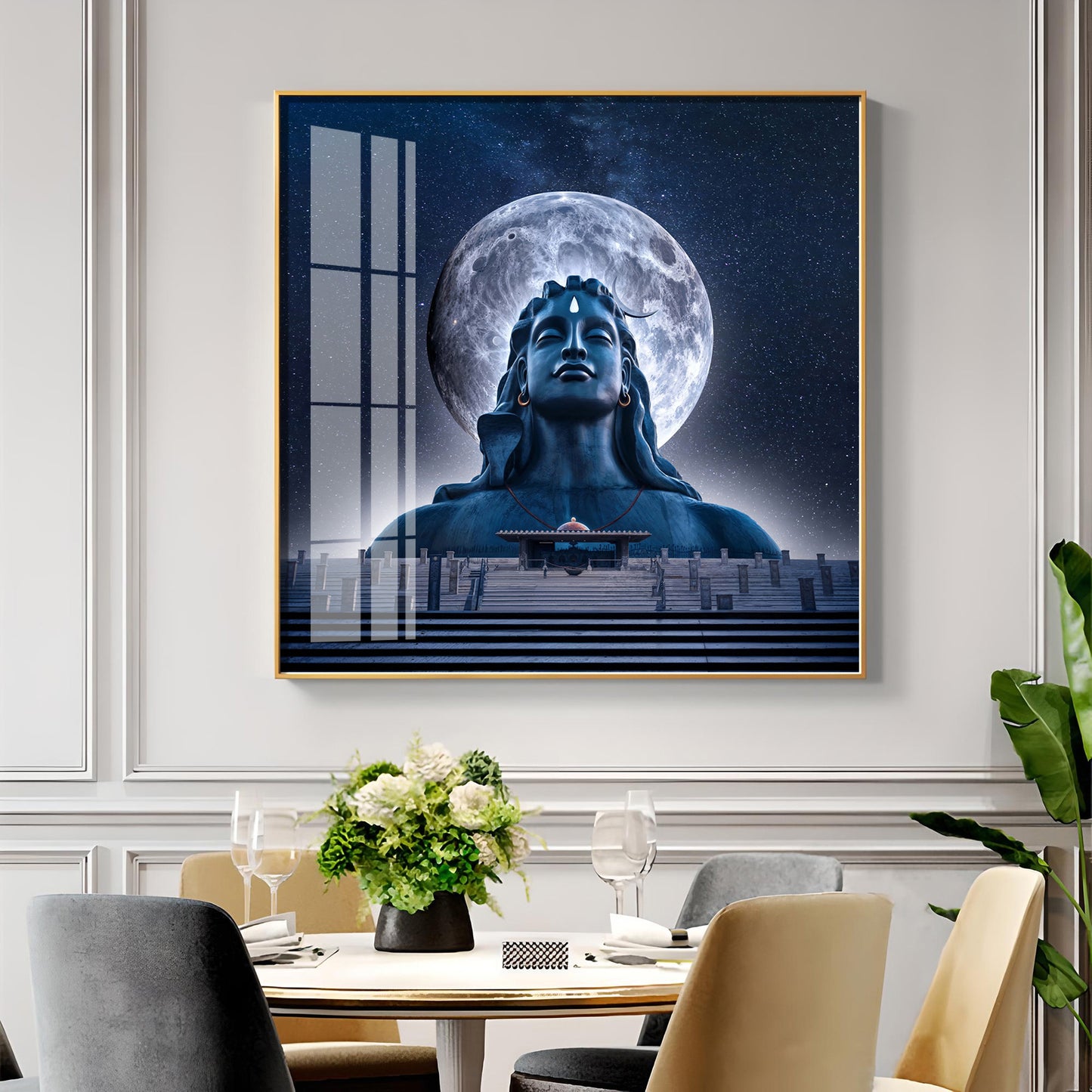 Moon Behind Mahadev Premium Acrylic Square Wall Art