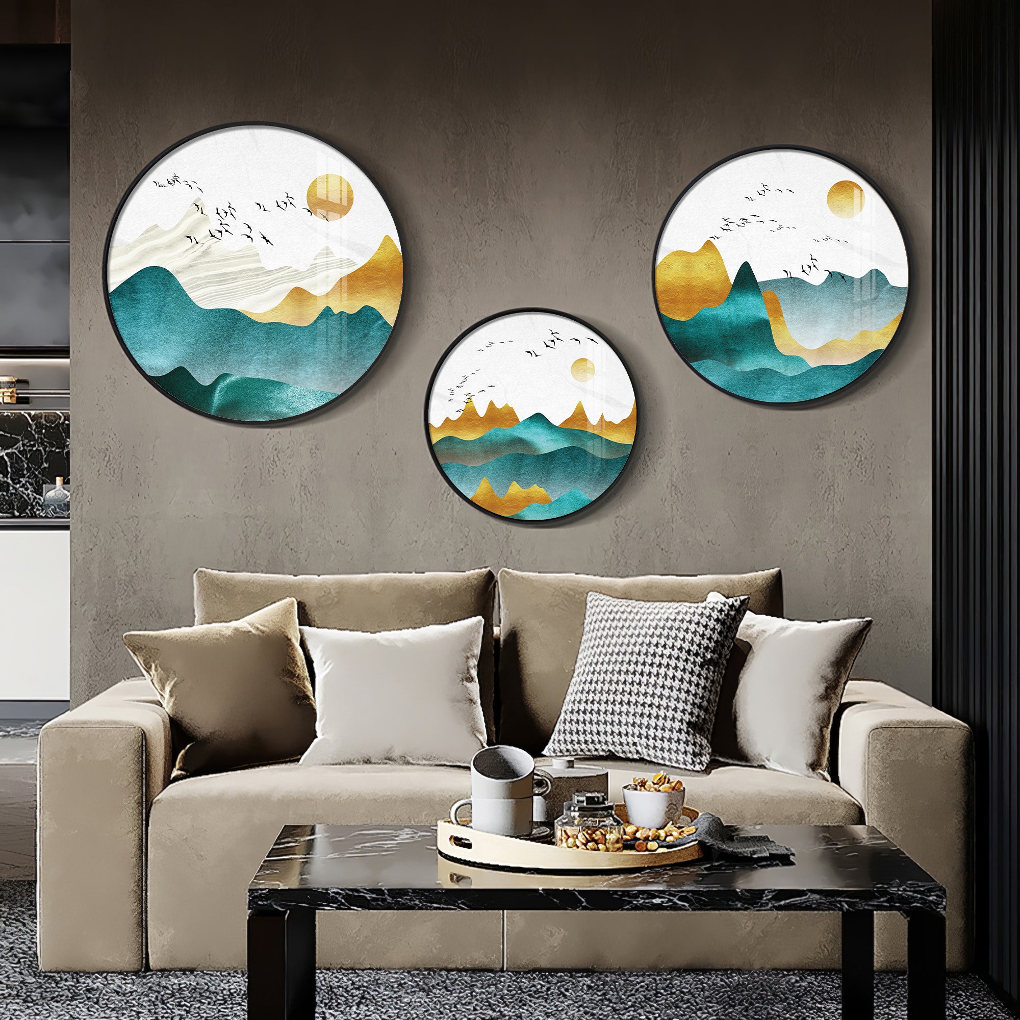 Mountain Scenery Premium Acrylic Round Wall Art (Set of 3)