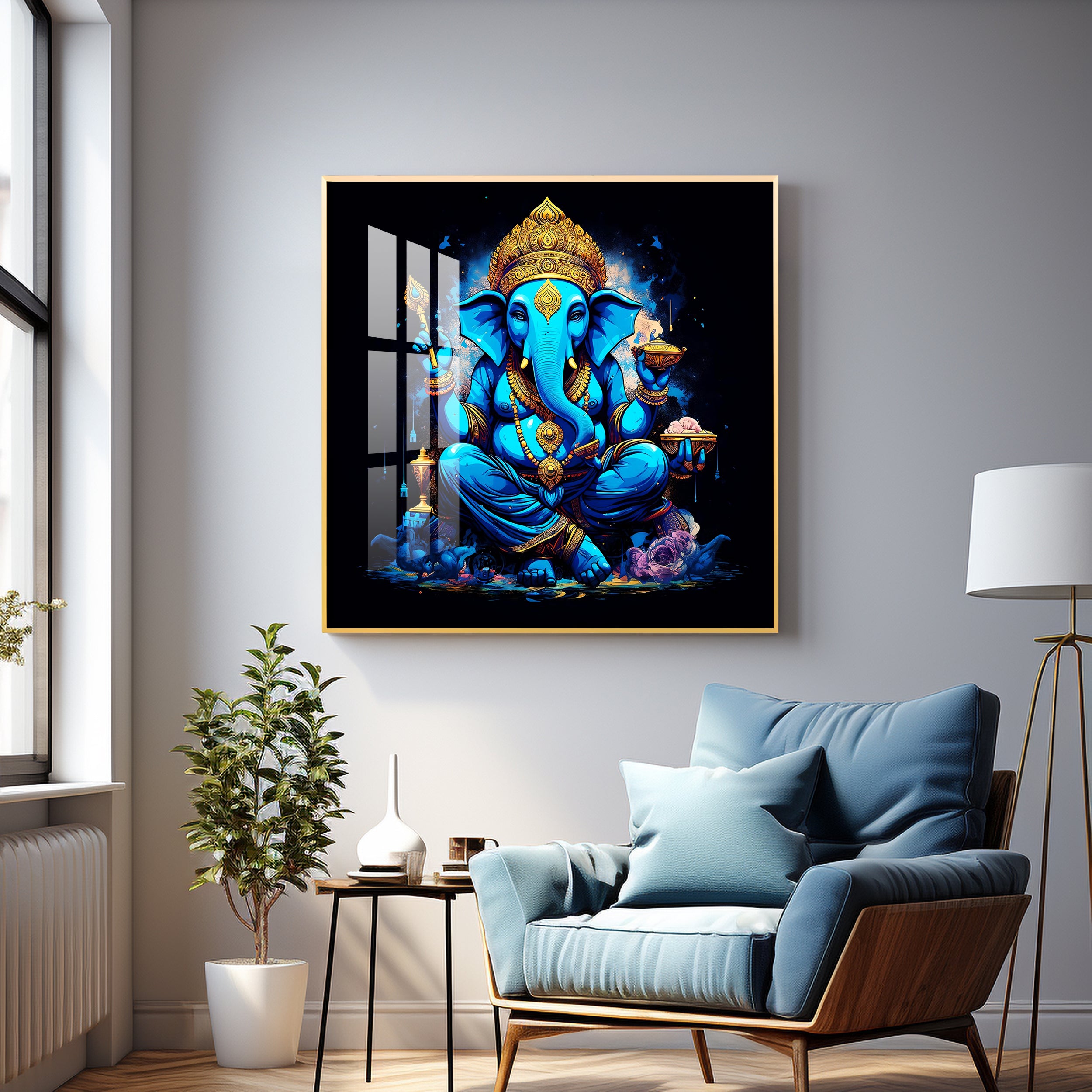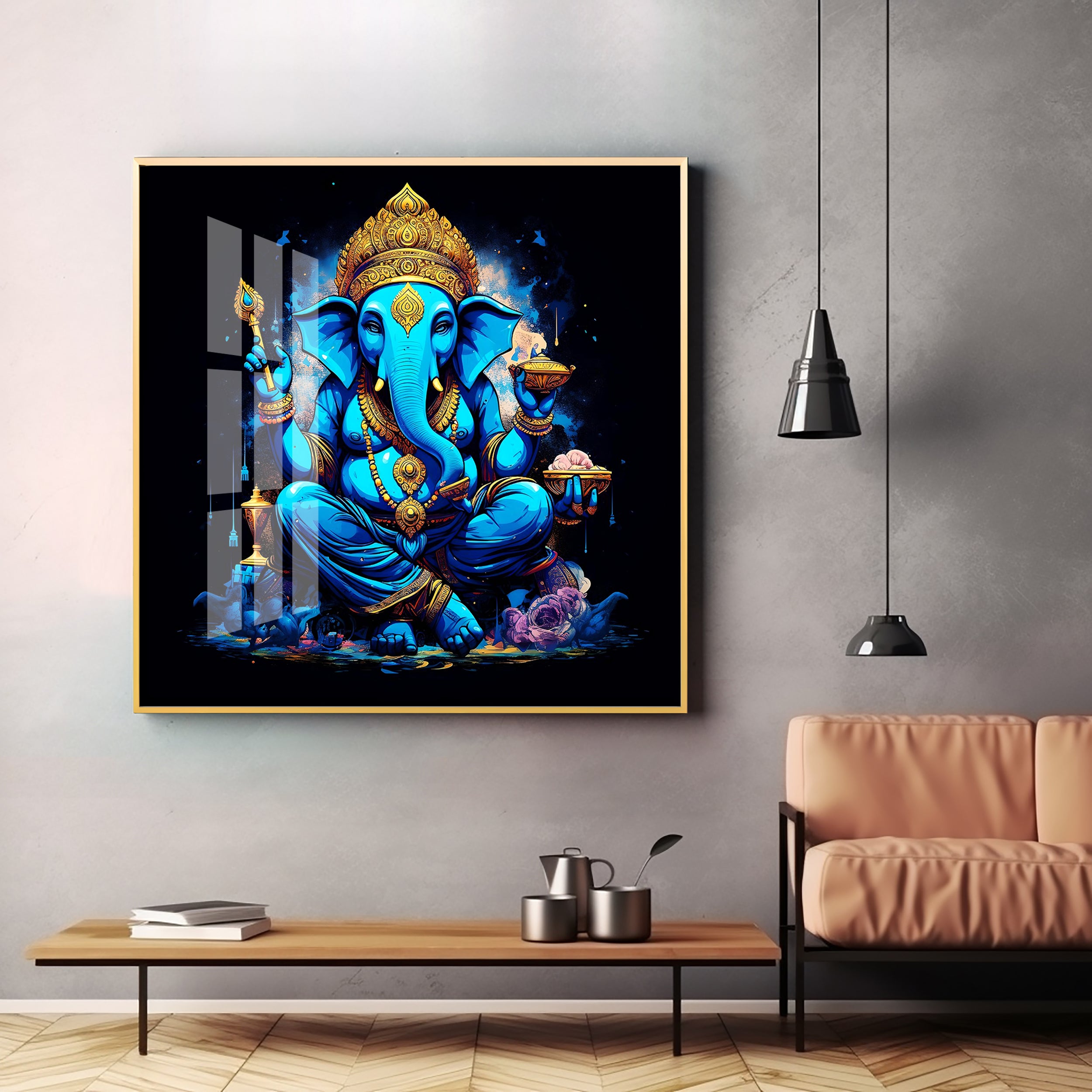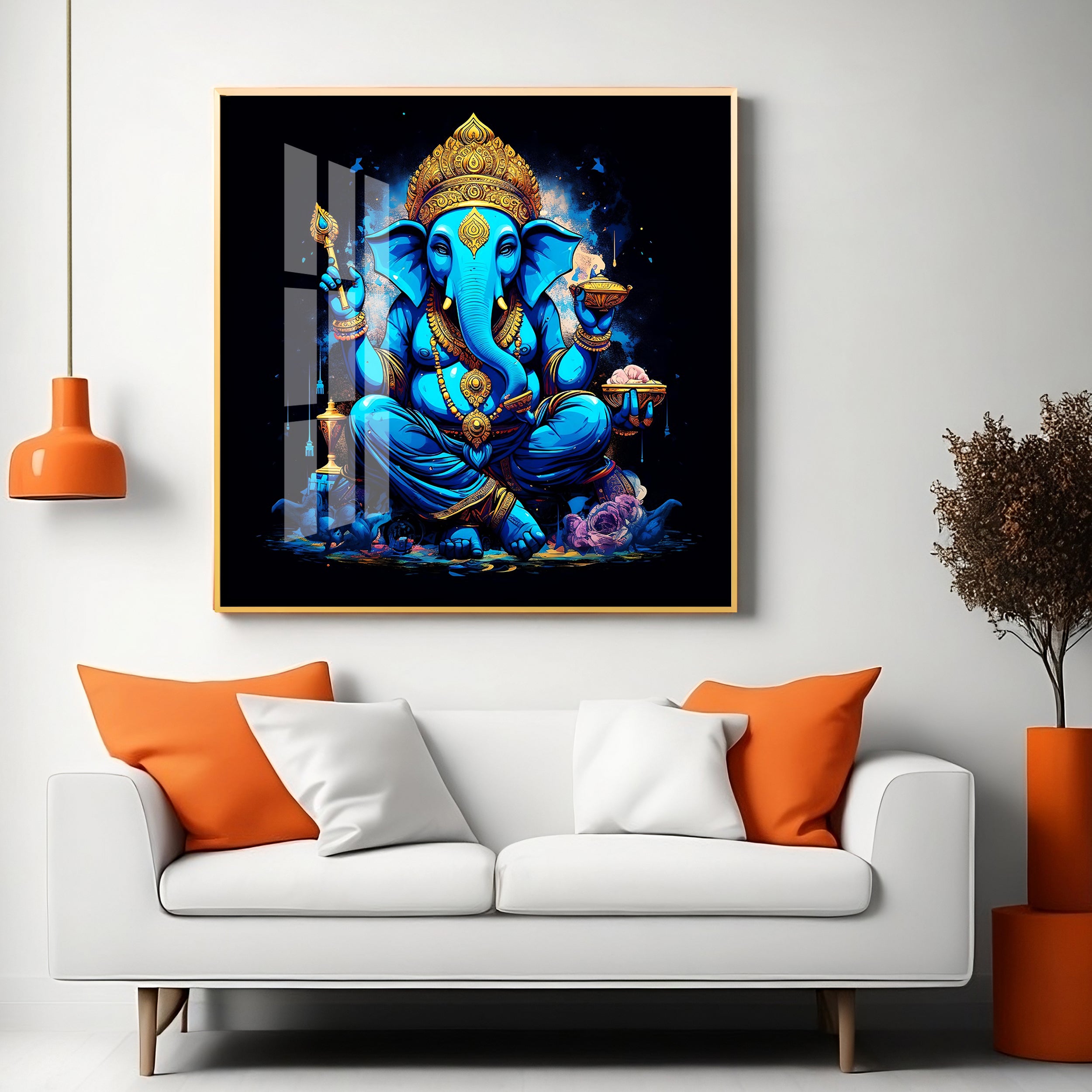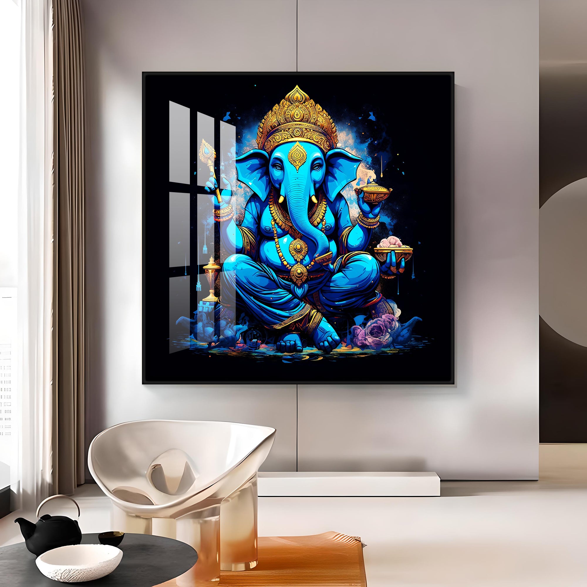 Neon Ganpati Premium Acrylic Square Wall Art