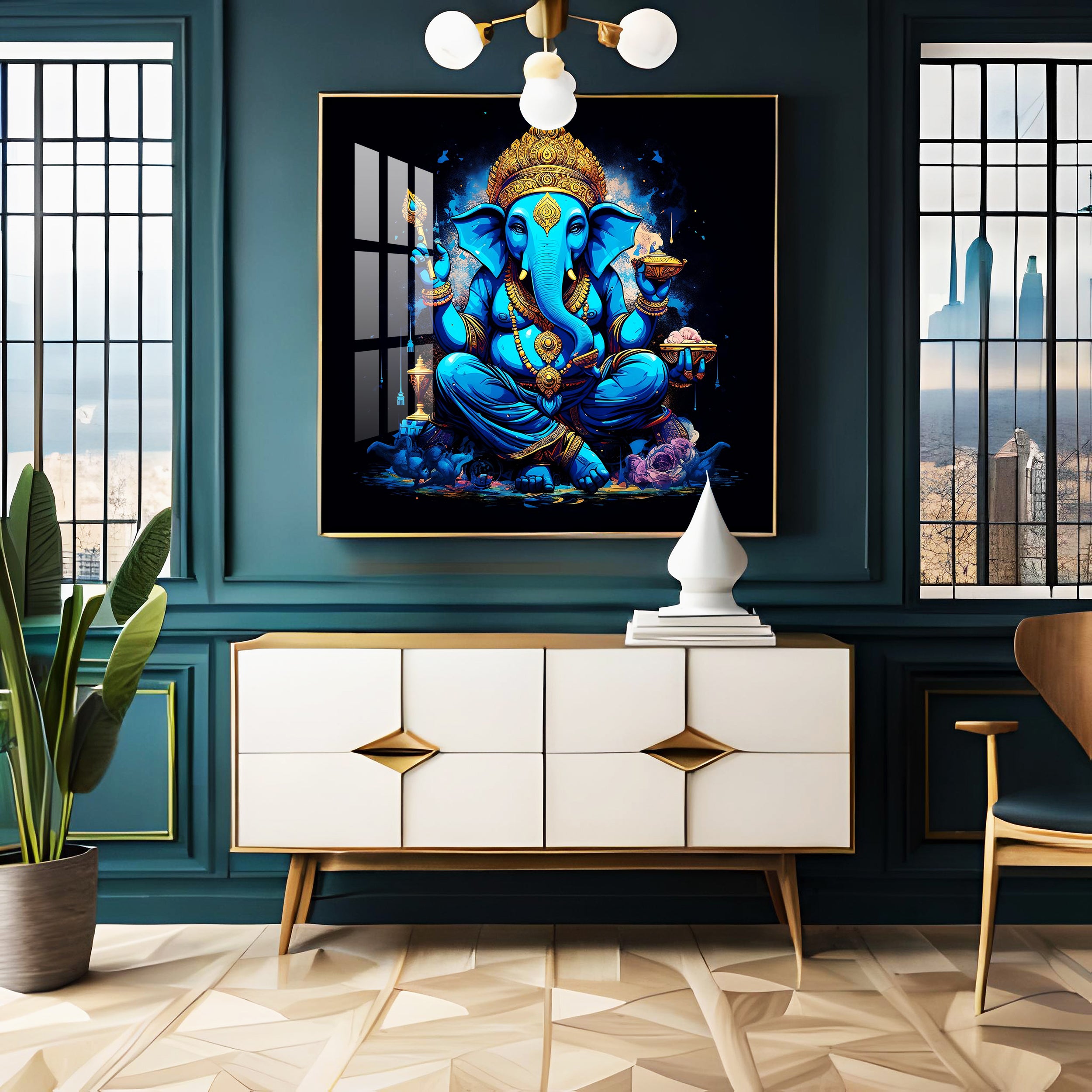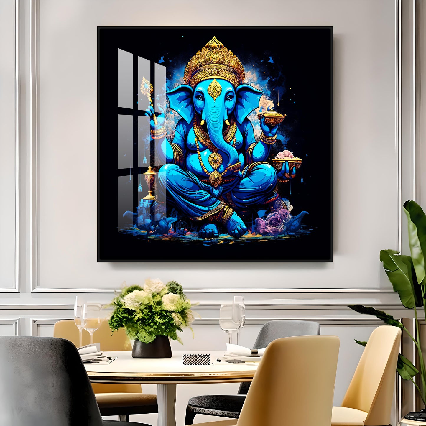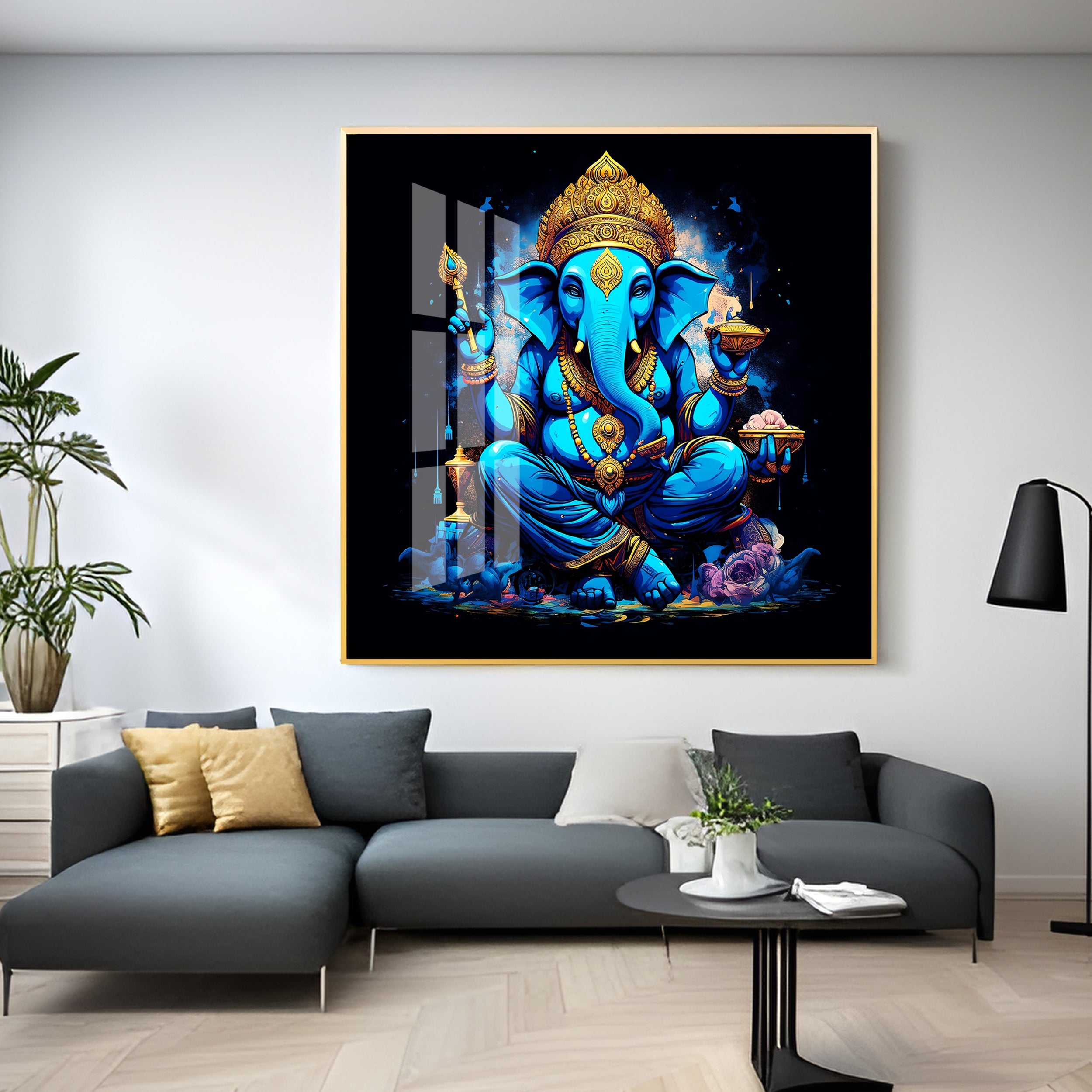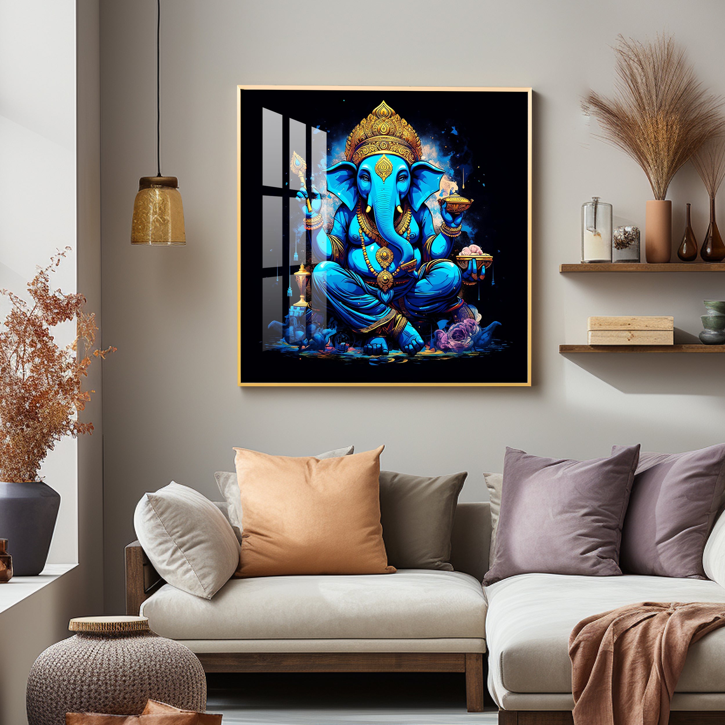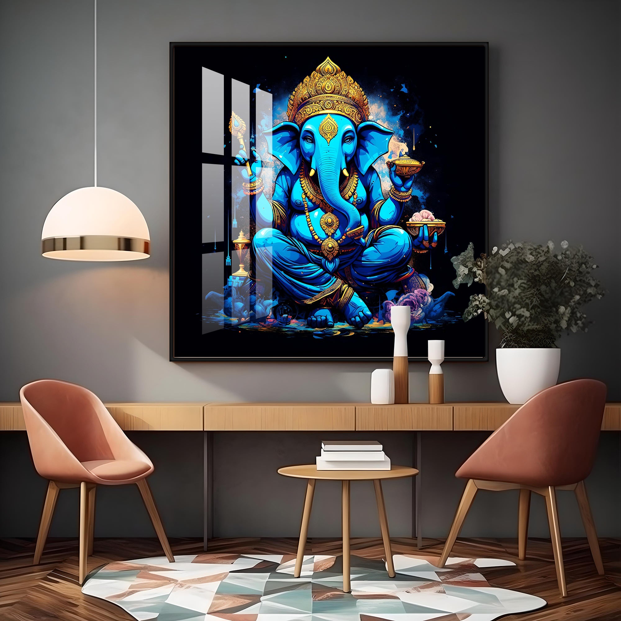 Neon Ganpati Premium Acrylic Square Wall Art