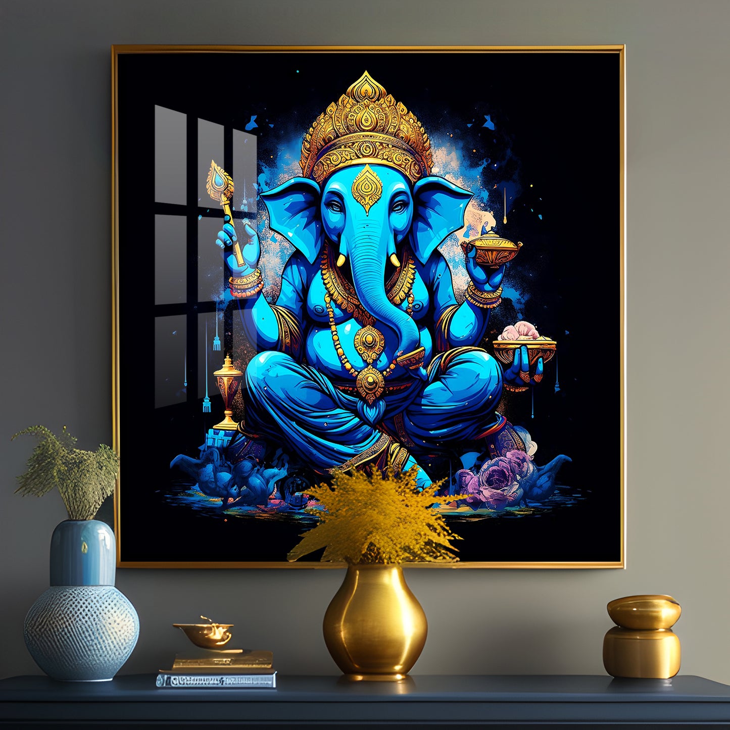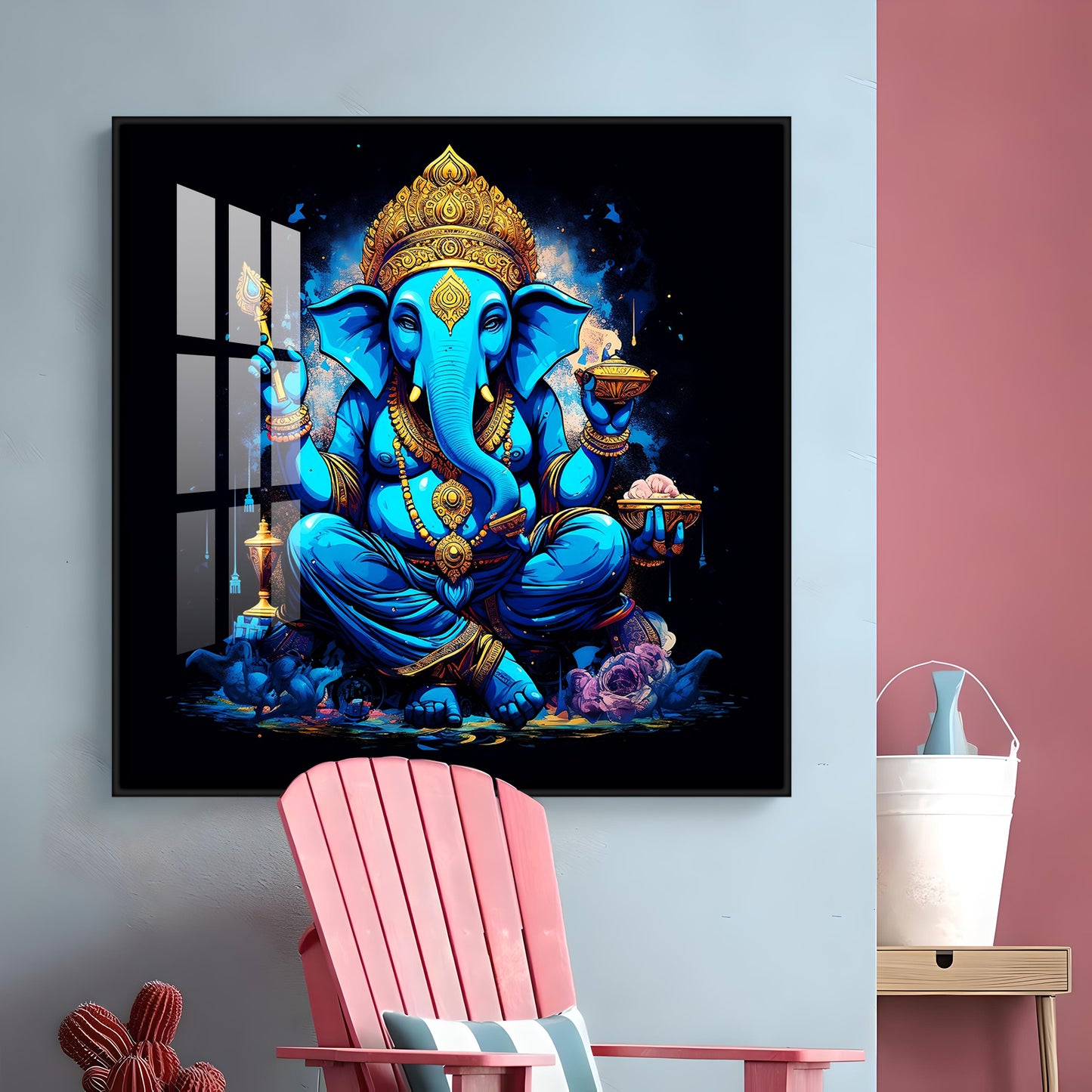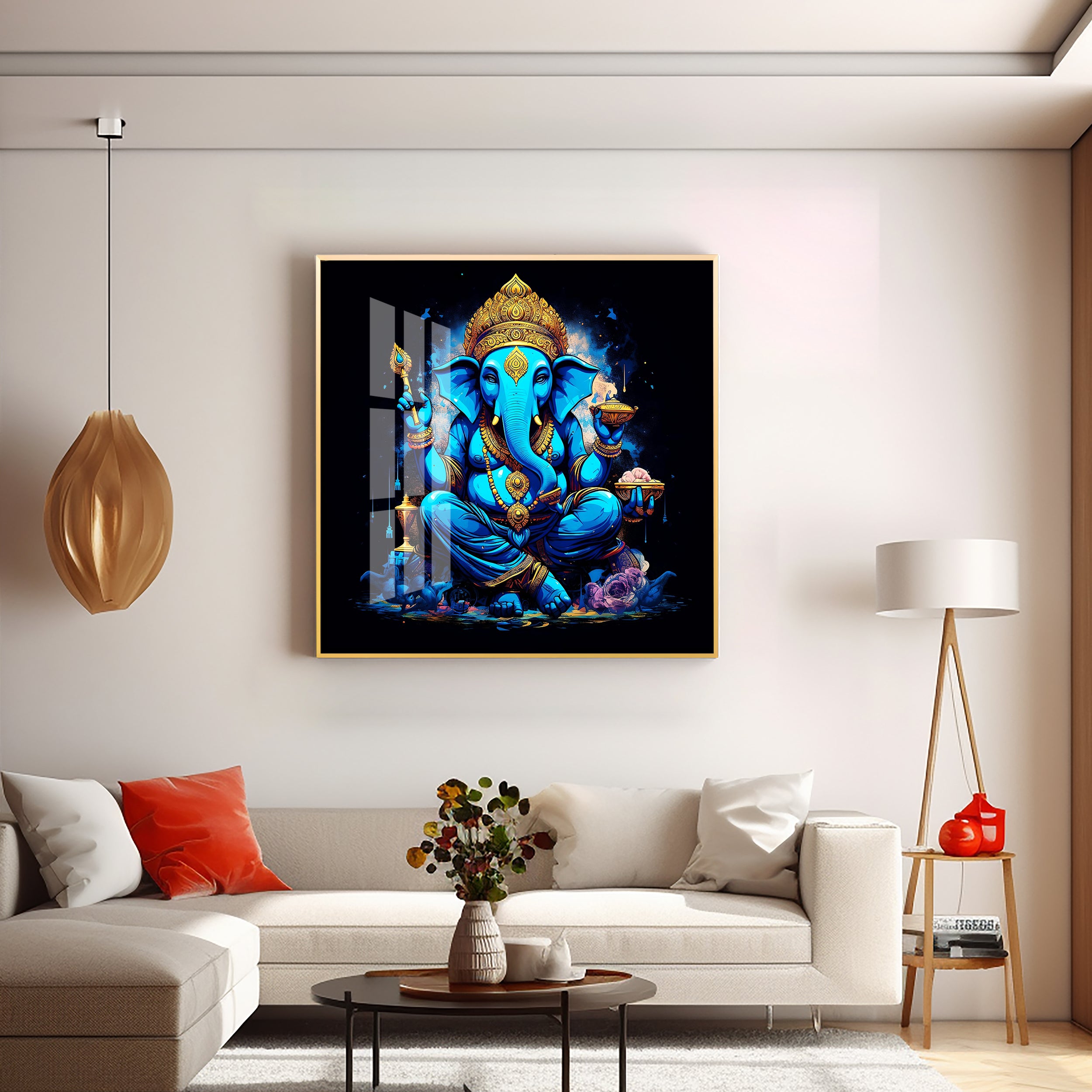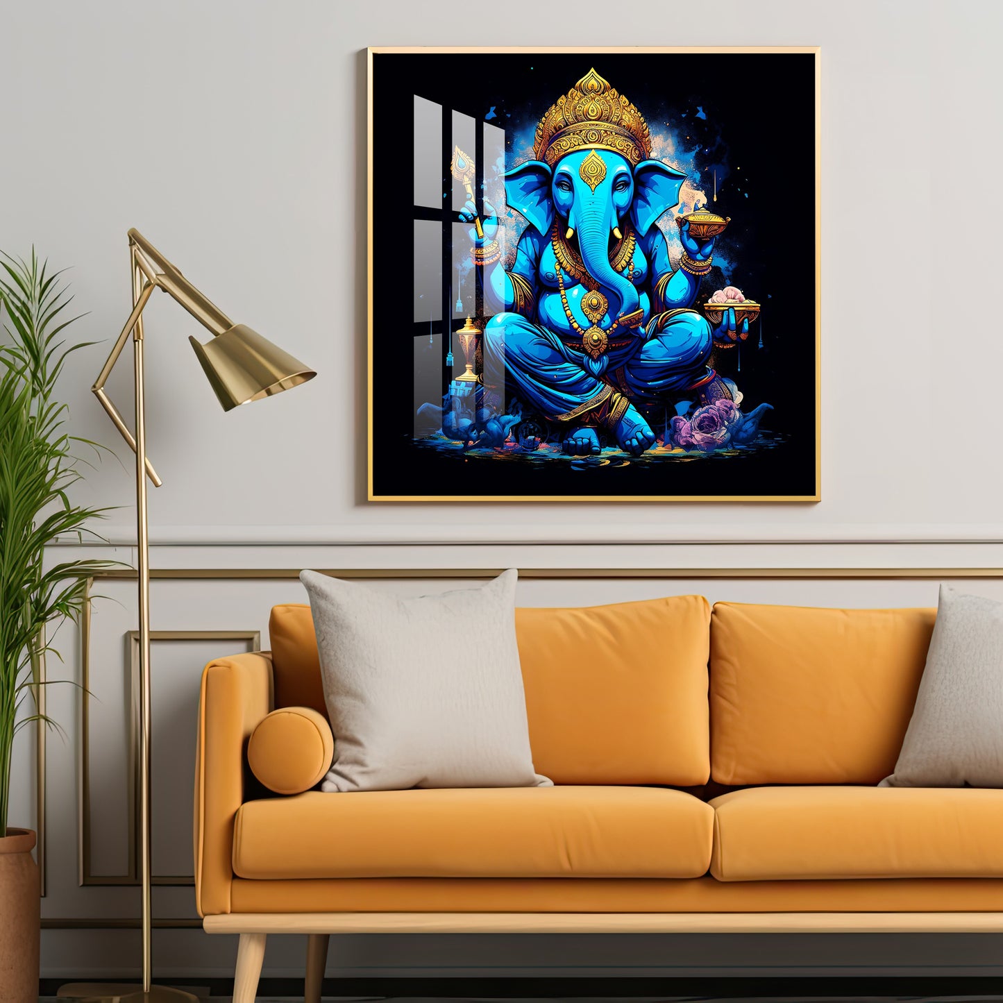 Neon Ganpati Premium Acrylic Square Wall Art
