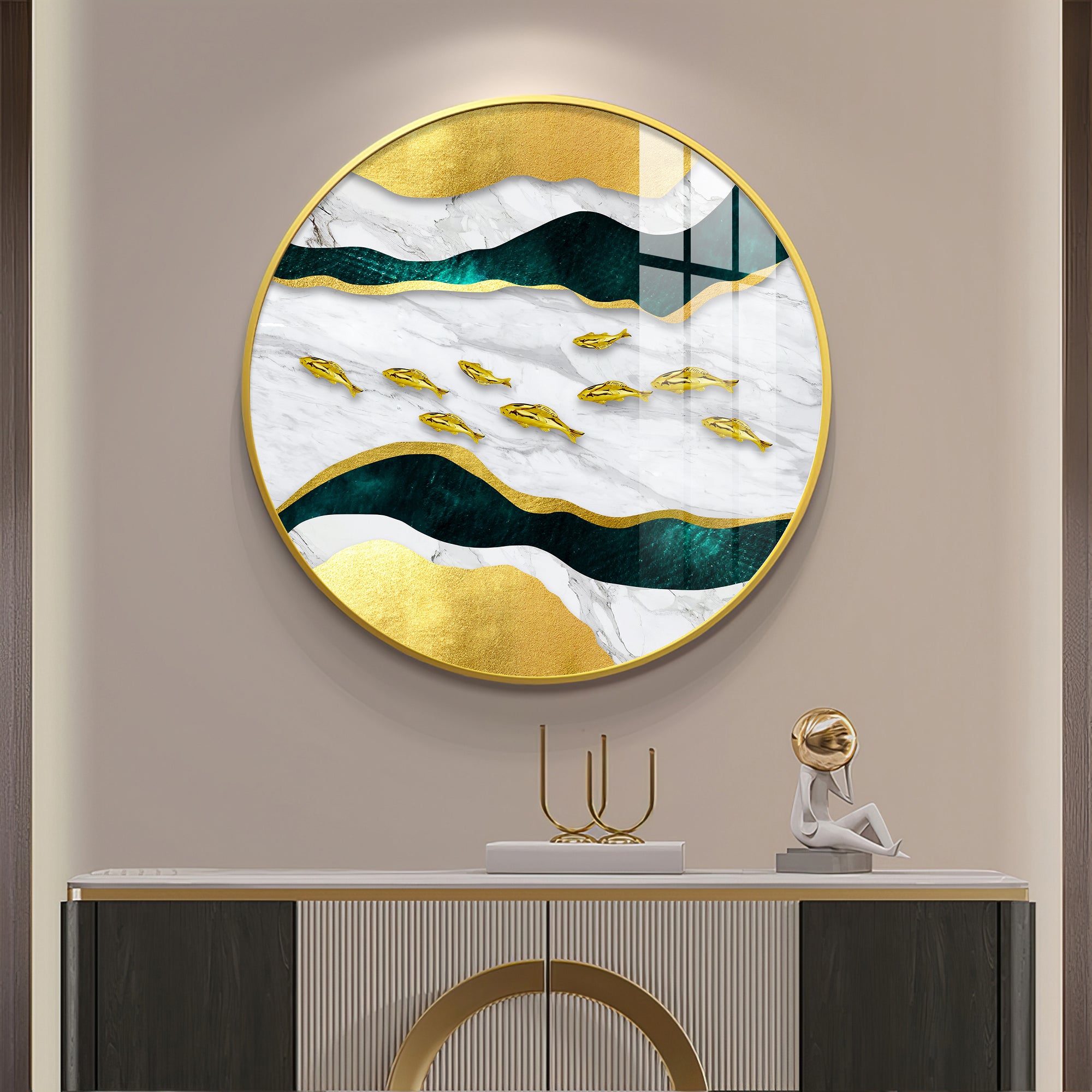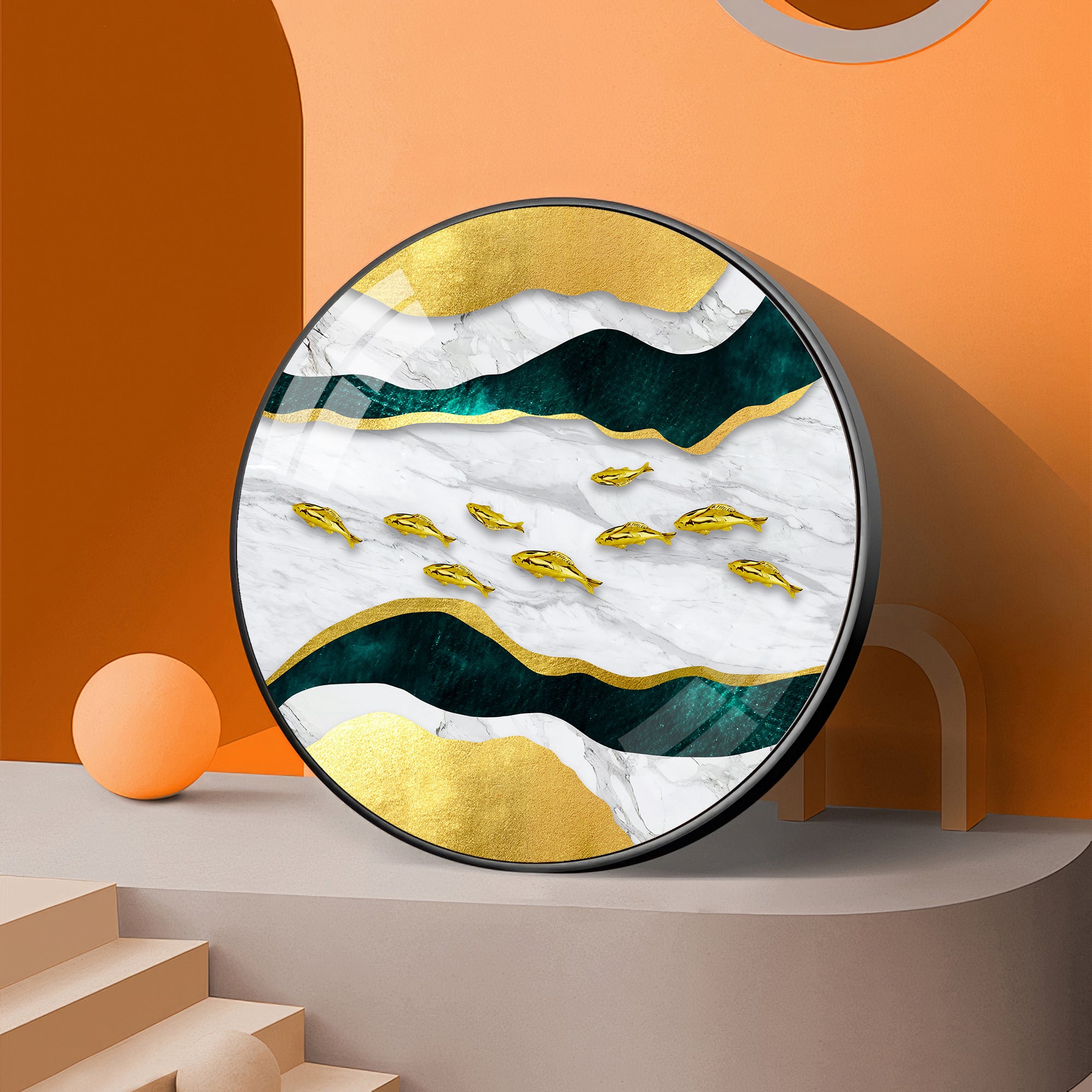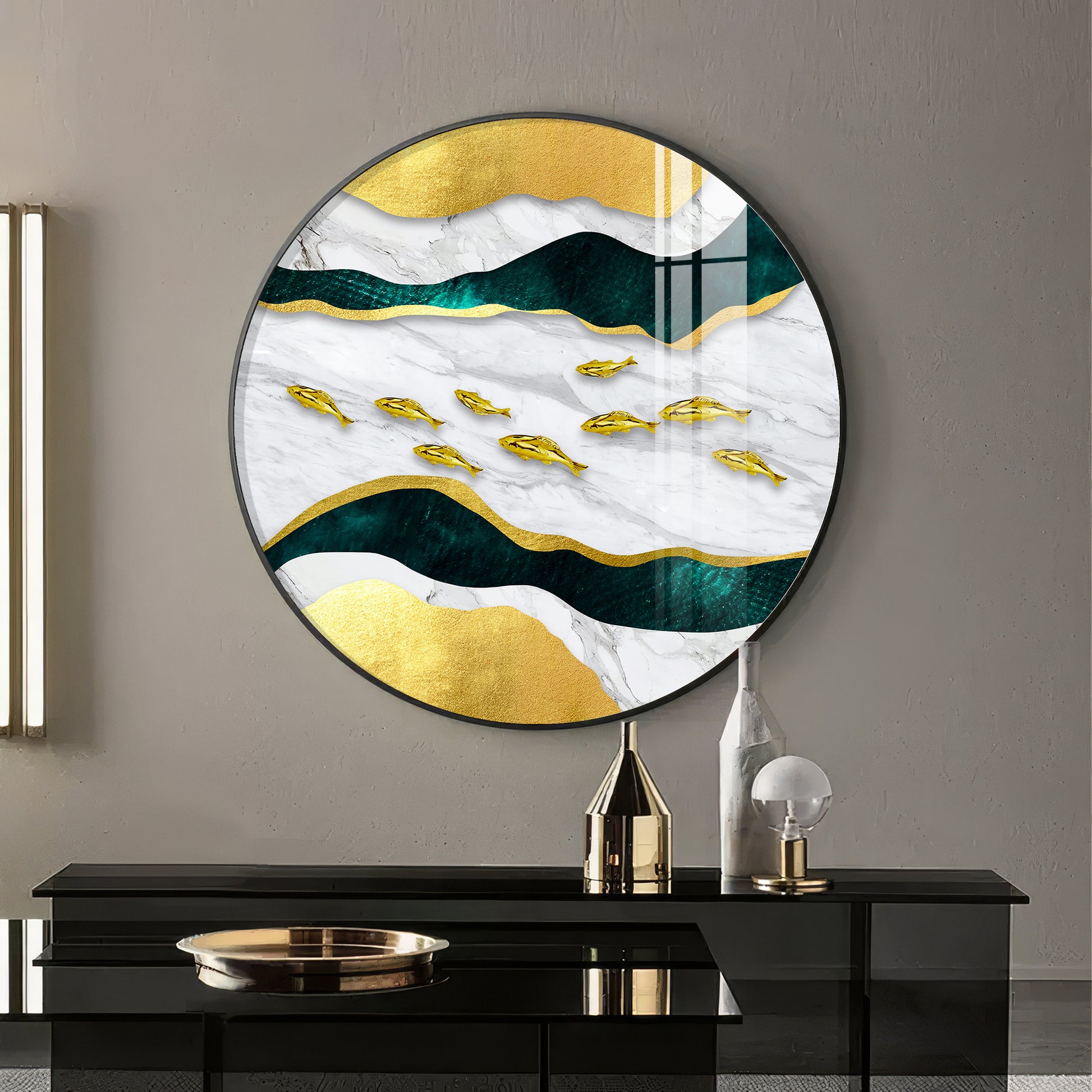 Noir & Gold Fish Premium Acrylic Round Wall Art