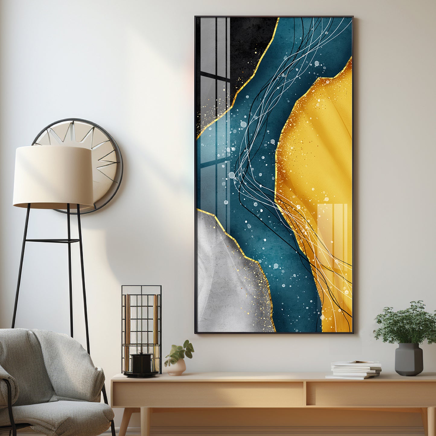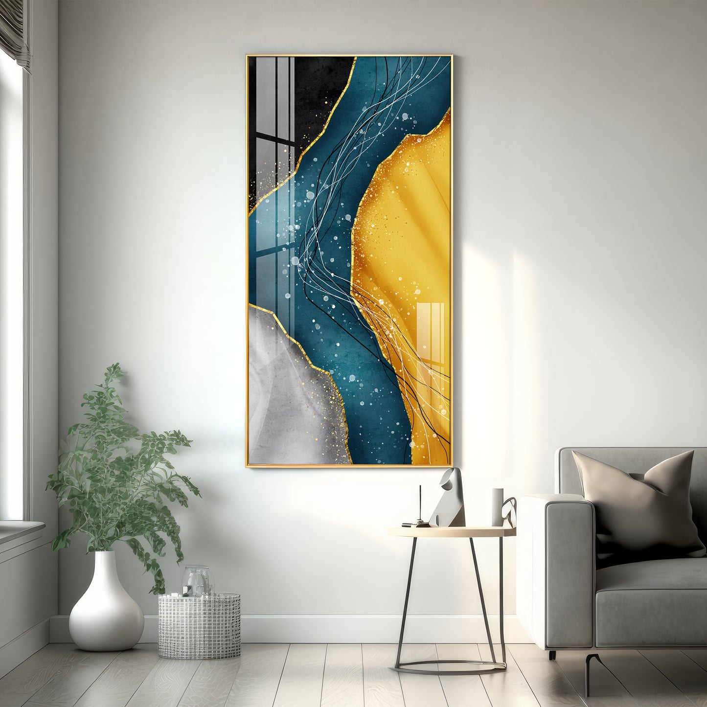 Our Framed Acrylic Wall Art is easy to hang. The metal hooks are included on the corners of your ordered wall art. You can simply mount it to your wall.