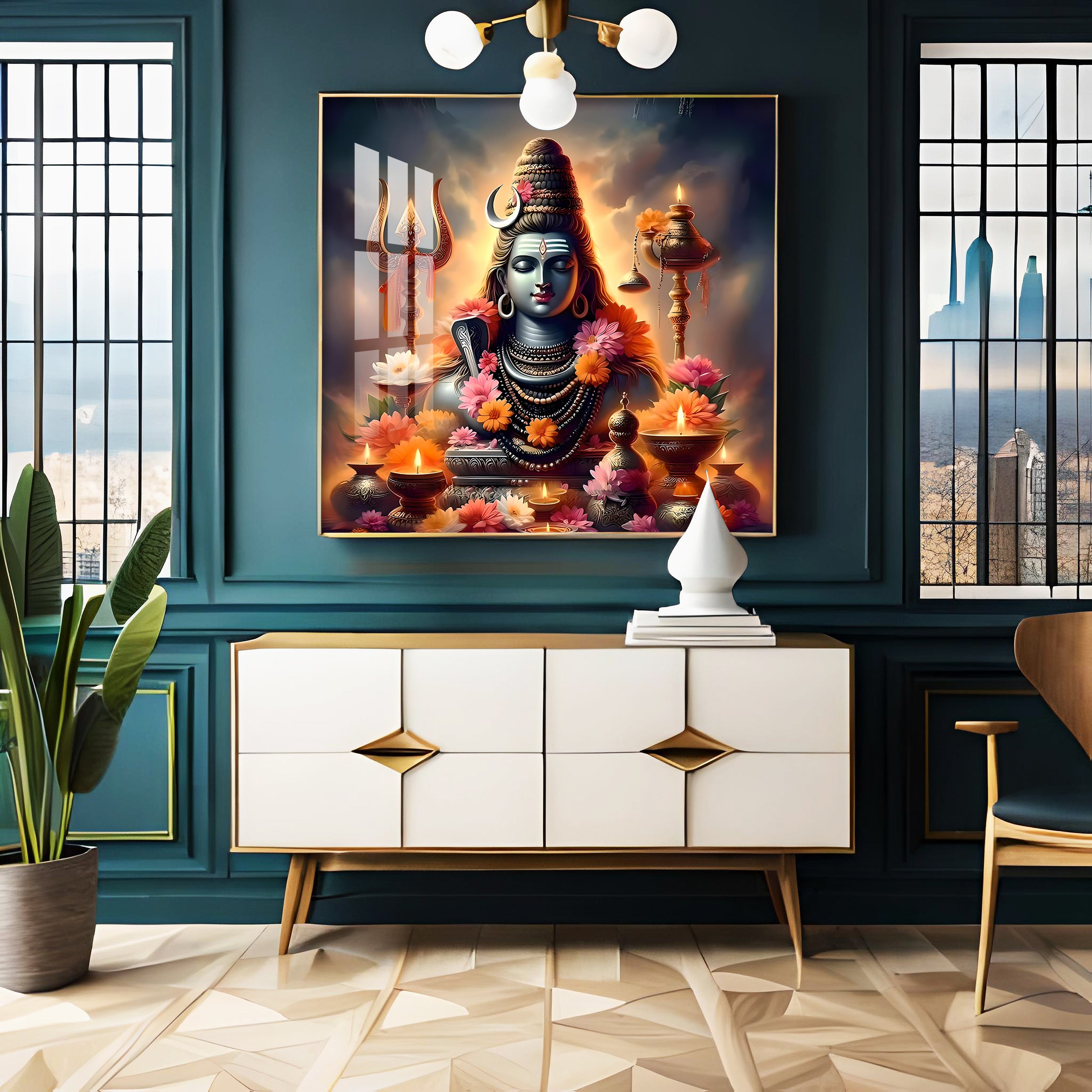 Om Namah Shivay Premium Acrylic Square Wall Art